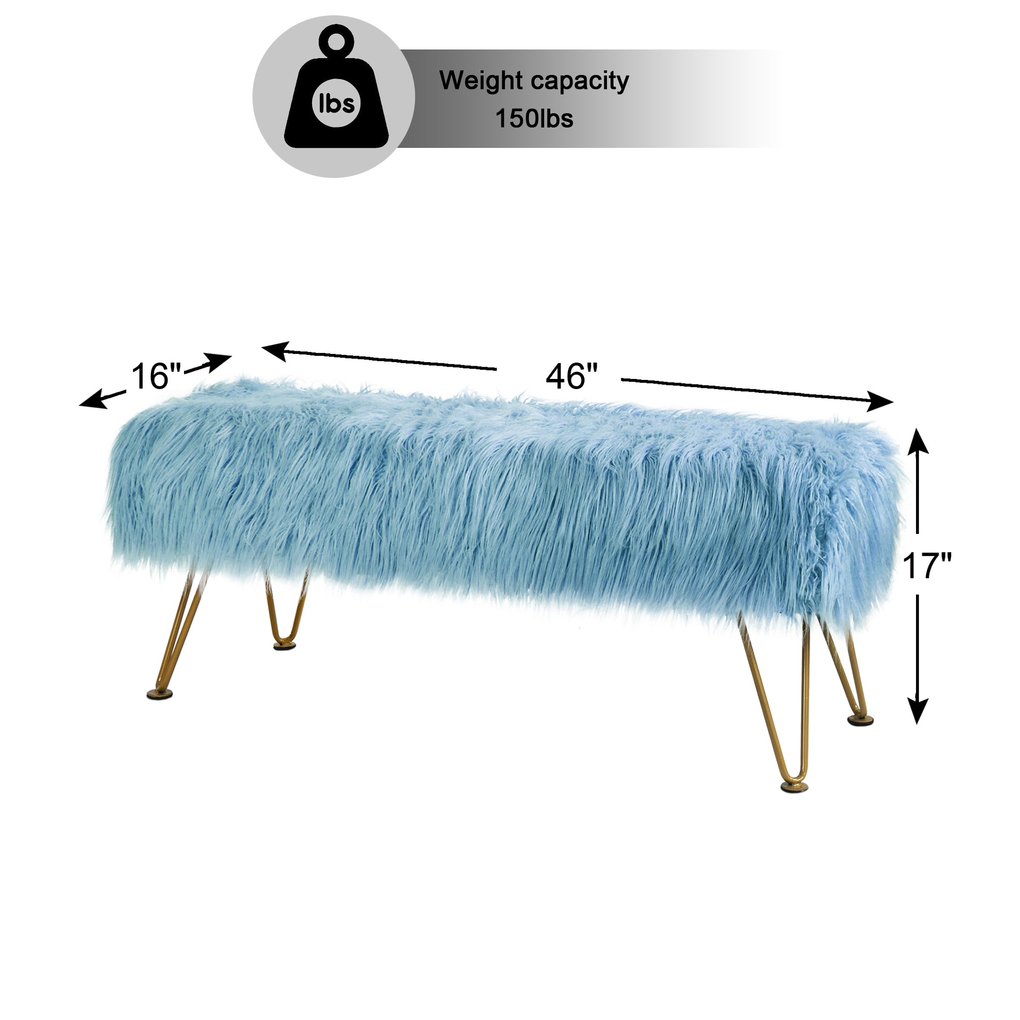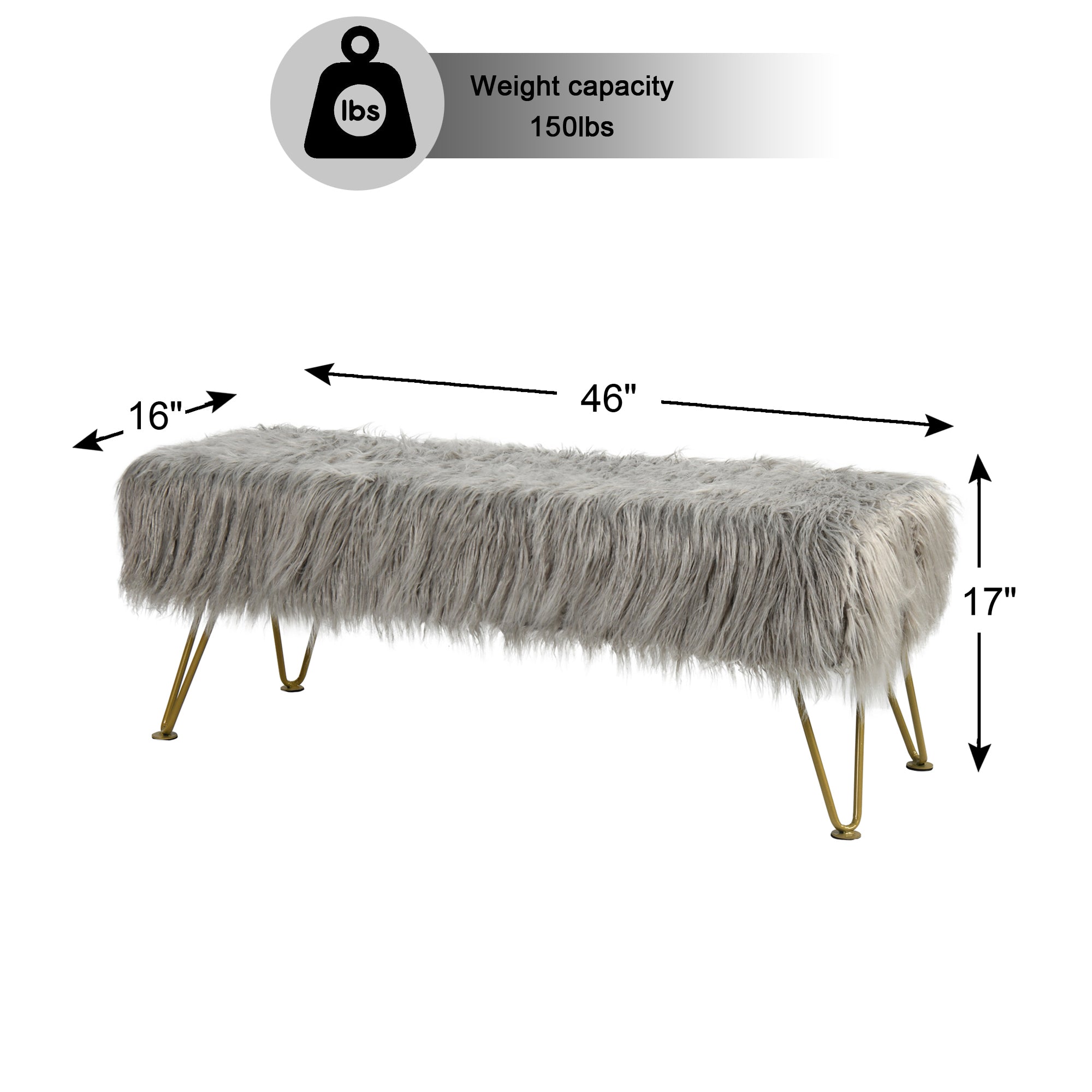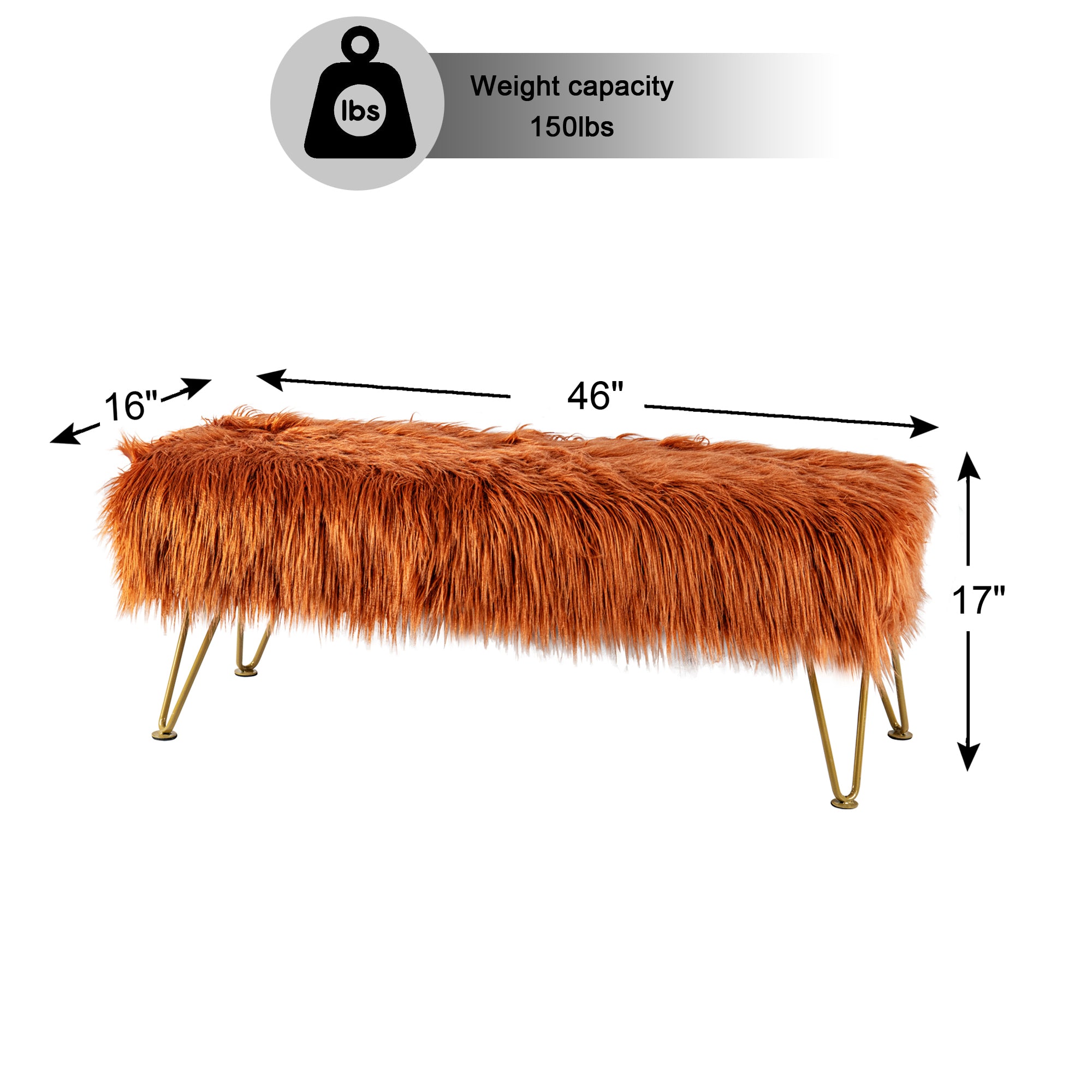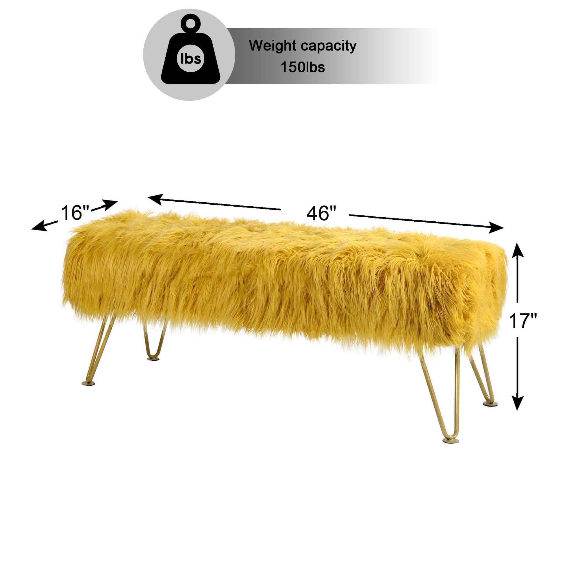 - PROTECT AND CARE FOR YOUR BENCH! Spot clean seat cushion cover only on visible stains and spots using mild soap and a clean, soft towel. Metal hairpin legs may be wiped with a clean, damp towel. All products are built to last a lifetime when proper care and weight capacity is followed. Faux fur fabric is heat-treated for ultimate fade and wear resistance.