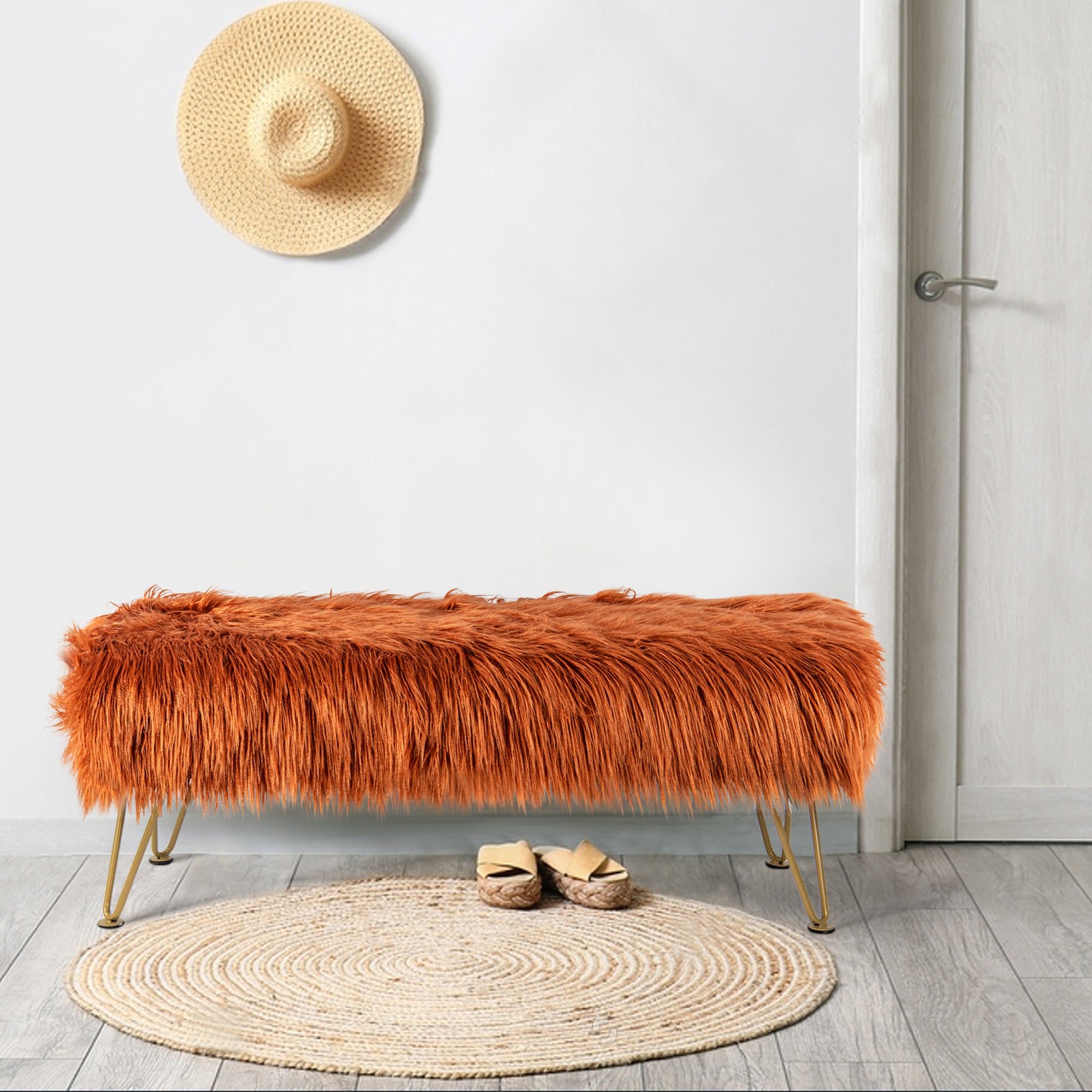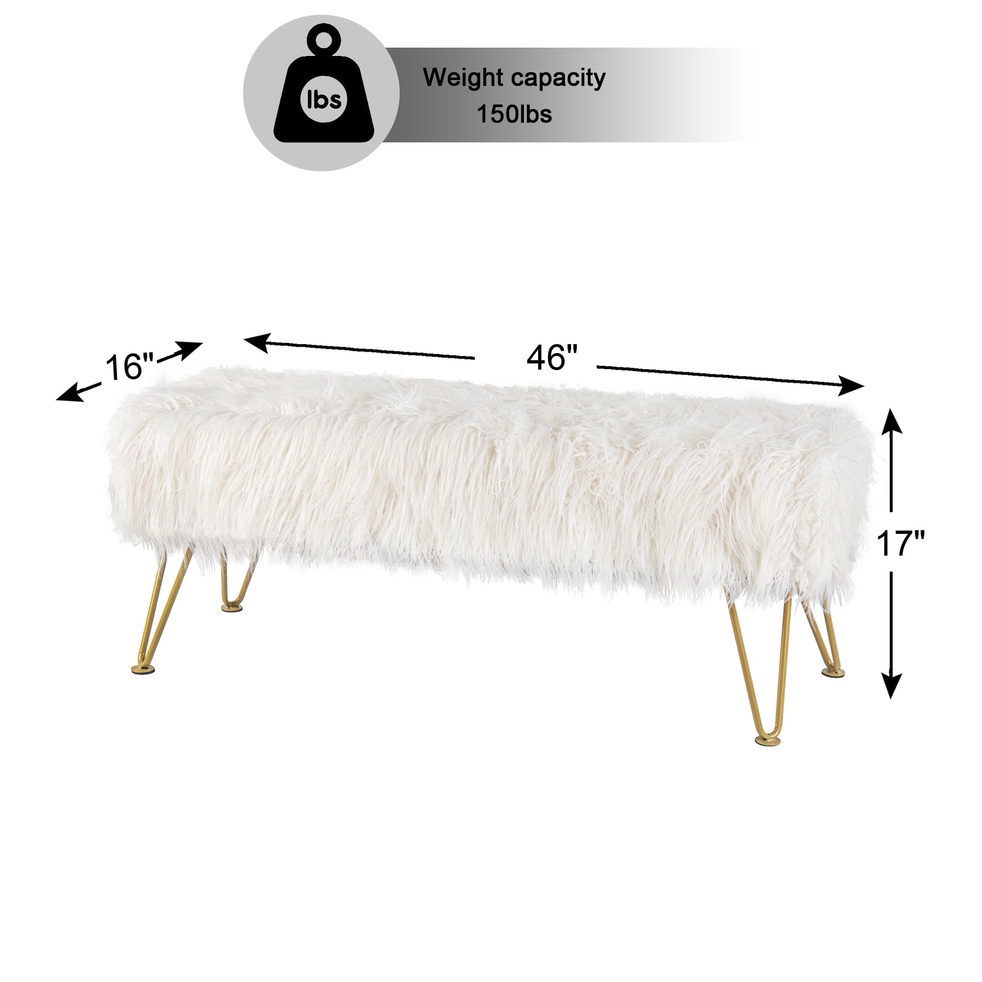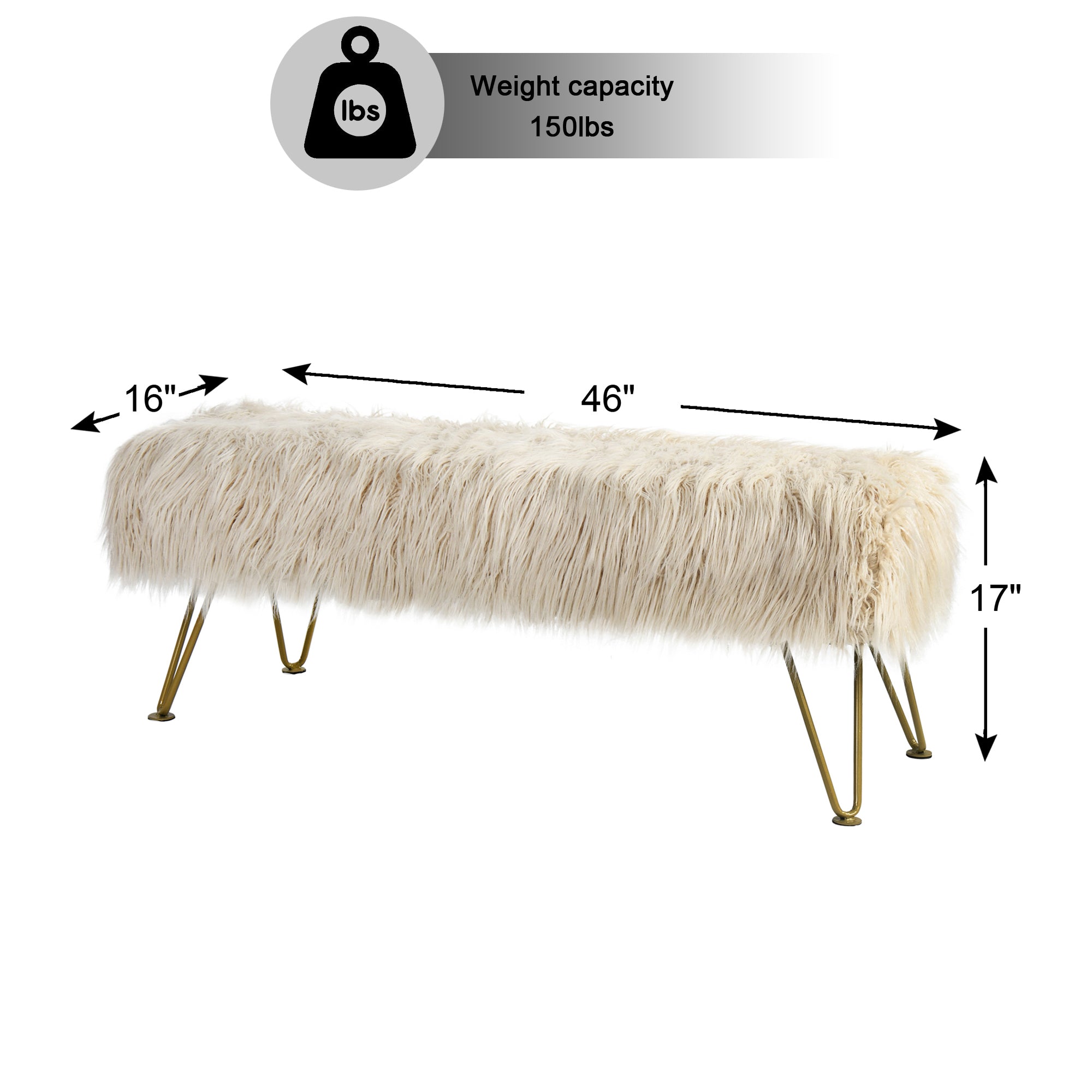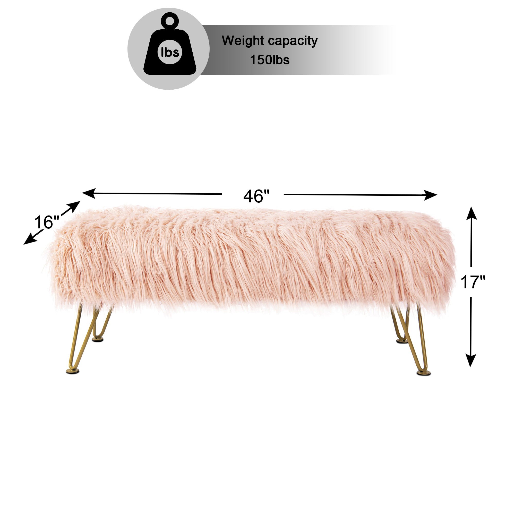 - PROTECT AND CARE FOR YOUR BENCH! Spot clean seat cushion cover only on visible stains and spots using mild soap and a clean, soft towel. Metal hairpin legs may be wiped with a clean, damp towel. All products are built to last a lifetime when proper care and weight capacity is followed. Faux fur fabric is heat-treated for ultimate fade and wear resistance.