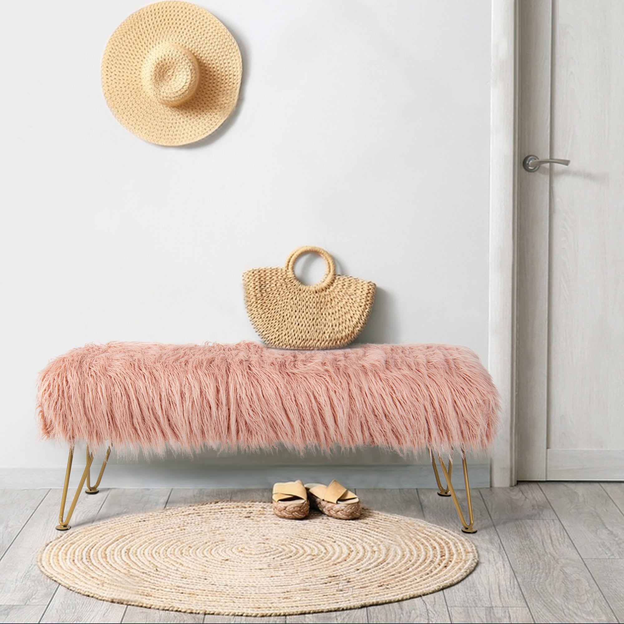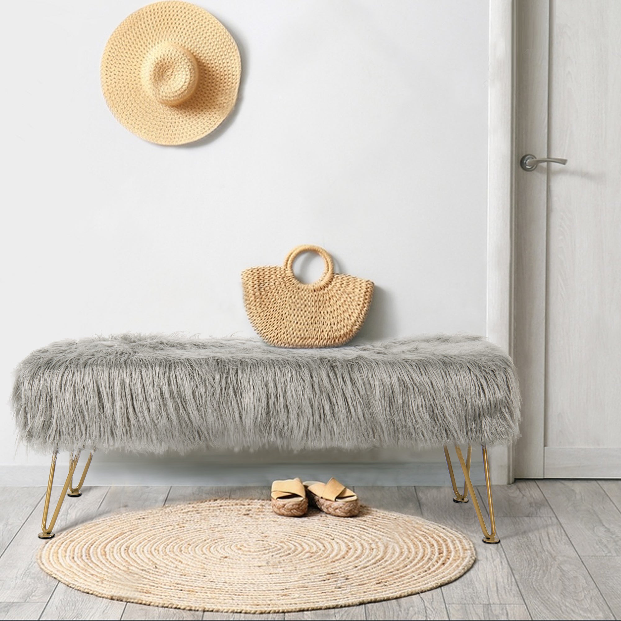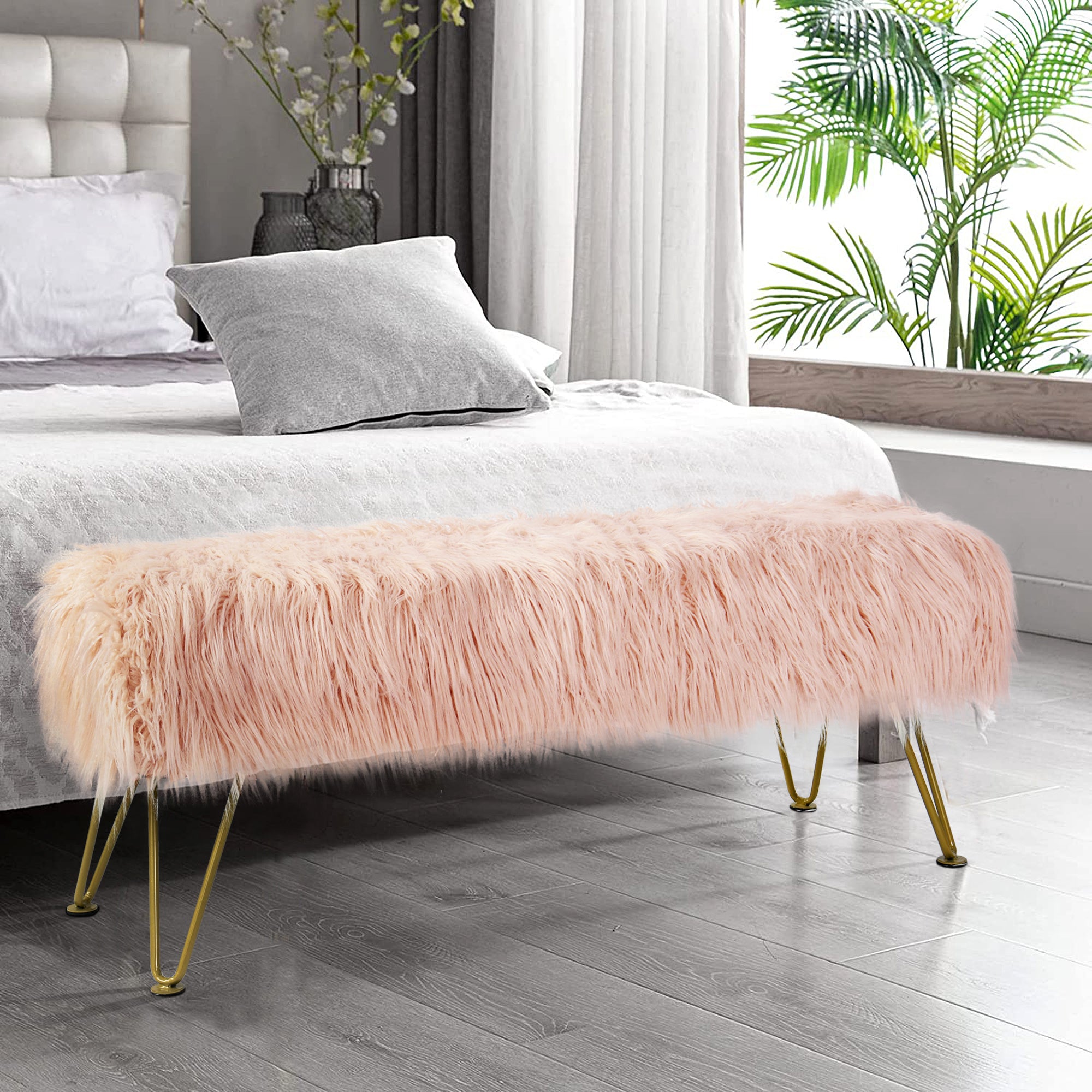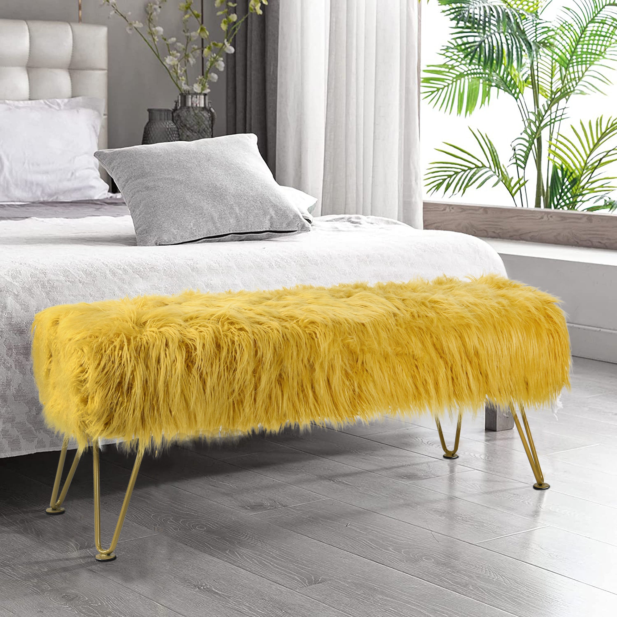 - PROTECT AND CARE FOR YOUR BENCH! Spot clean seat cushion cover only on visible stains and spots using mild soap and a clean, soft towel. Metal hairpin legs may be wiped with a clean, damp towel. All products are built to last a lifetime when proper care and weight capacity is followed. Faux fur fabric is heat-treated for ultimate fade and wear resistance.