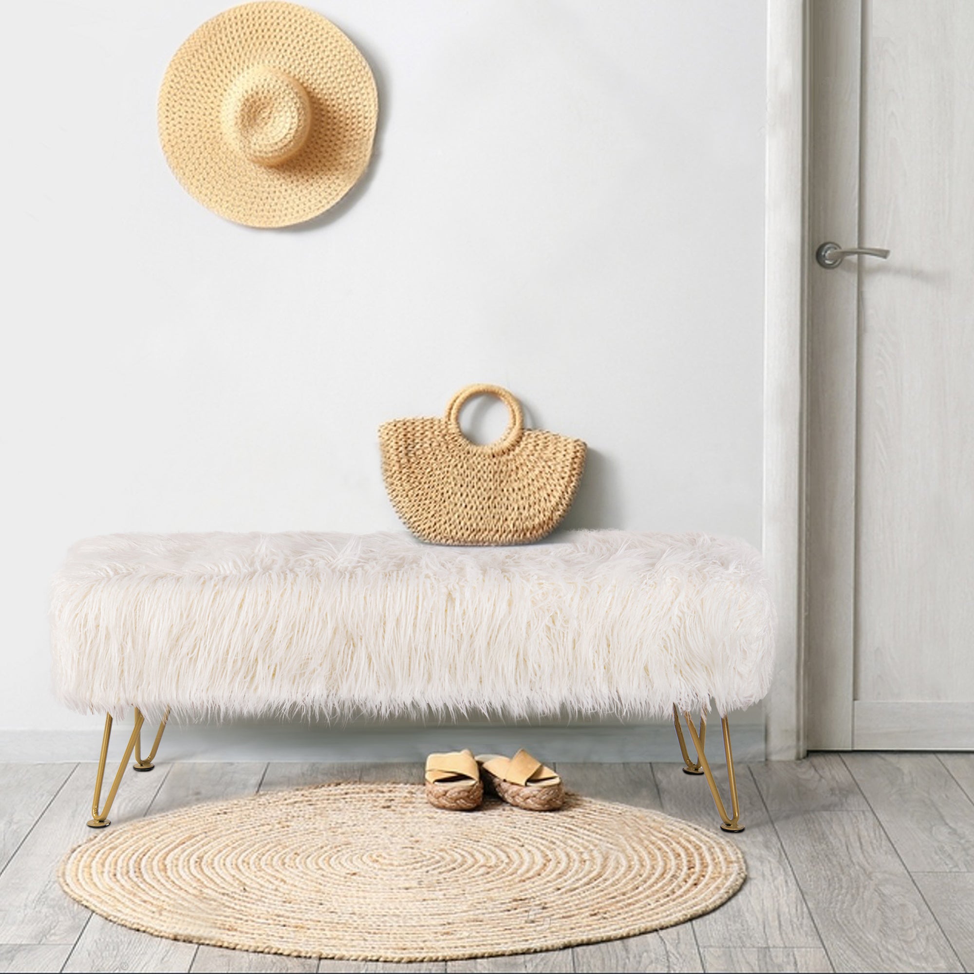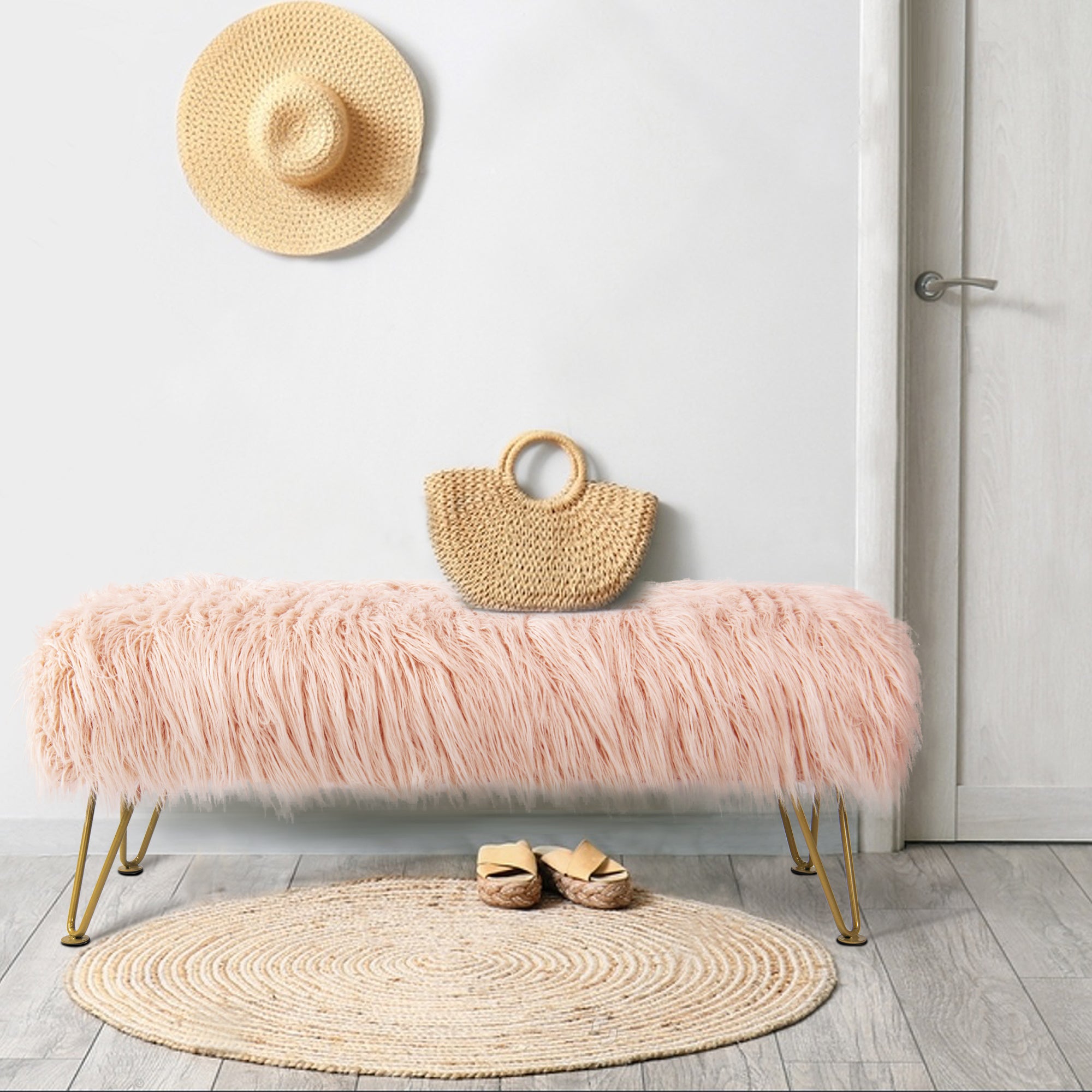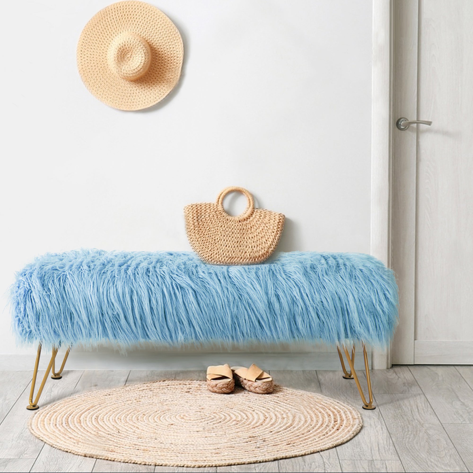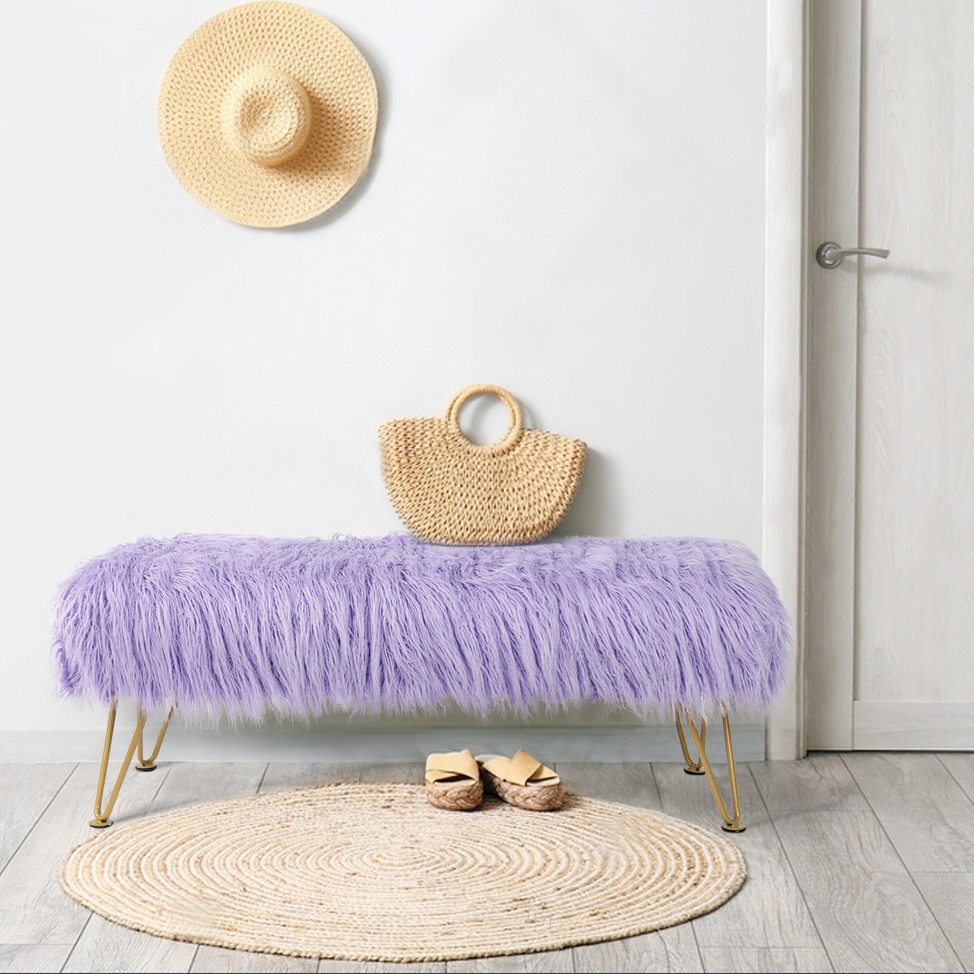 - PROTECT AND CARE FOR YOUR BENCH! Spot clean seat cushion cover only on visible stains and spots using mild soap and a clean, soft towel. Metal hairpin legs may be wiped with a clean, damp towel. All products are built to last a lifetime when proper care and weight capacity is followed. Faux fur fabric is heat-treated for ultimate fade and wear resistance.