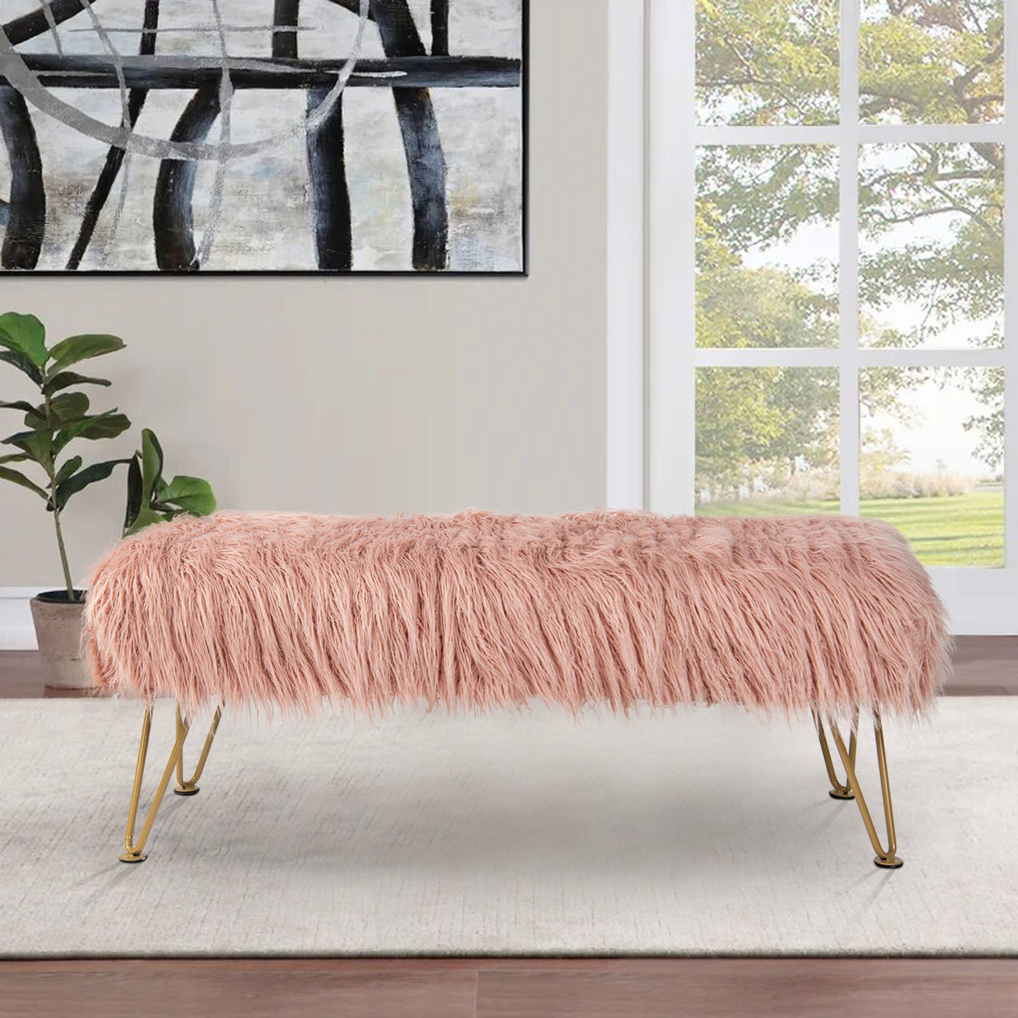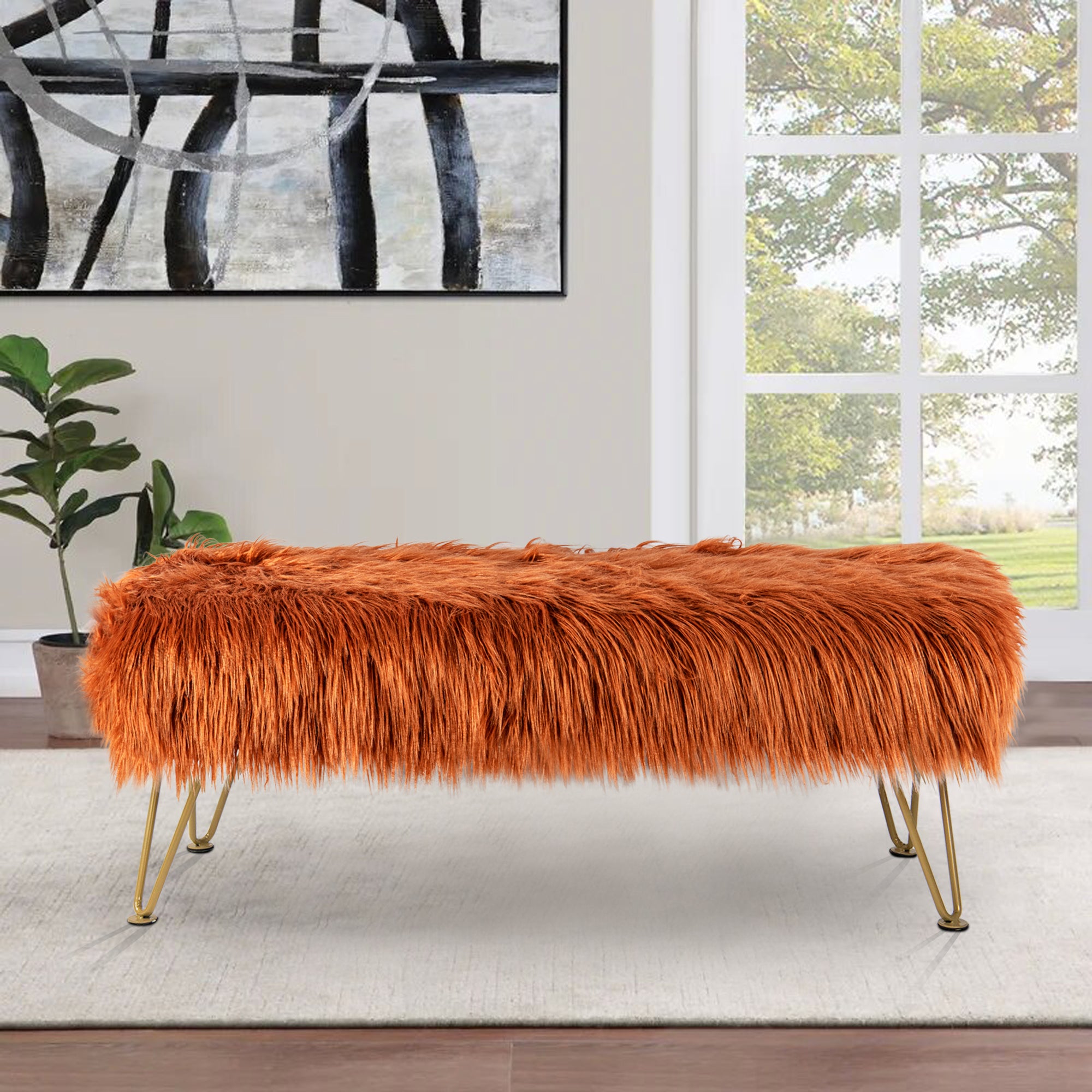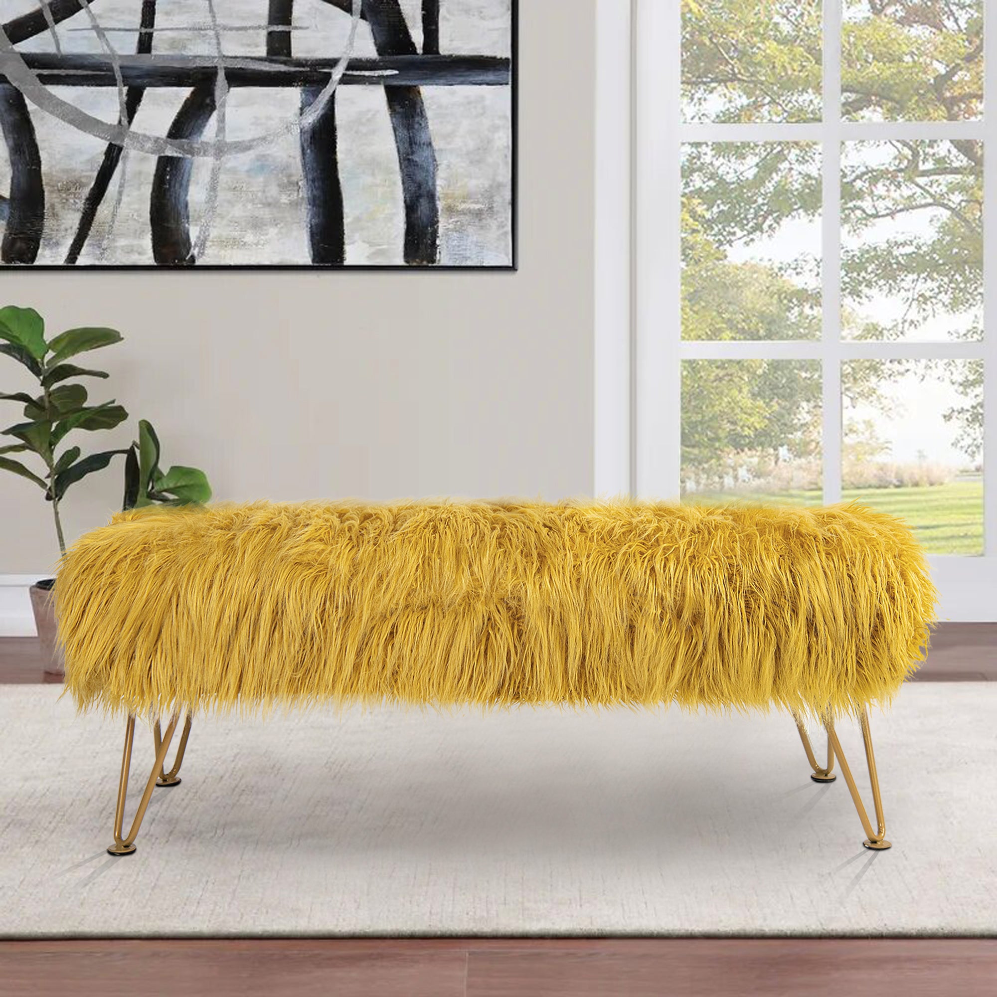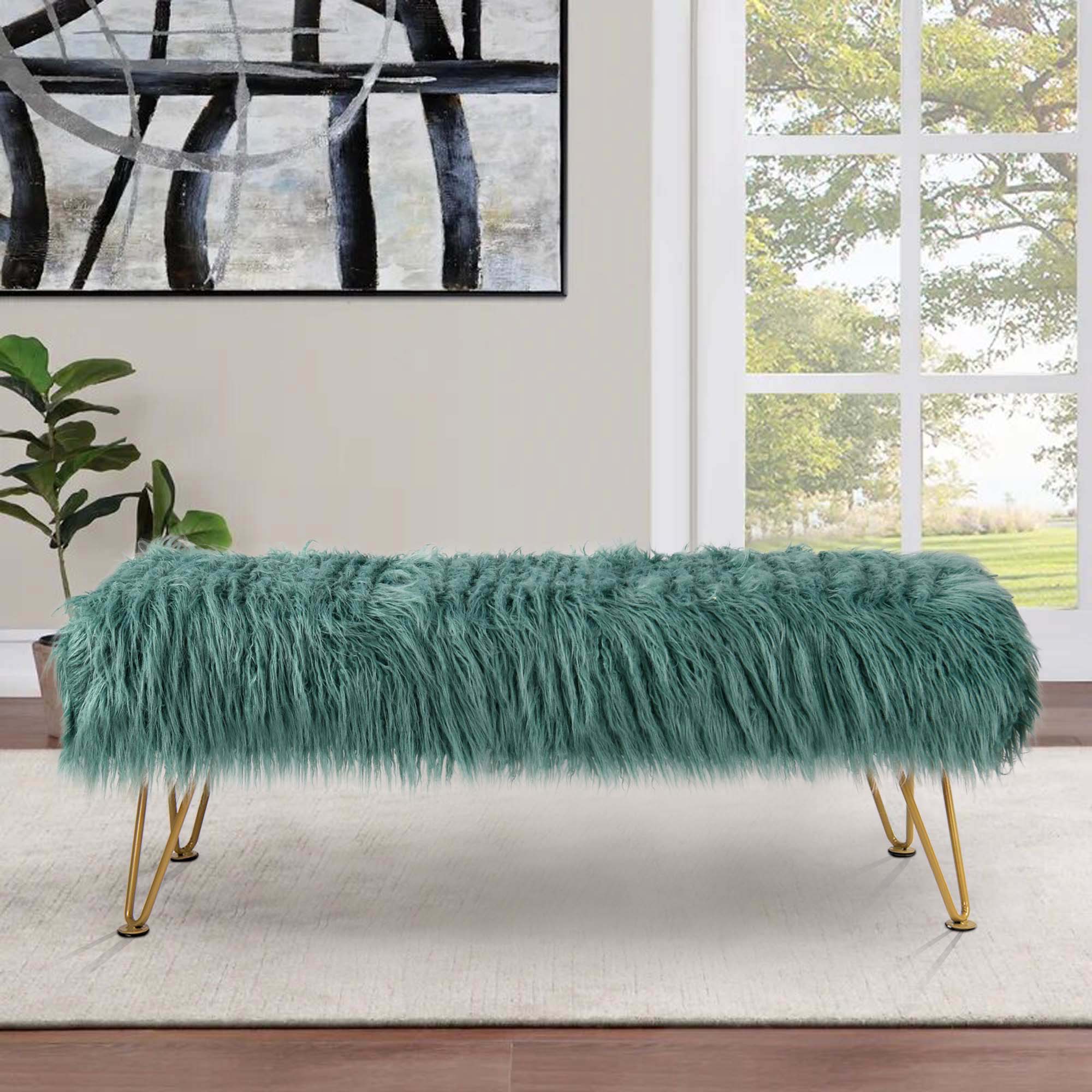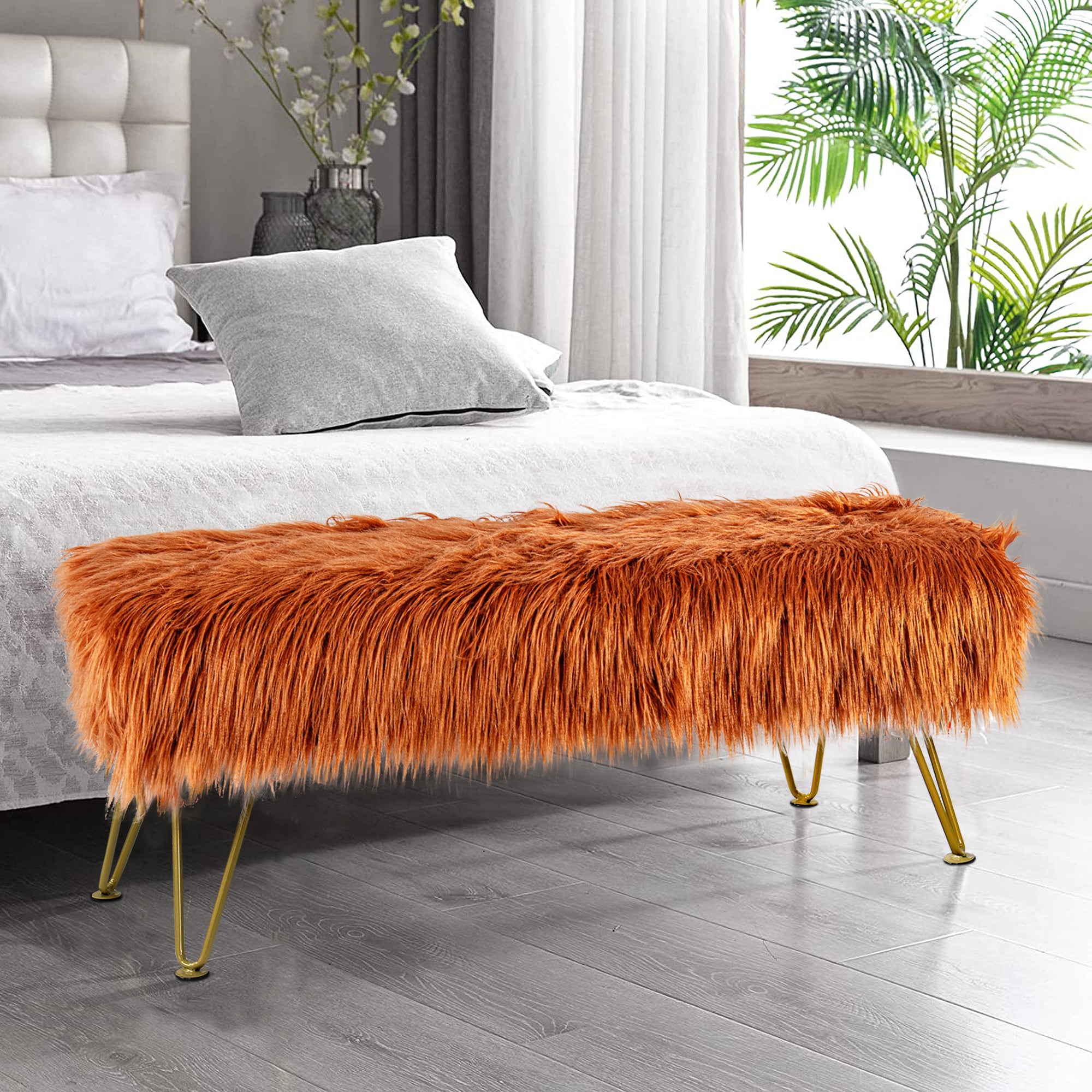 - UPSCALE FAUX FUR BENCH! Mongolian Faux Fur benches are classy, upscale, and make an amazing upgrade for coffee tables, kids tables, shoe benches, or a little extra seating! This functional decor piece is made for luxurious comfort. Put your feet up after a long day and descend into pure relaxation. Faux fur benches create the perfect balance between elegance and practicality.