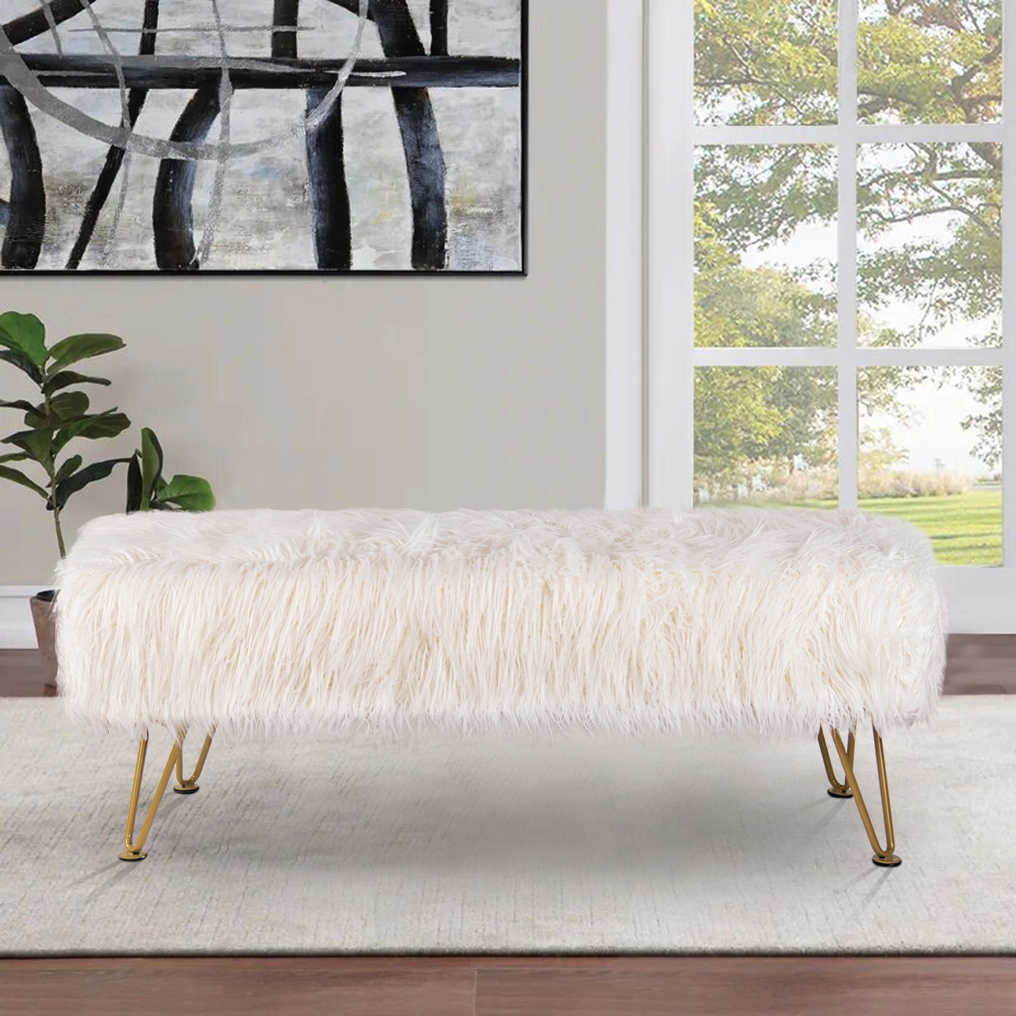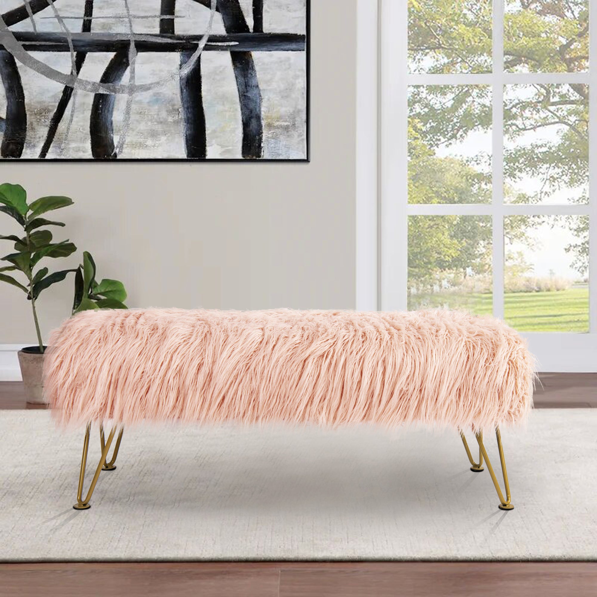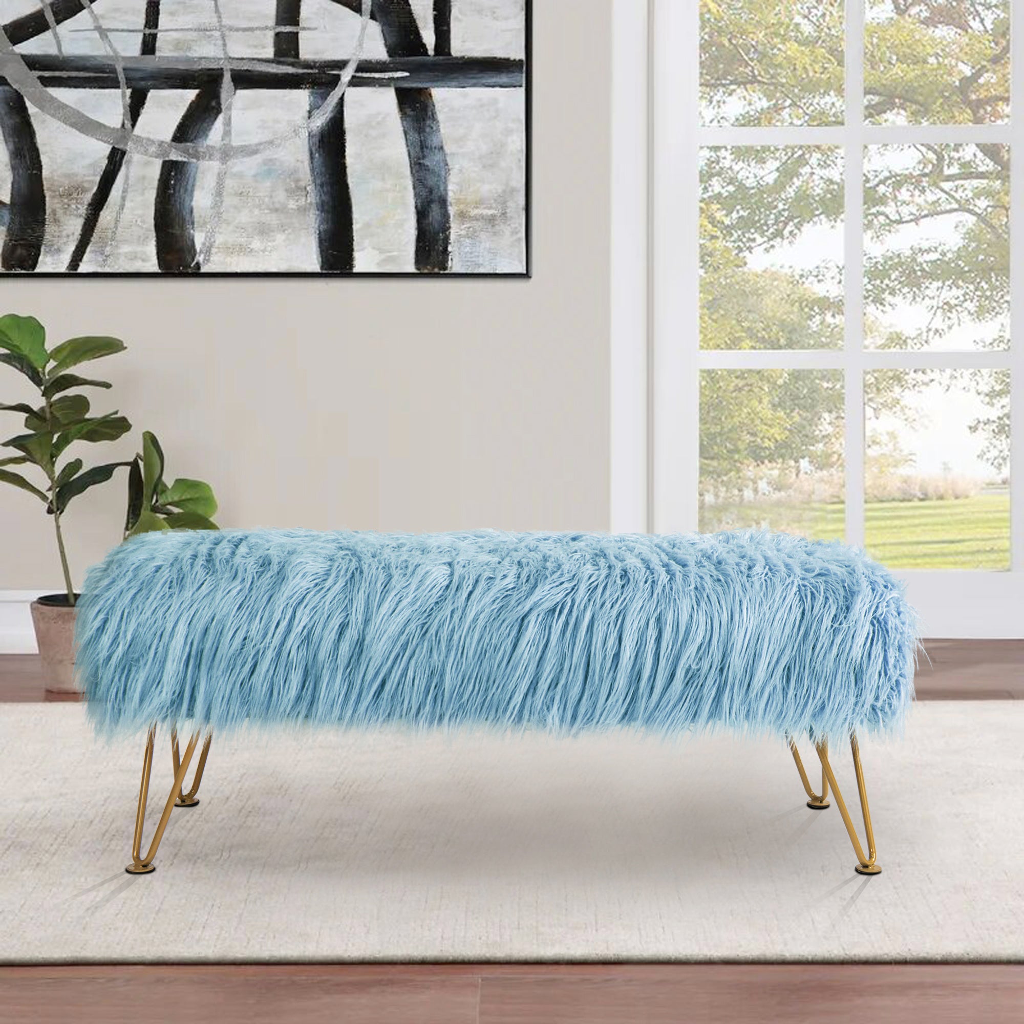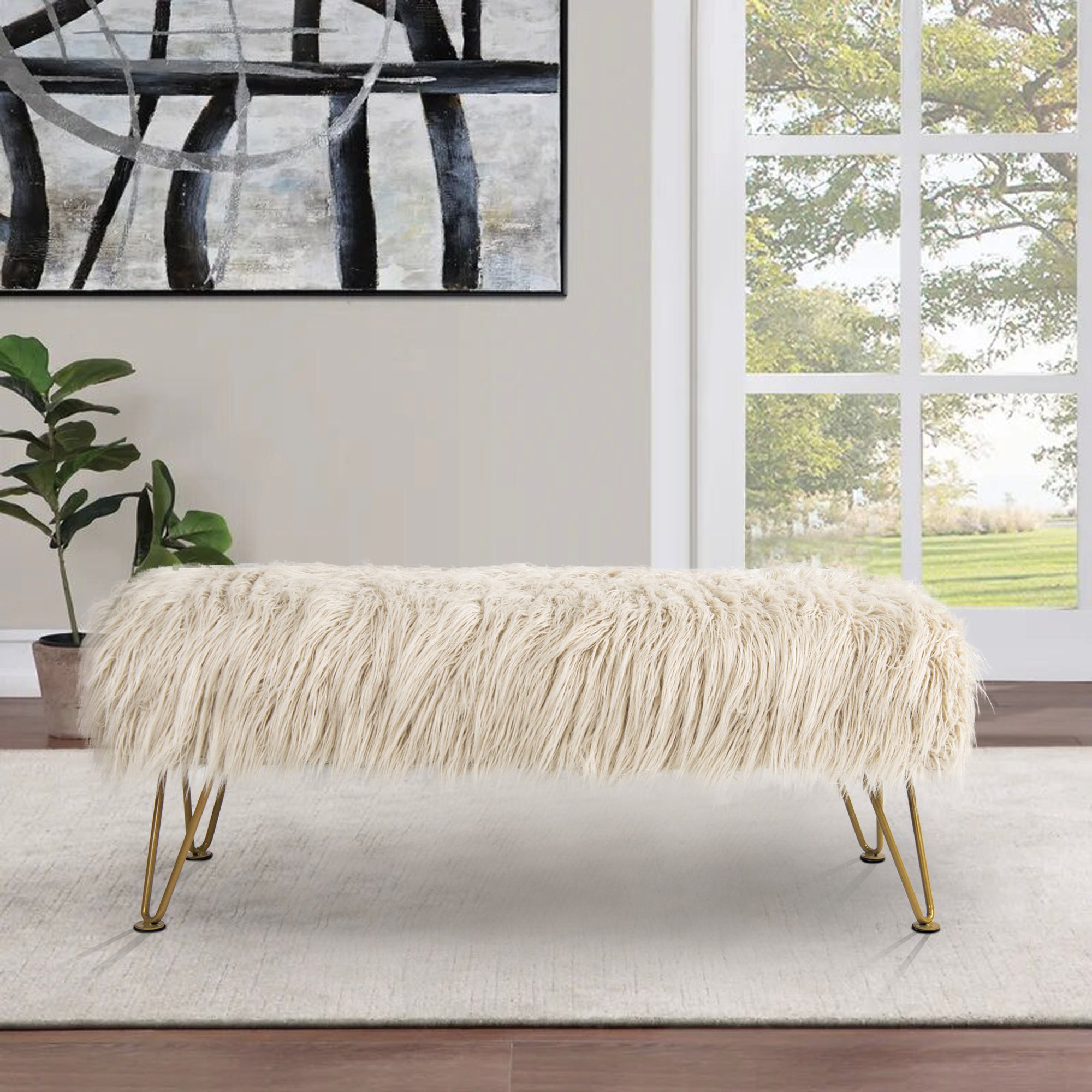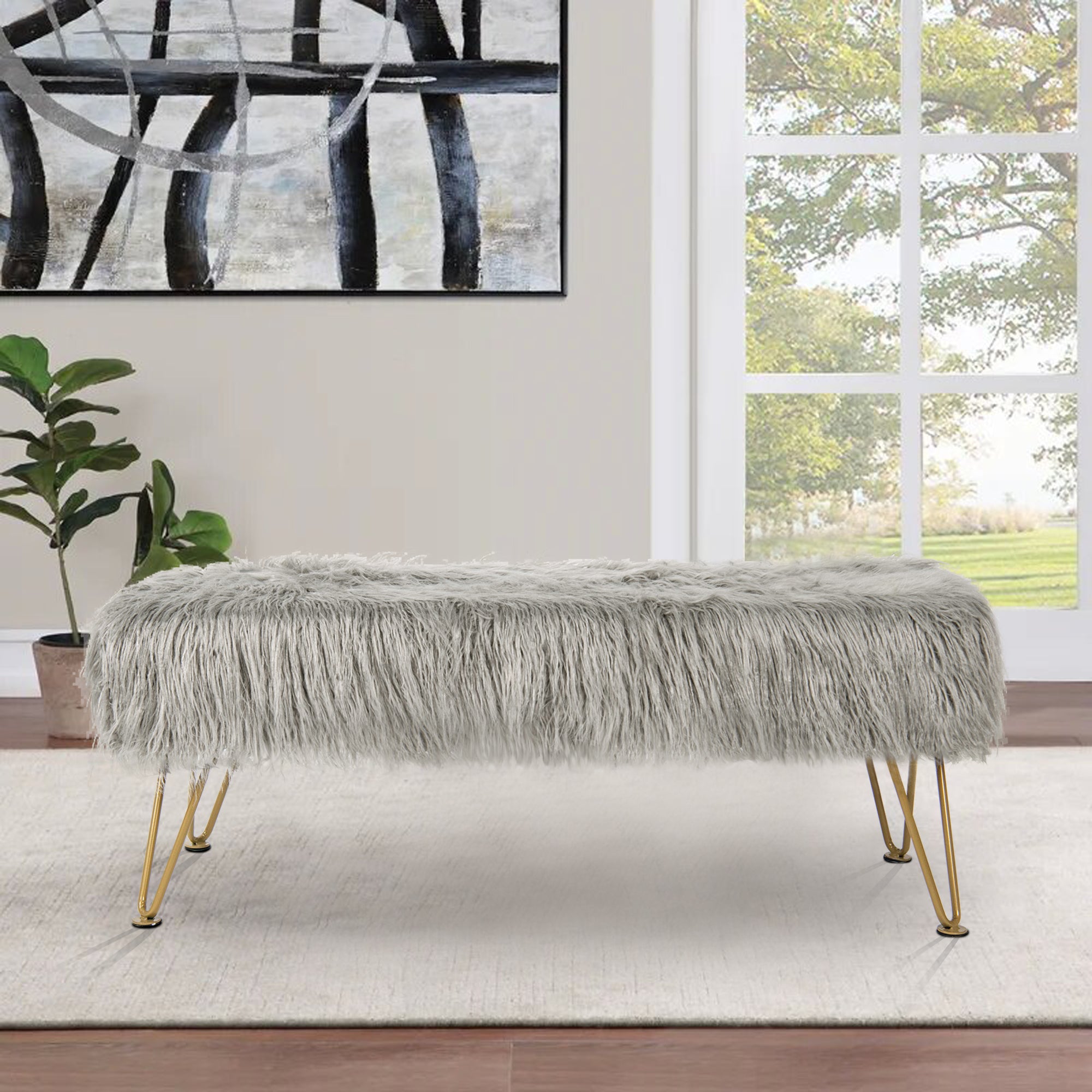 - UPSCALE FAUX FUR BENCH! Mongolian Faux Fur benches are classy, upscale, and make an amazing upgrade for coffee tables, kids tables, shoe benches, or a little extra seating! This functional decor piece is made for luxurious comfort. Put your feet up after a long day and descend into pure relaxation. Faux fur benches create the perfect balance between elegance and practicality.