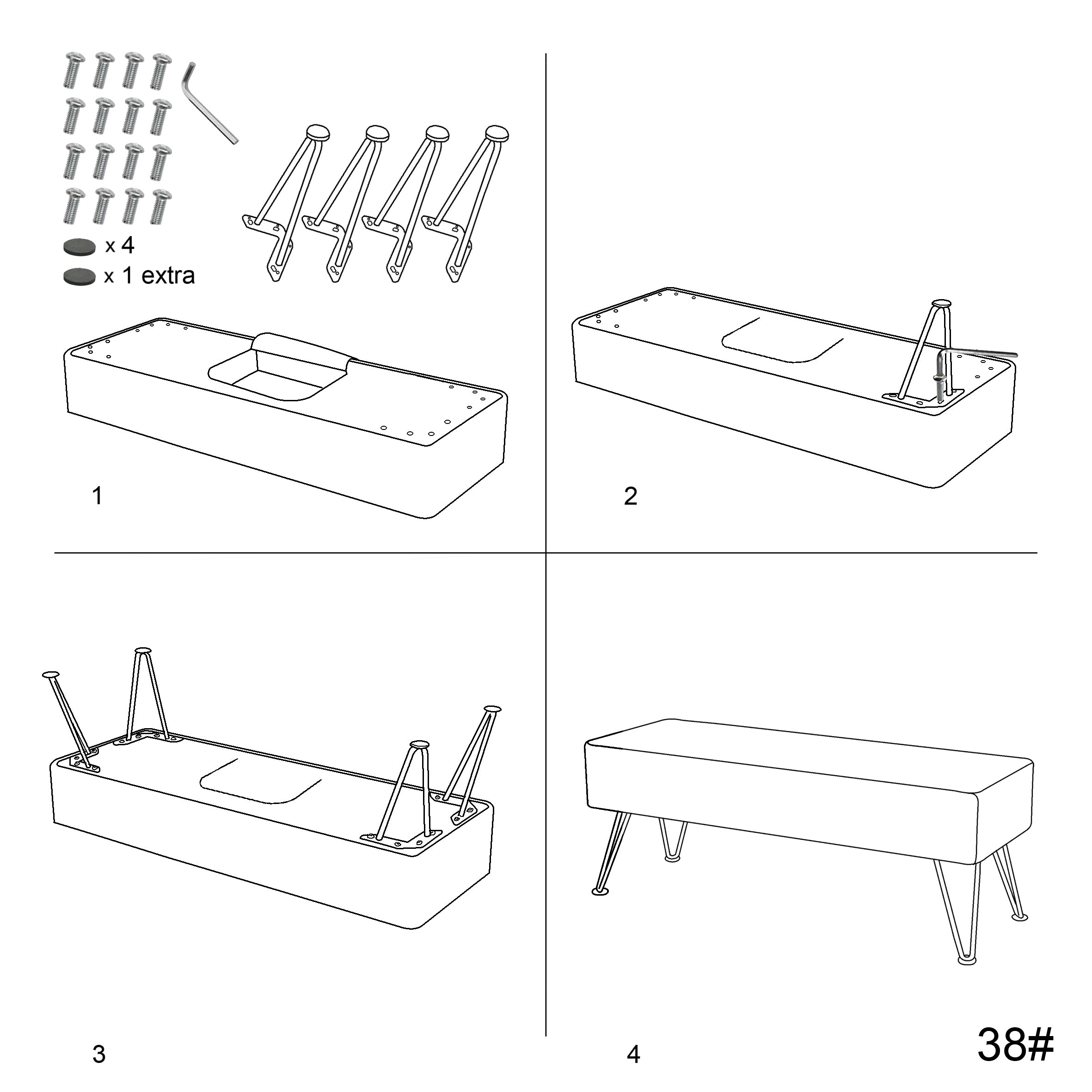 - MINOR ASSEMBLY! Simply screw metal hairpin legs into each corner of the bench with the provided screws and your bench is ready to enjoy. Be prepared with a Phillips screwdriver. Hairpin legs and screws arrive in the hidden zipper compartment under the seat. Designed and manufactured by Home Soft Things, the trusted source for stylish textile goods and furniture.