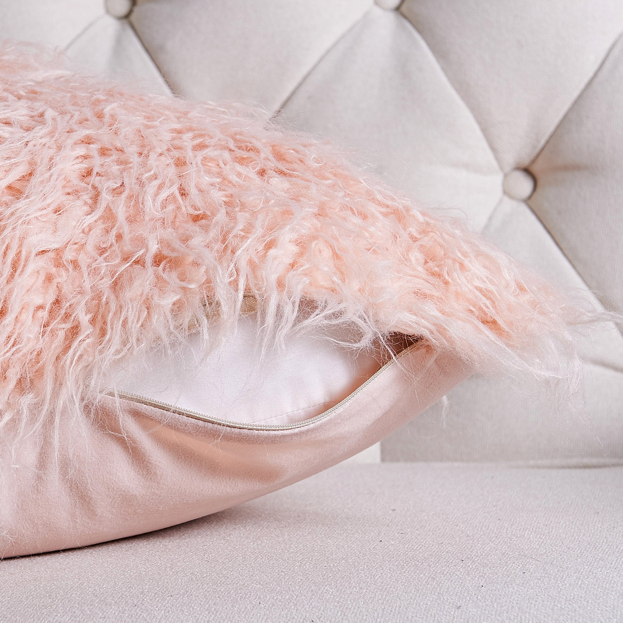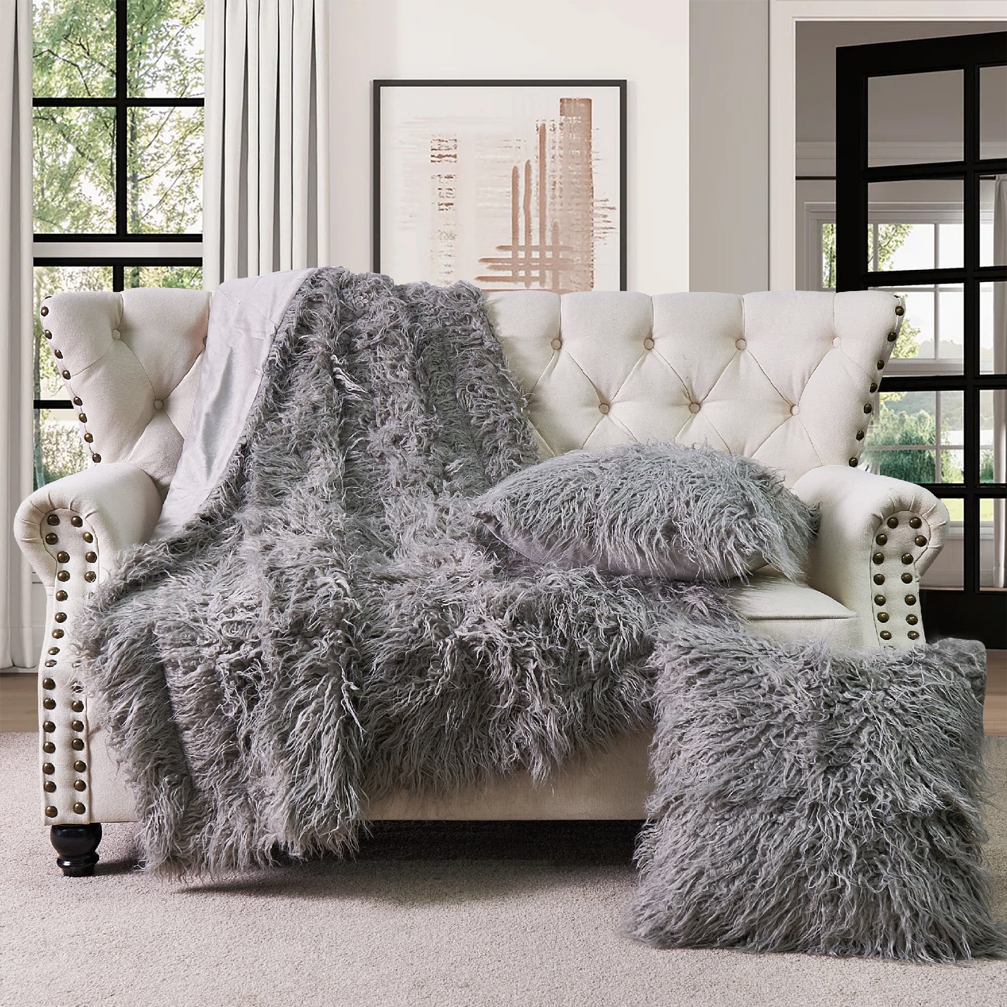Mongolian Faux Fur Throw Blanket & Pillow Covers Set (50"x60"/20"x20")