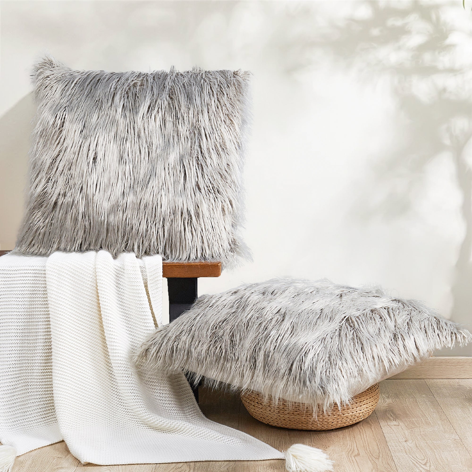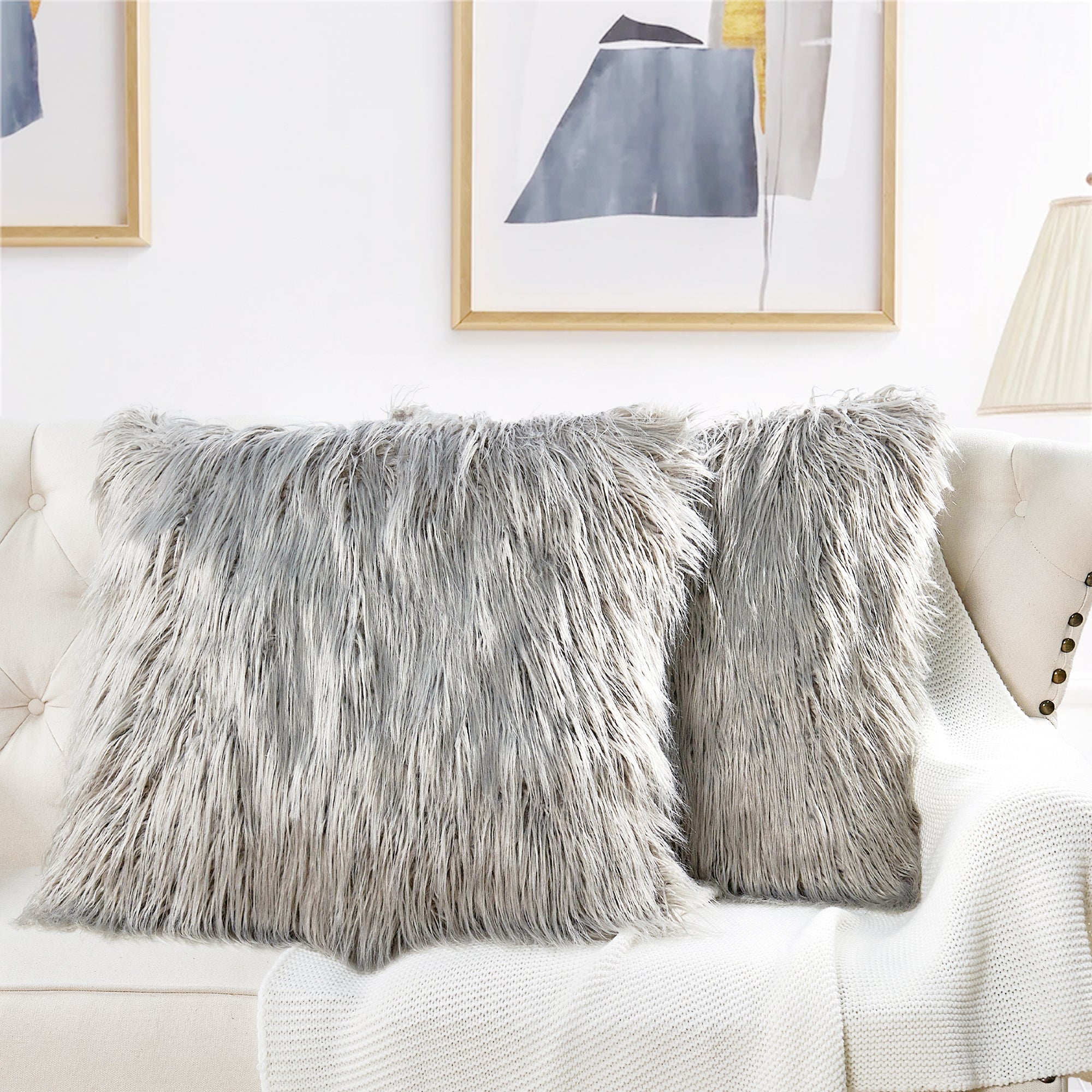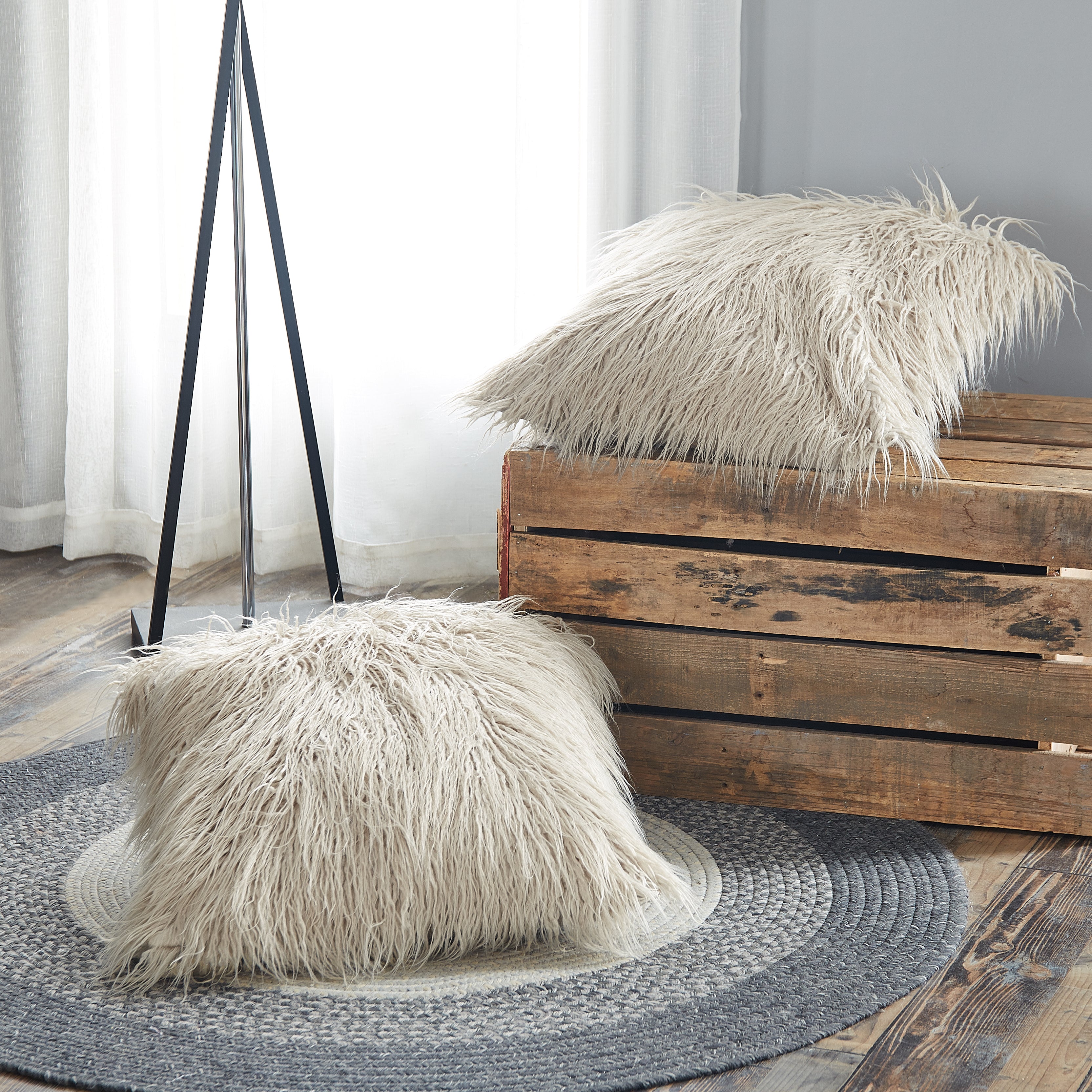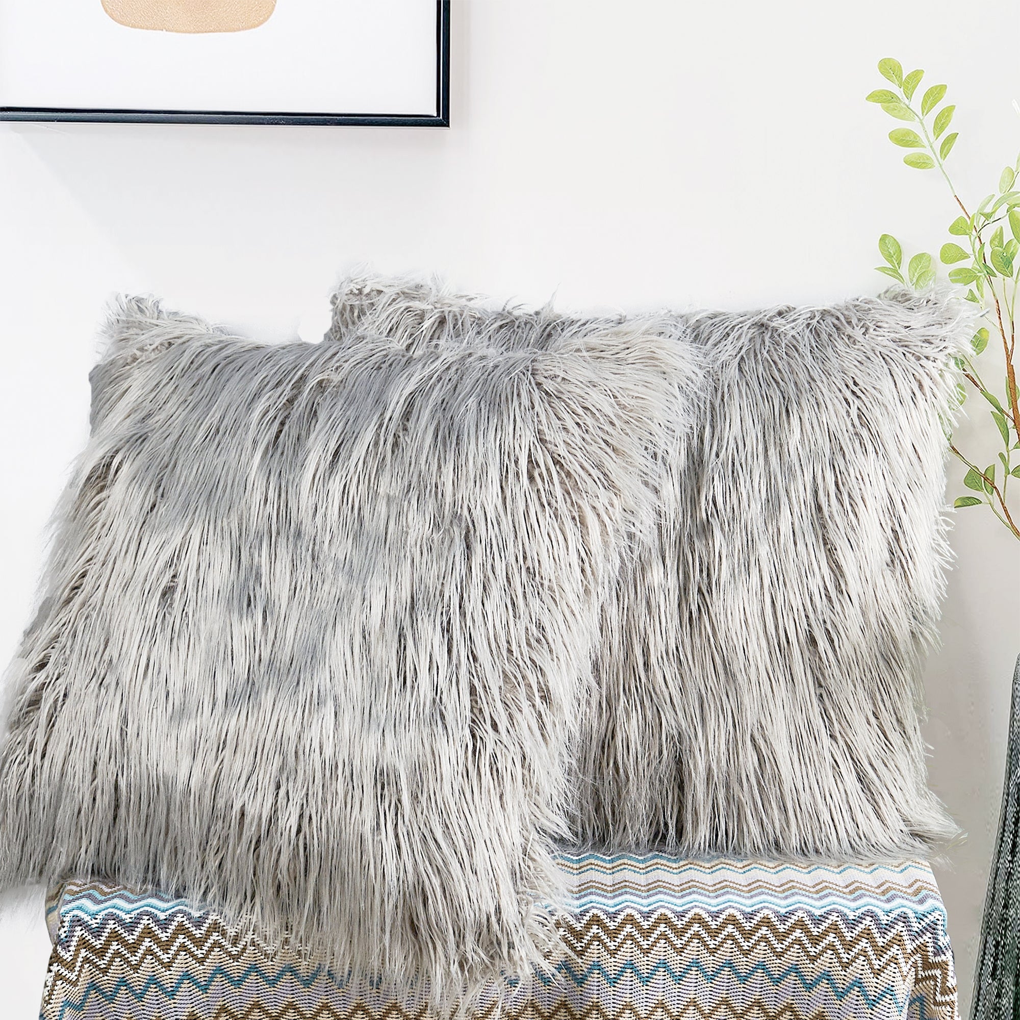 Mongolian Faux Fur 2 Piece Decorative Throw Pillow Covers