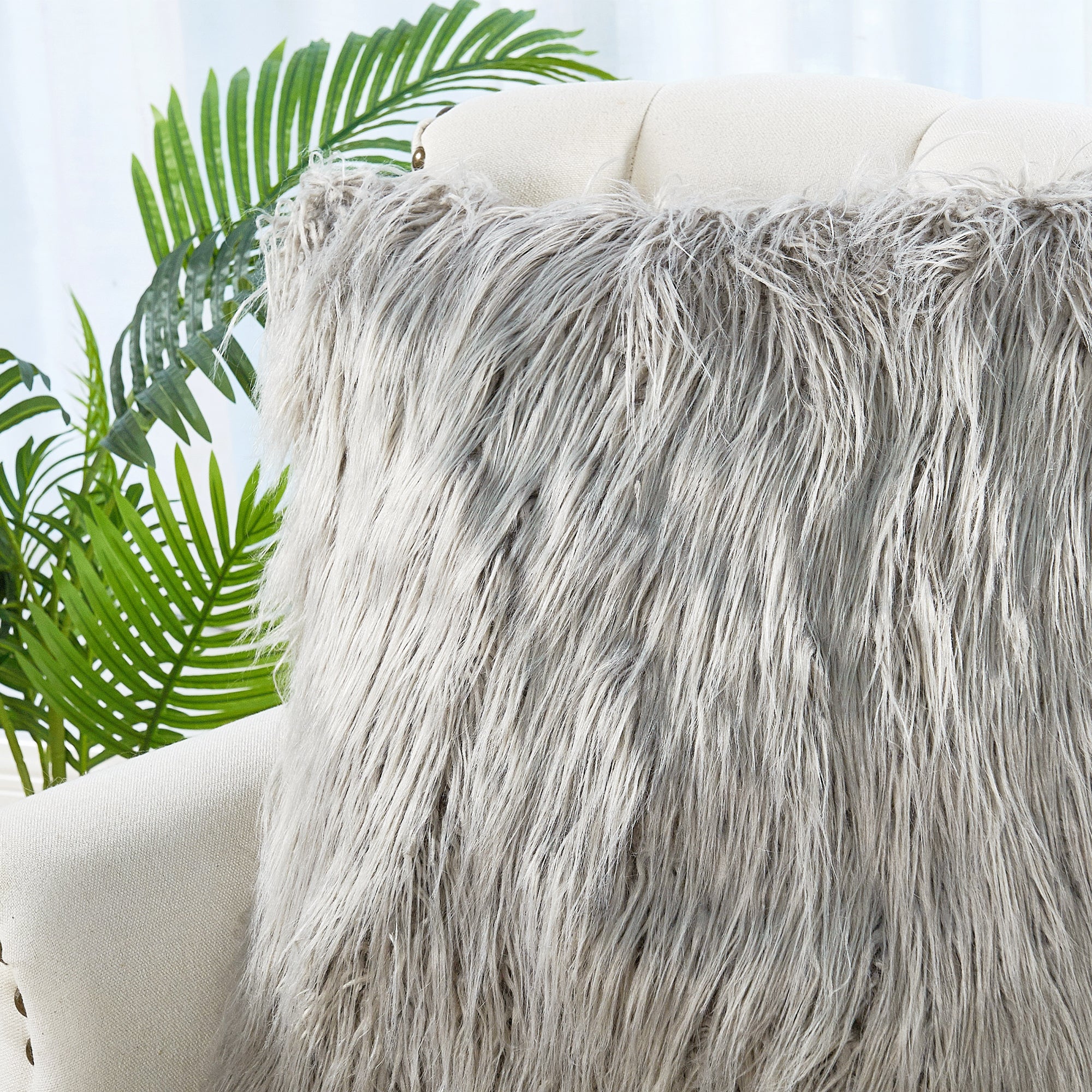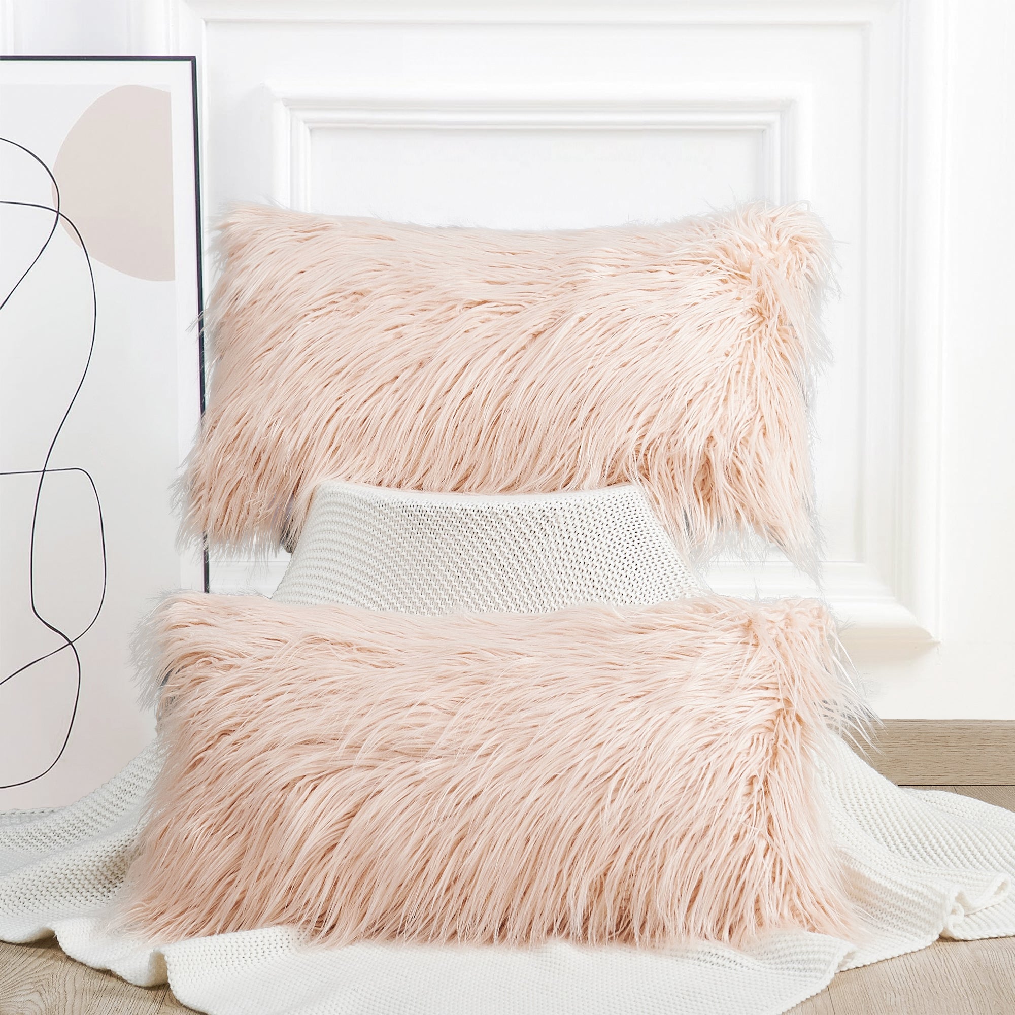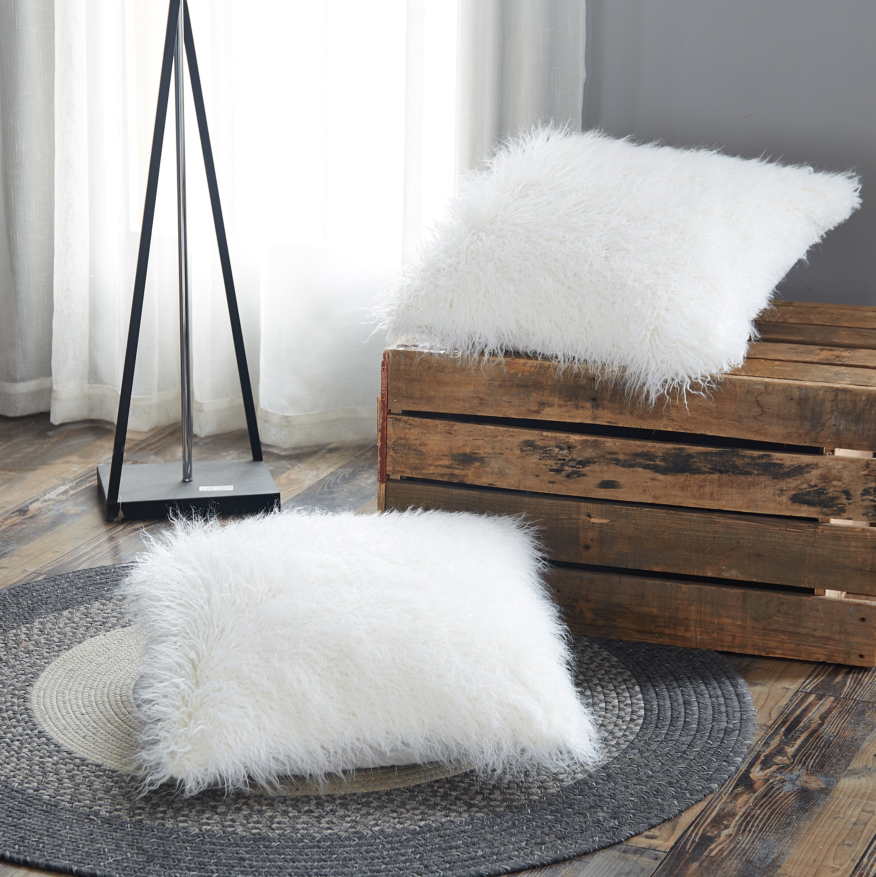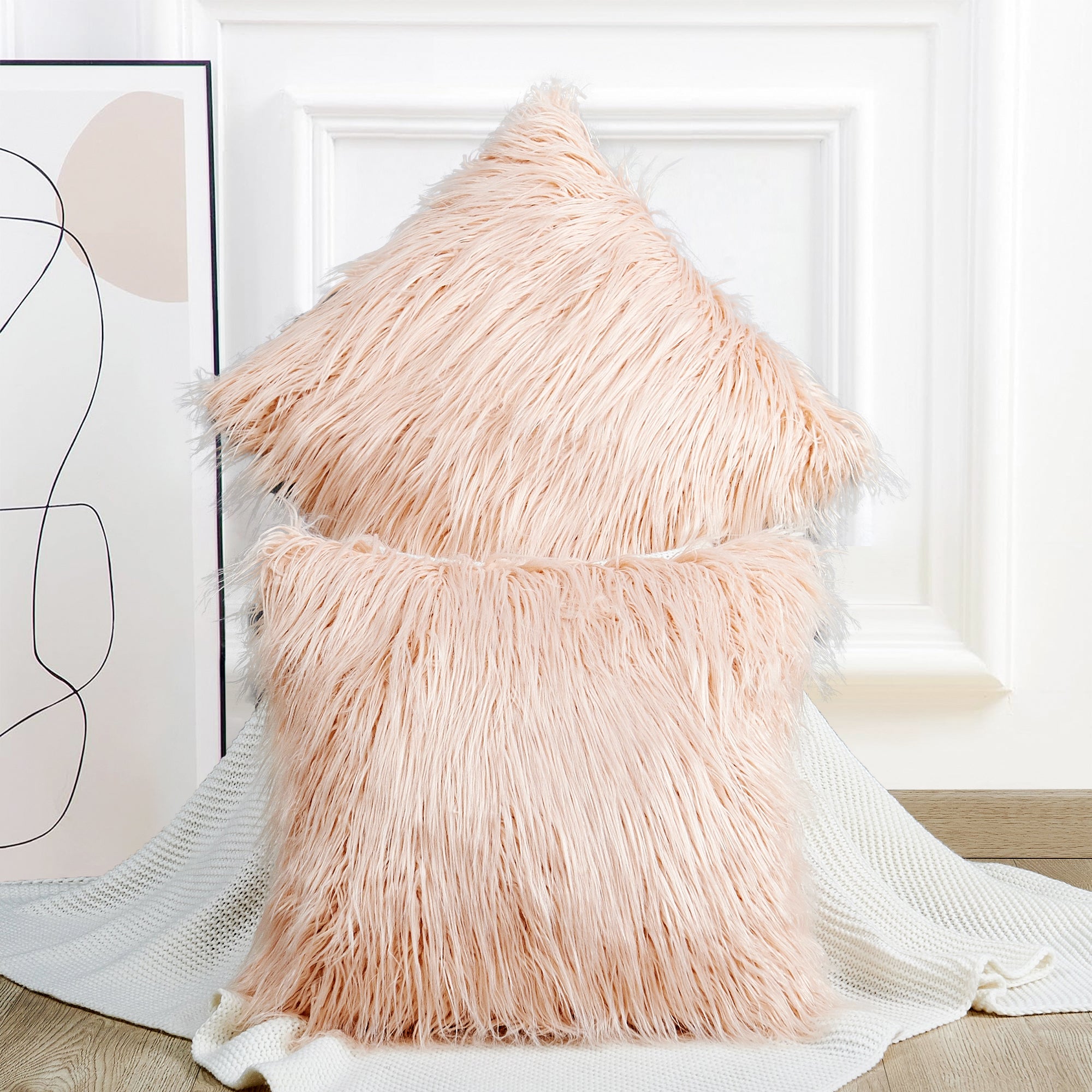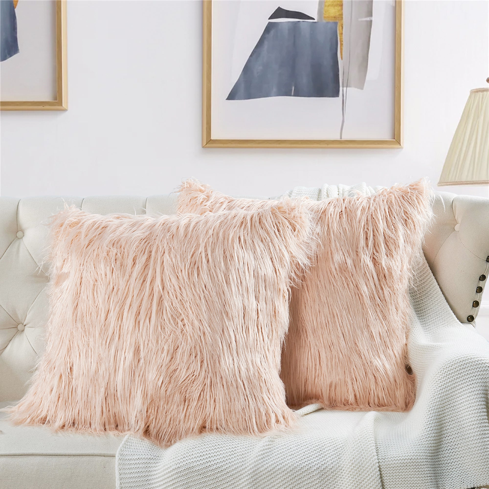 Mongolian Faux Fur 2 Piece Decorative Throw Pillow Covers