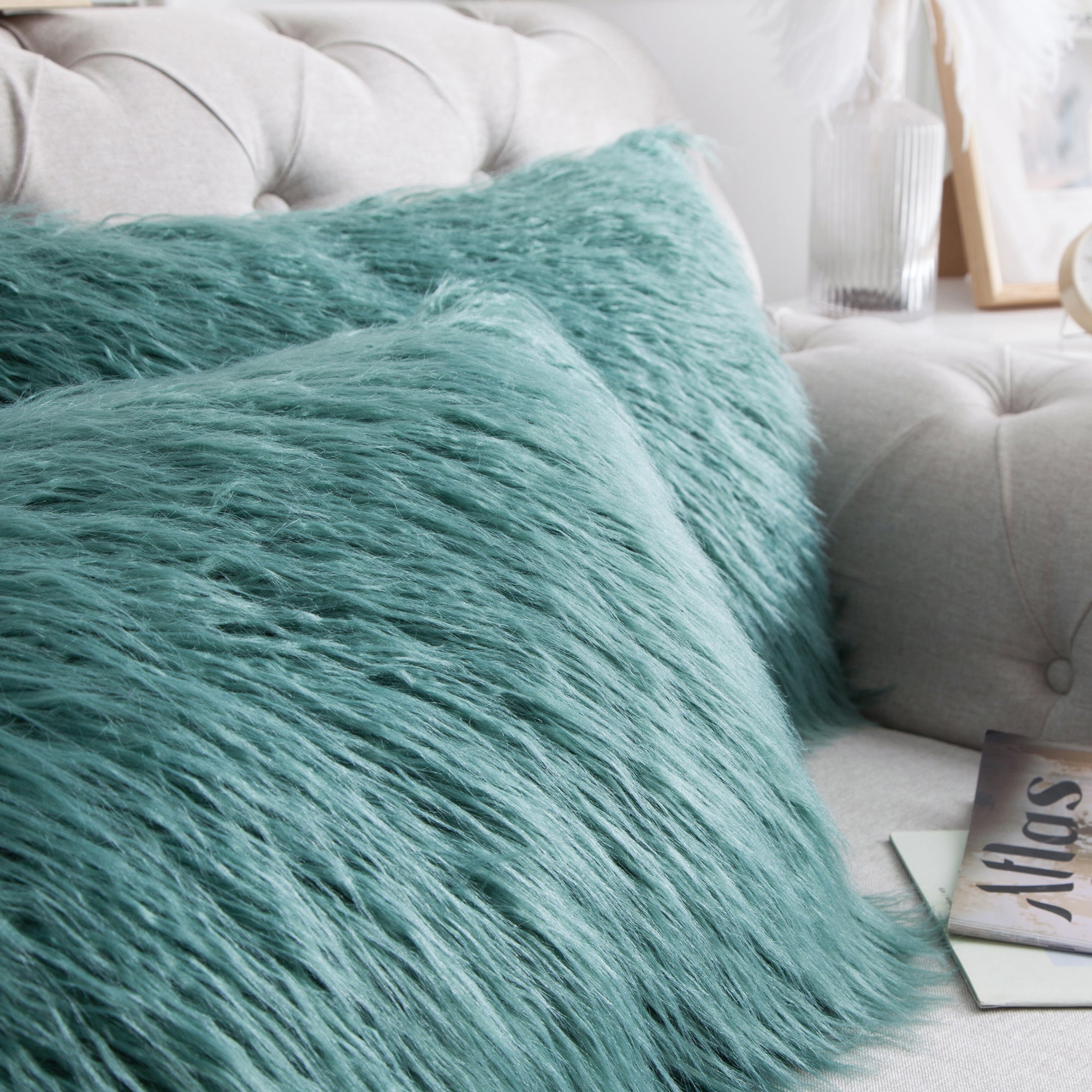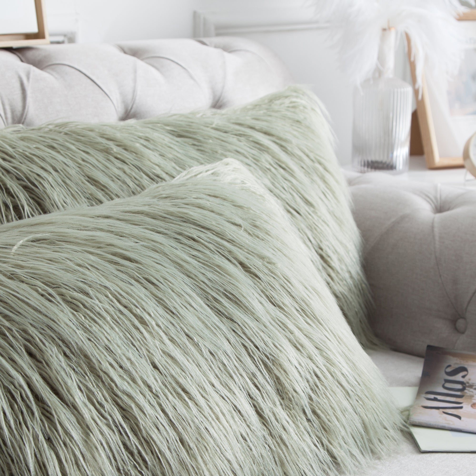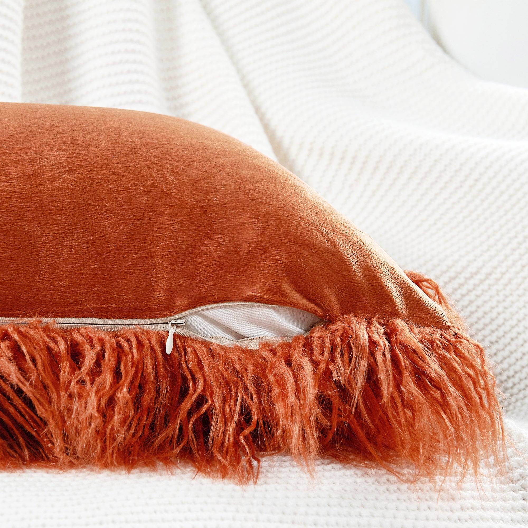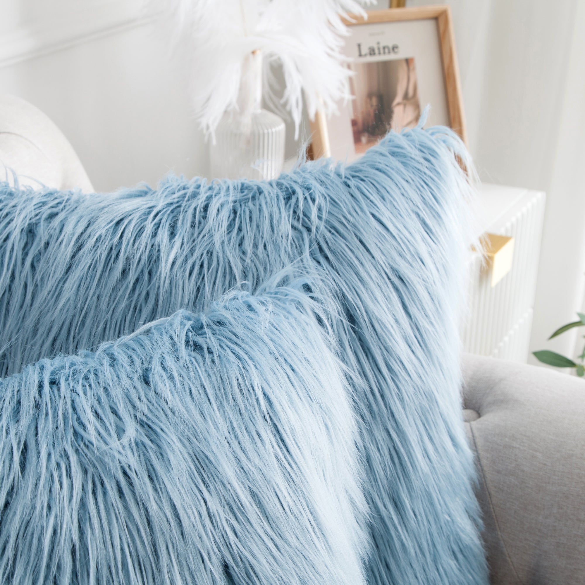 Mongolian Faux Fur 2 Piece Decorative Throw Pillow Covers