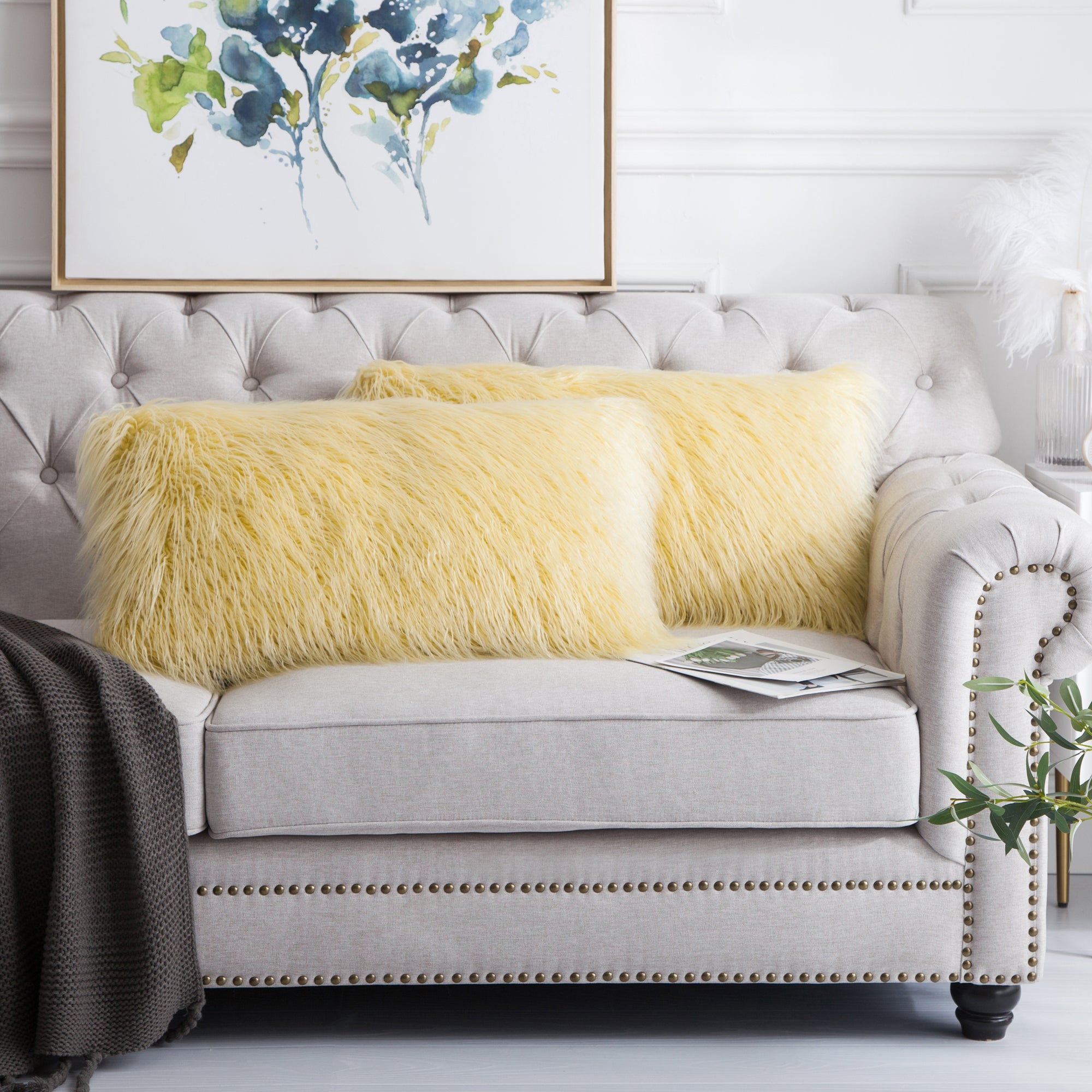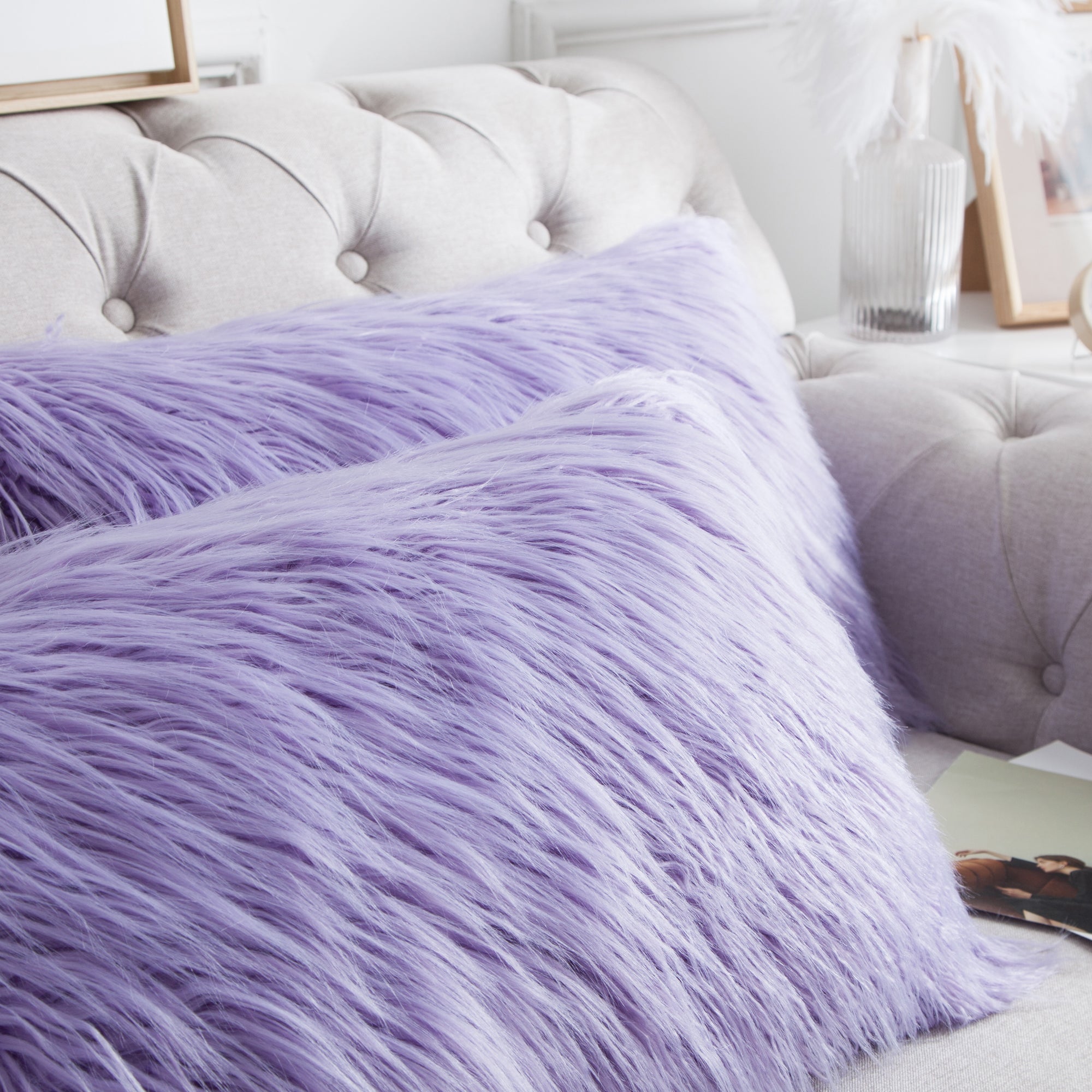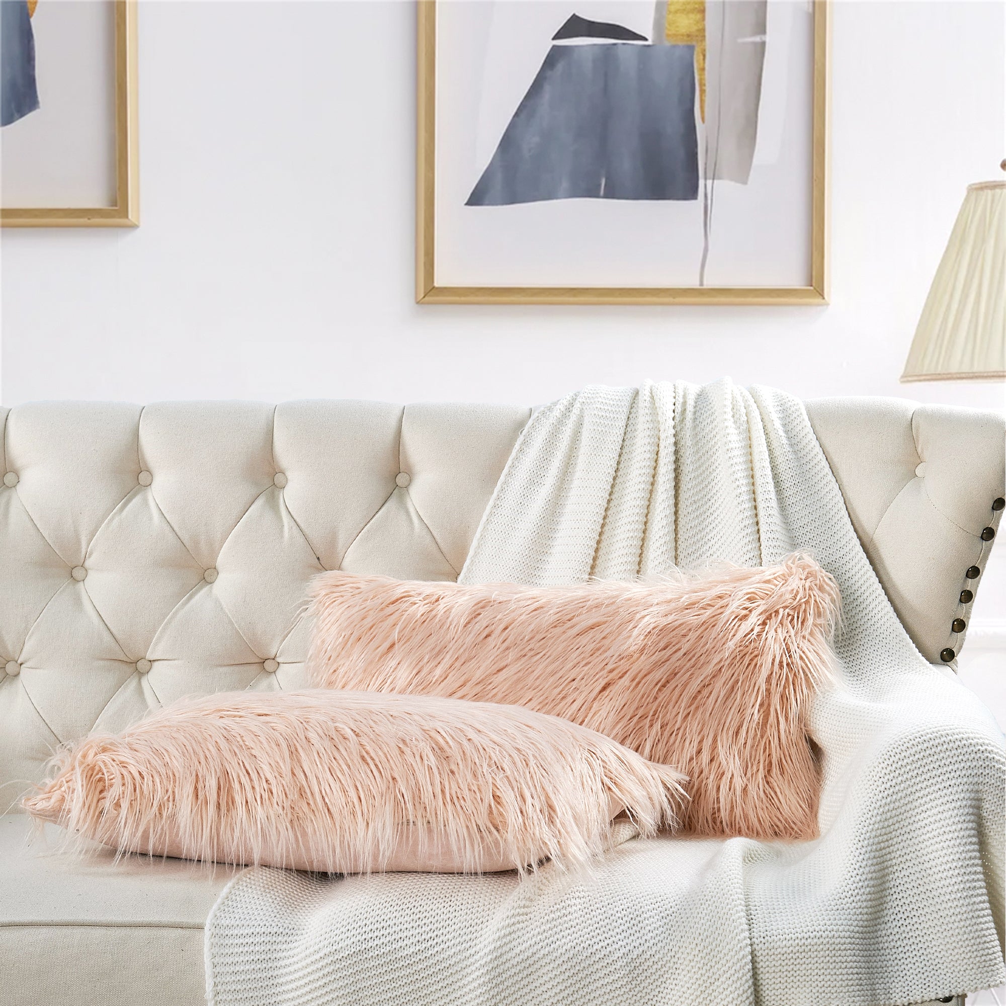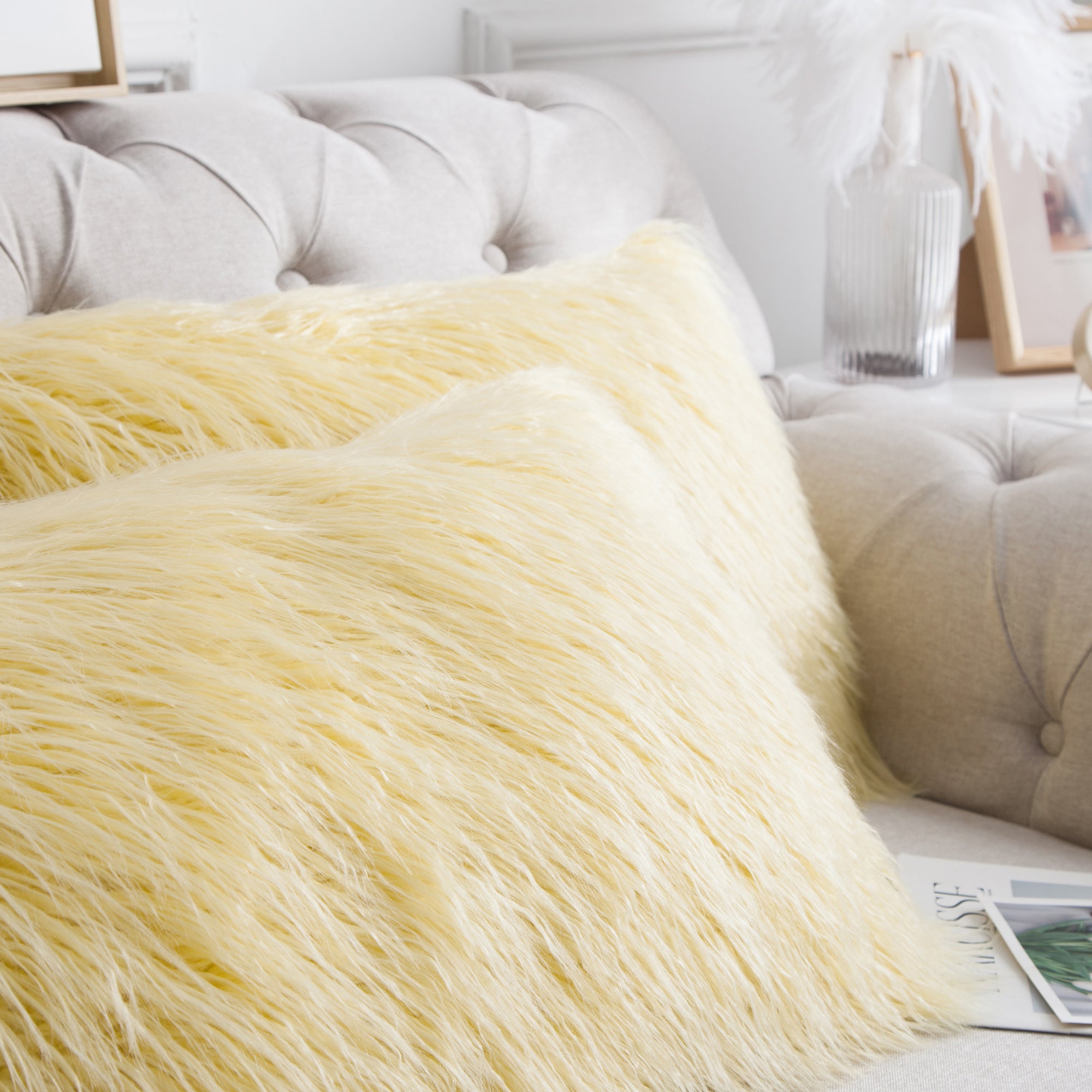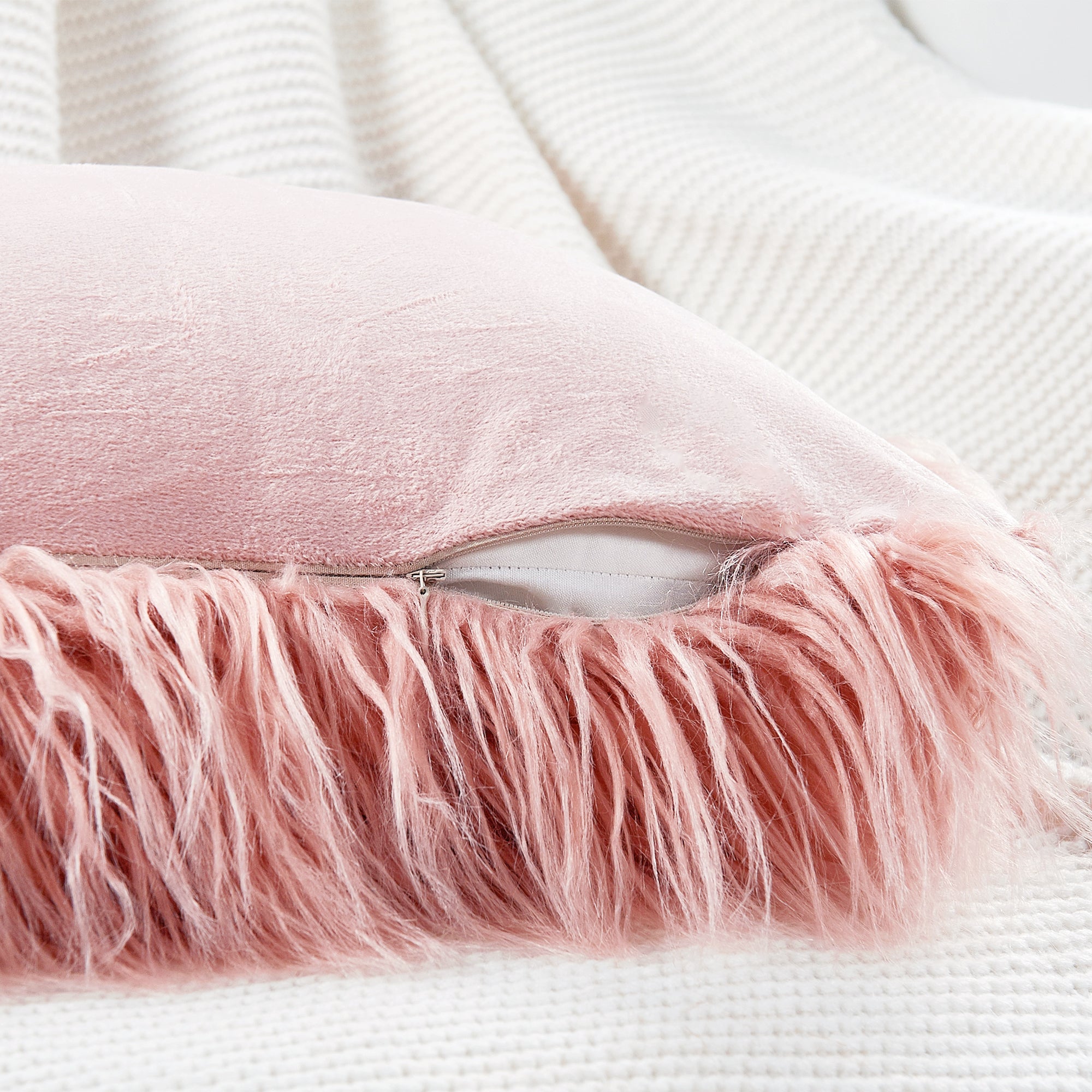 Mongolian Faux Fur 2 Piece Decorative Throw Pillow Covers