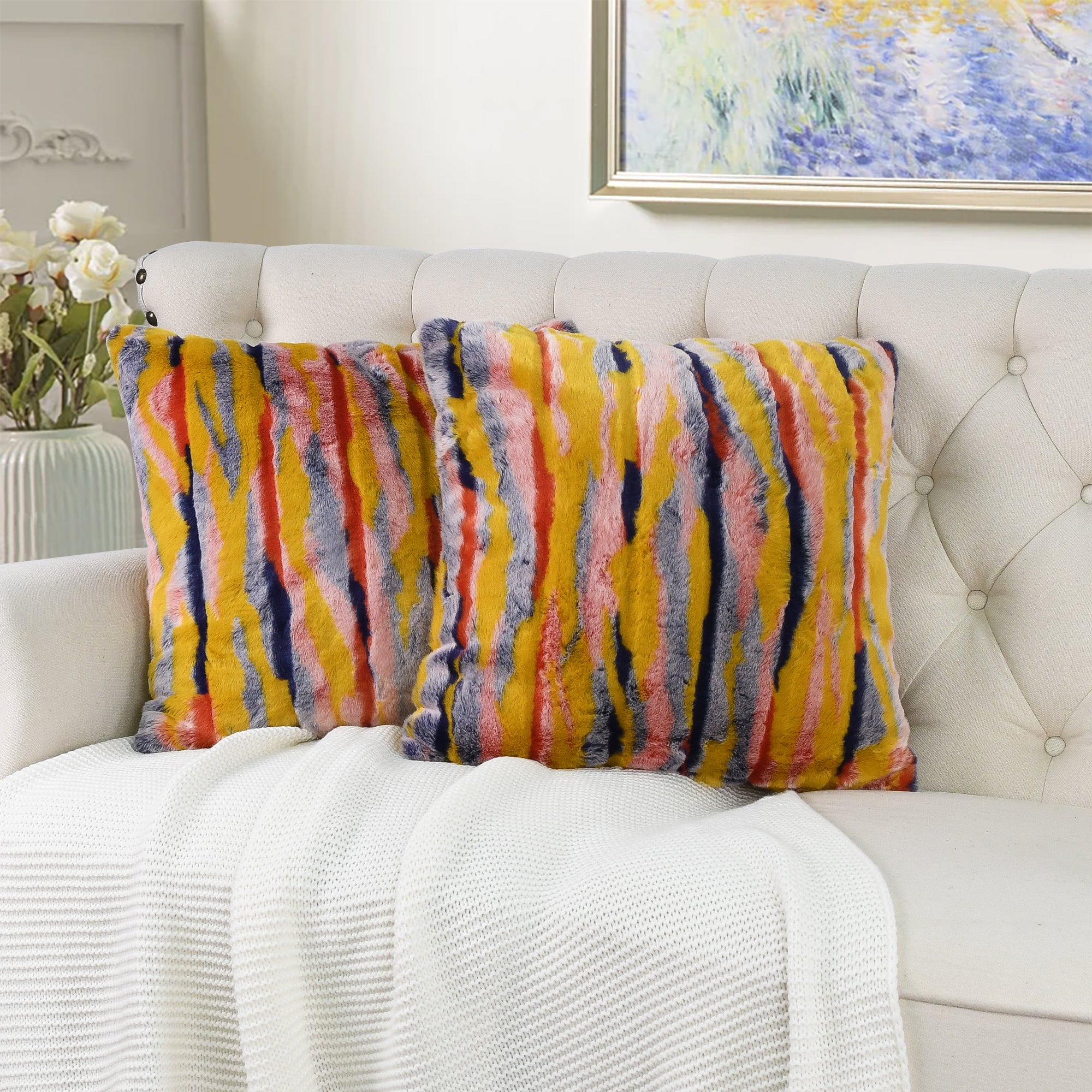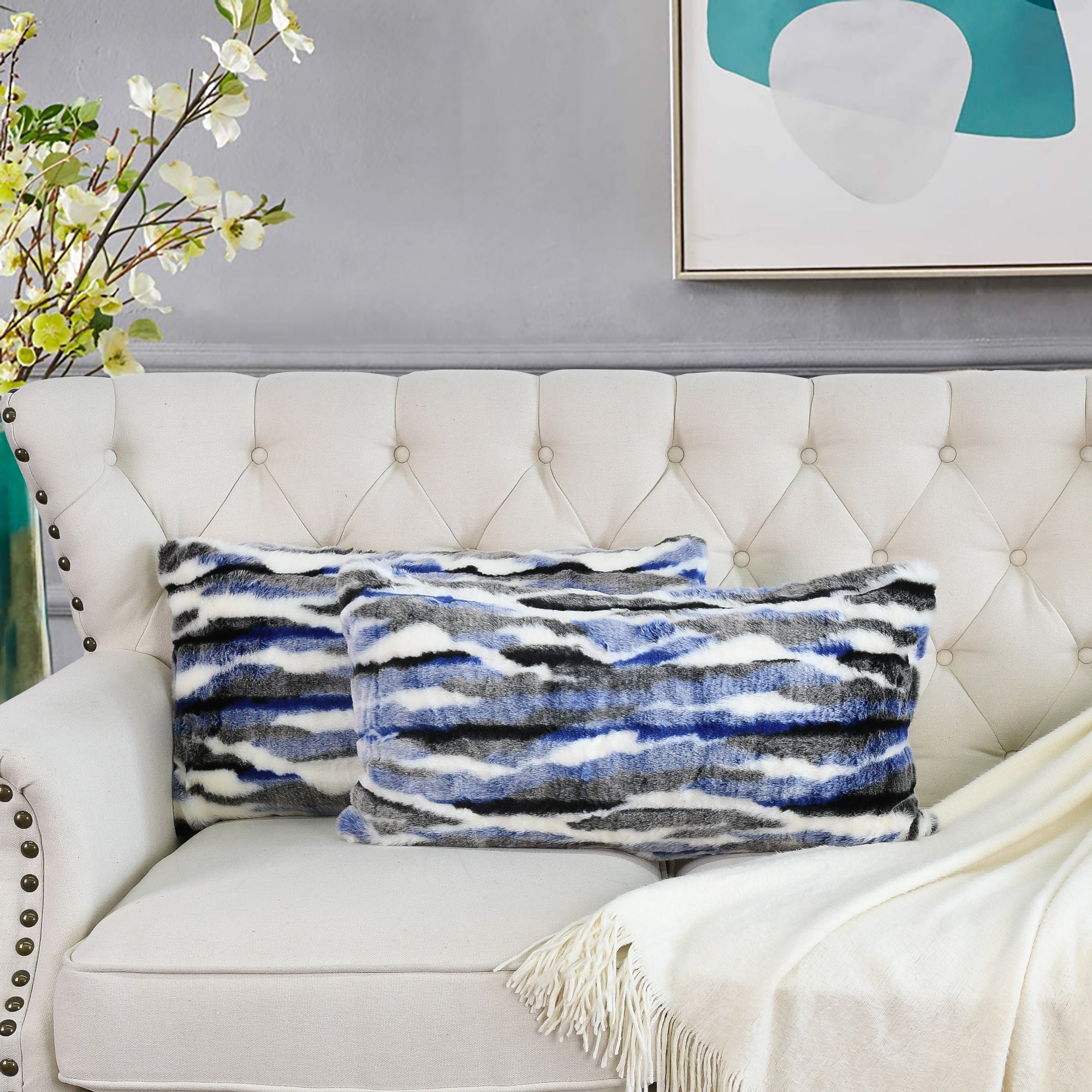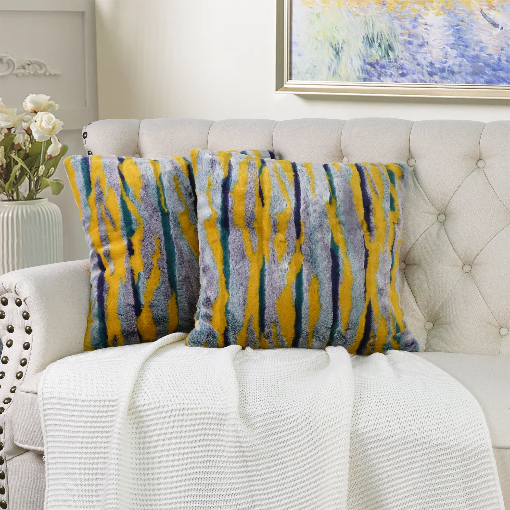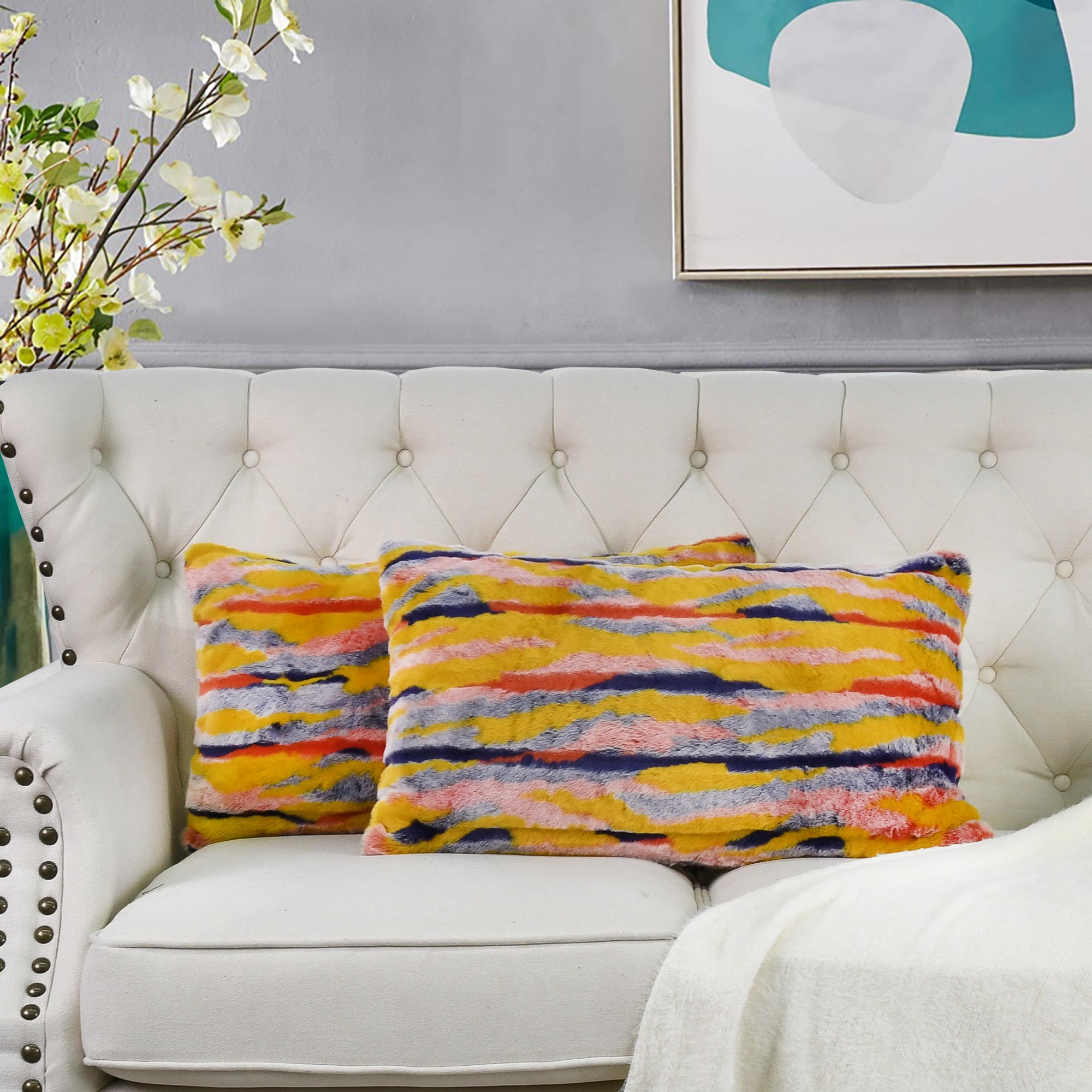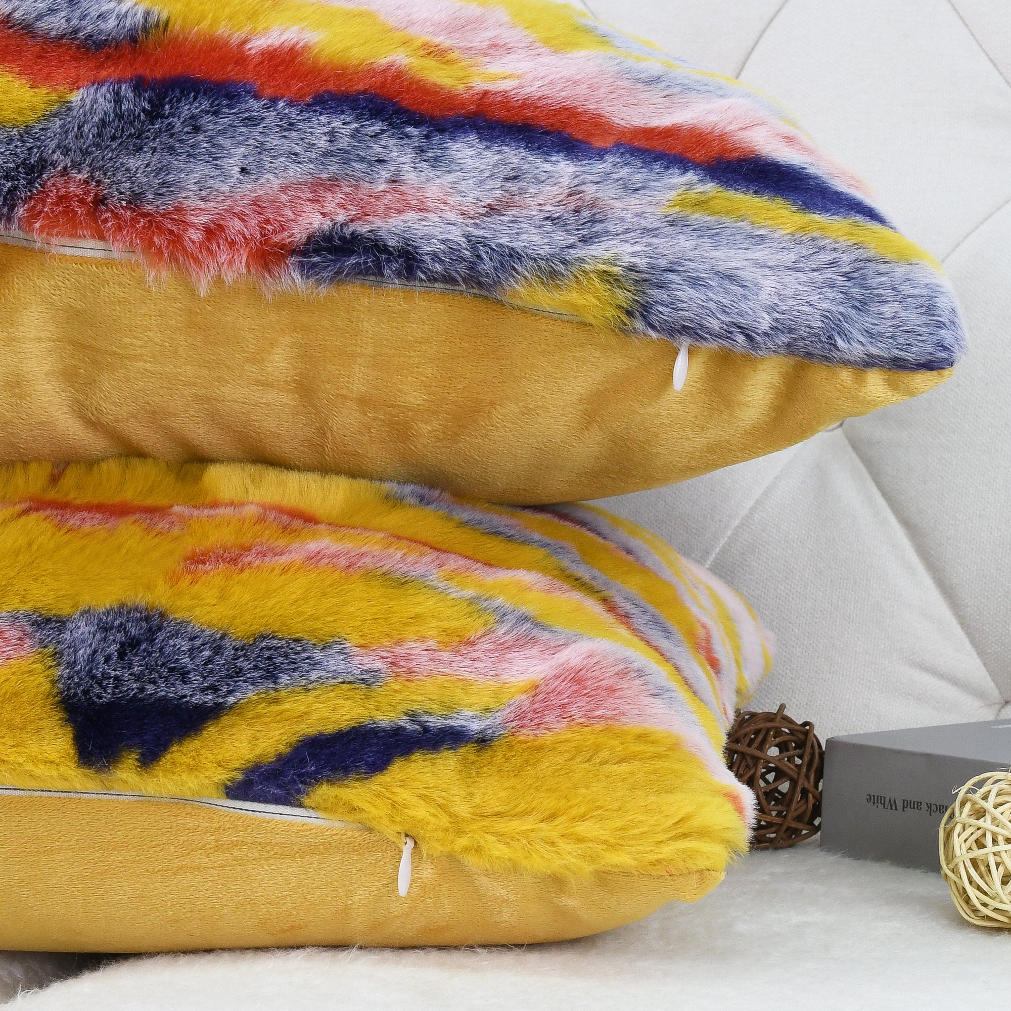 Multi Jacquard Faux Fur 2 Piece Decorative Pillow Covers