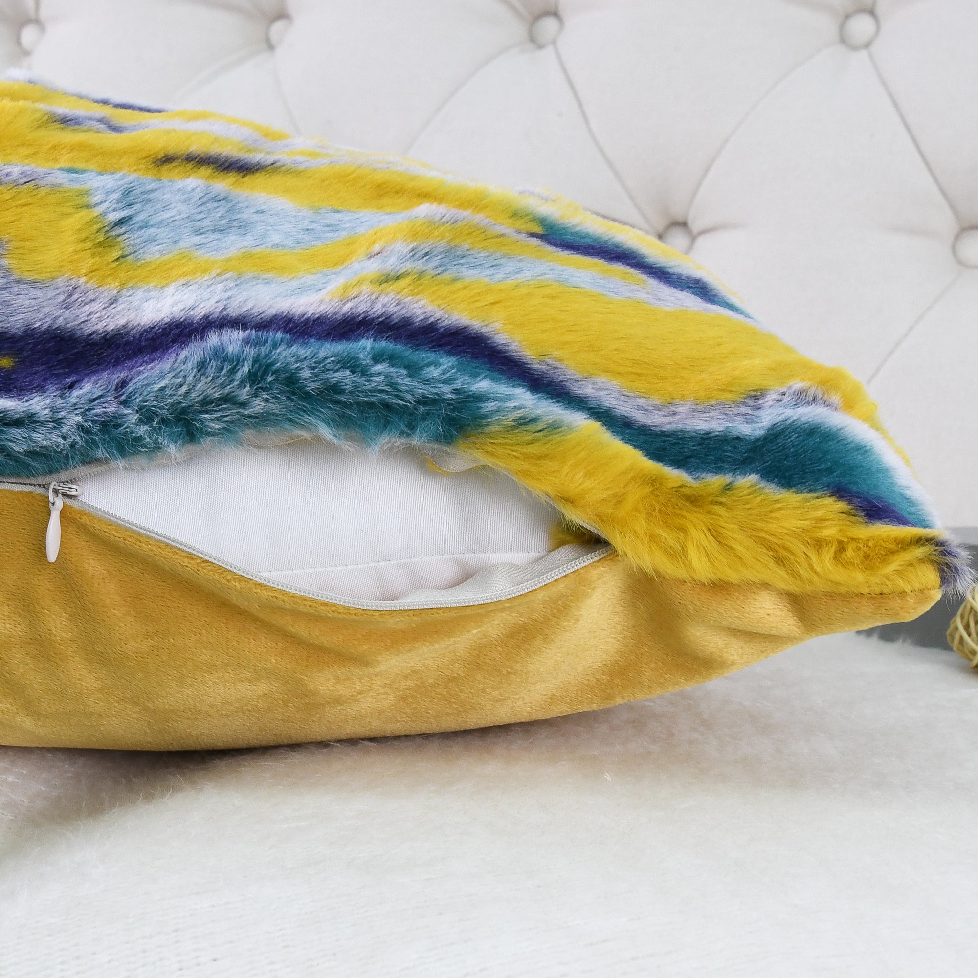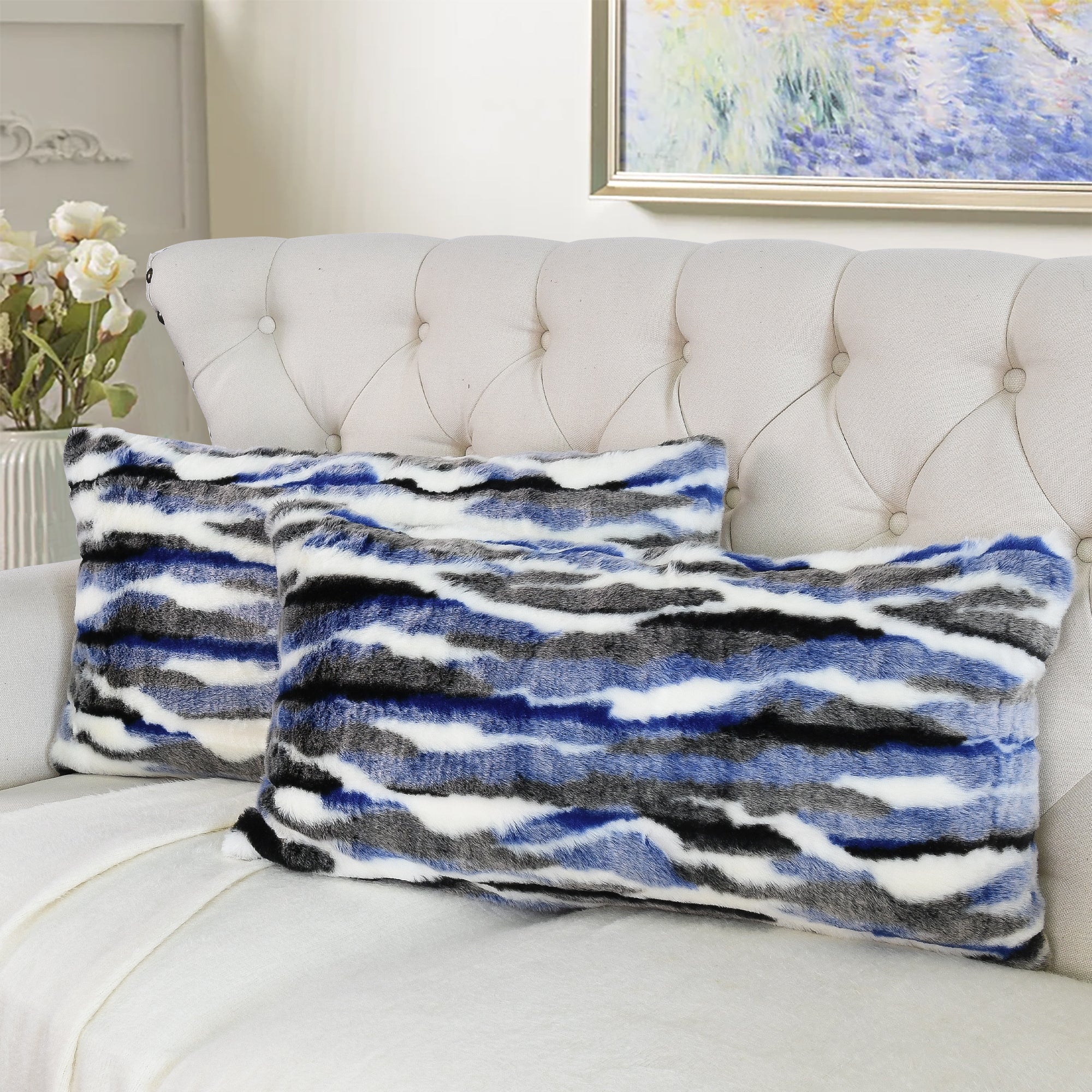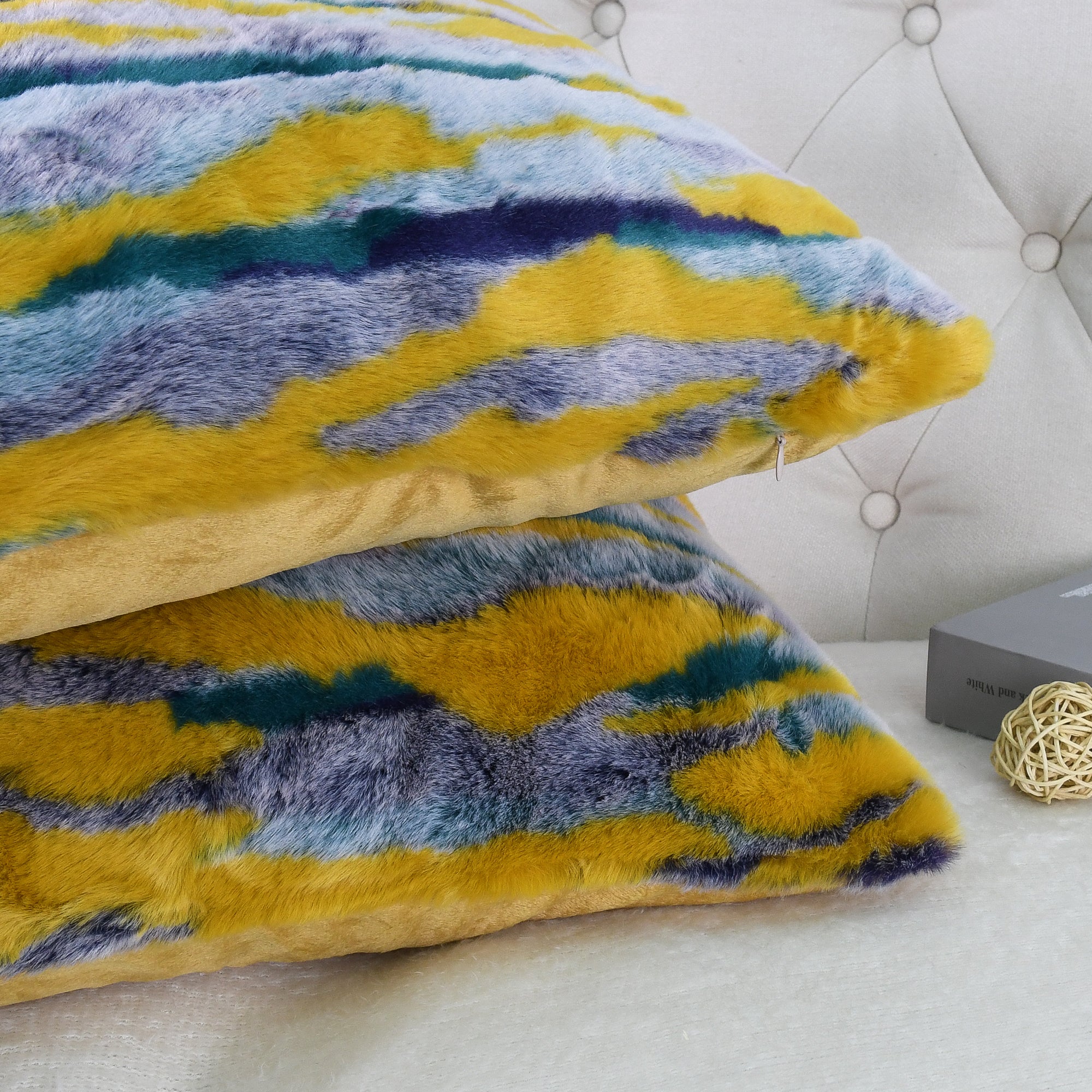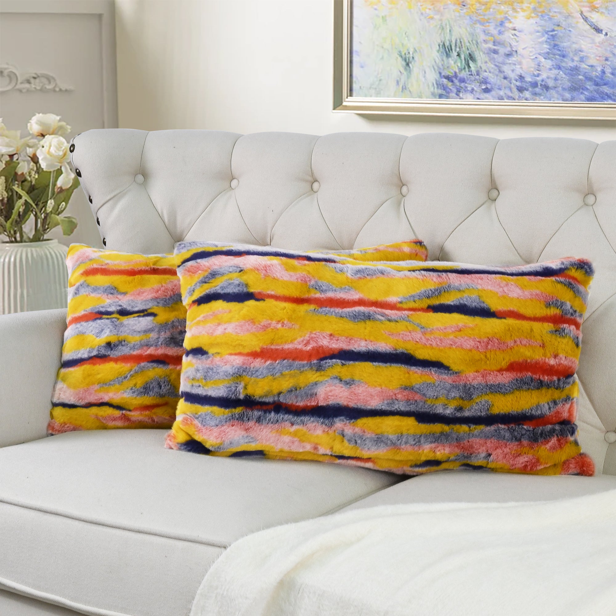 Multi Jacquard Faux Fur 2 Piece Decorative Pillow Covers