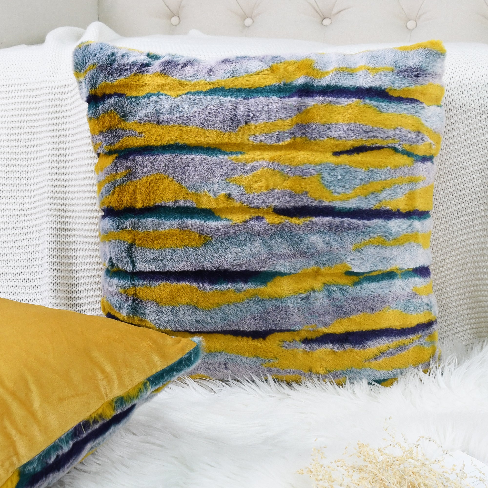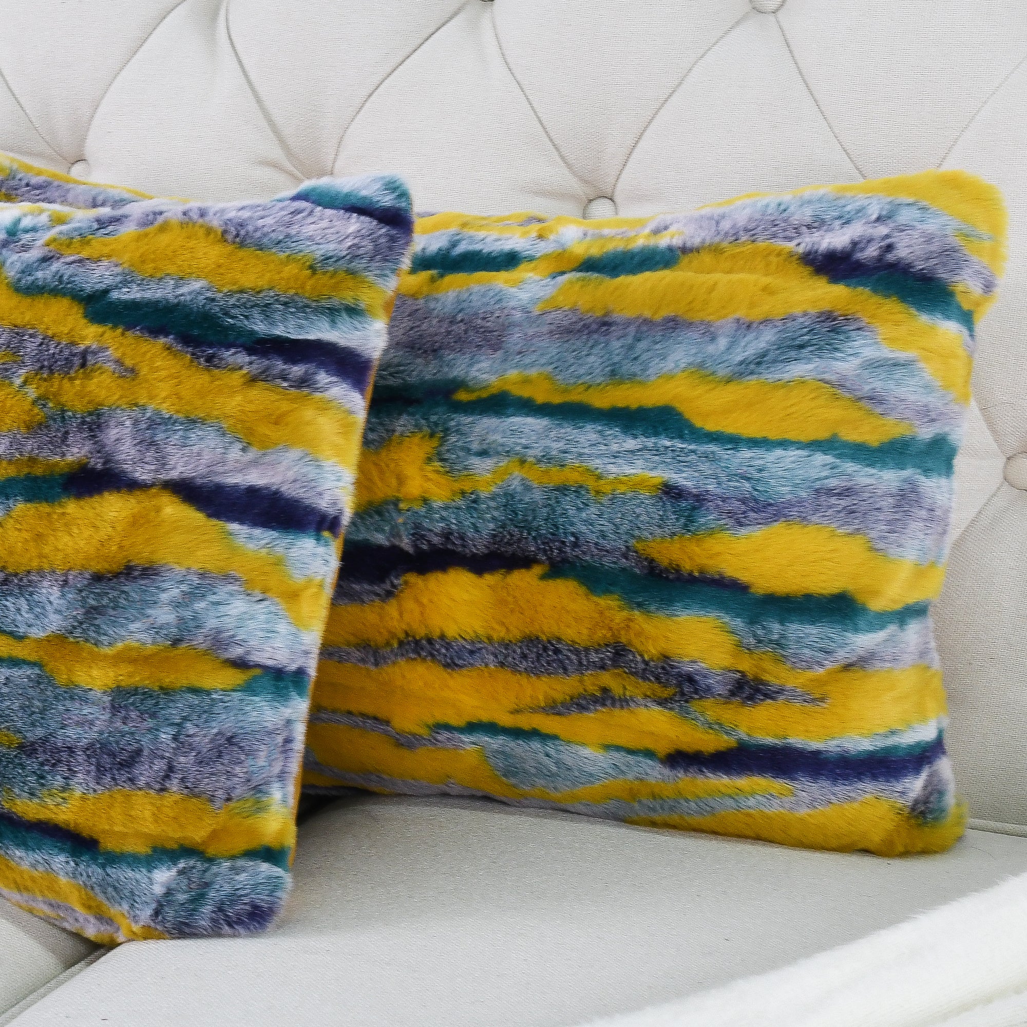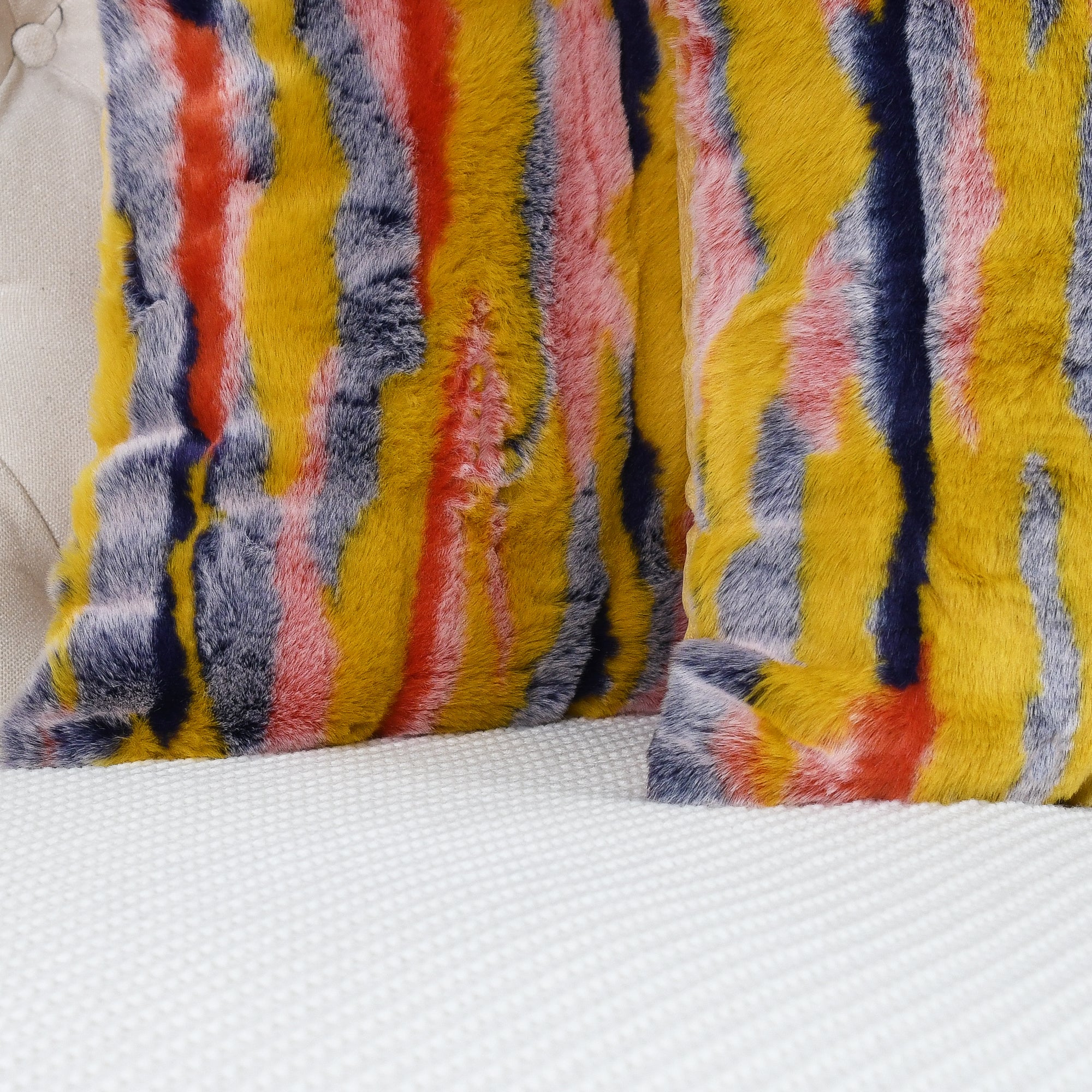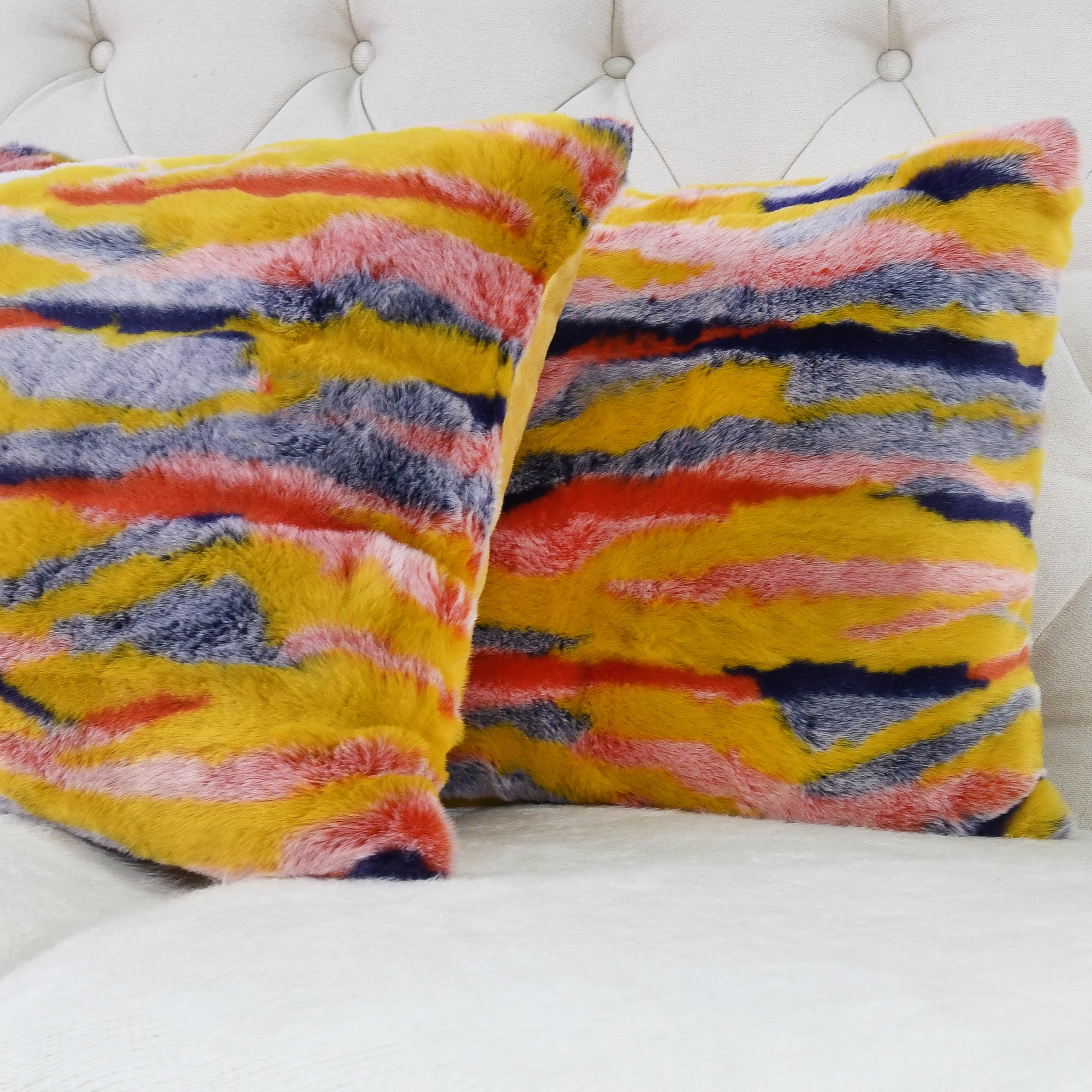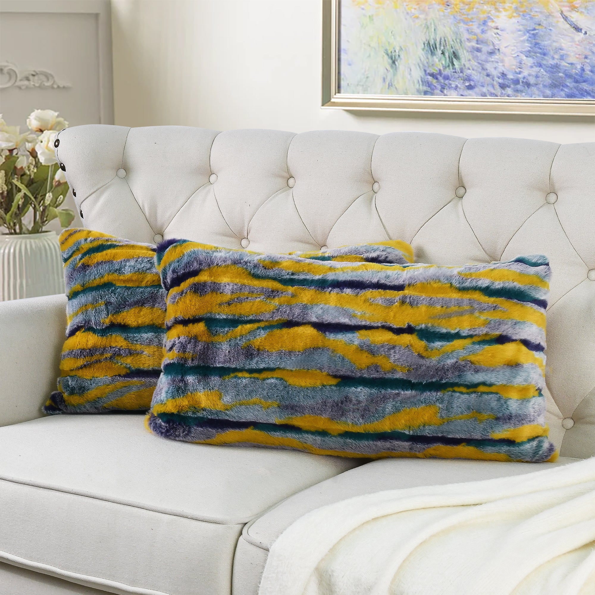 Multi Jacquard Faux Fur 2 Piece Decorative Pillow Covers
