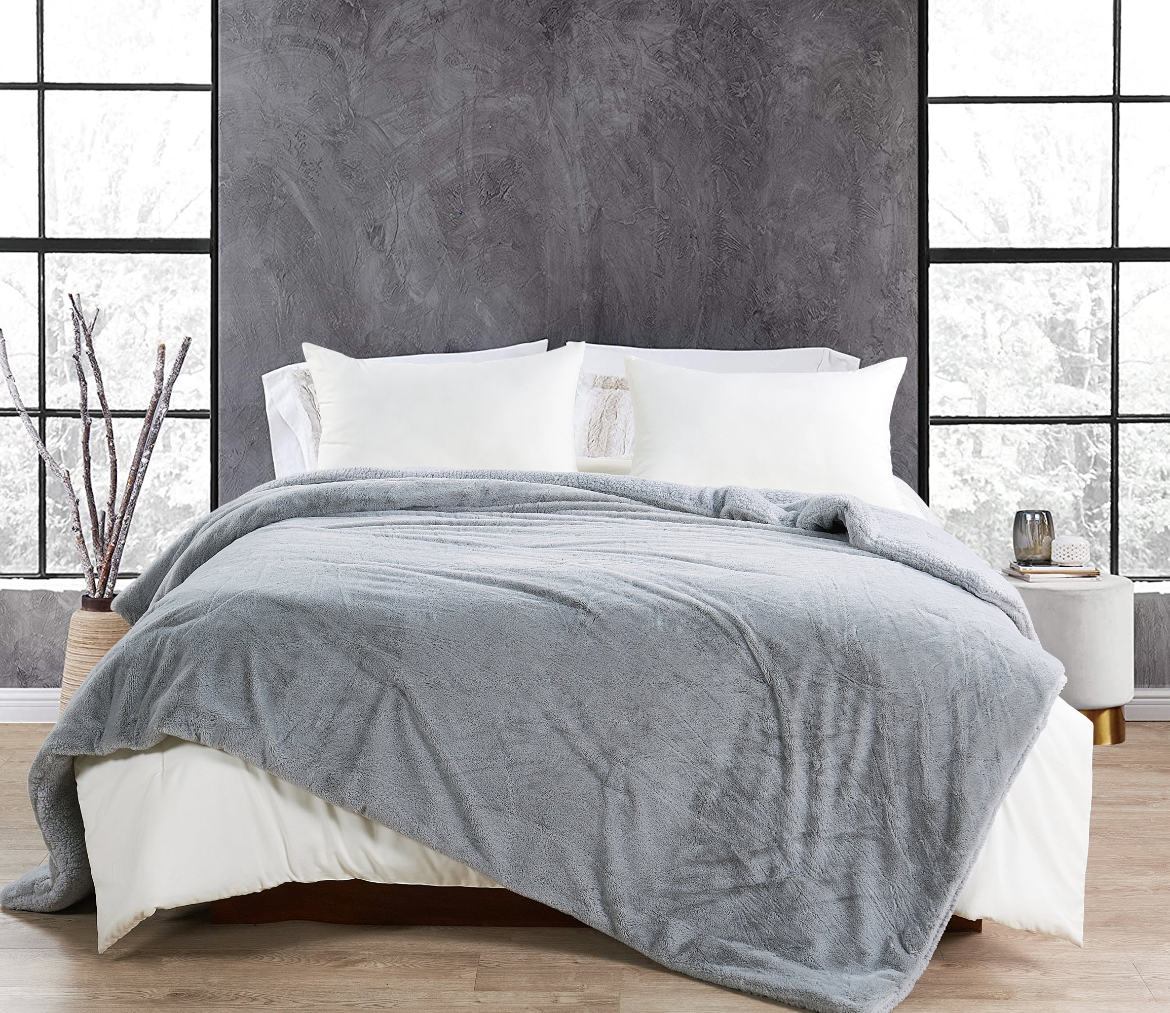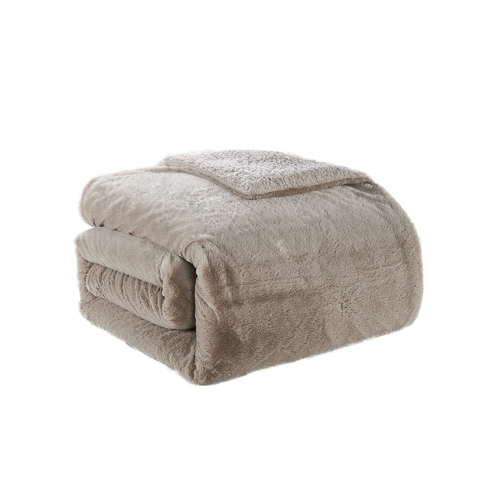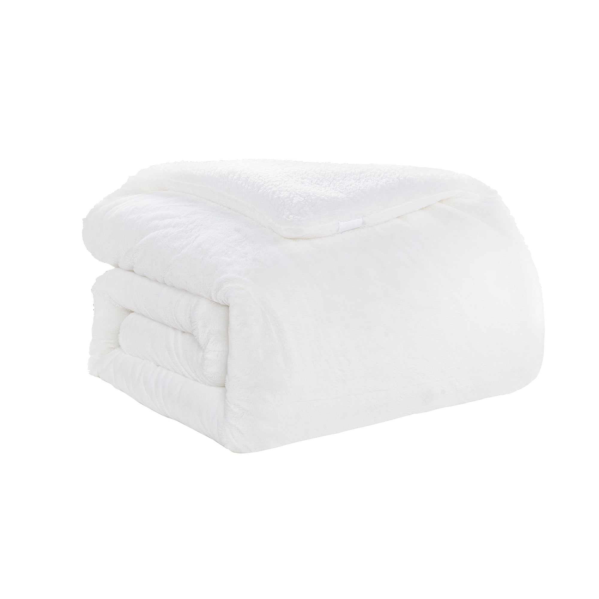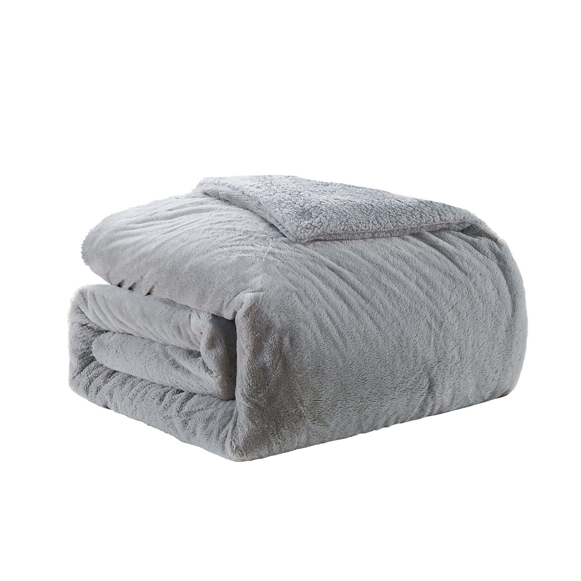 This warm and durable blanket is made from machine-washable polyester microfiber, featuring a soft faux fur side with a snug sherpa side. This classic blanket is perfect for chilly nights.