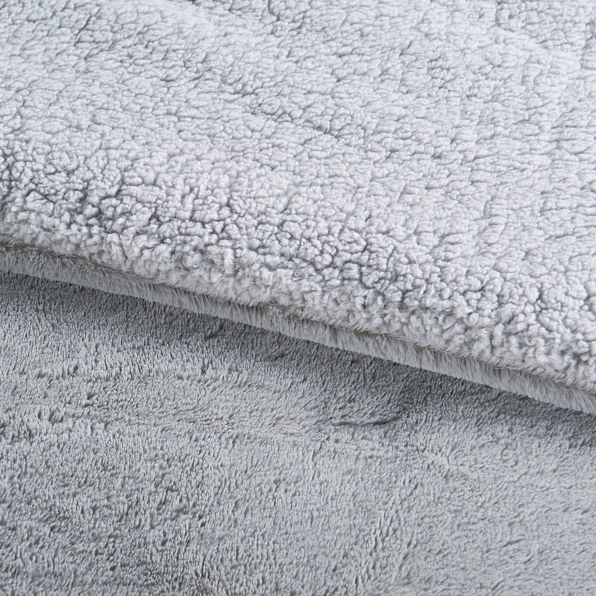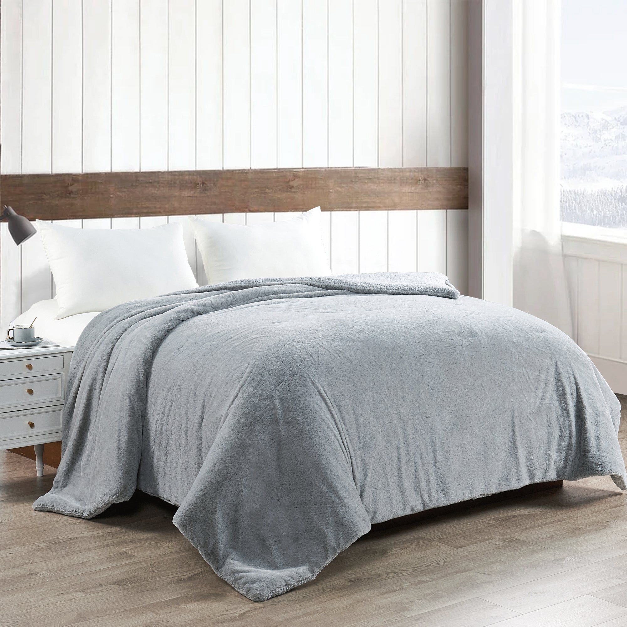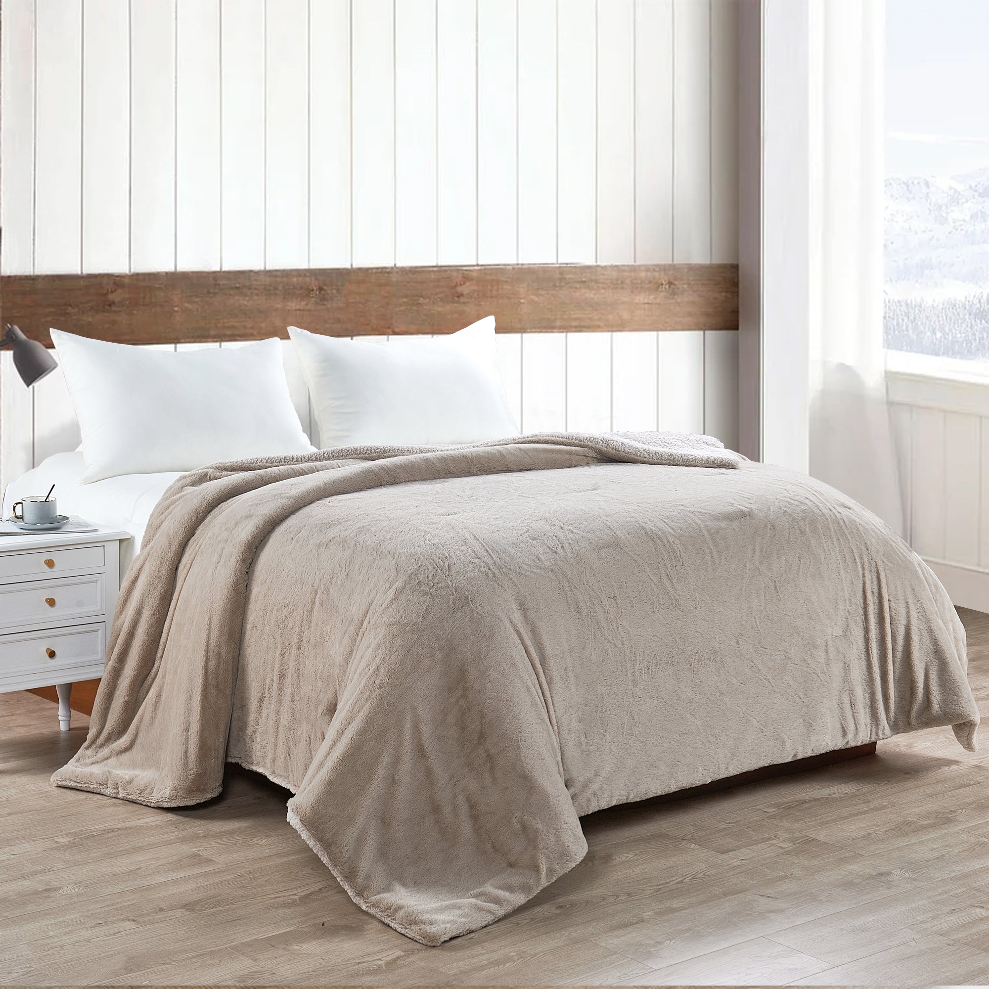 This warm and durable blanket is made from machine-washable polyester microfiber, featuring a soft faux fur side with a snug sherpa side. This classic blanket is perfect for chilly nights.