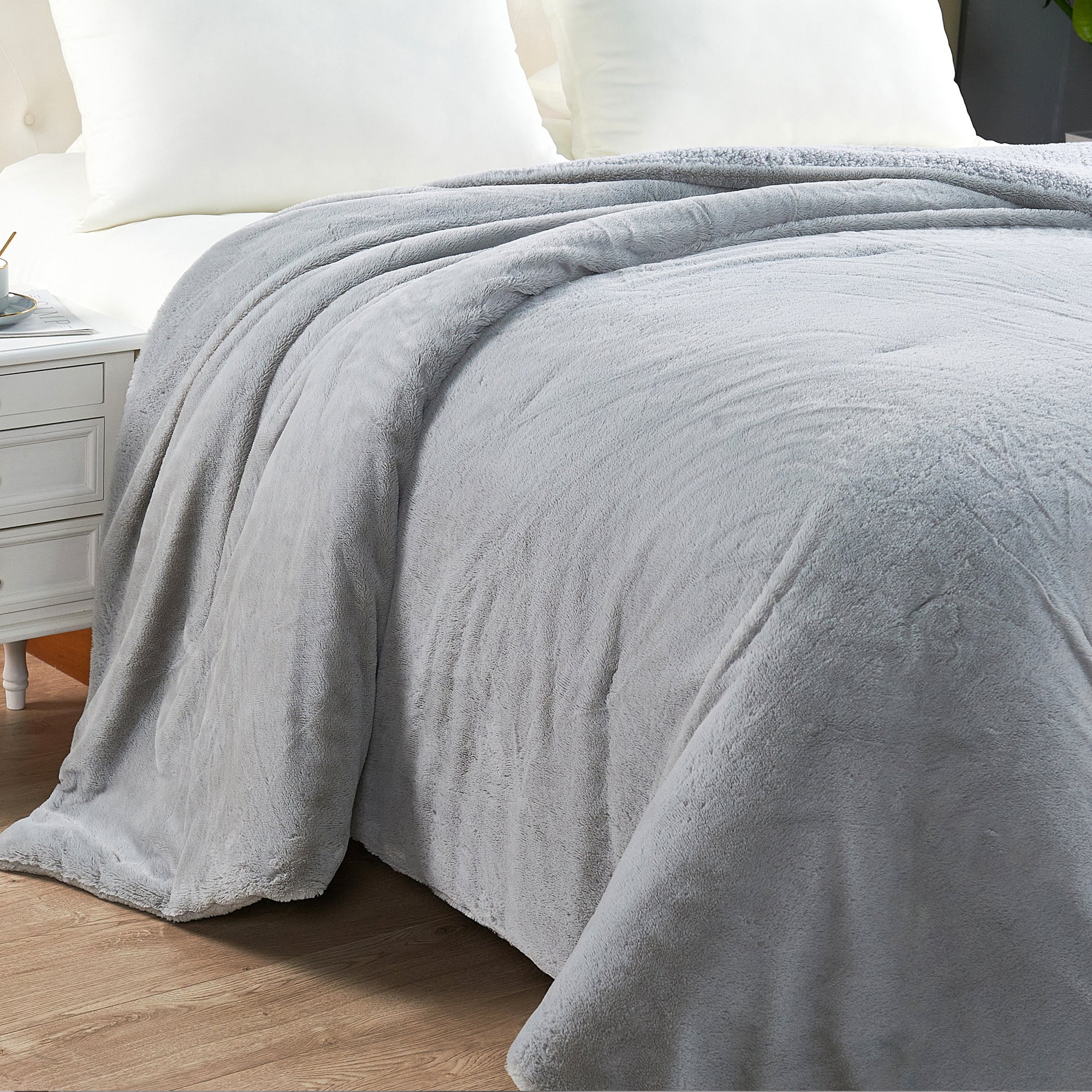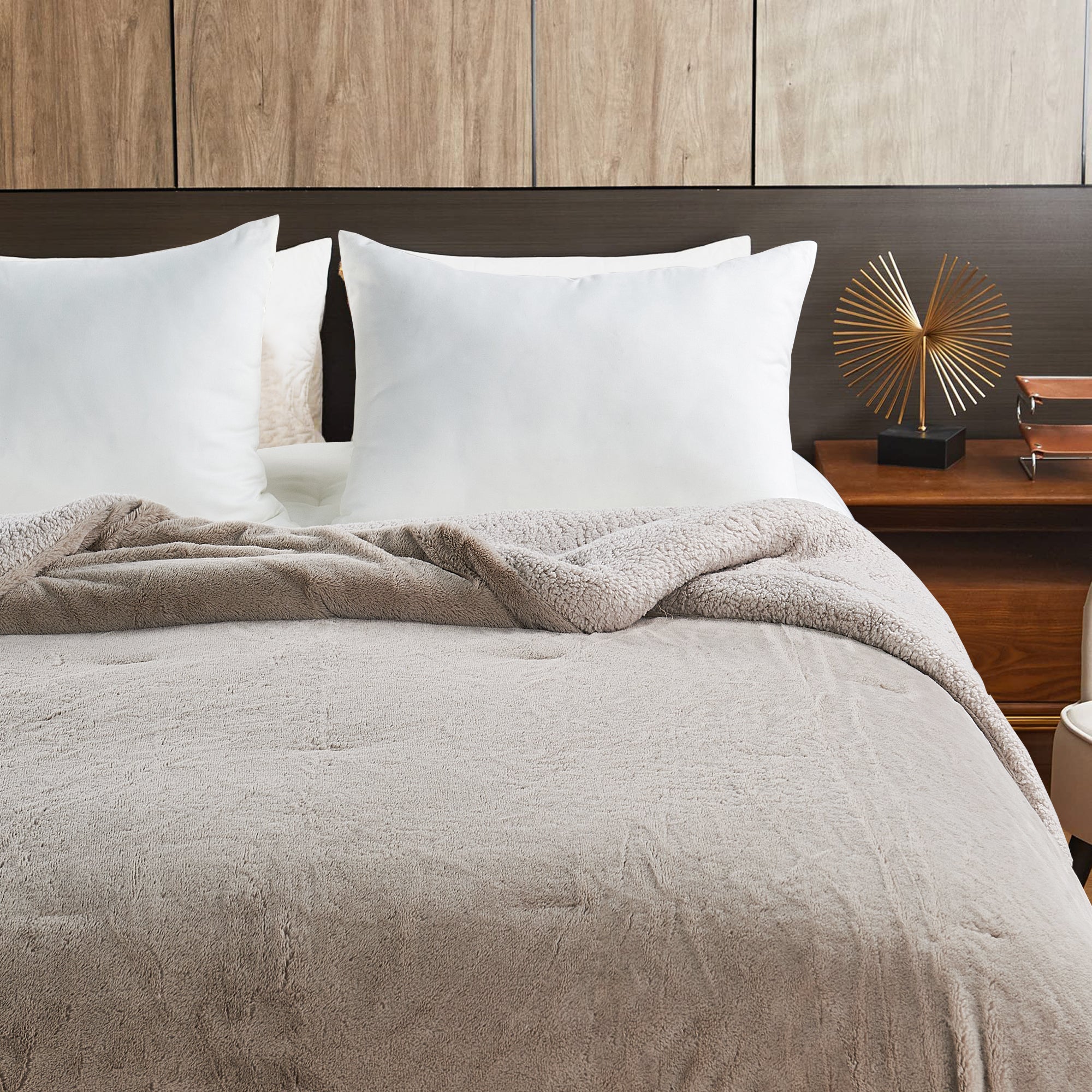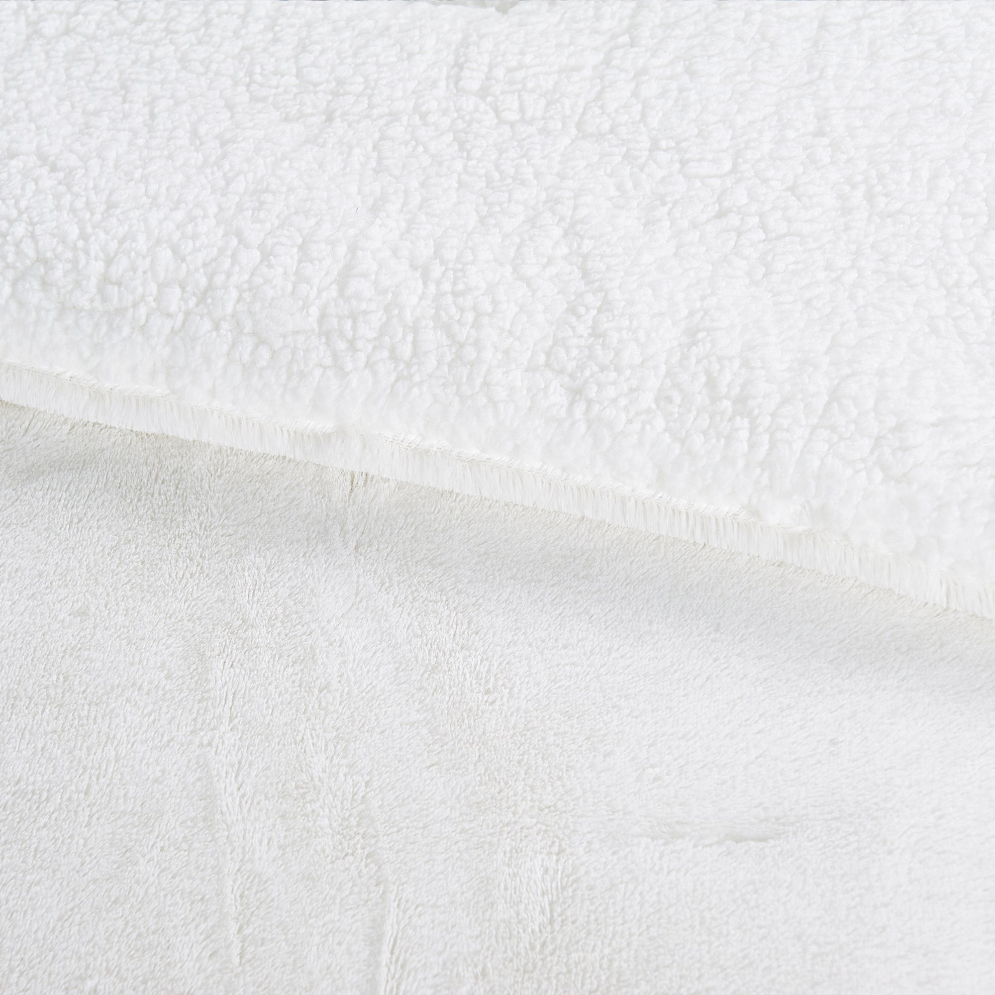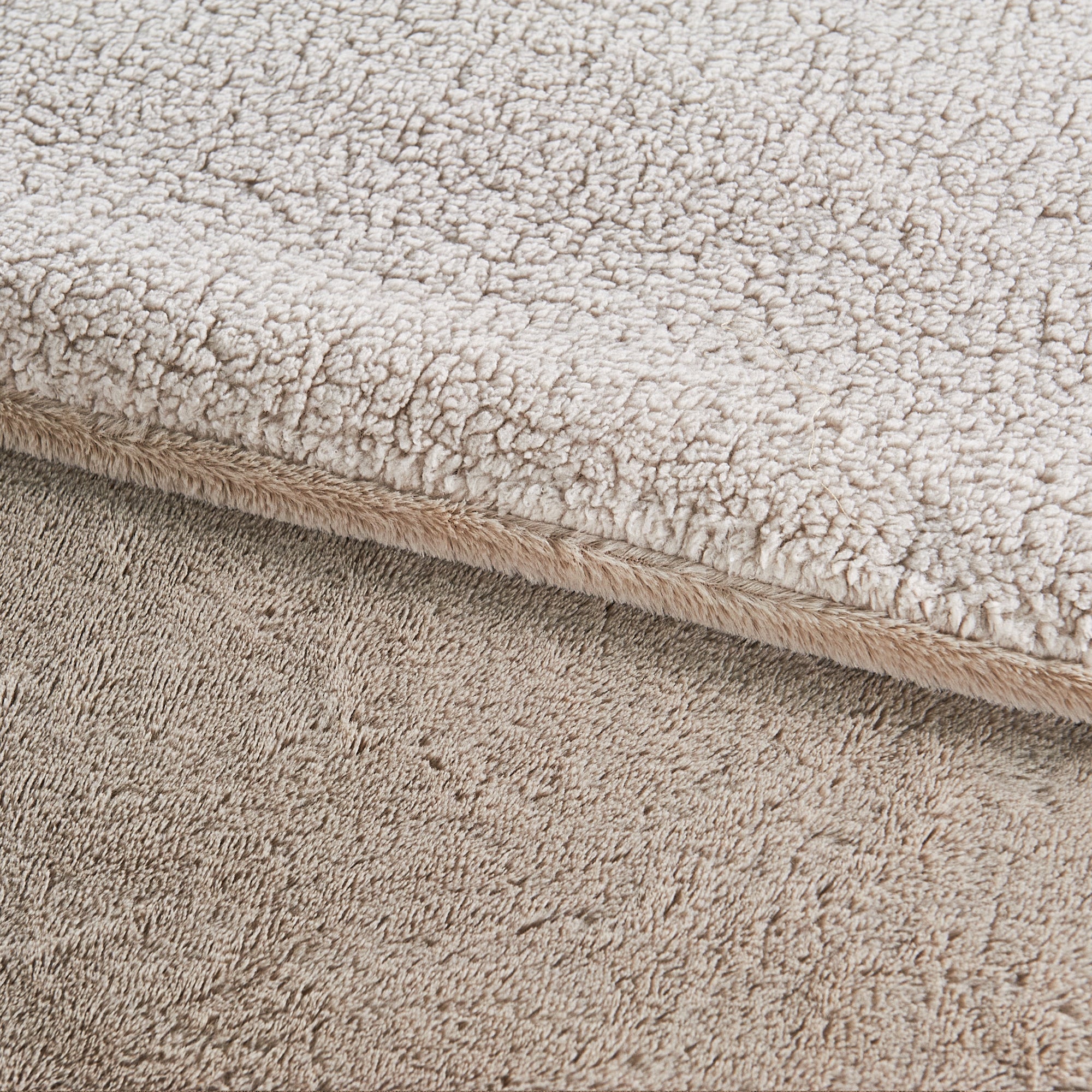 This warm and durable blanket is made from machine-washable polyester microfiber, featuring a soft faux fur side with a snug sherpa side. This classic blanket is perfect for chilly nights.