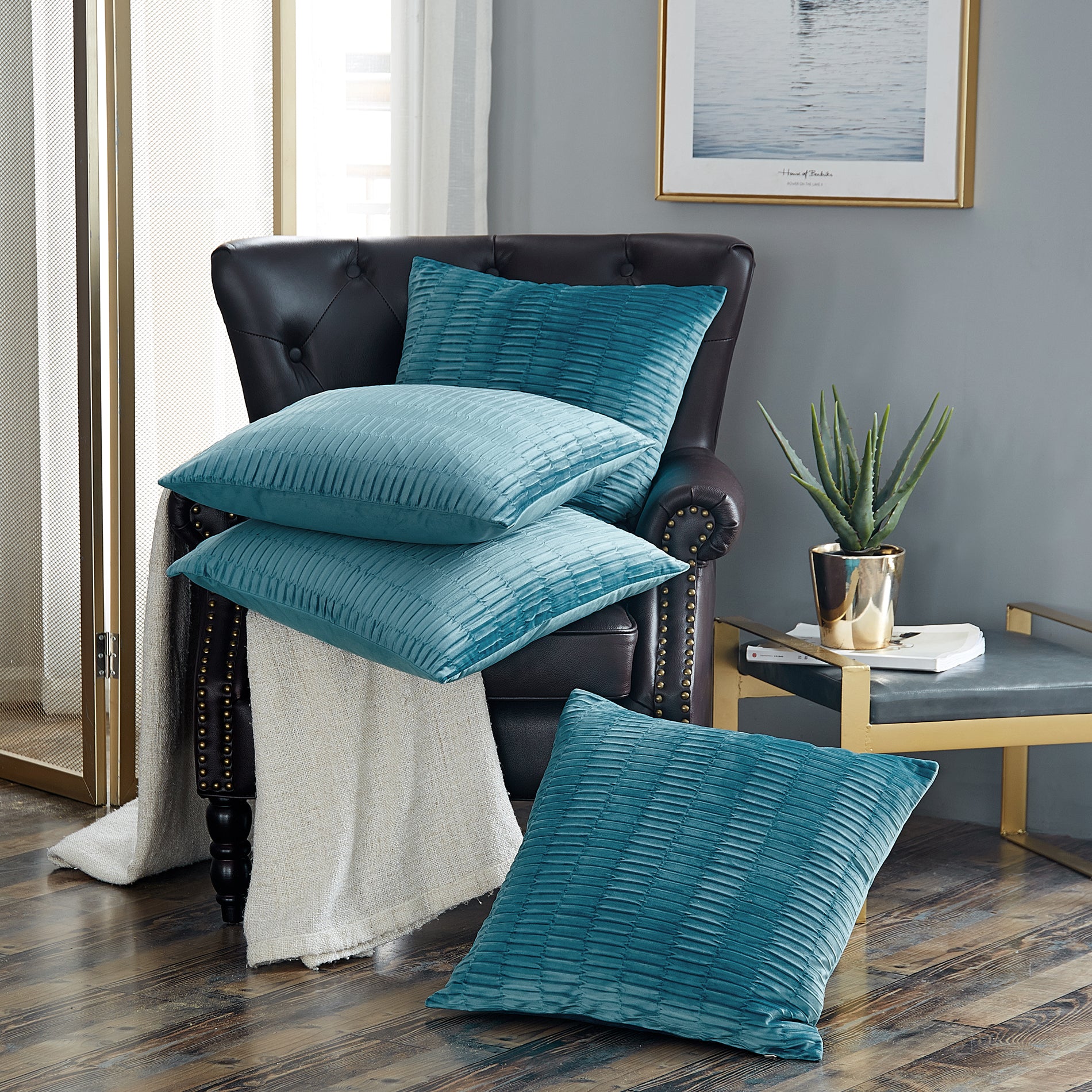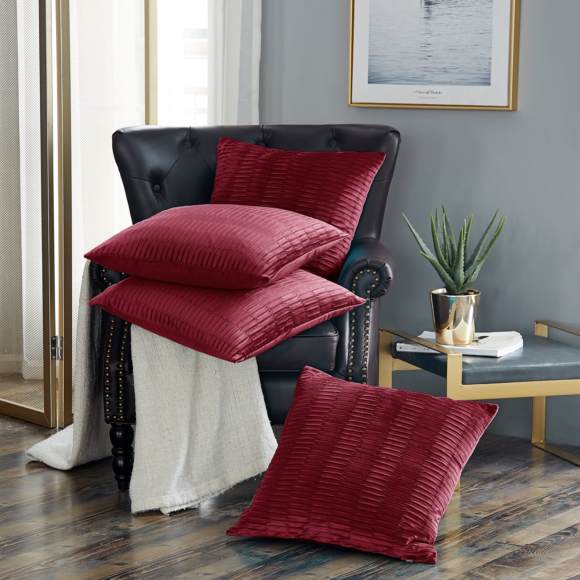- ELEGANT PLEATED VELVET! Transform your old pillows into something exciting and fresh! Pleated Velvet Pillow Shells quickly and effortlessly pull your room together, creating a polished yet inviting decor. The front of each shell boasts a crisp pleated design offering a modern quality that adds a layer of subtle texture to your couch, bed or armchair.