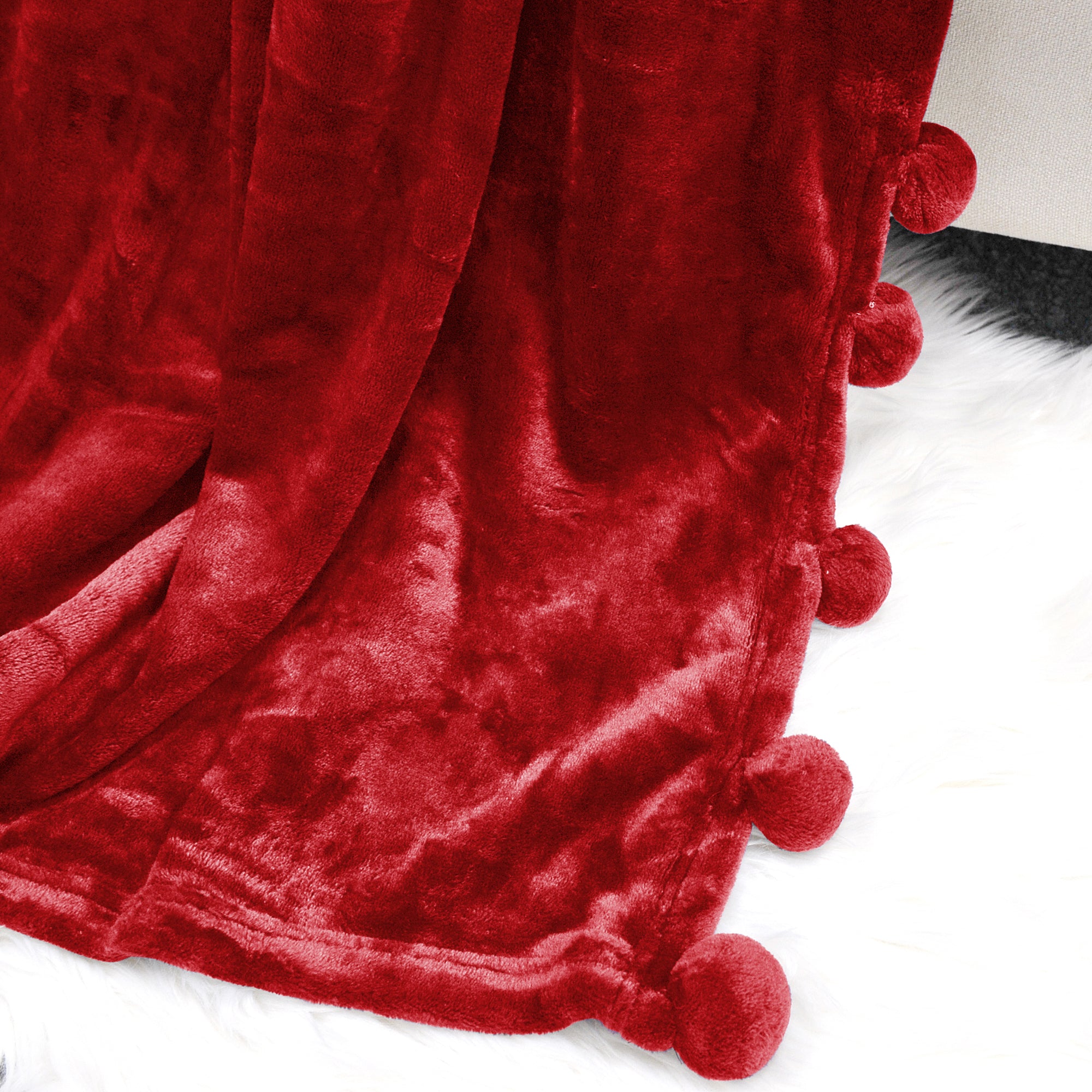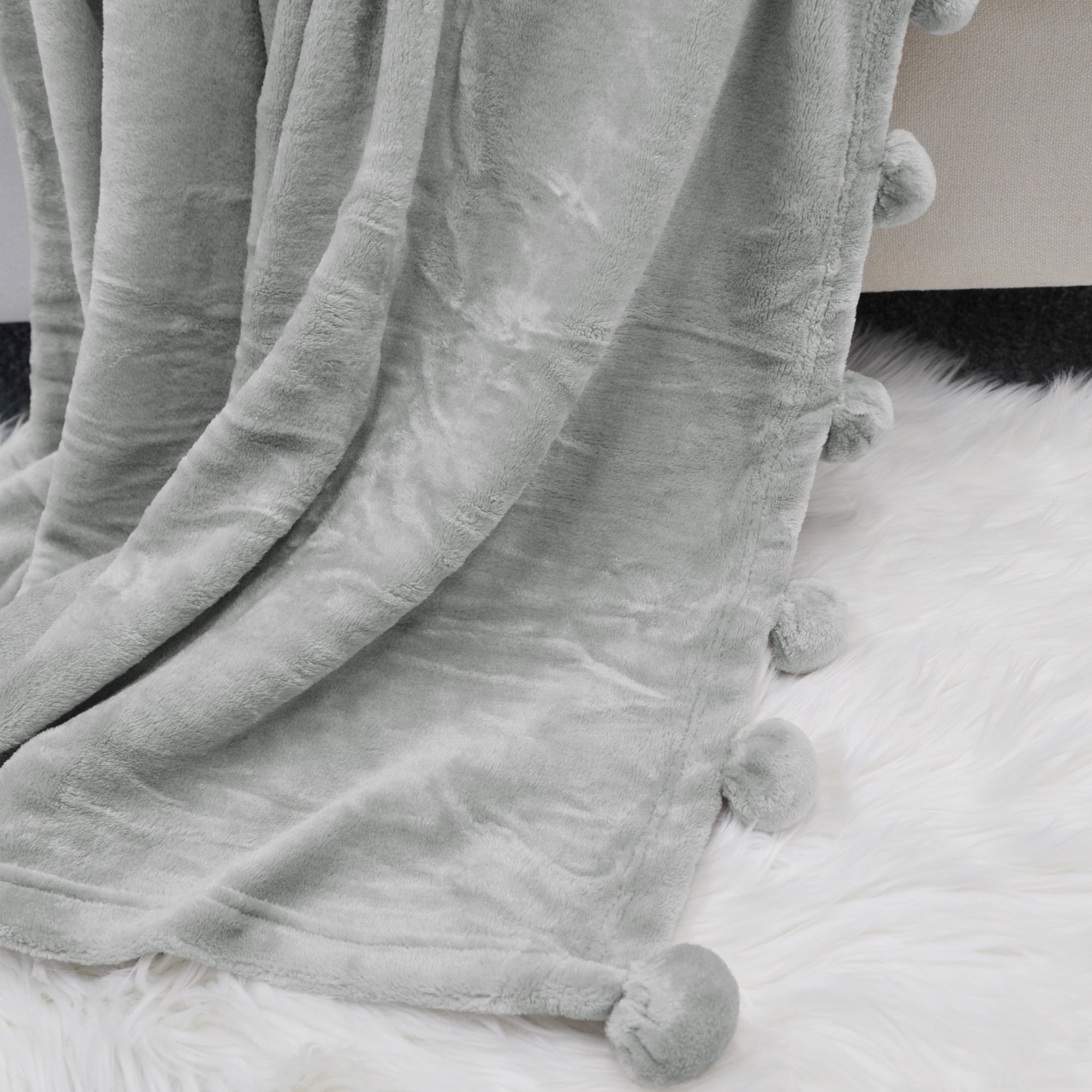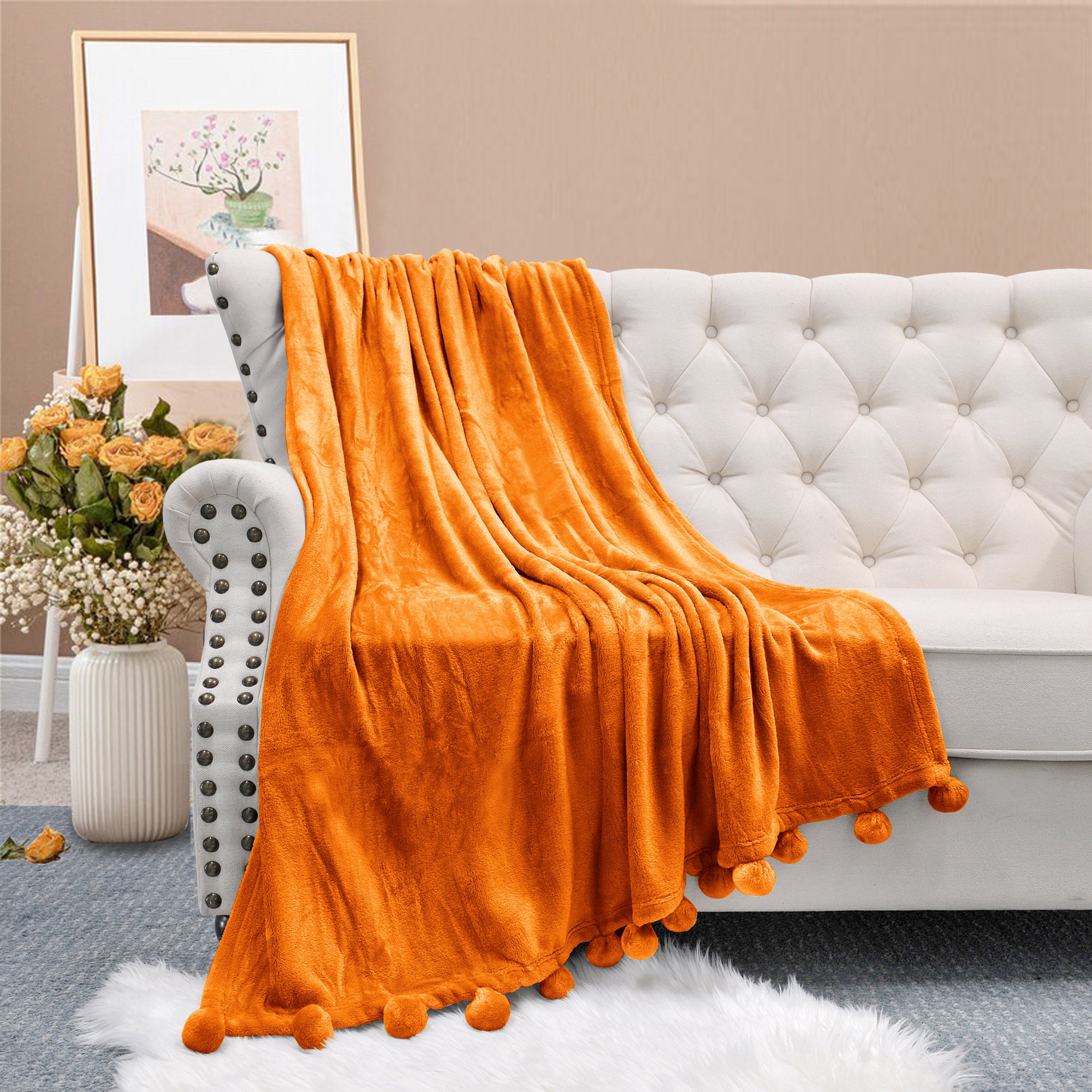 Cuddle up and enjoy a good read with our Pompom Flannel Fleece Throw. The fluffy pompom accents add a playful touch to this luxuriously plush throw, crafted from soft flannel fleece. Its machine-washable design ensures effortless cleaning and maintenance. Available in various colors.