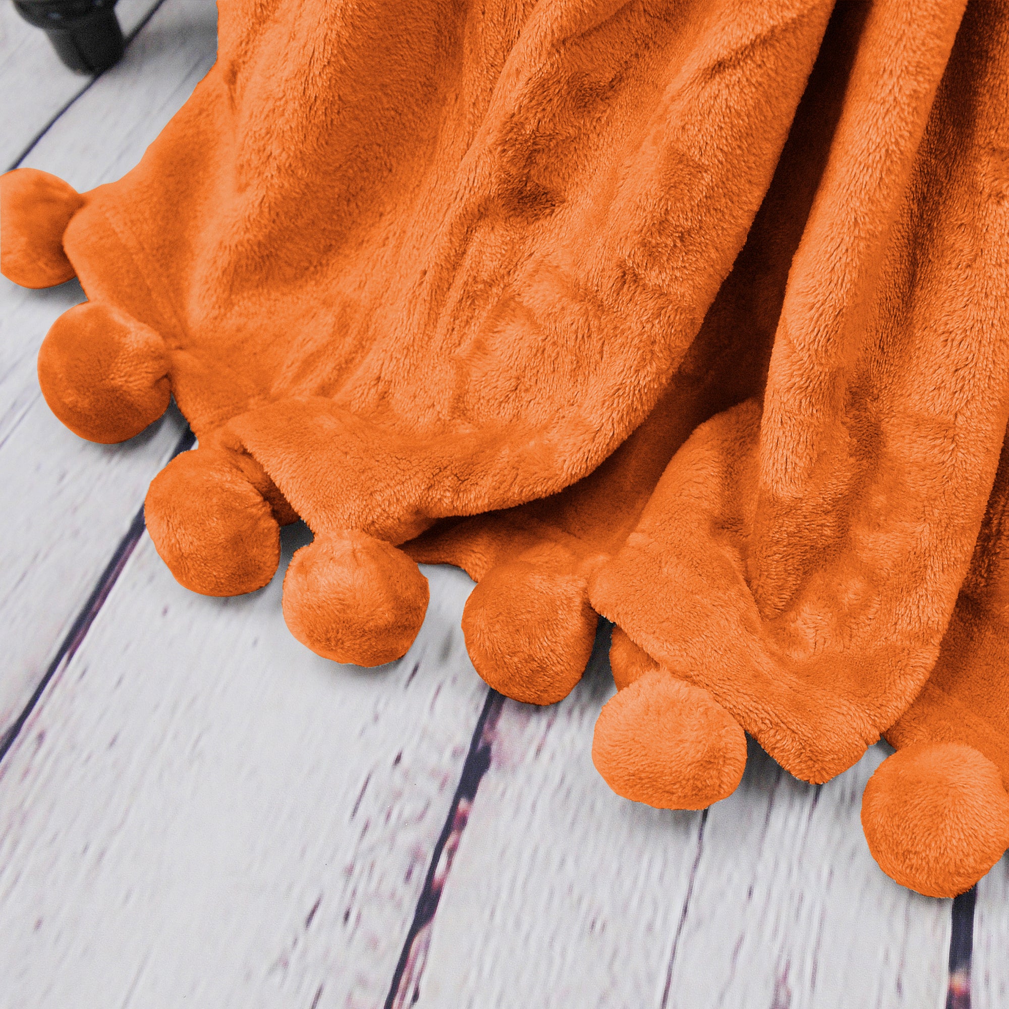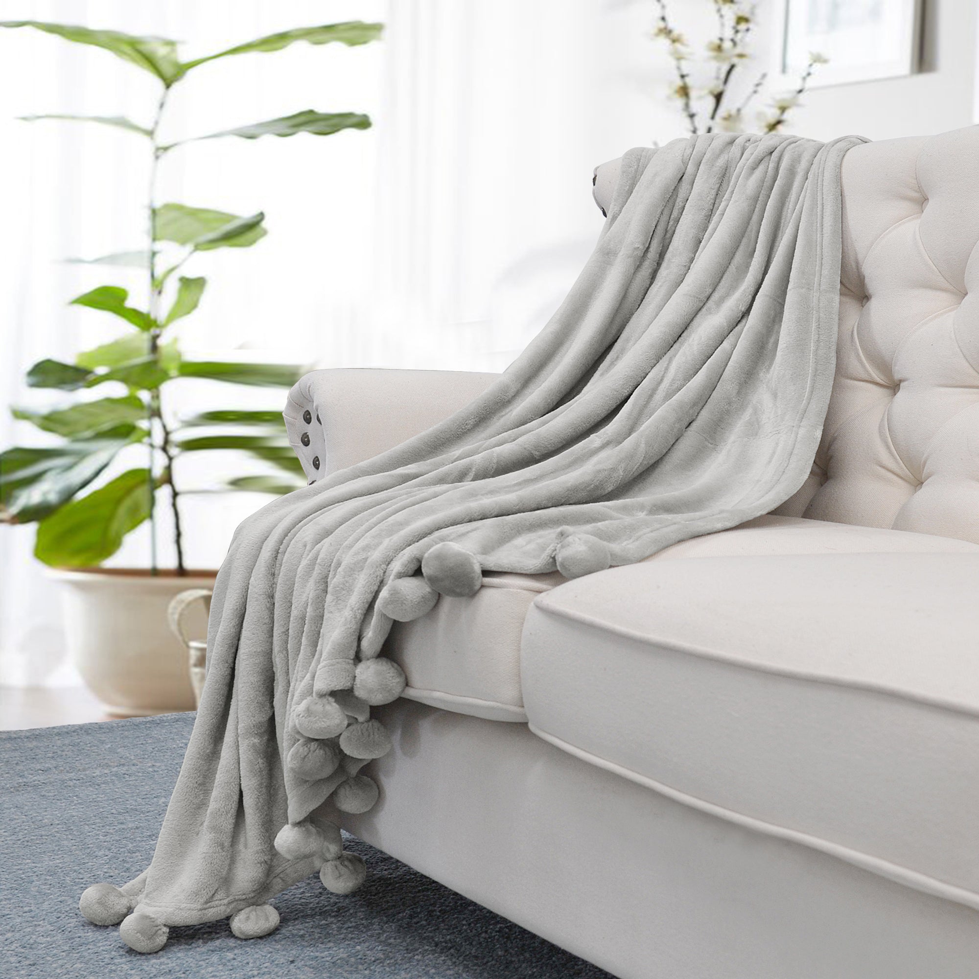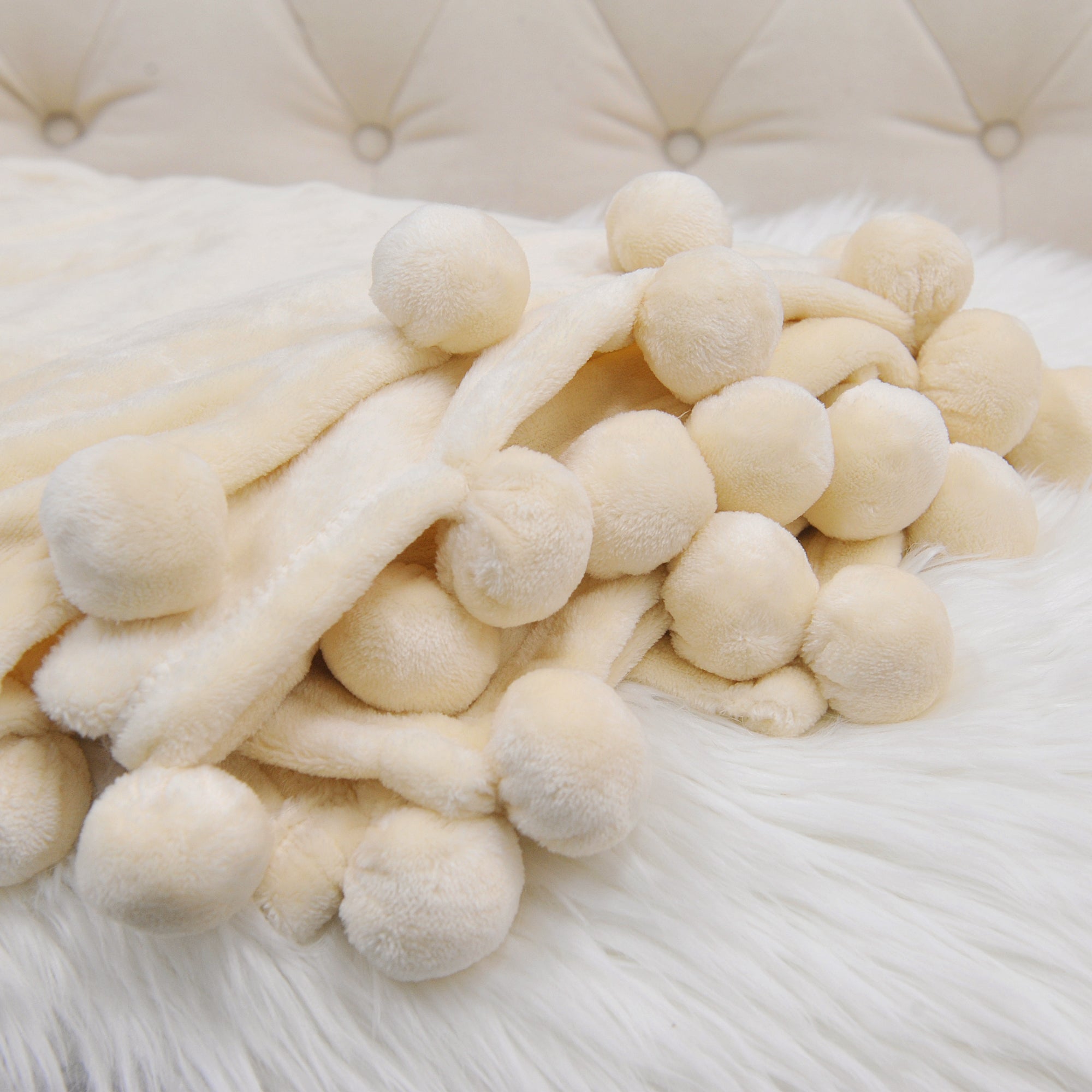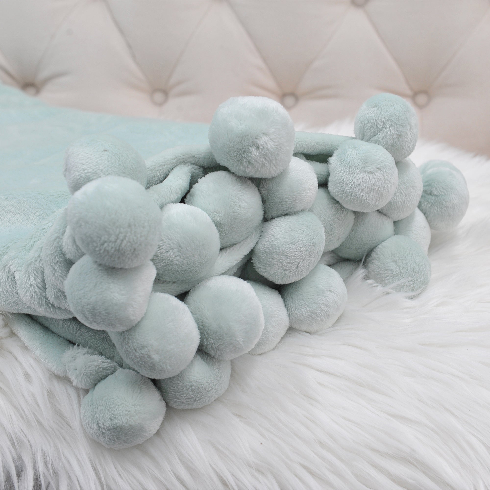 Cuddle up and enjoy a good read with our Pompom Flannel Fleece Throw. The fluffy pompom accents add a playful touch to this luxuriously plush throw, crafted from soft flannel fleece. Its machine-washable design ensures effortless cleaning and maintenance. Available in various colors.