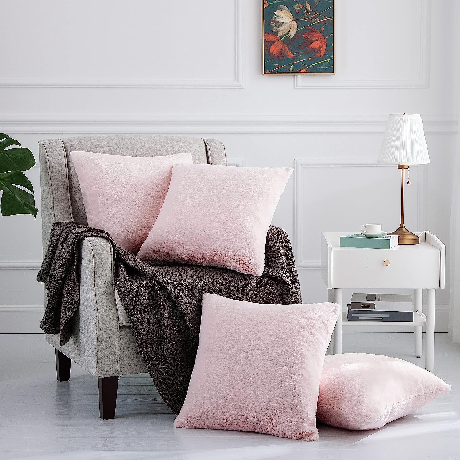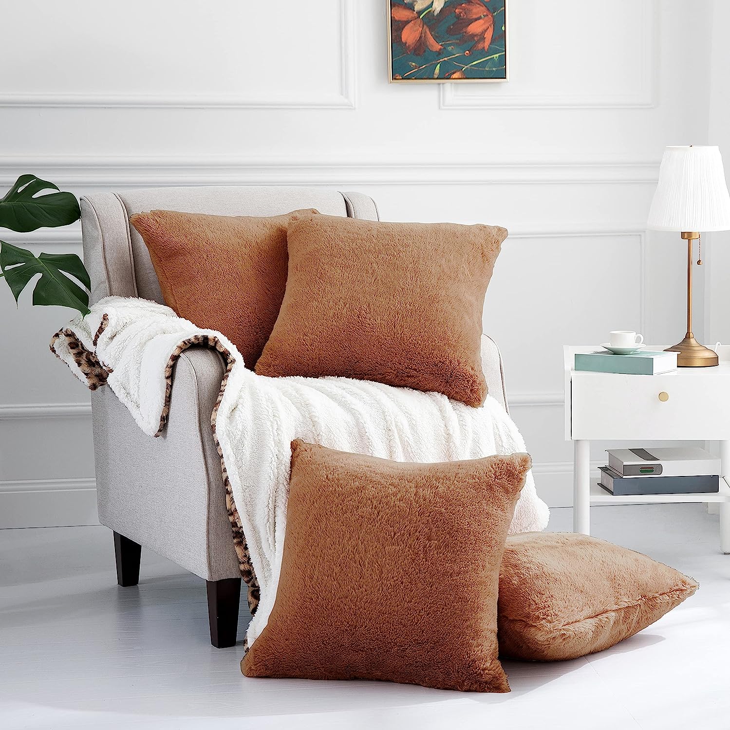 Rabbit Faux Fur 4 Piece Decorative Pillow Covers (20" x 20")