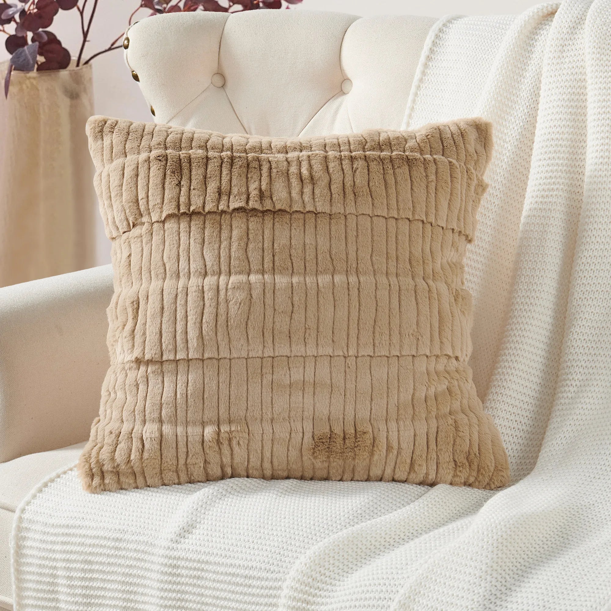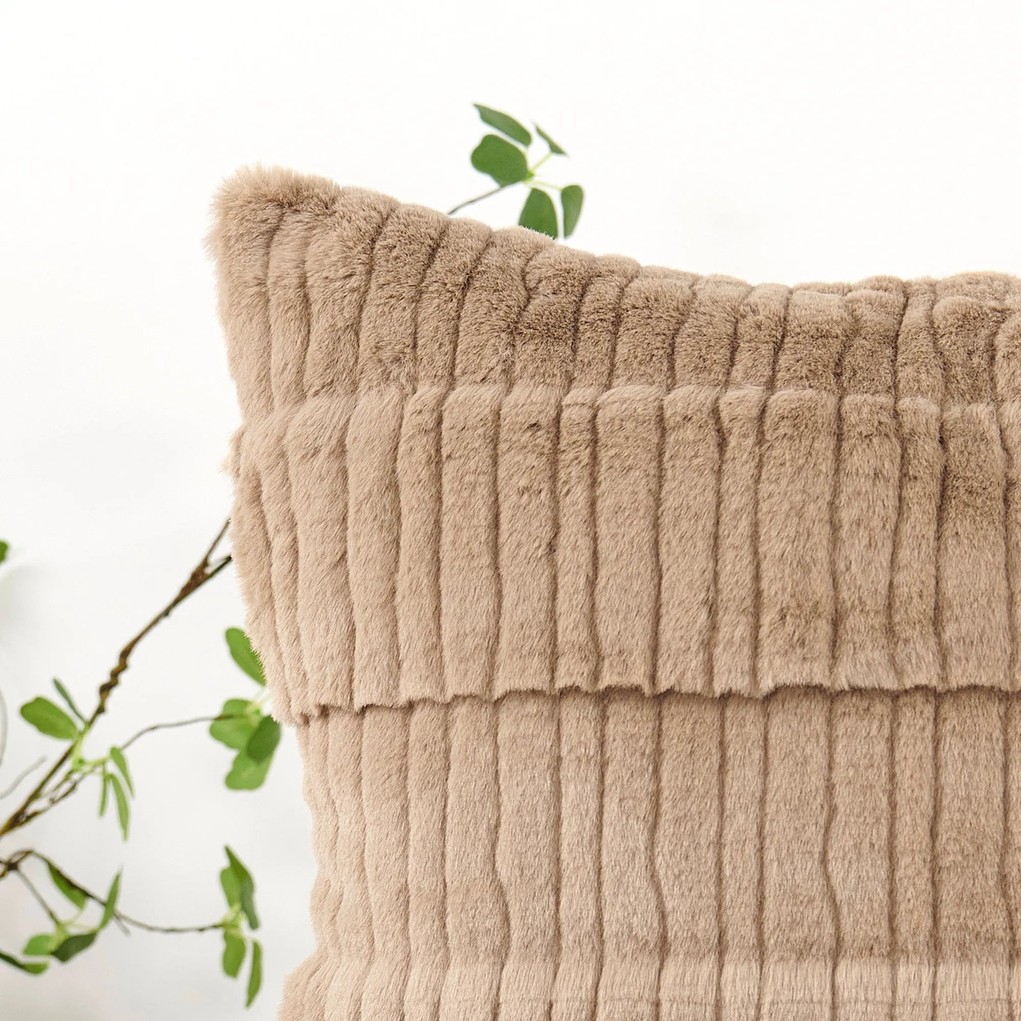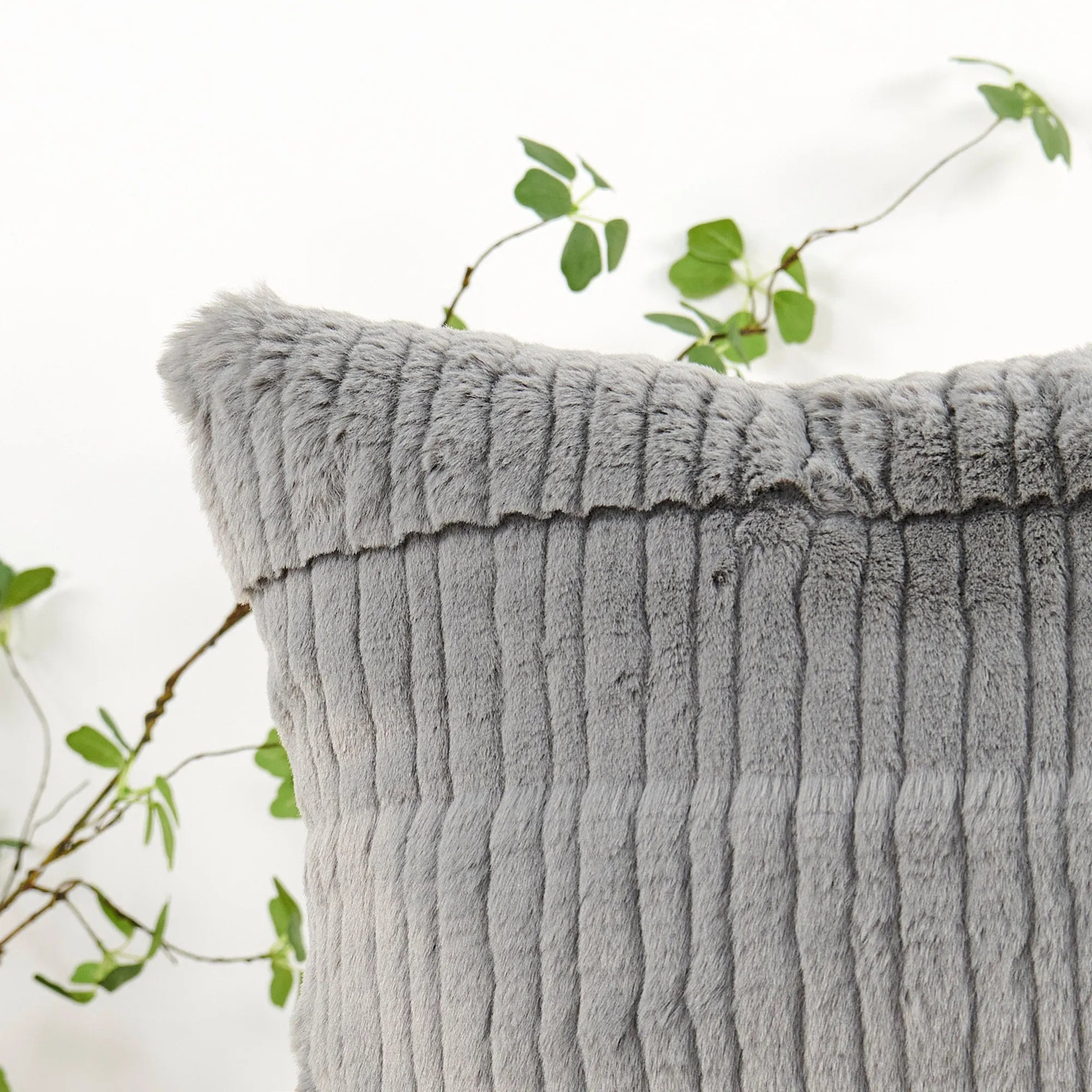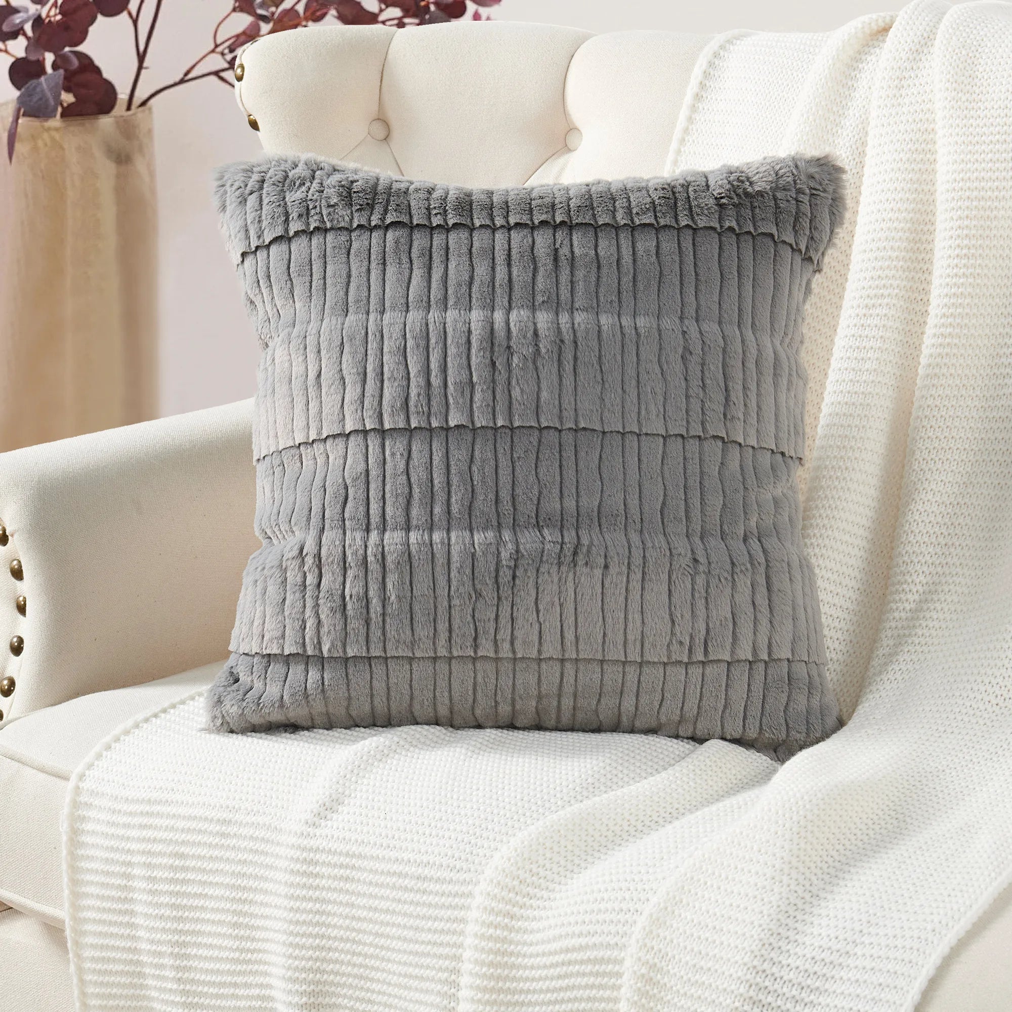 The front features a plush, horizontally striped design, creating a textured and inviting look that enhances the comfort of your bed, sofa, or favorite chair. The back is crafted from smooth micromink fabric, offering a sleek contrast in texture while ensuring comfort.