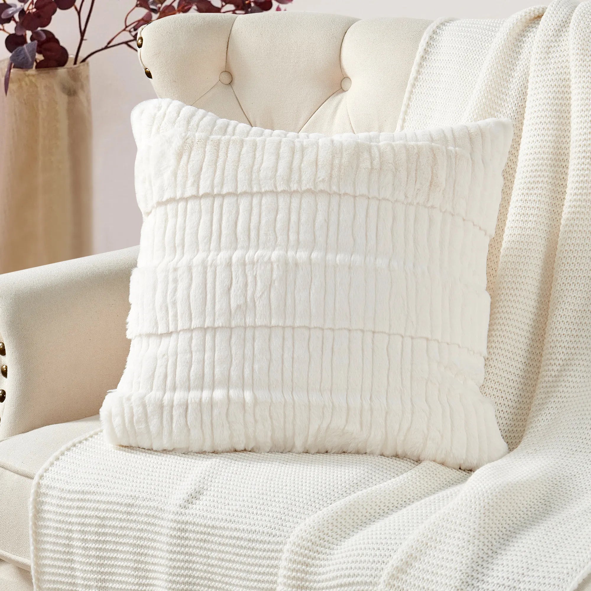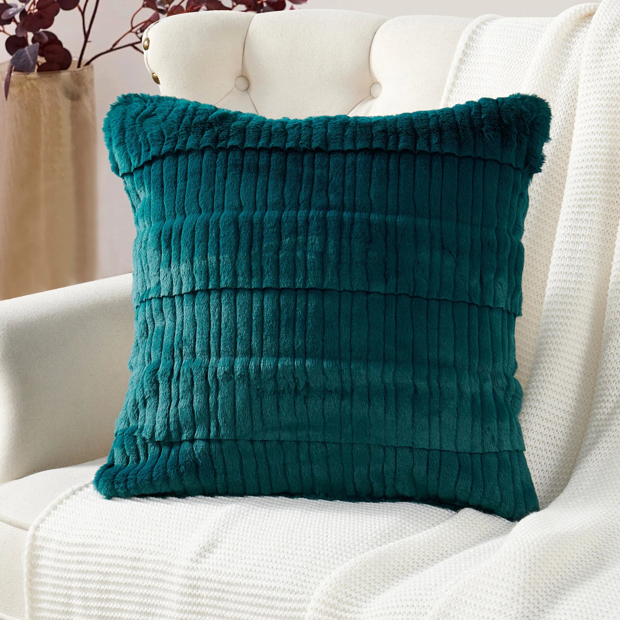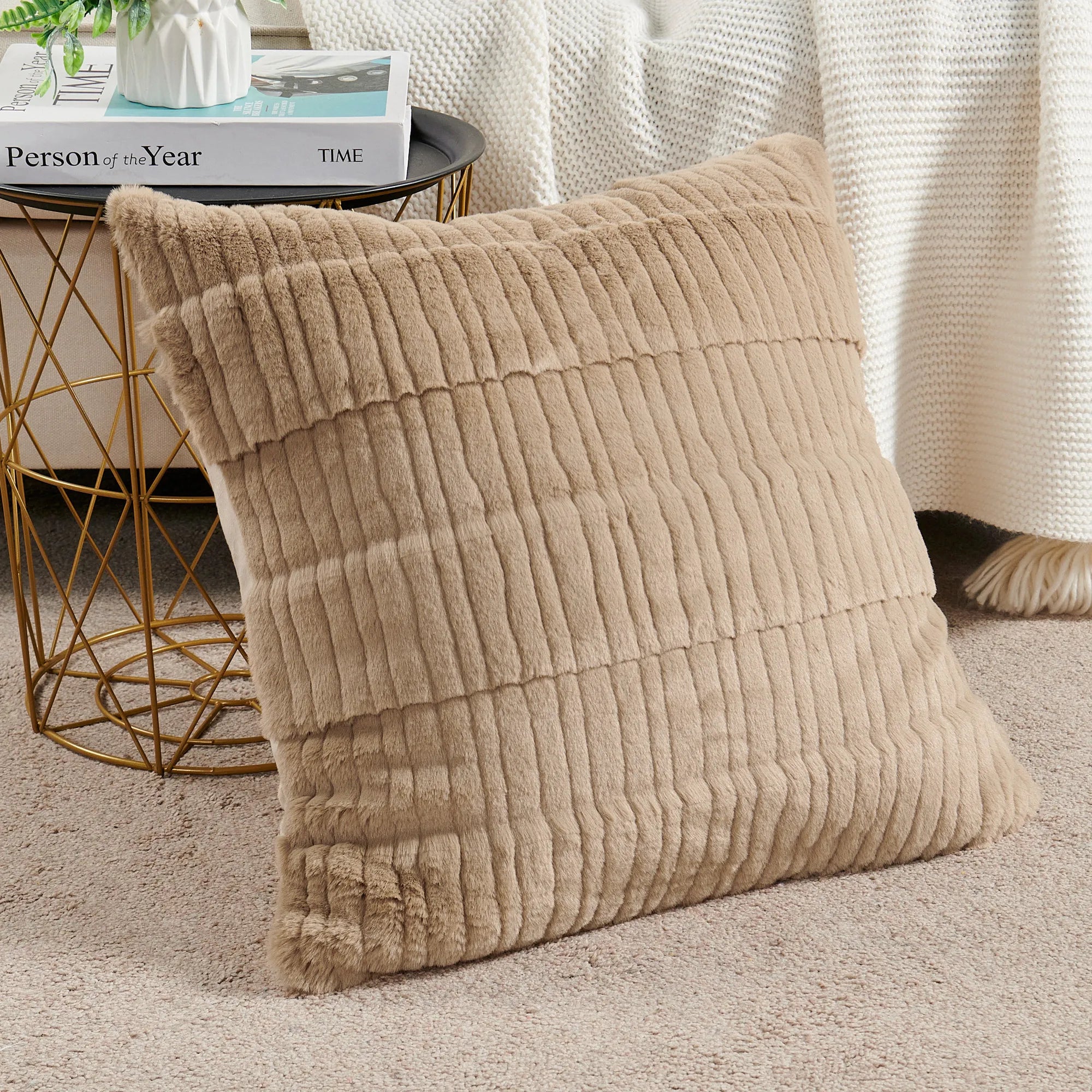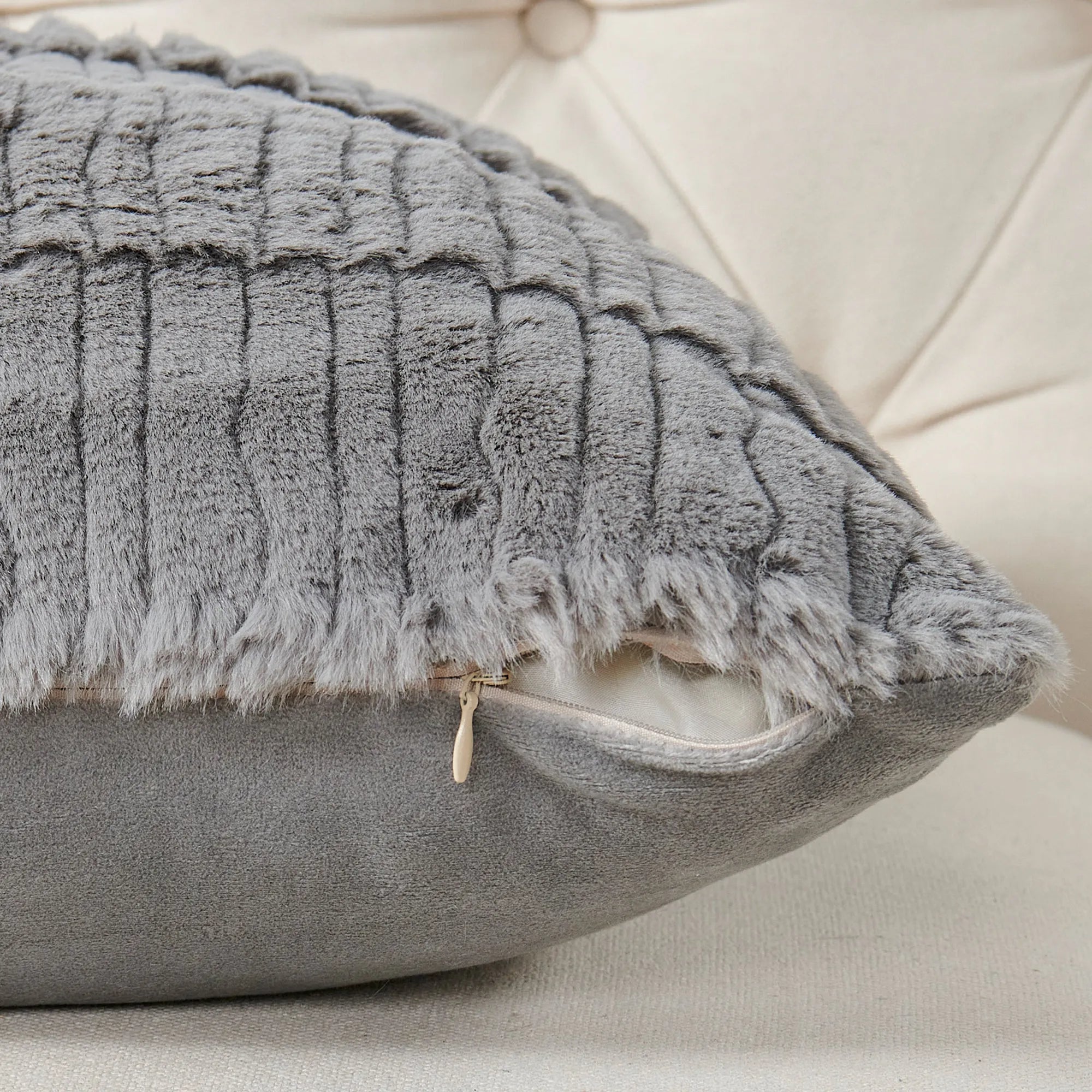 The front features a plush, horizontally striped design, creating a textured and inviting look that enhances the comfort of your bed, sofa, or favorite chair. The back is crafted from smooth micromink fabric, offering a sleek contrast in texture while ensuring comfort.