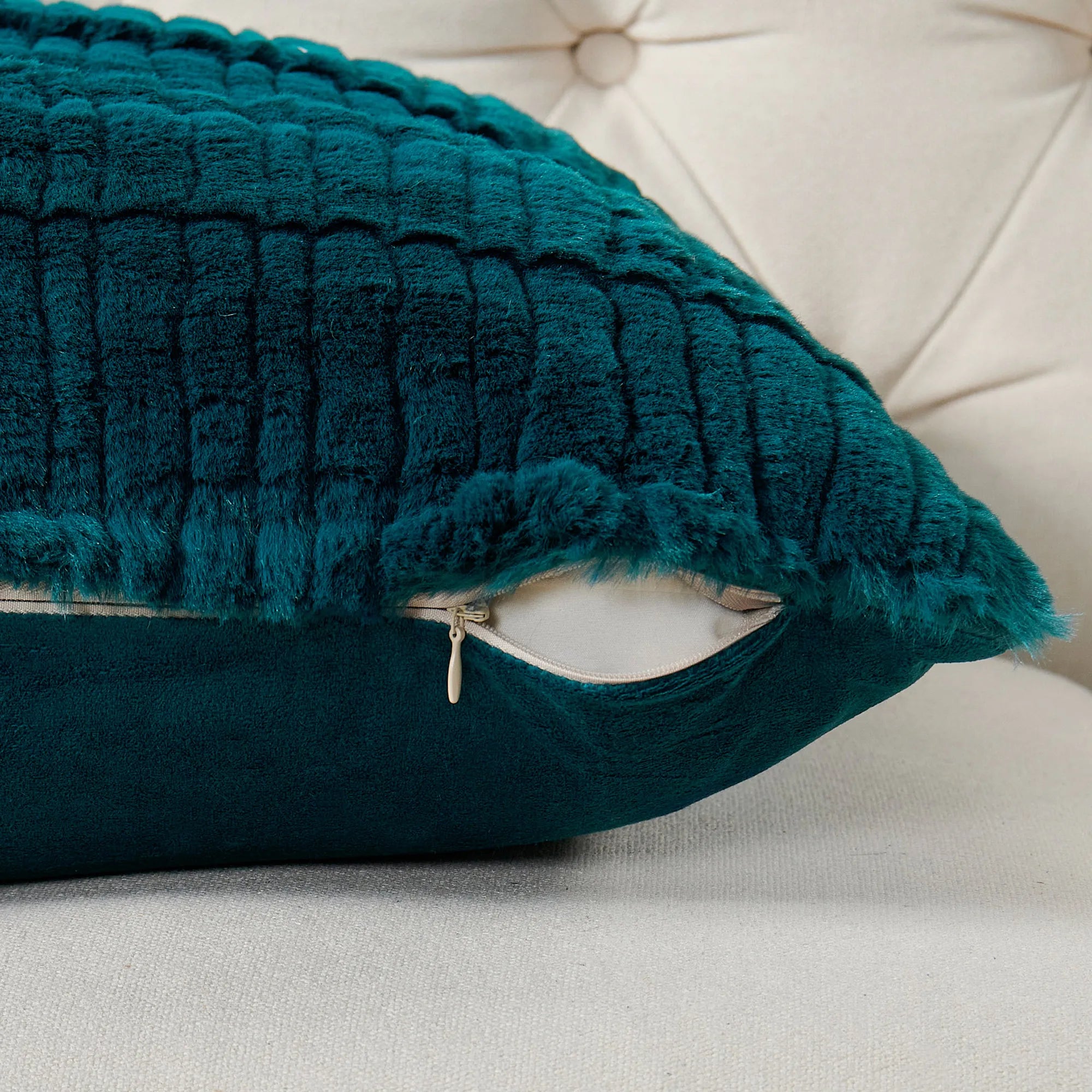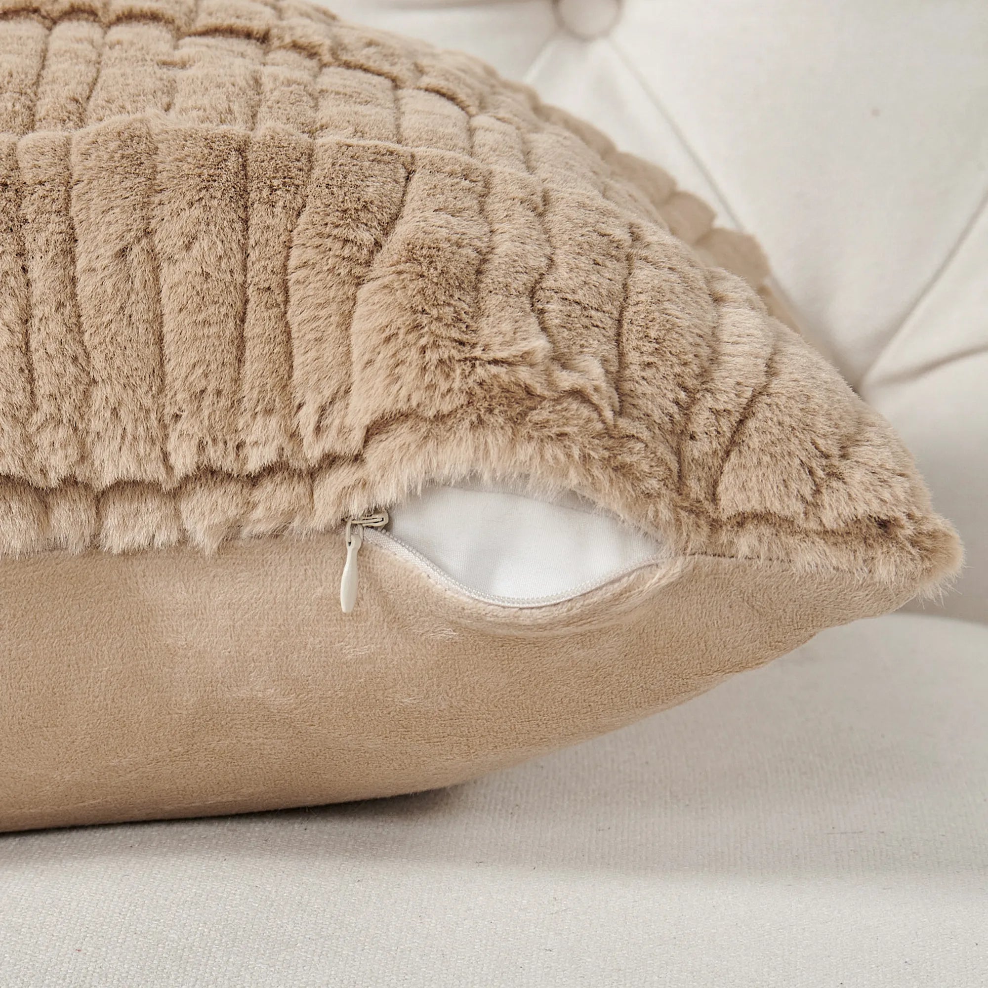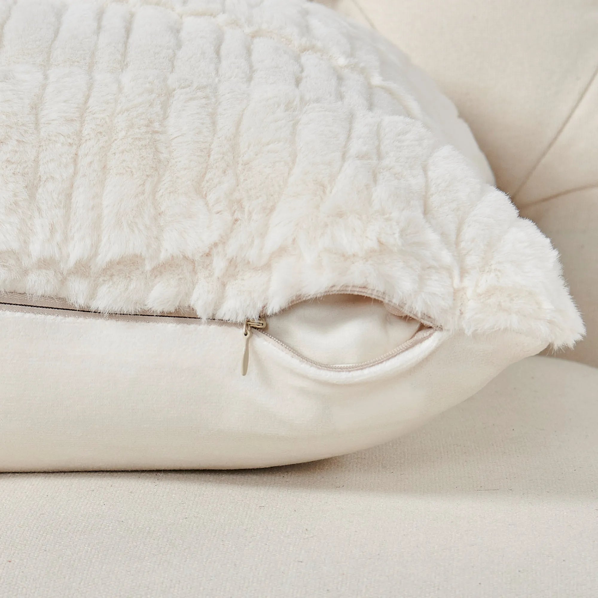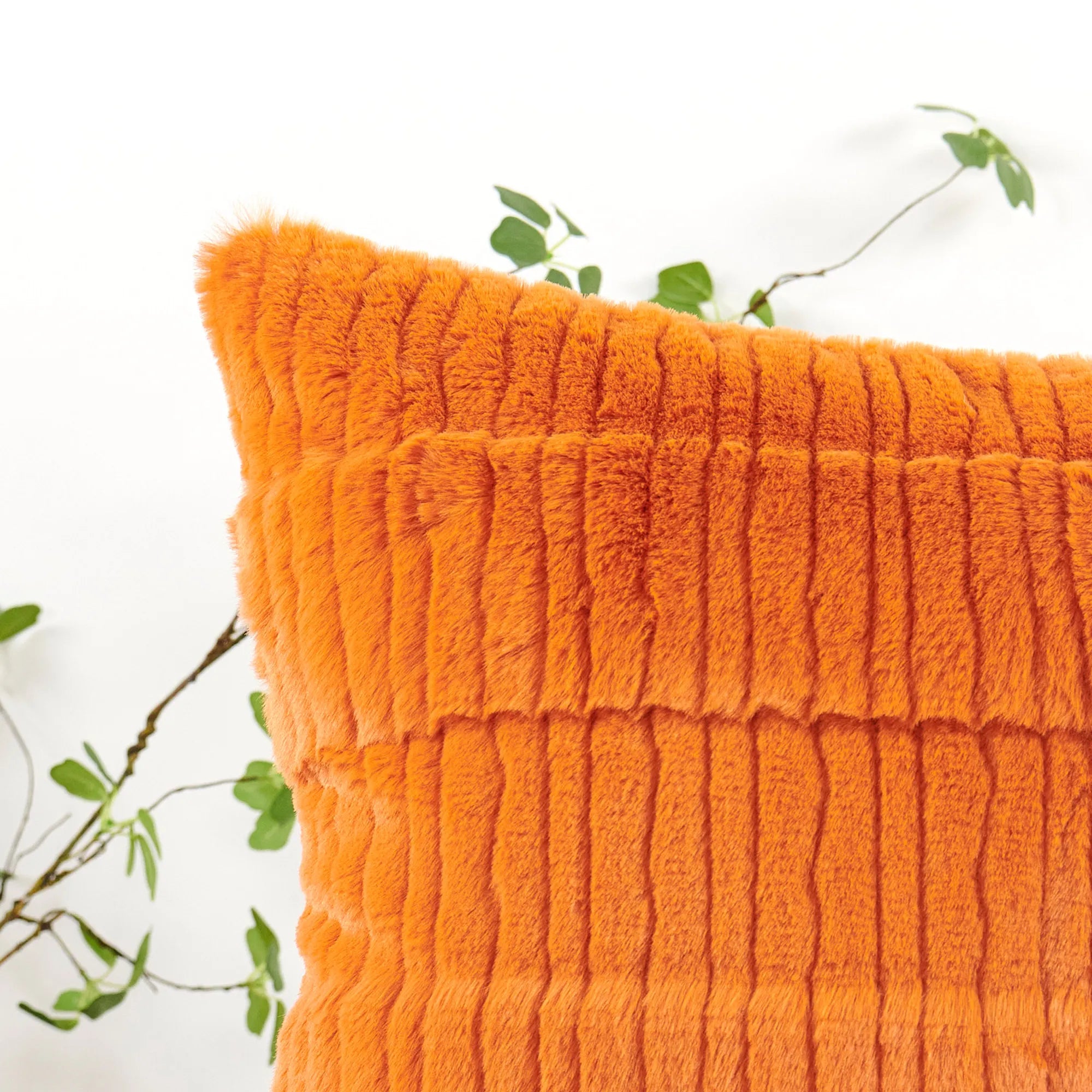 The front features a plush, horizontally striped design, creating a textured and inviting look that enhances the comfort of your bed, sofa, or favorite chair. The back is crafted from smooth micromink fabric, offering a sleek contrast in texture while ensuring comfort.