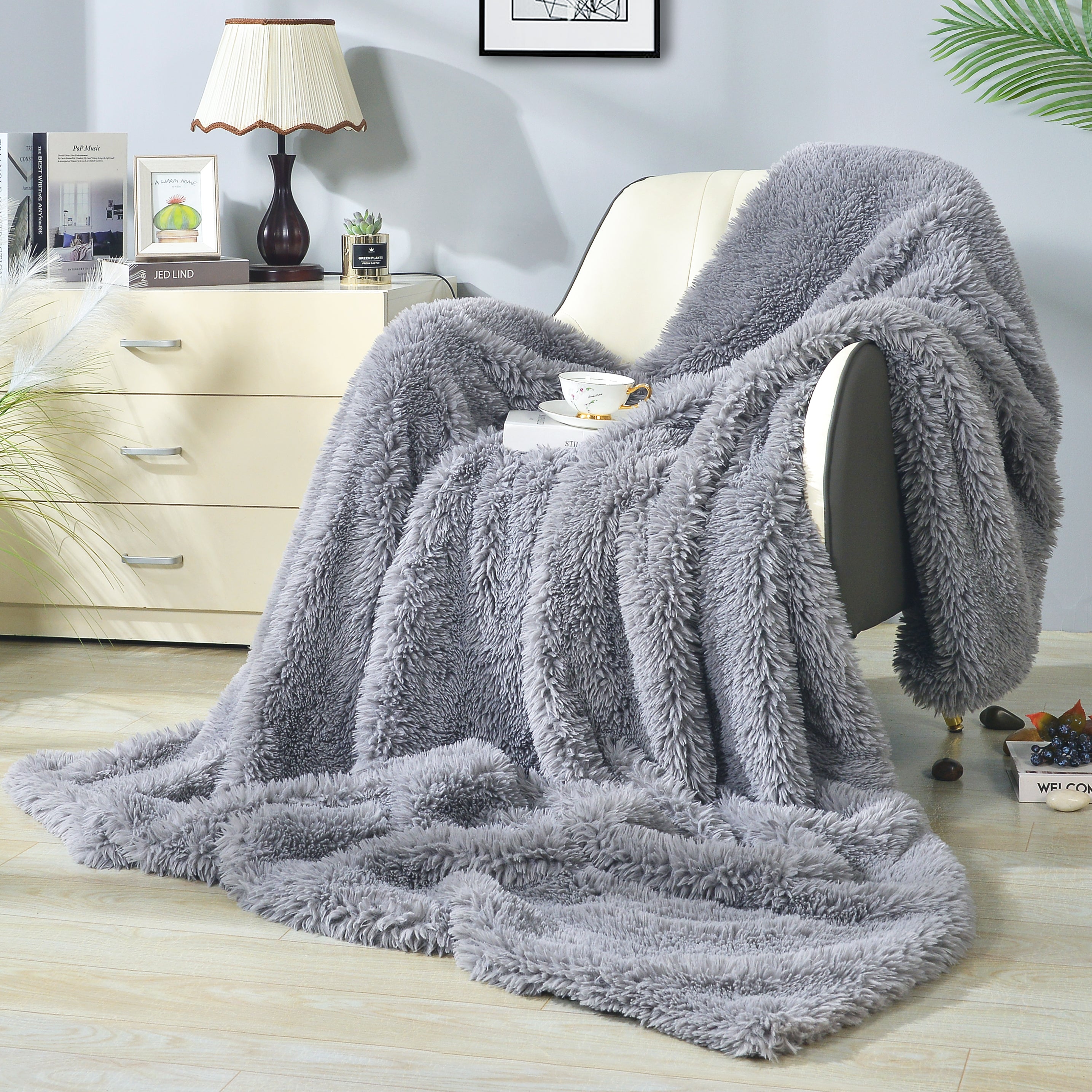 Shaggy long Faux fur Throw Blanket