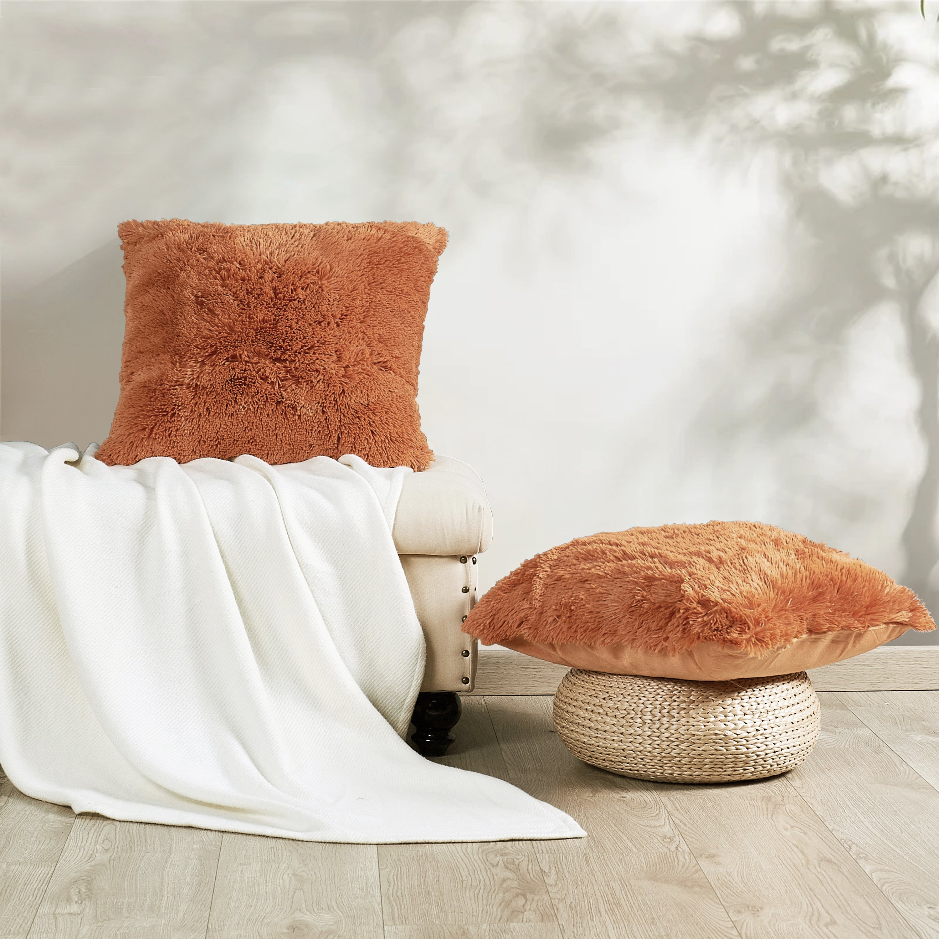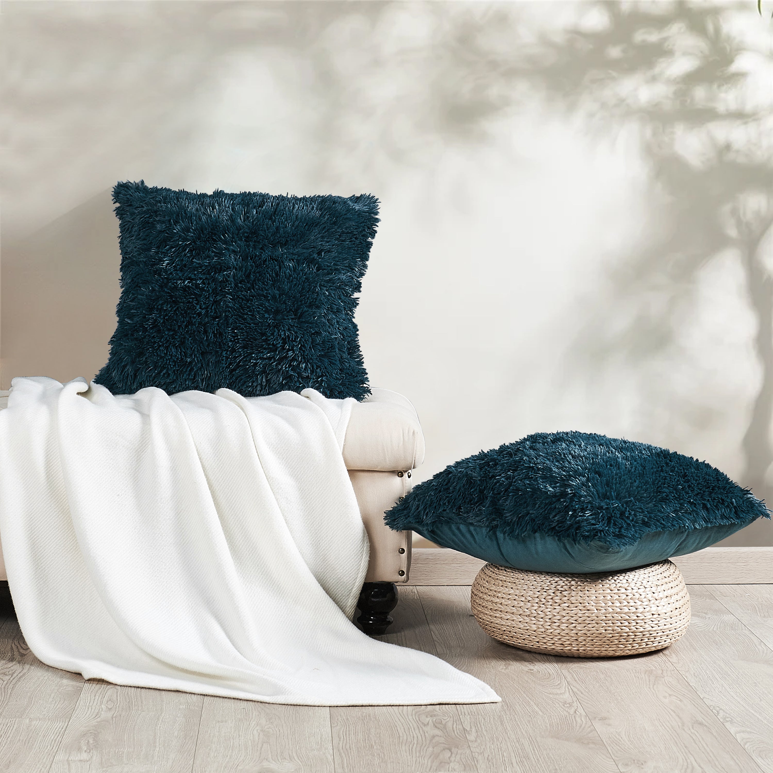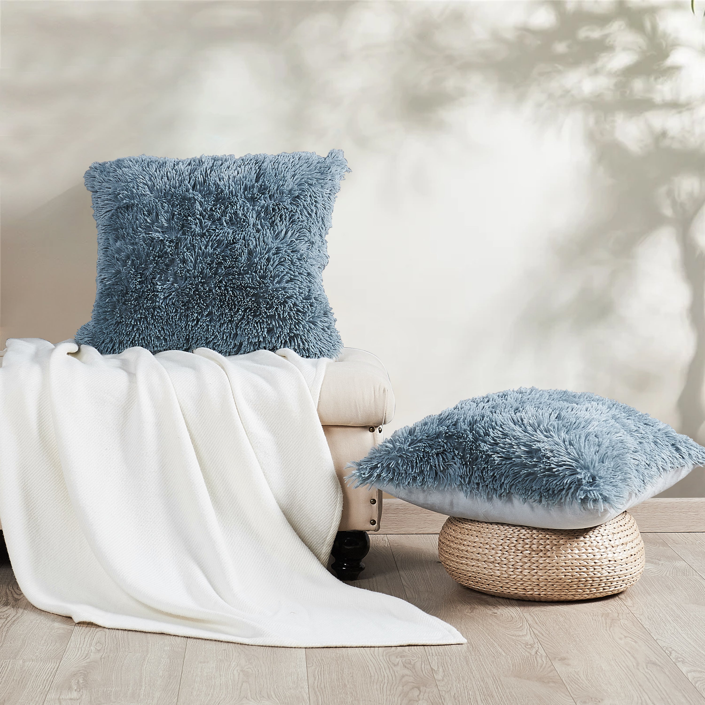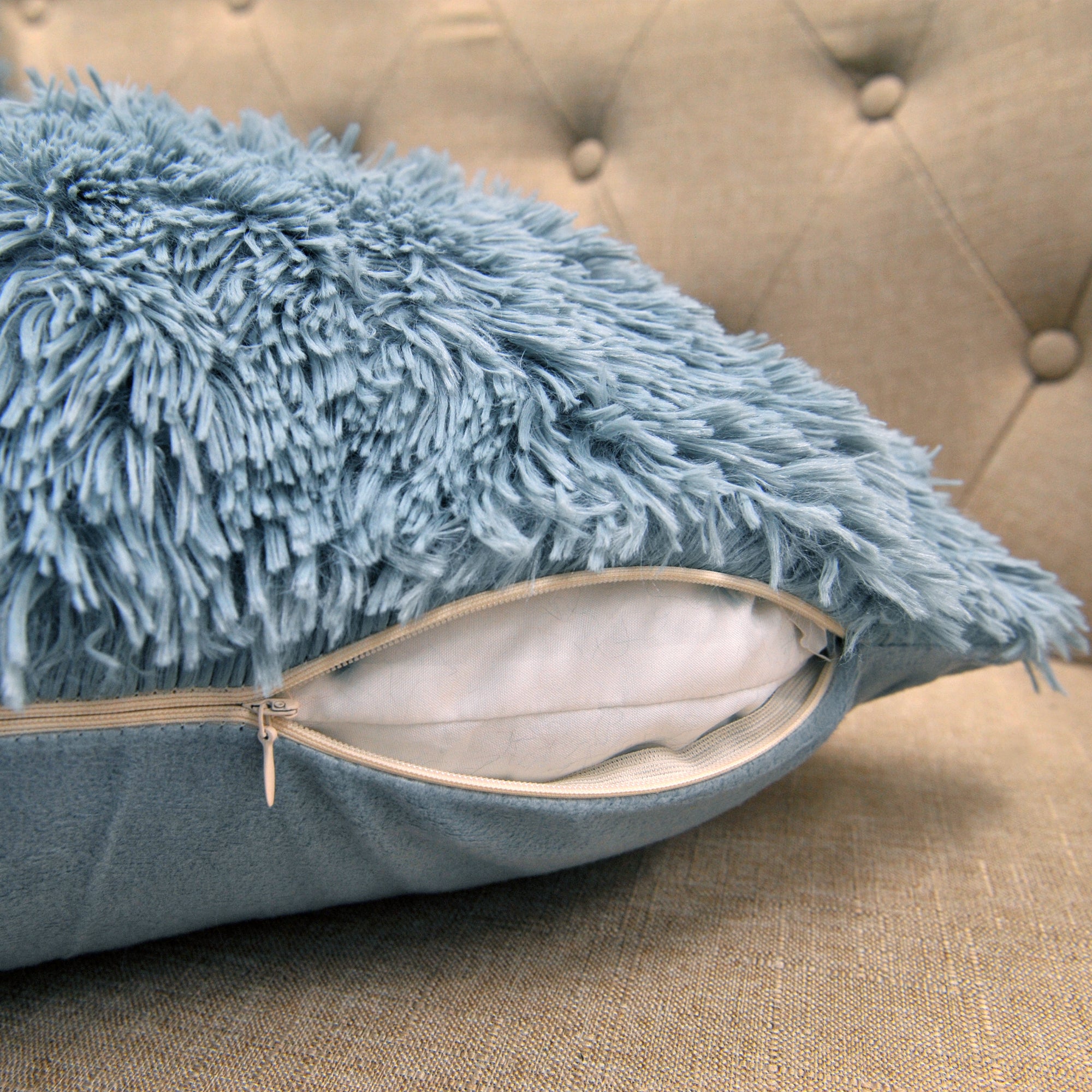 Add cozy flair to your living space with this Halsted 3-piece throw and pillow shell set. Ideal for a bed or your favorite armchair, the set includes one throw blanket and two square pillow shells, crafted from microfiber polyester with shaggy fauxfur fronts for a snuggly, warm texture. The machine washable set is available in your choice of burnt orange, ivory, silver blue, or teal.
