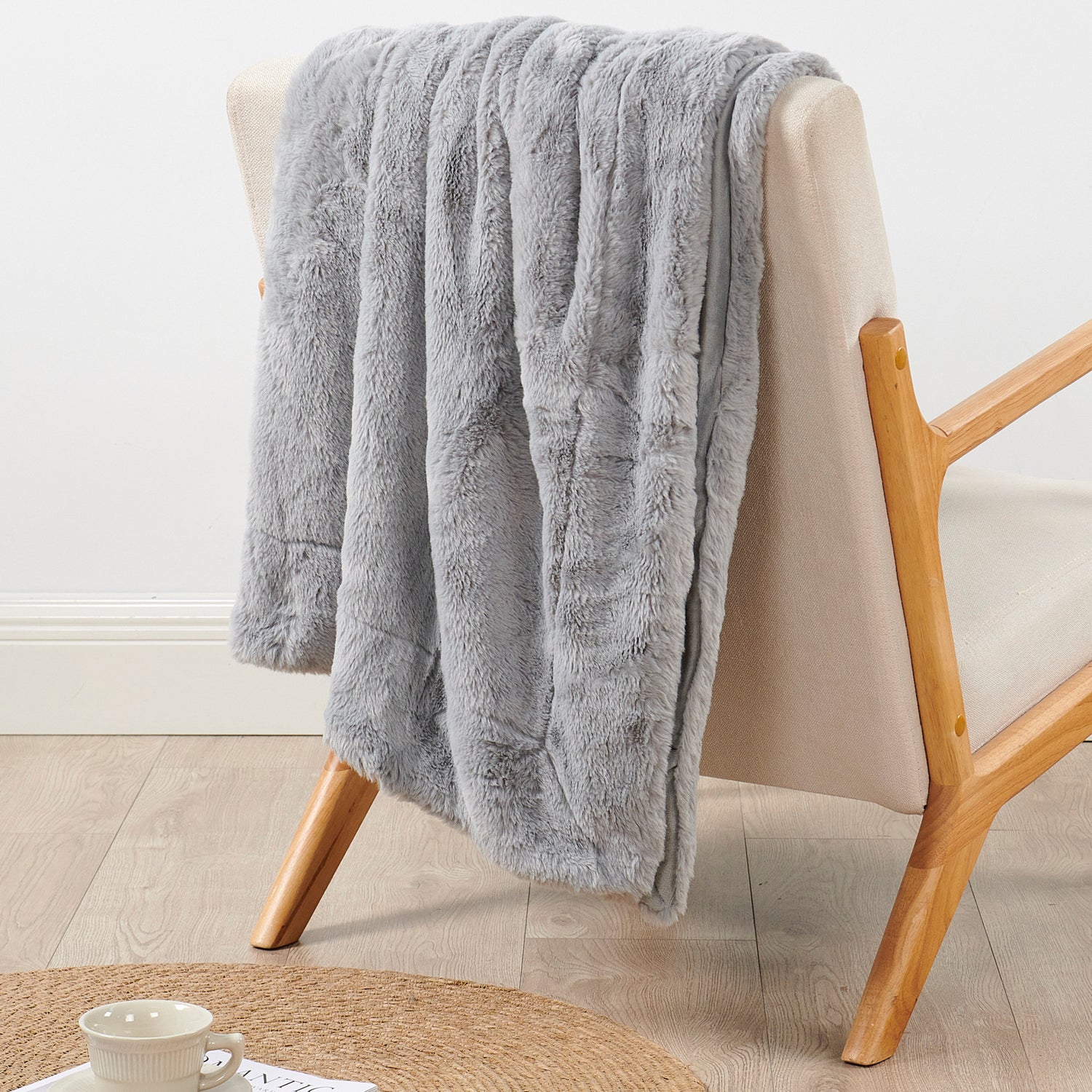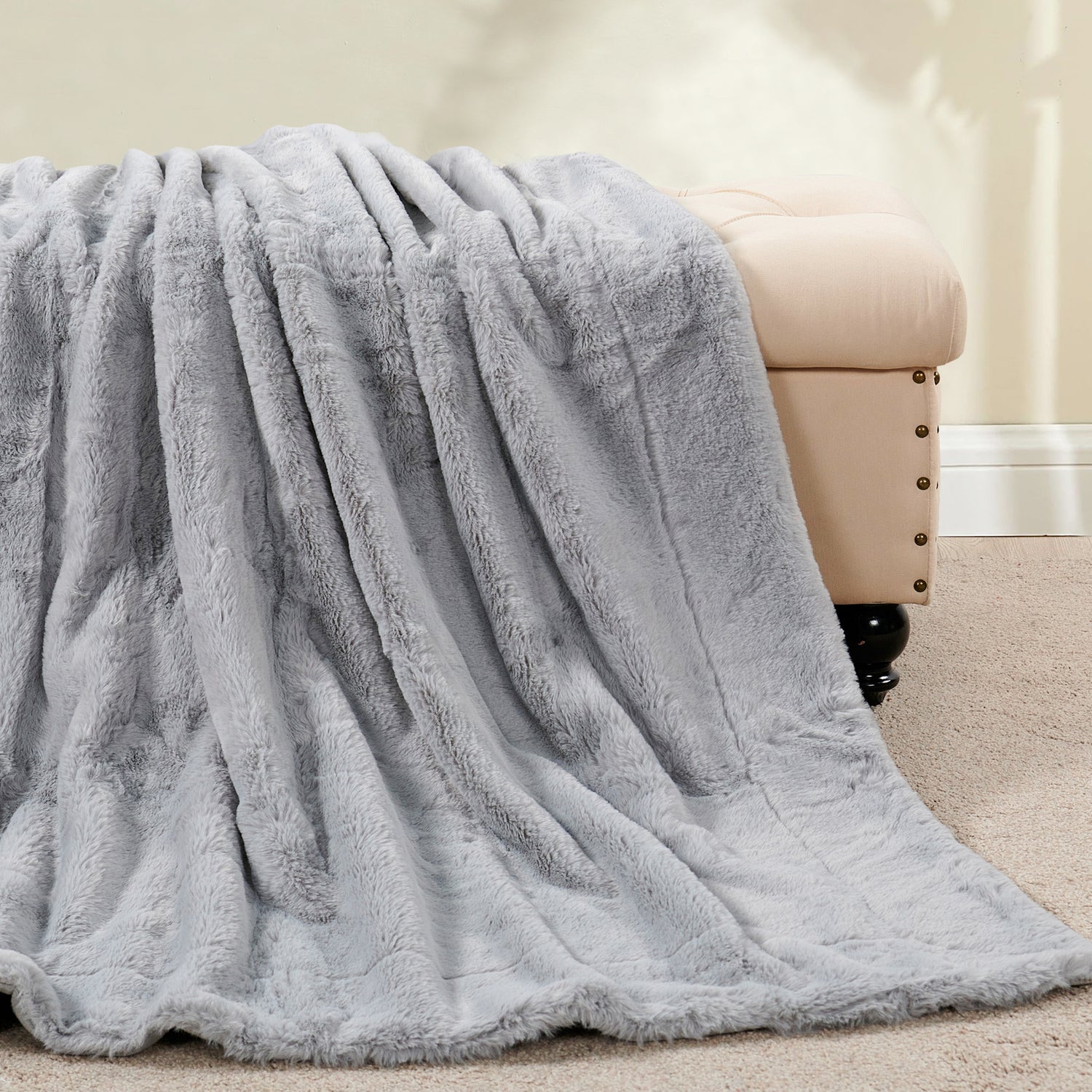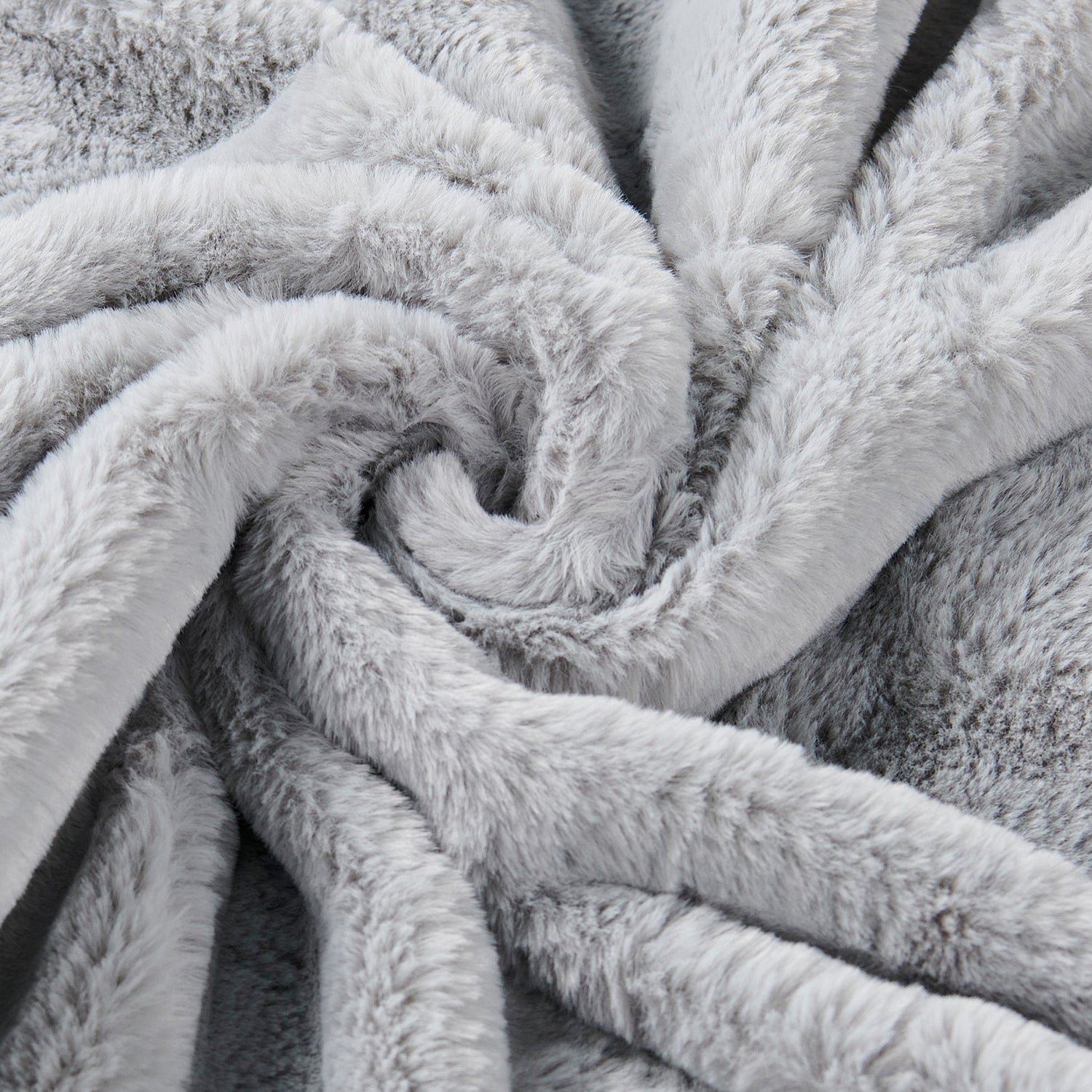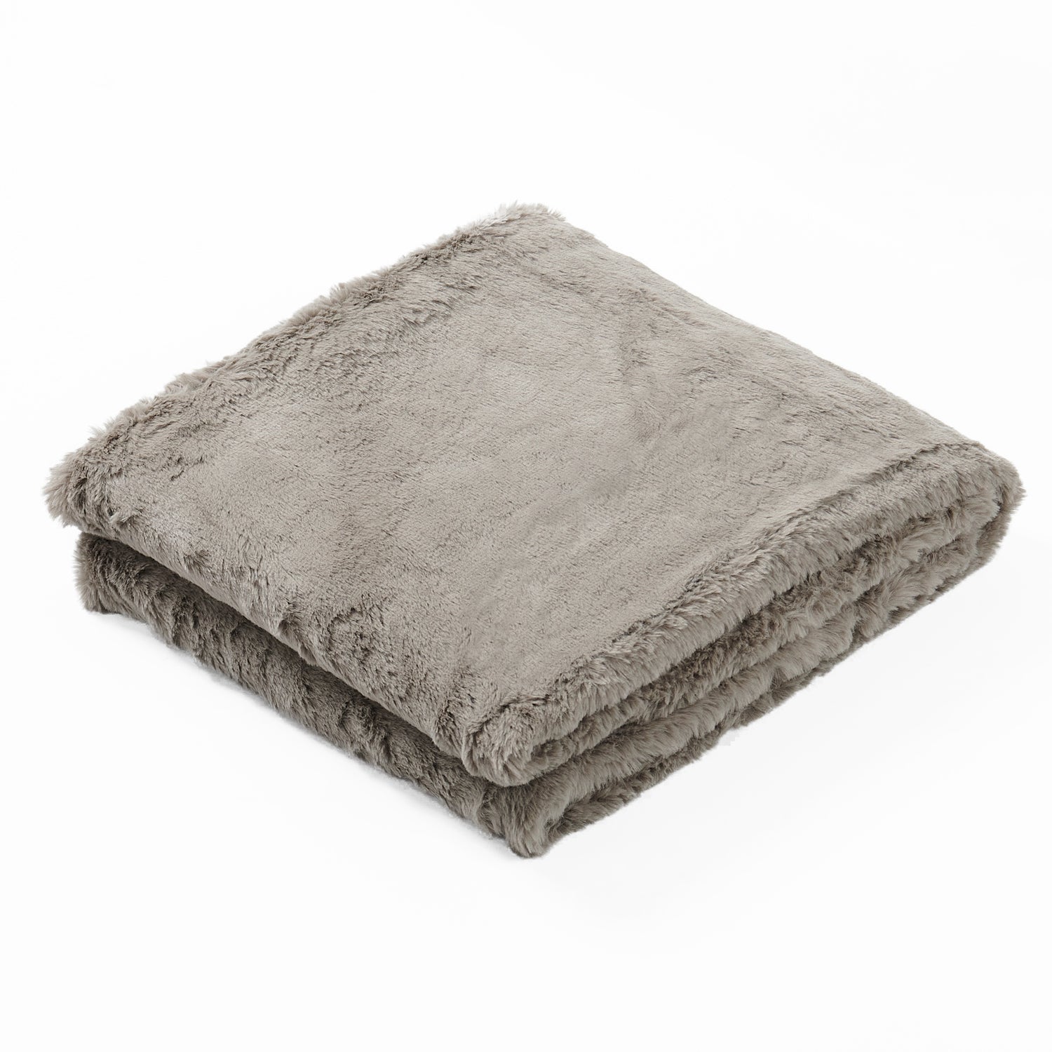 Add a cozy and elegant touch to your living space with this Solid Light FauxFur Throw. Made from high-quality materials, this throw is not only pleasing to the eye but also extremely comfortable to the skin. Its pristine fauxfur texture will create a warm and inviting ambiance that you'll love. This versatile throw makes the perfect gift for your loved ones to snuggle up in when it's cold outside. It comes folded and wrapped in a ribbon which adds to its charm. With proper care, this throw will last a lifetime!