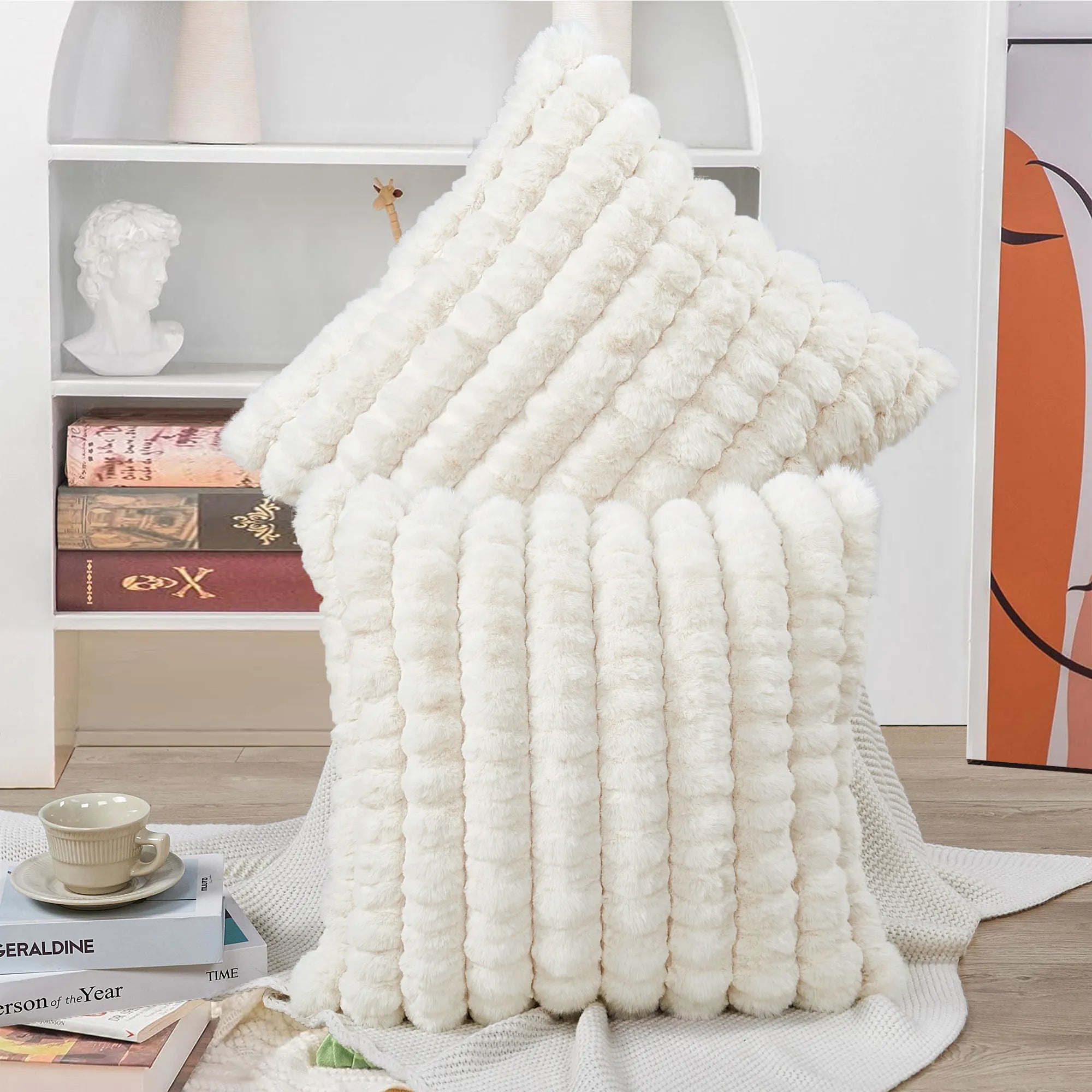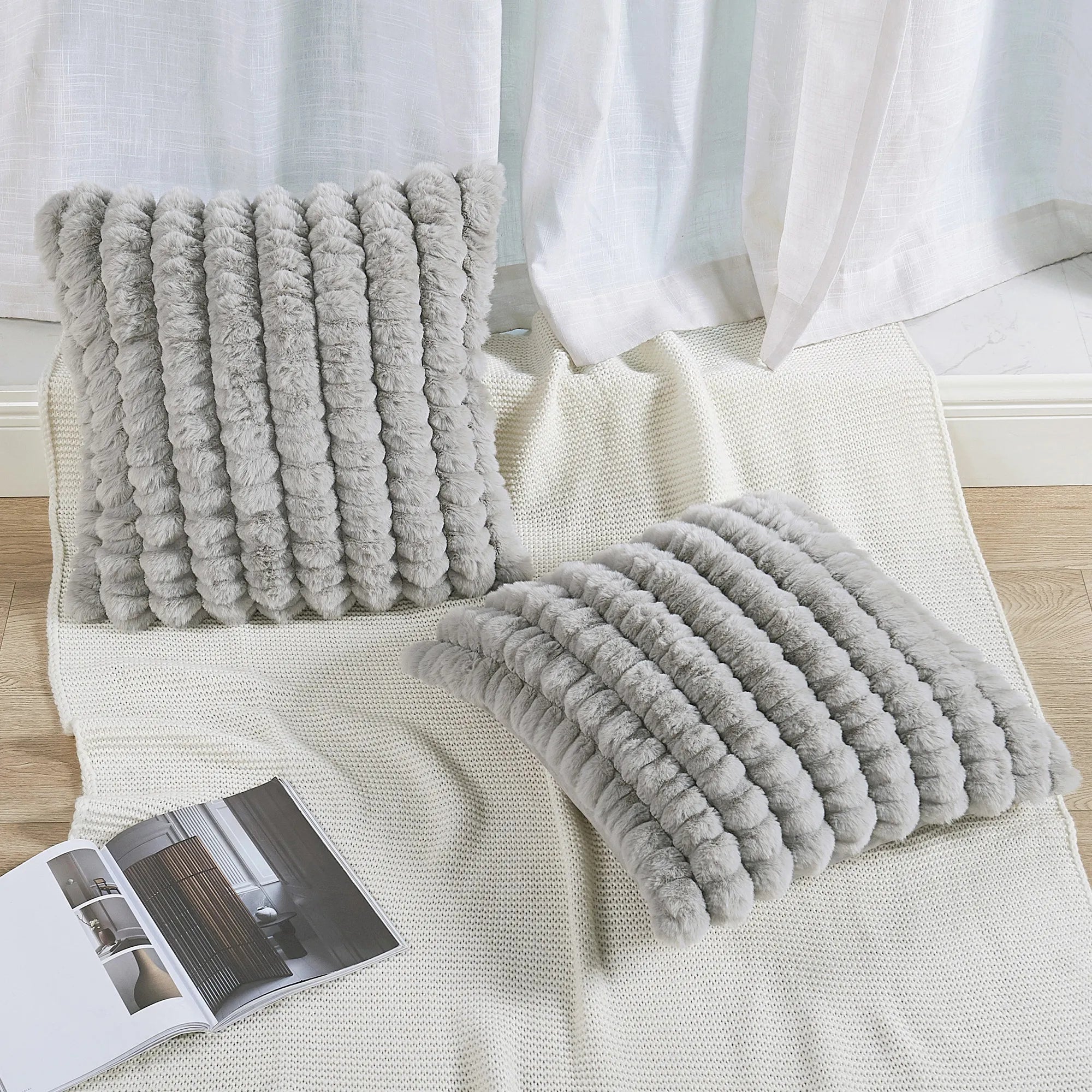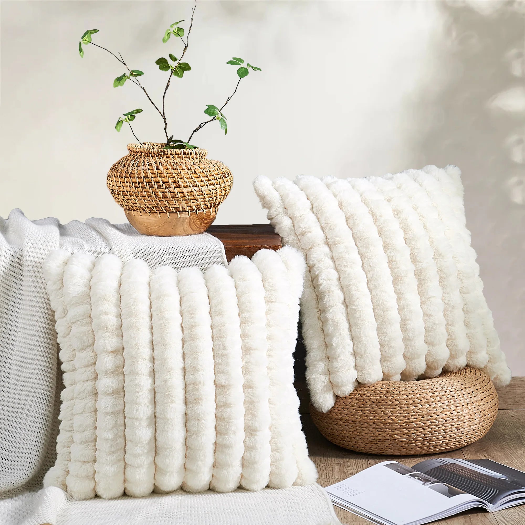 These pillow covers are the epitome of sophistication, featuring a plush, vertically ribbed texture on the front for a timeless and elegant look. The back is crafted from smooth micromink fabric, providing a luxurious contrast in texture and unmatched comfort.