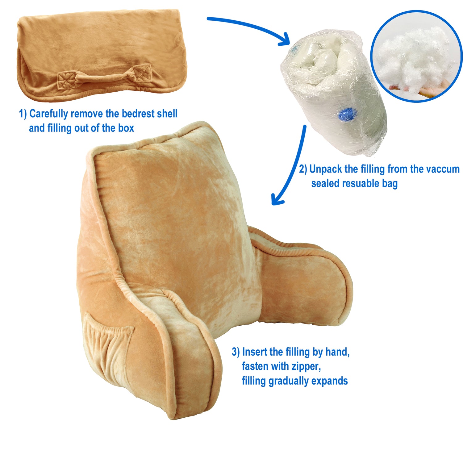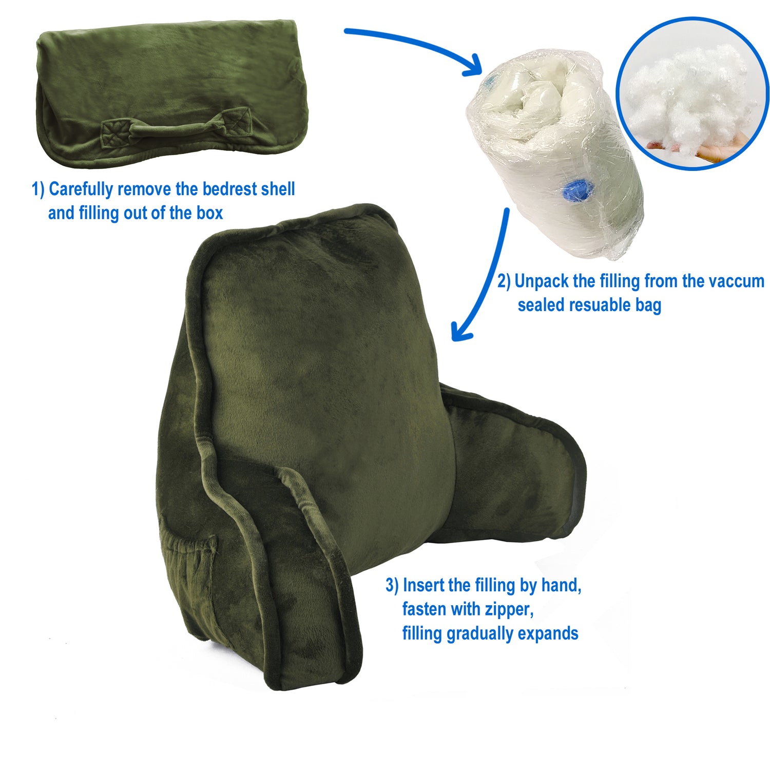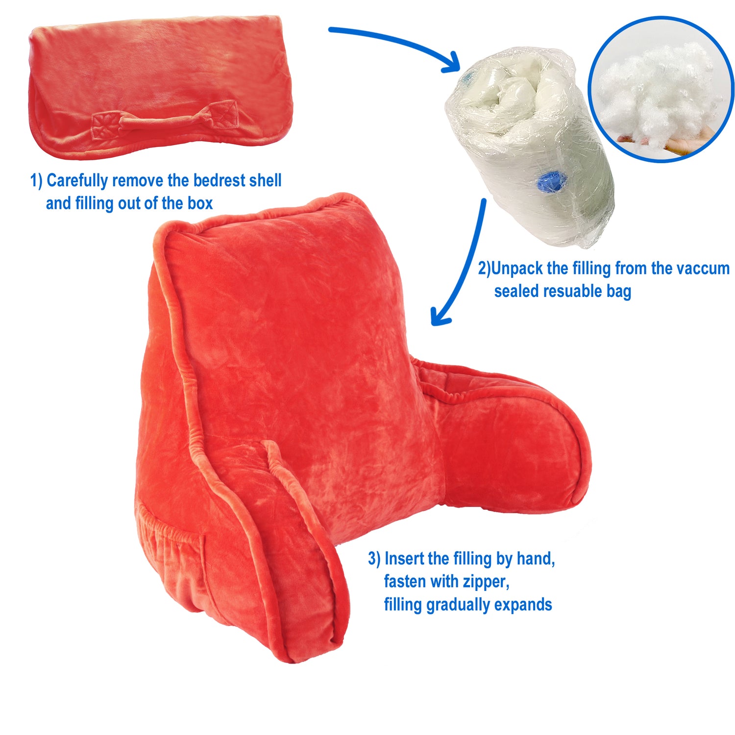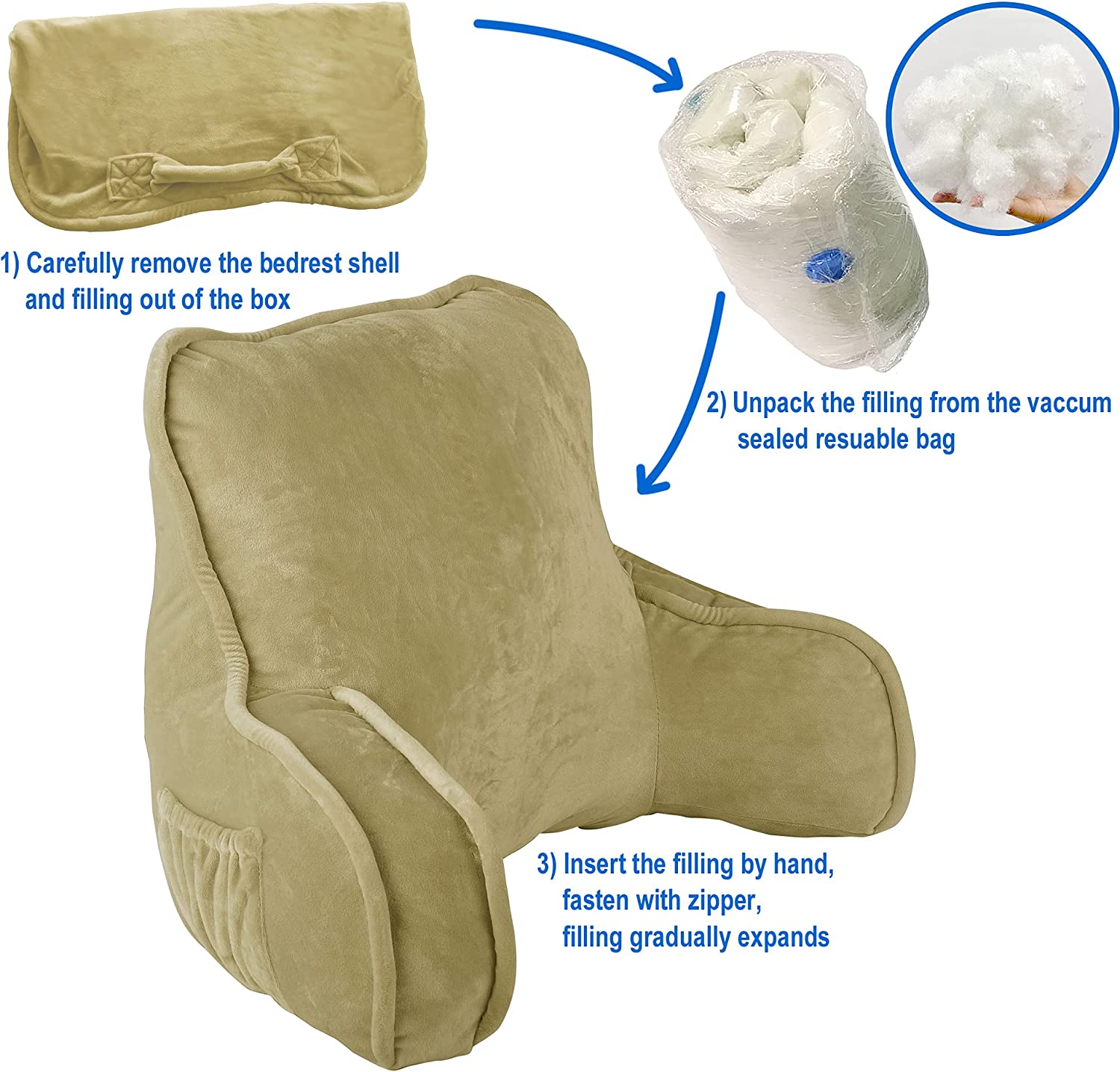 • Easy Assembly: Take delight in the DIY filling that is packaged in a vacuum sealed, space-saving reusable bag. The Bed rest shell is included in the box, ready to be filled. Easy fill directions create a fun Do It Yourself atmosphere.