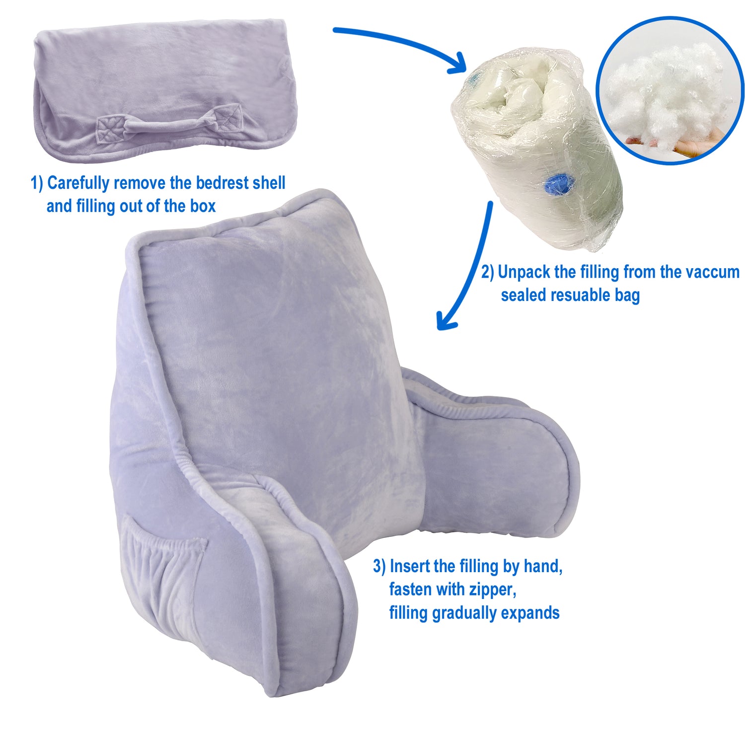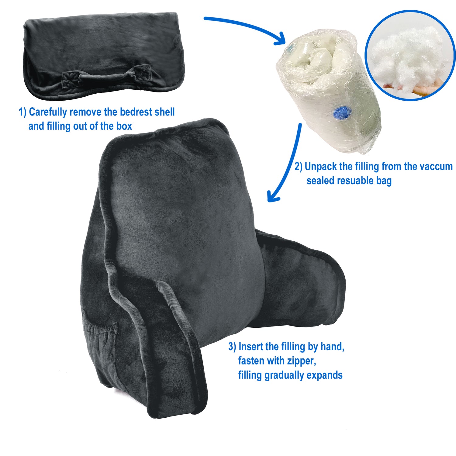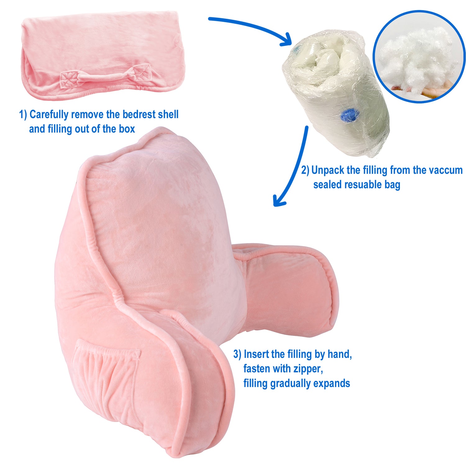 • Easy Assembly: Take delight in the DIY filling that is packaged in a vacuum sealed, space-saving reusable bag. The Bed rest shell is included in the box, ready to be filled. Easy fill directions create a fun Do It Yourself atmosphere.