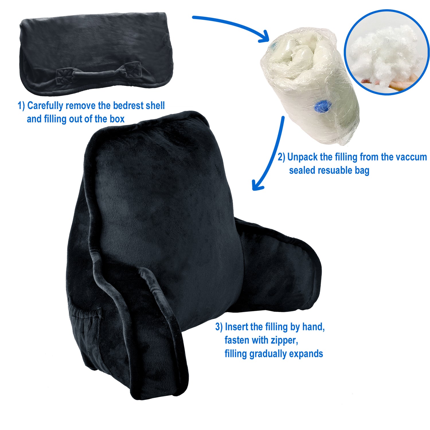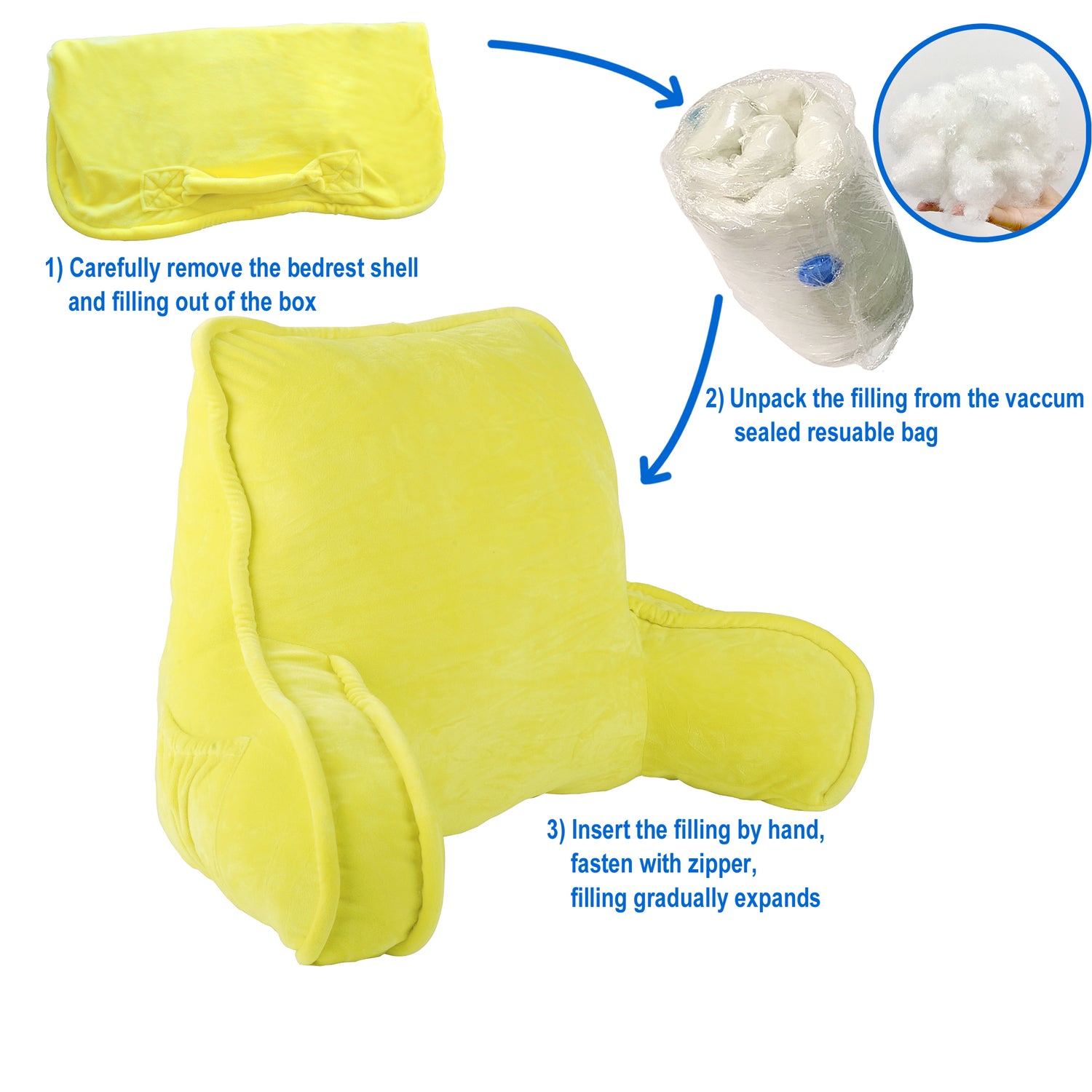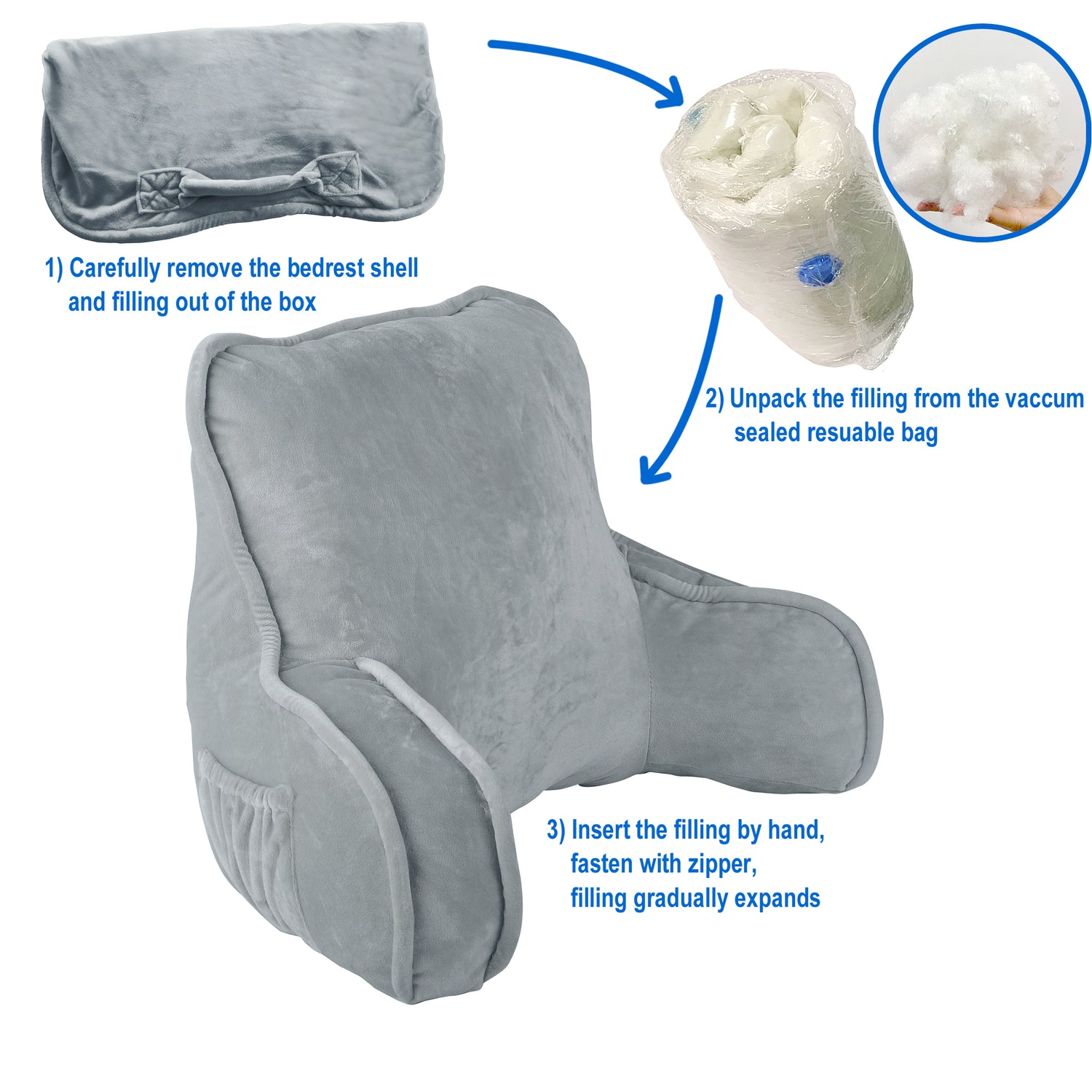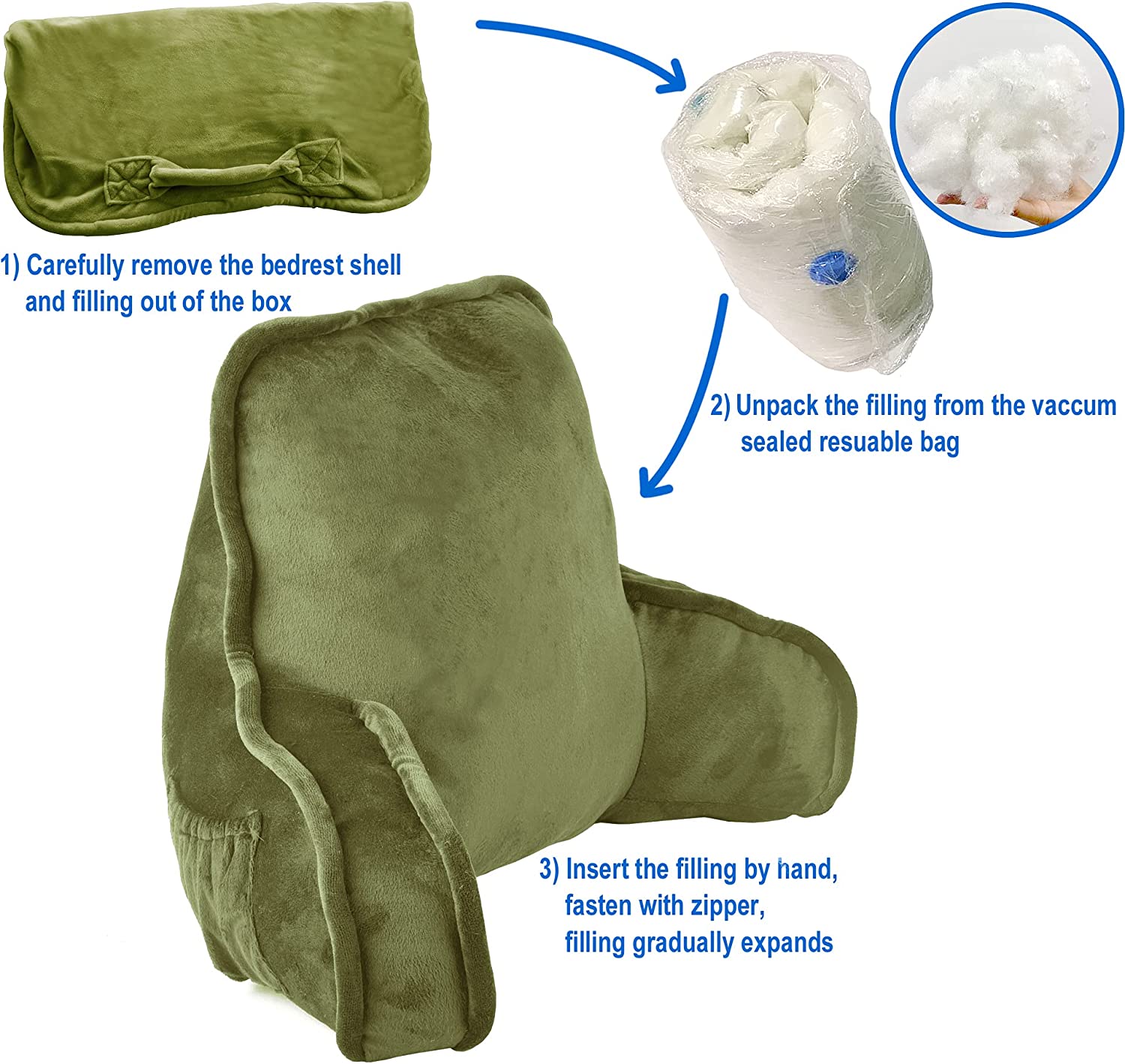 • Easy Assembly: Take delight in the DIY filling that is packaged in a vacuum sealed, space-saving reusable bag. The Bed rest shell is included in the box, ready to be filled. Easy fill directions create a fun Do It Yourself atmosphere.