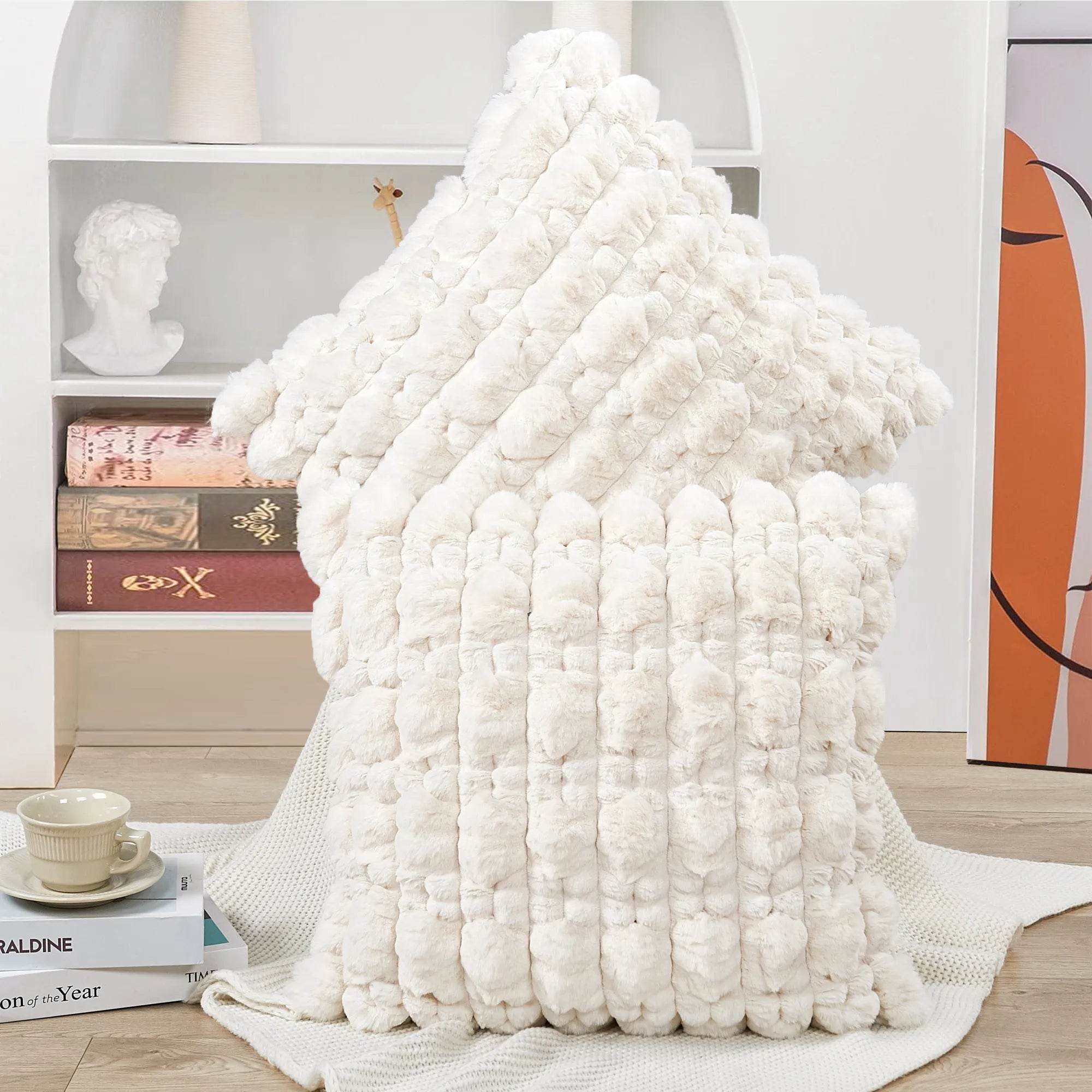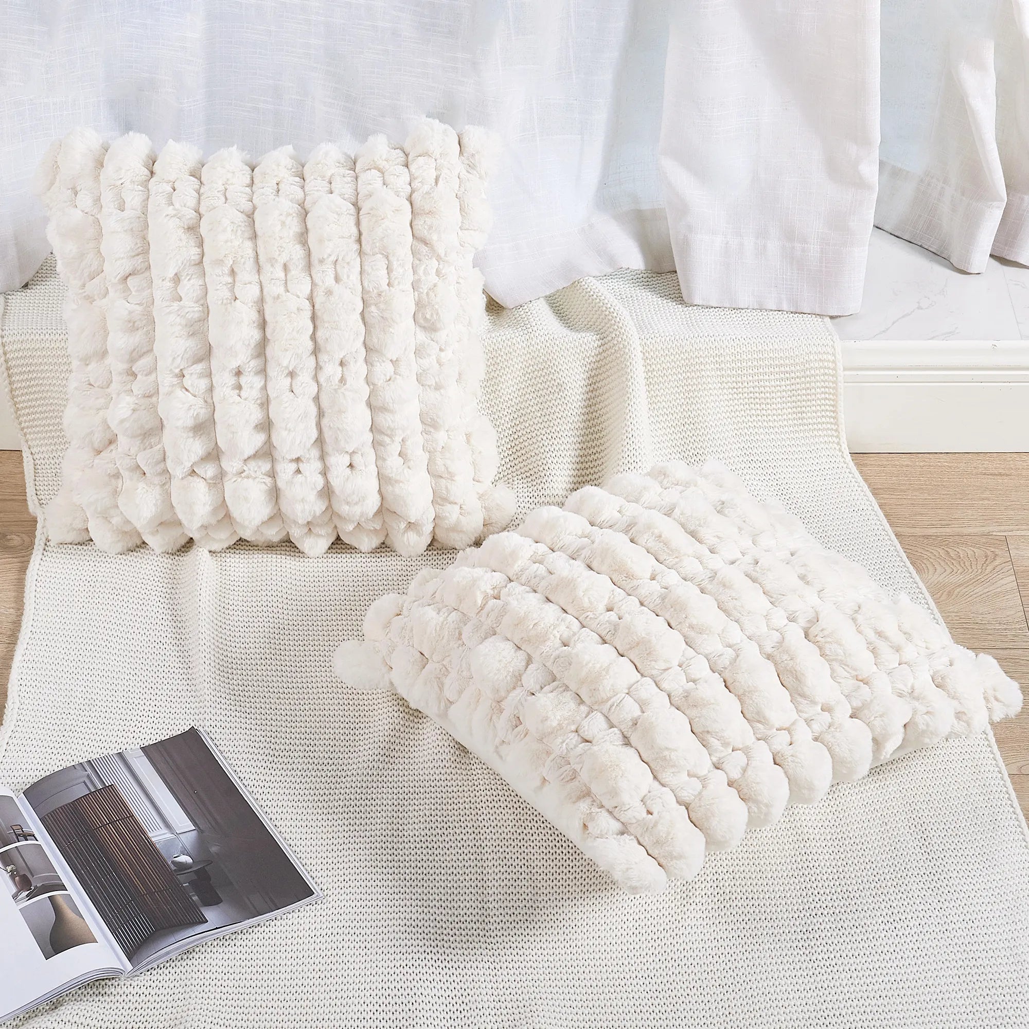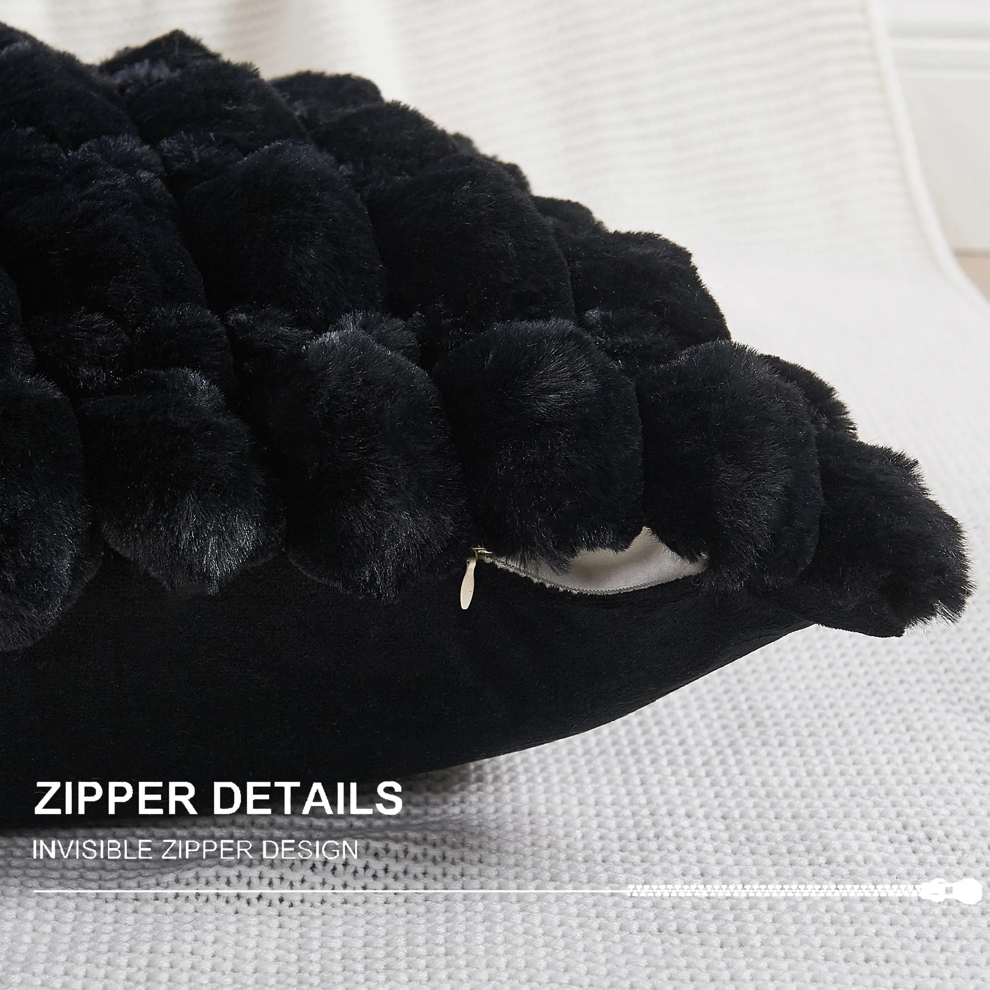 Textured Faux Fur Spandex Bubble 2 Piece Decorative Pillow Covers (20" x 20")