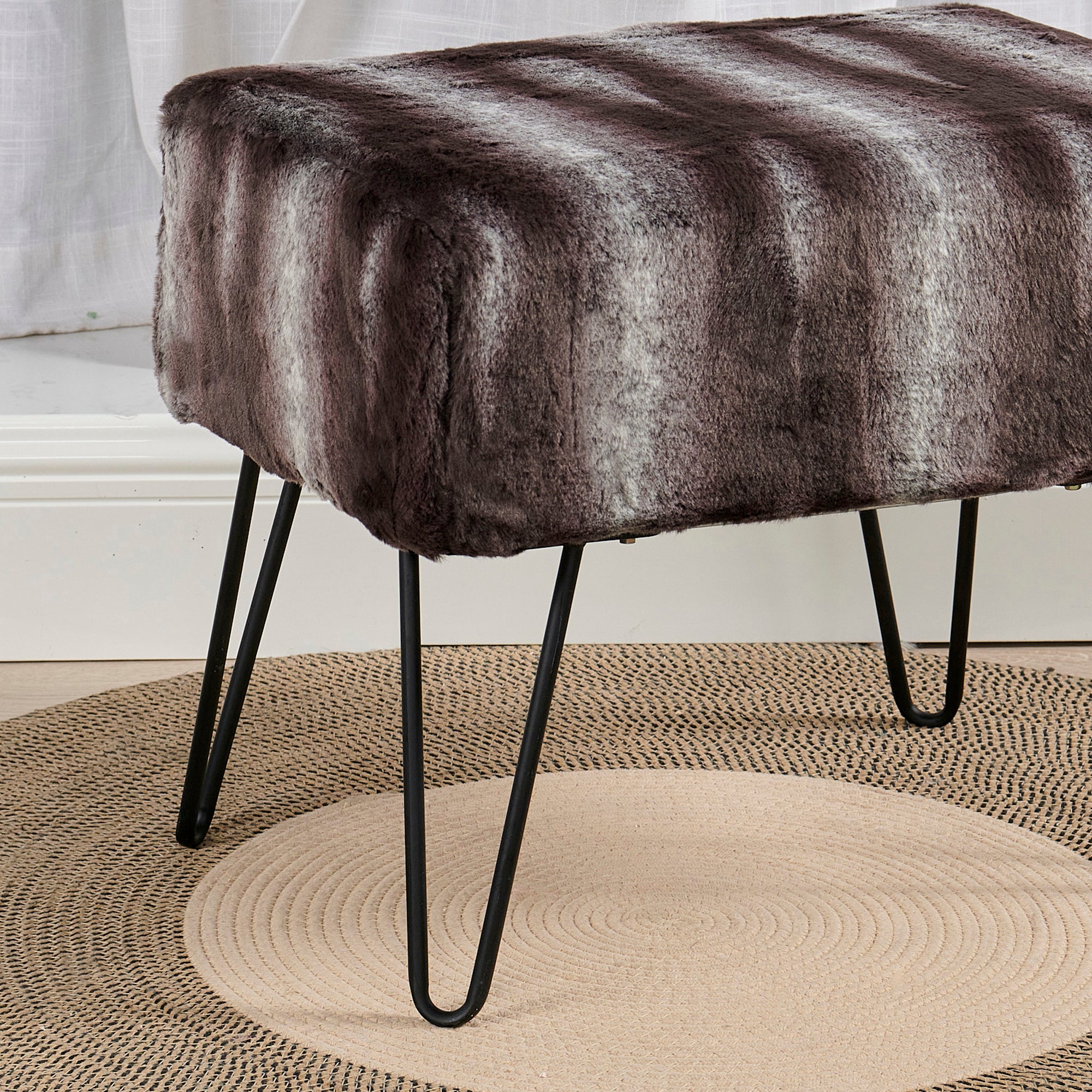 Tip Printing Light Faux Fur Ottoman (19" x 13" x 17")