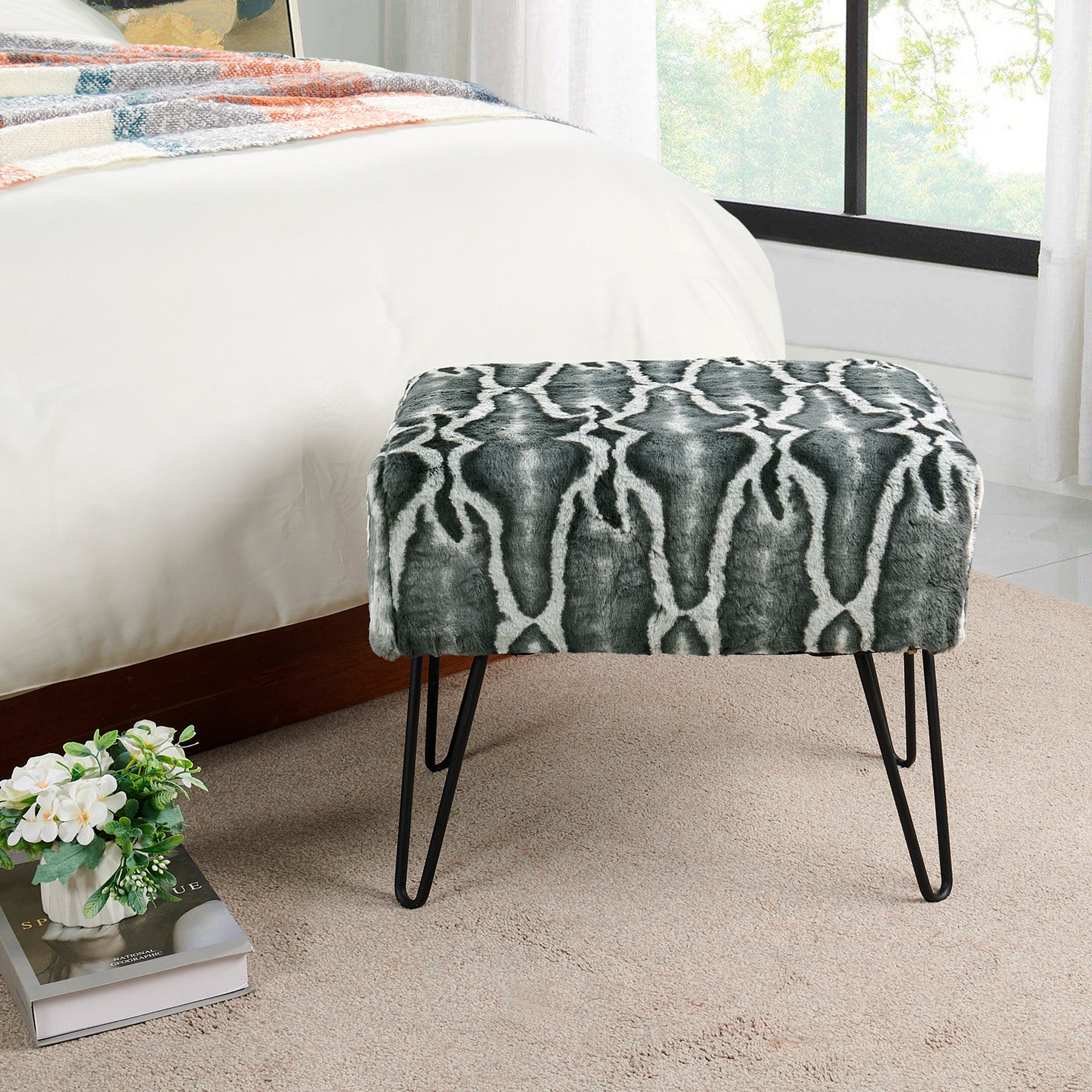 - PROTECT AND CARE FOR YOUR BENCH! Spot clean seat cushion cover only on visible stains and spots using mild soap and a clean, soft towel. Metal hairpin legs may be wiped with a clean, damp towel. All products are built to last a lifetime when proper care and weight capacity is followed. Faux fur fabric is heat-treated for ultimate fade and wear resistance.