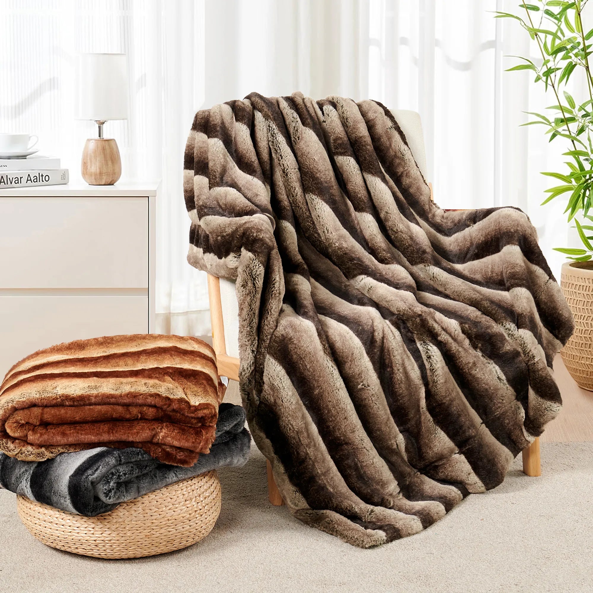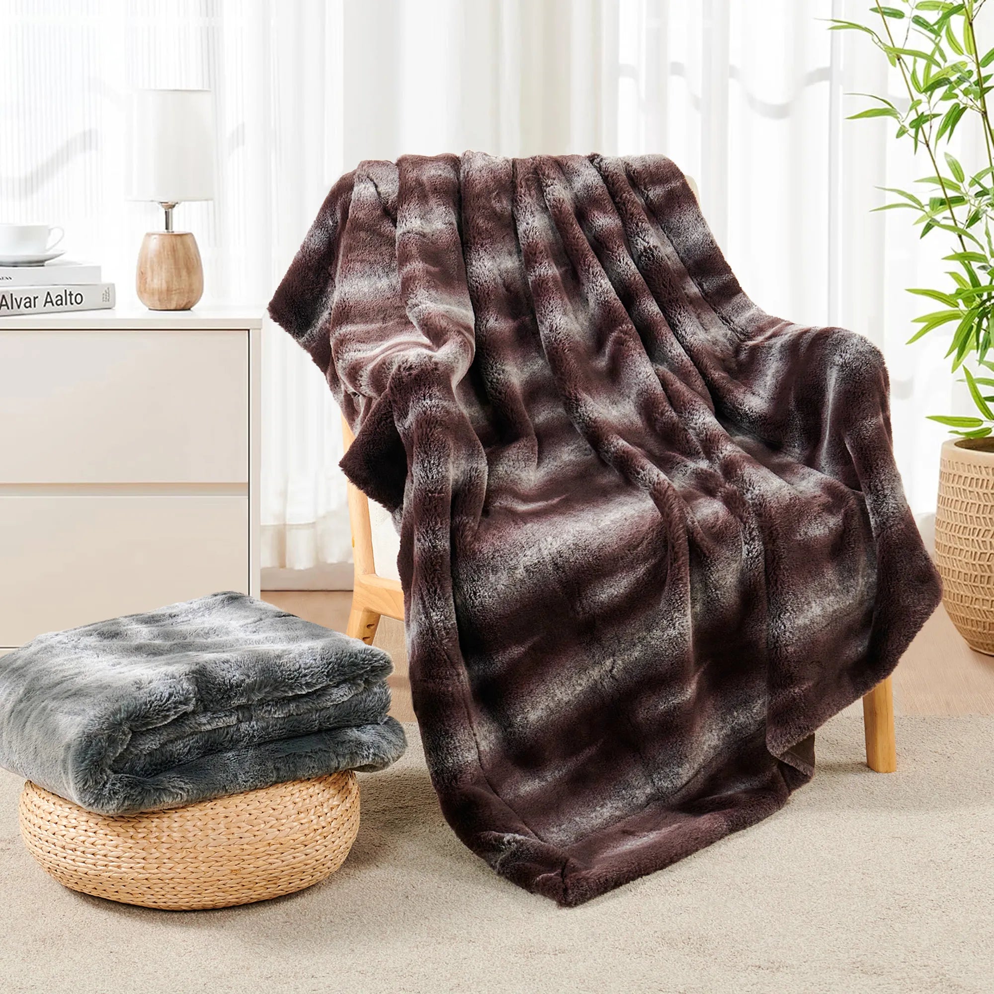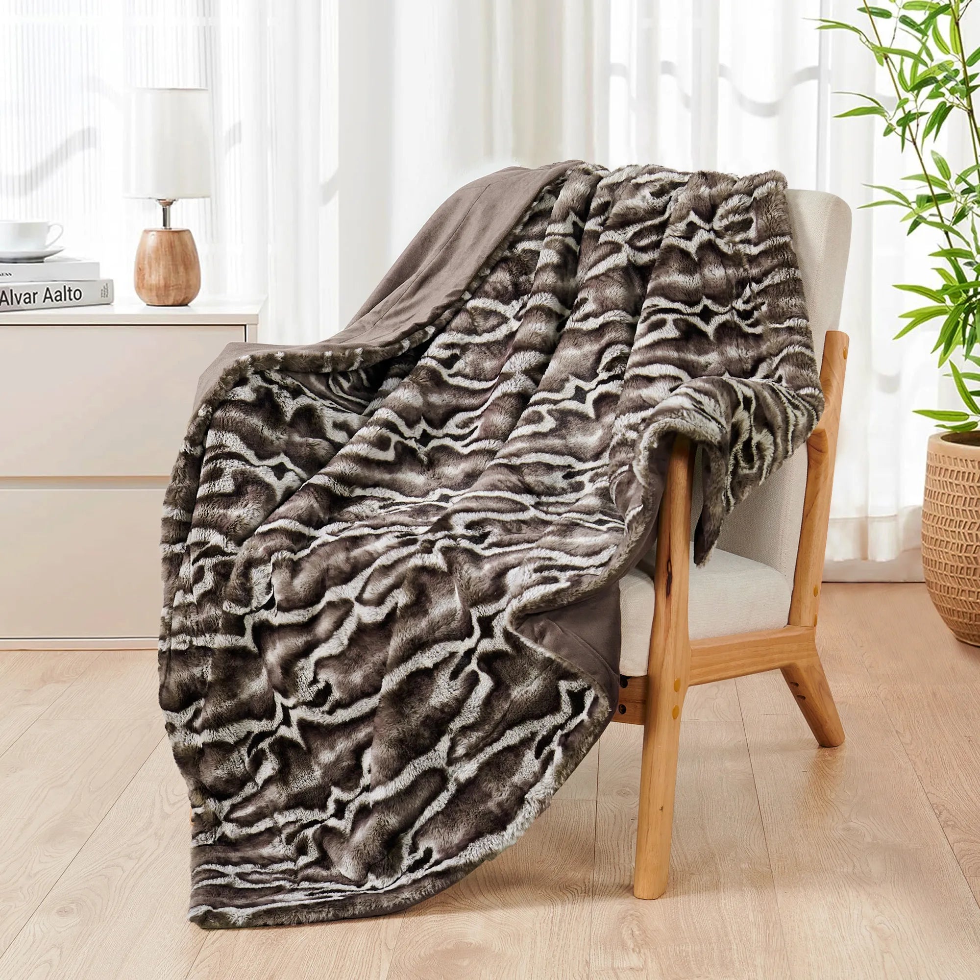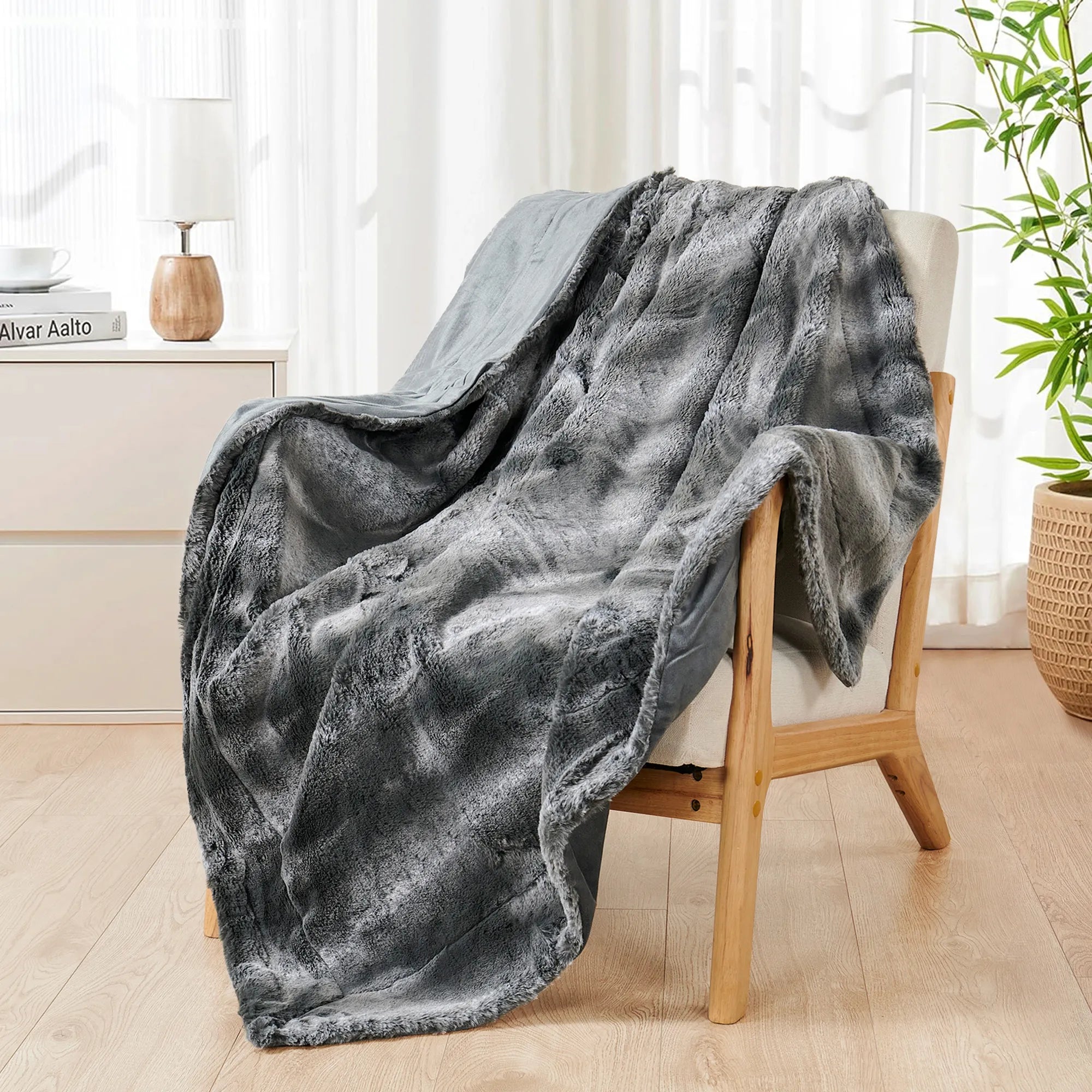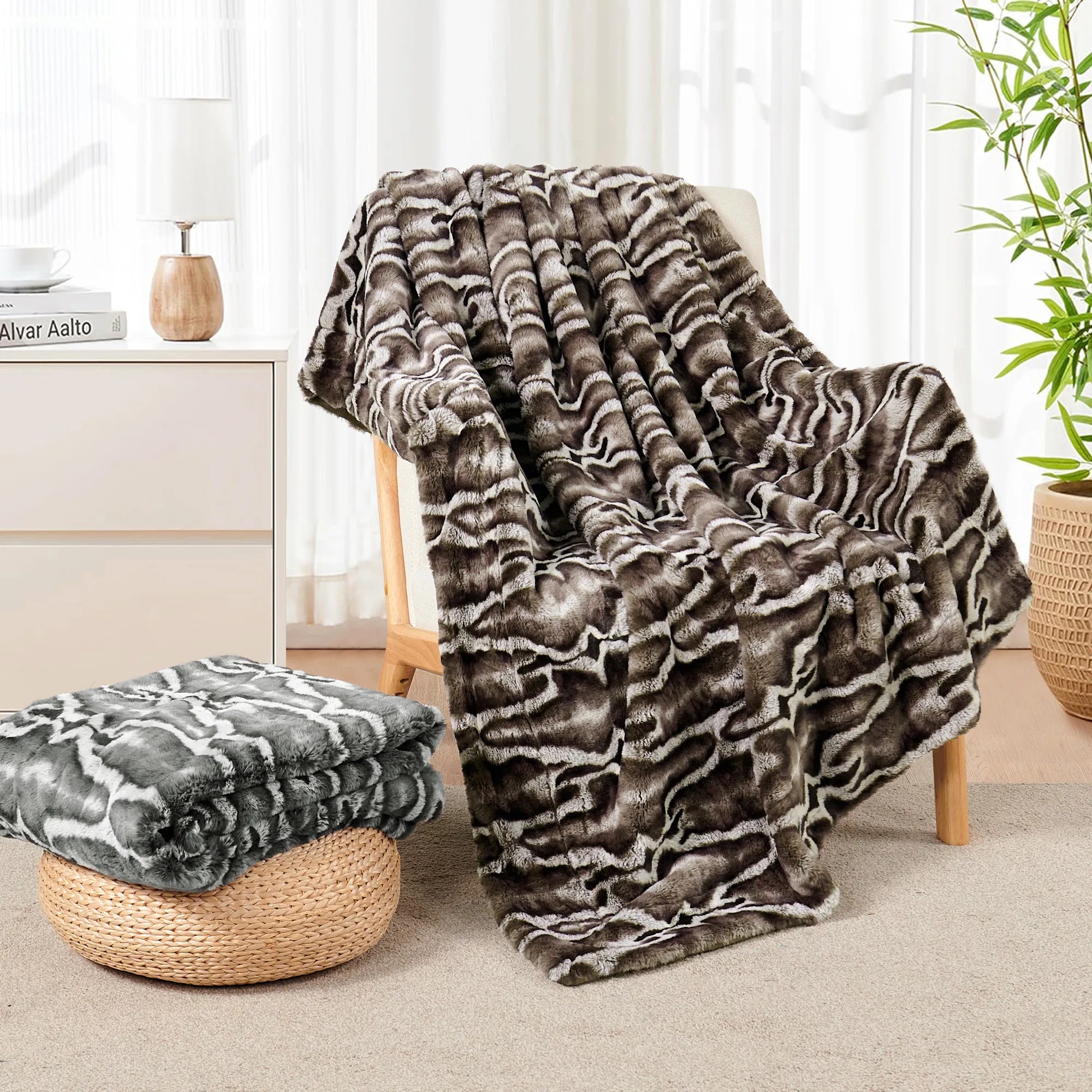 Tip Printing Light Faux Fur Throw Blanket (50"x60")