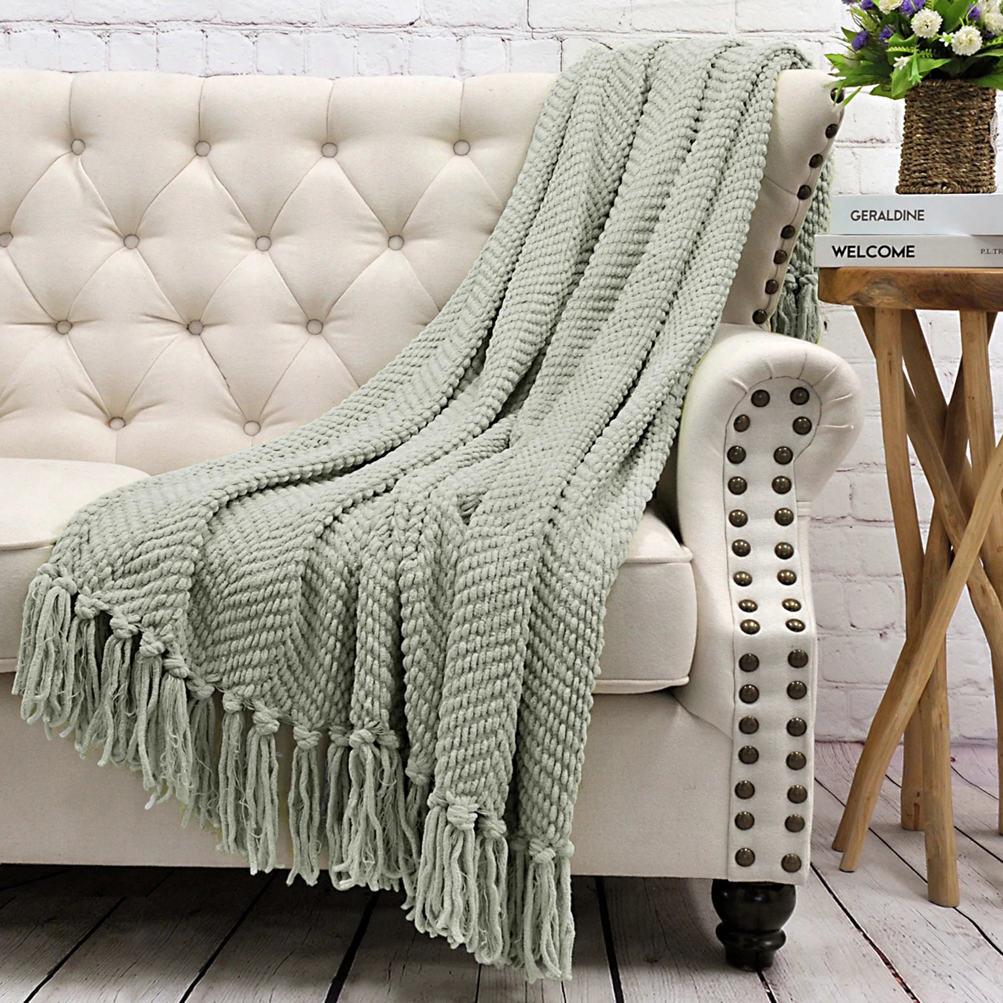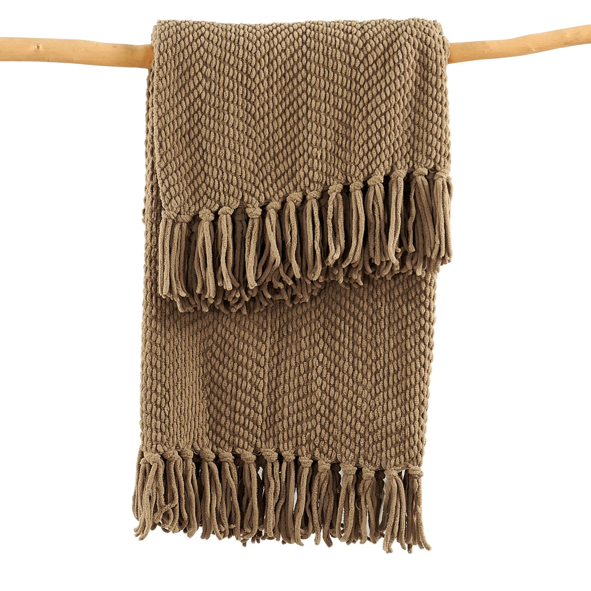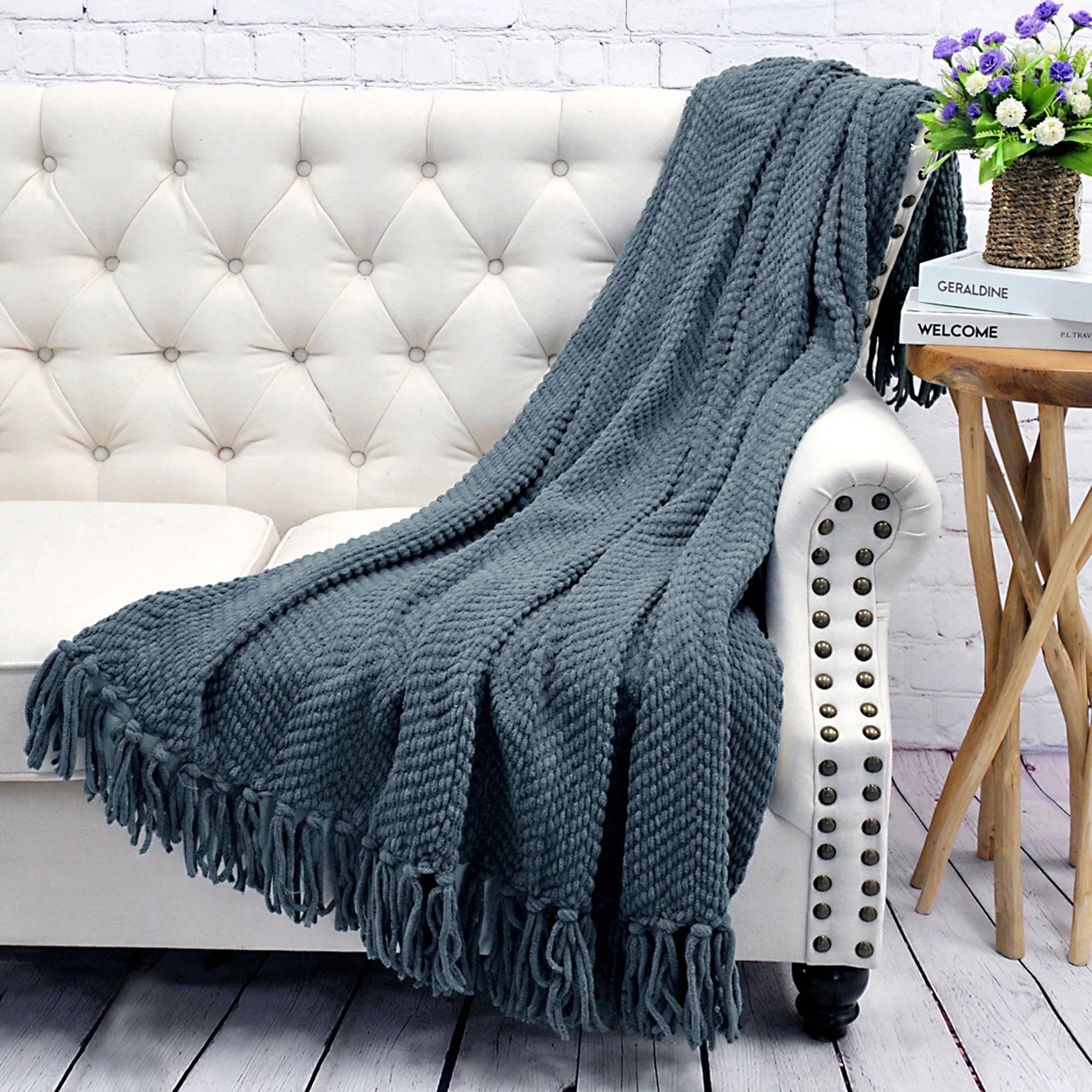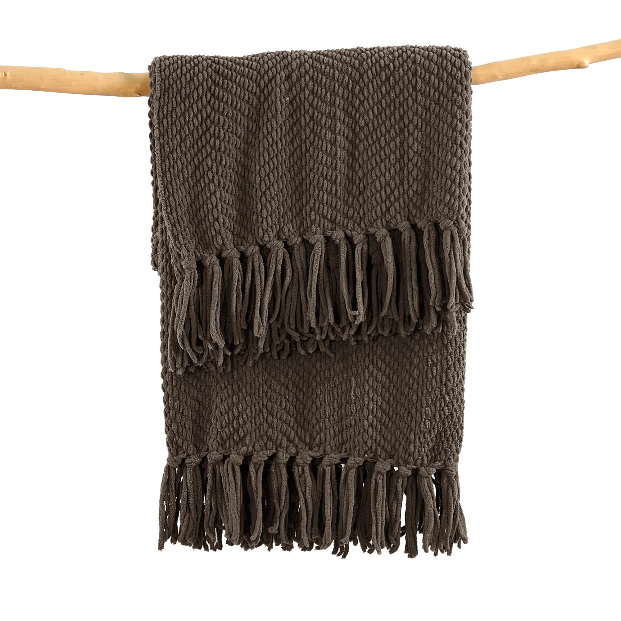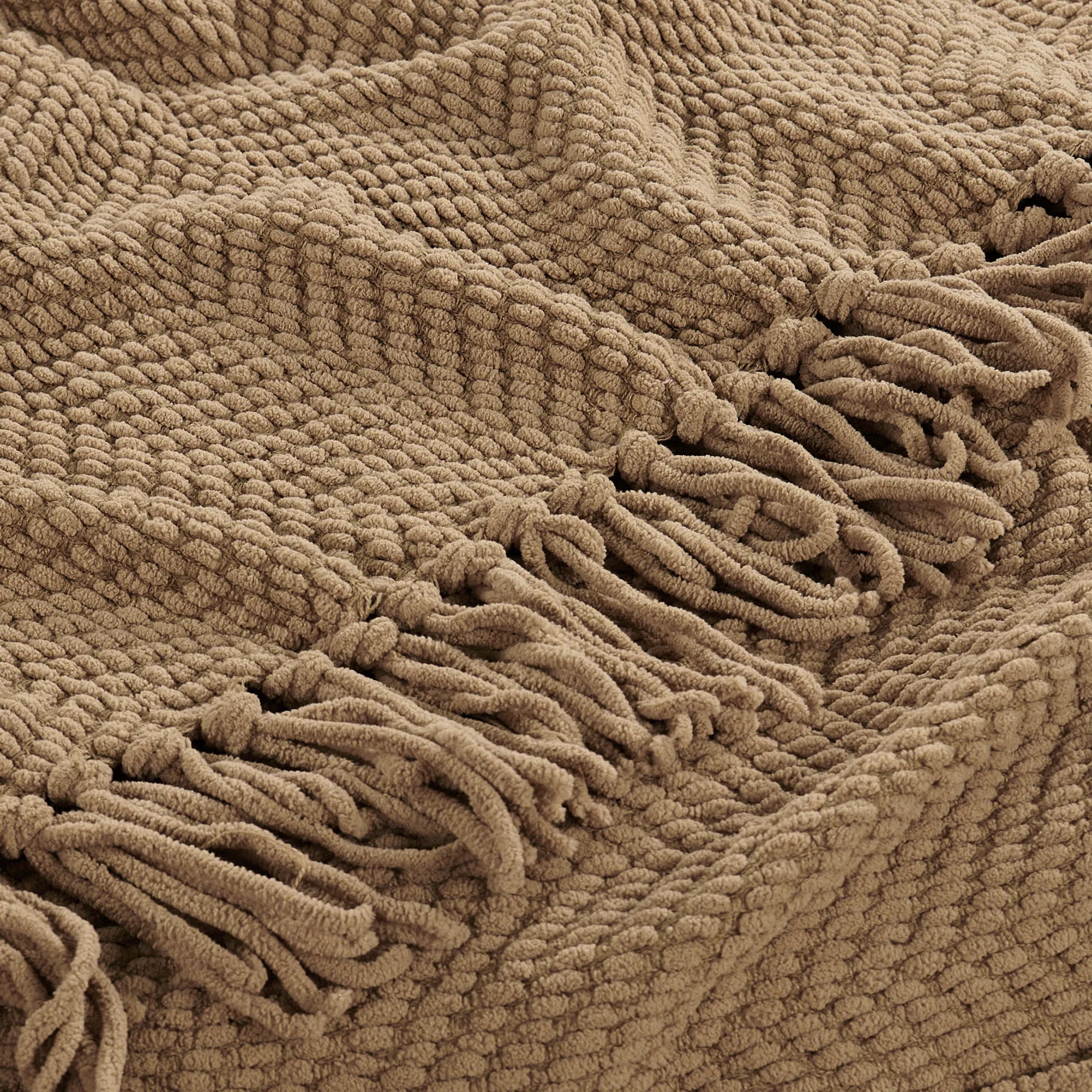 • Construction: This woven knitted tweed throw is made of super soft microfiber polyester. The design is finished off with adorable knotted braid tassels along each side of the widths.