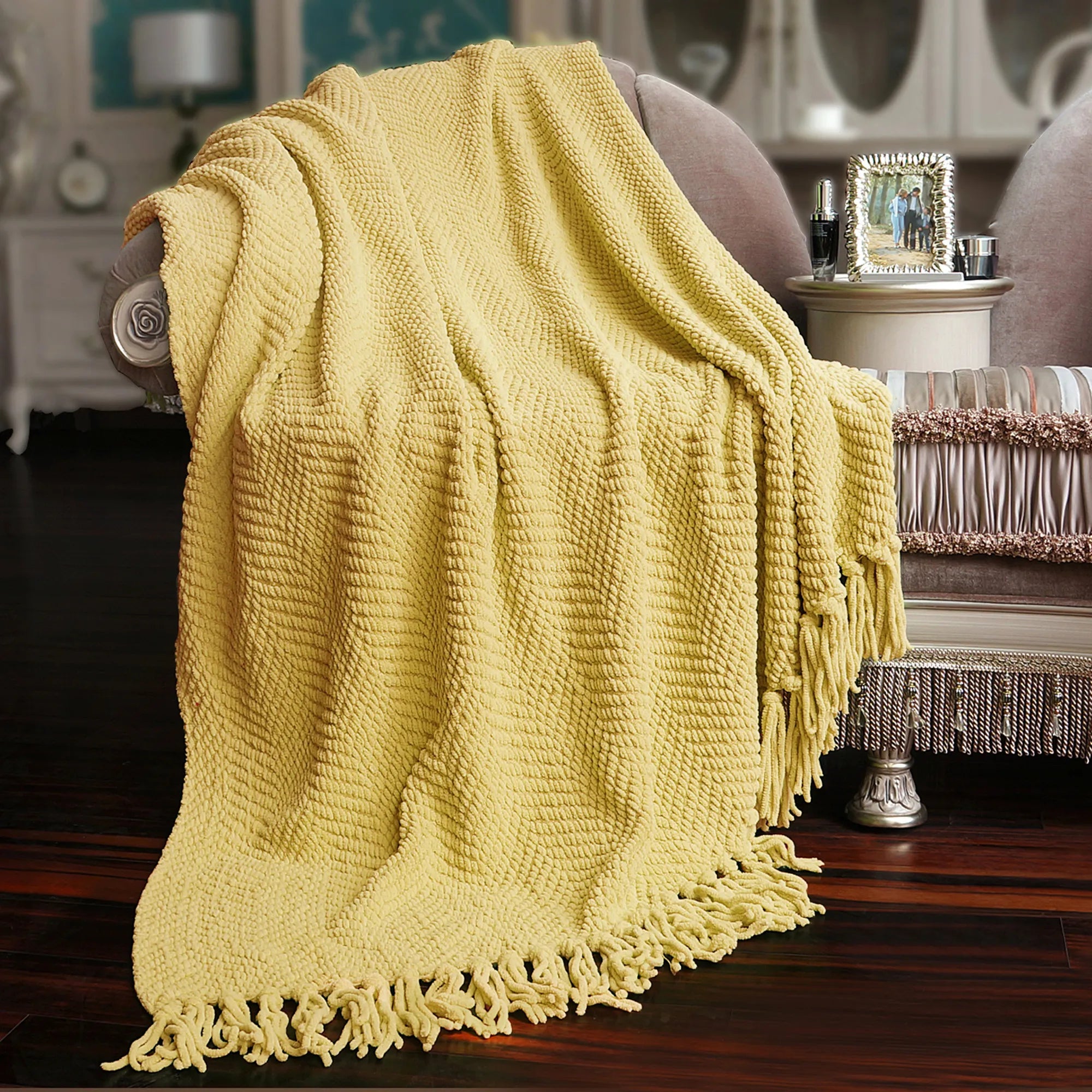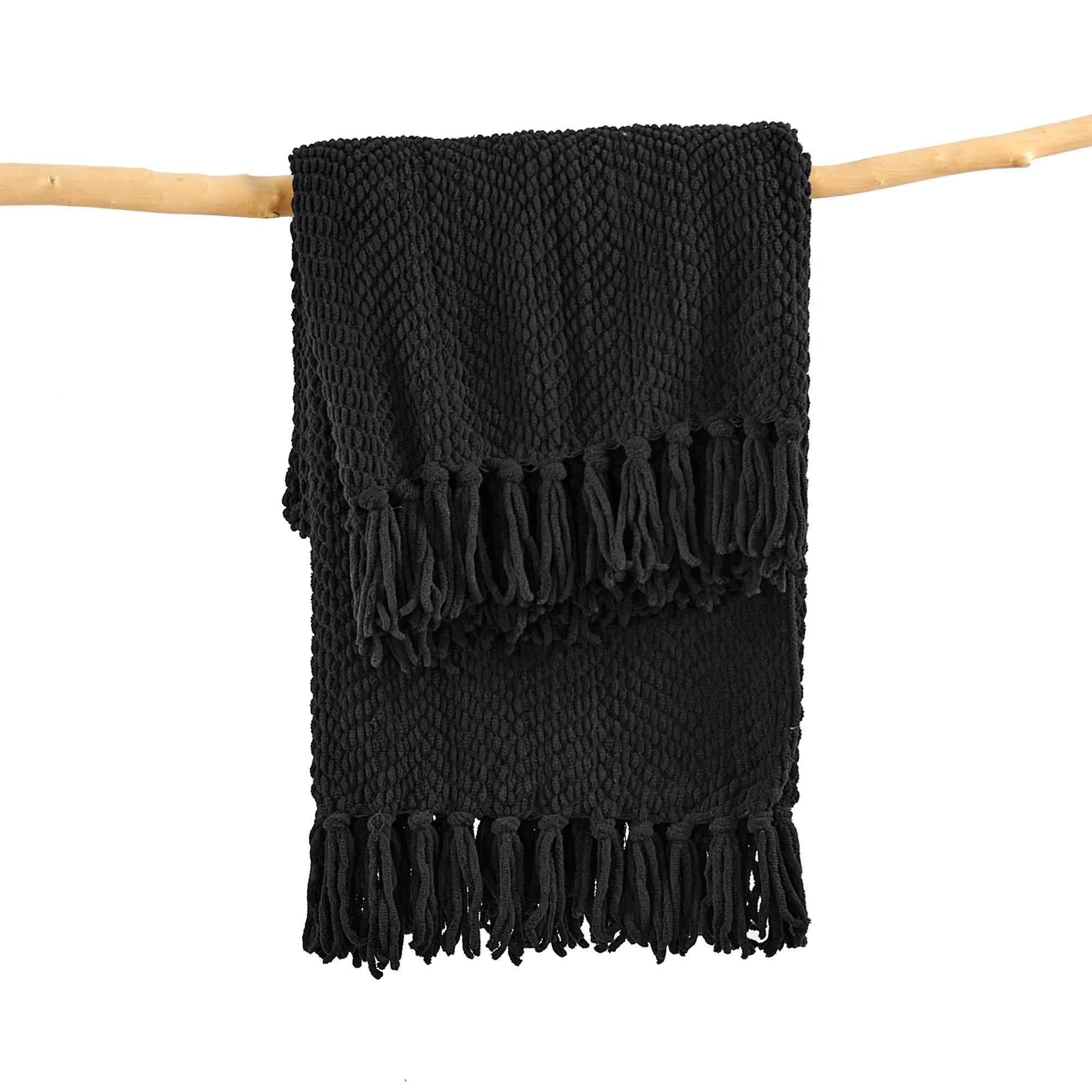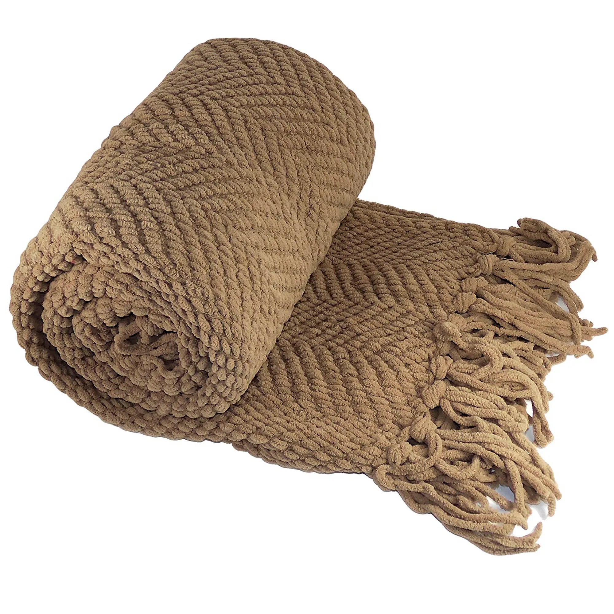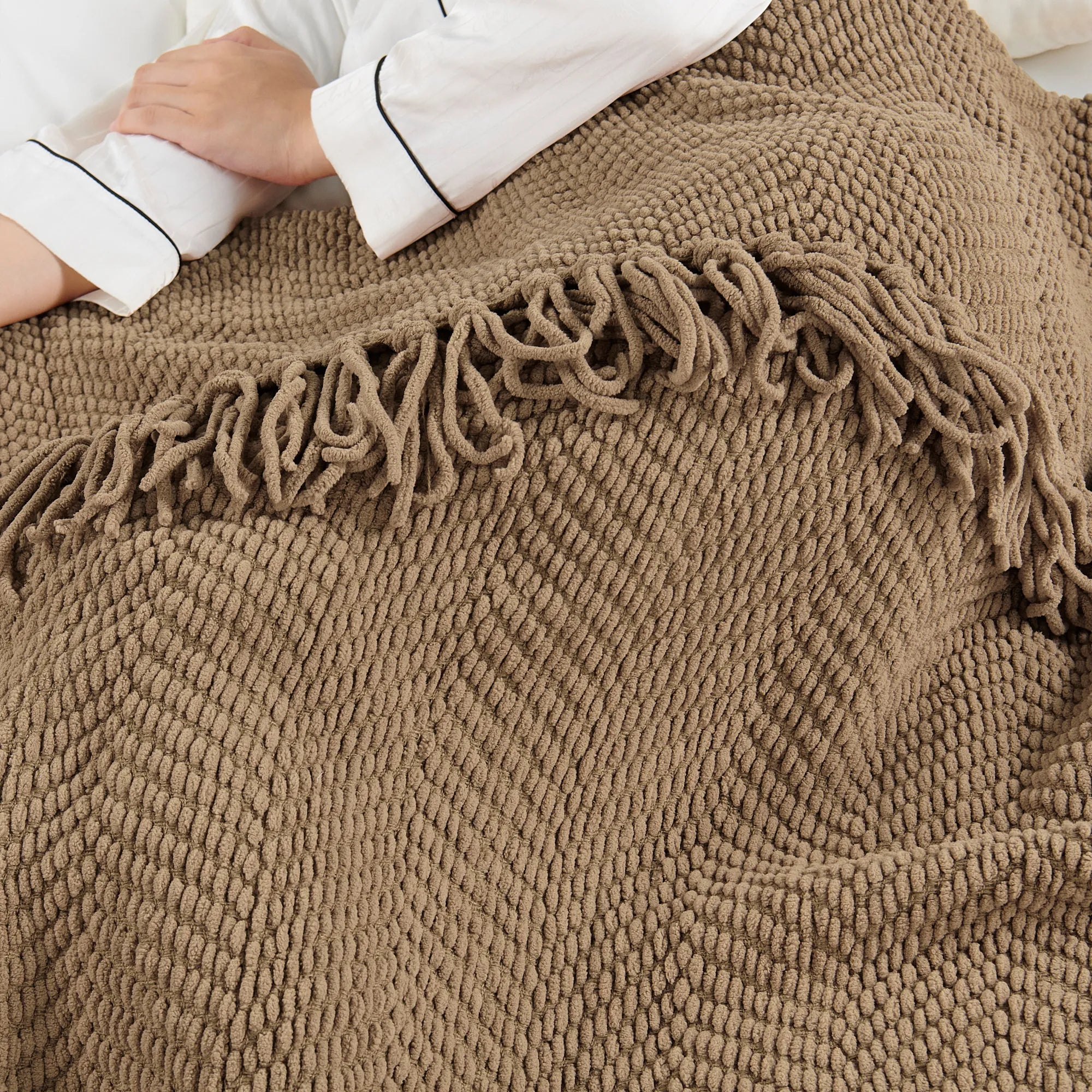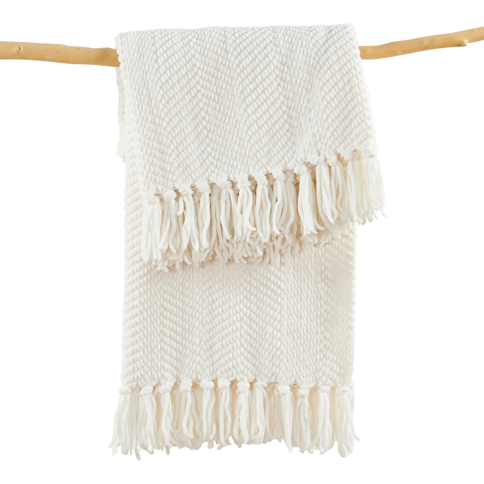 • Construction: This woven knitted tweed throw is made of super soft microfiber polyester. The design is finished off with adorable knotted braid tassels along each side of the widths.
