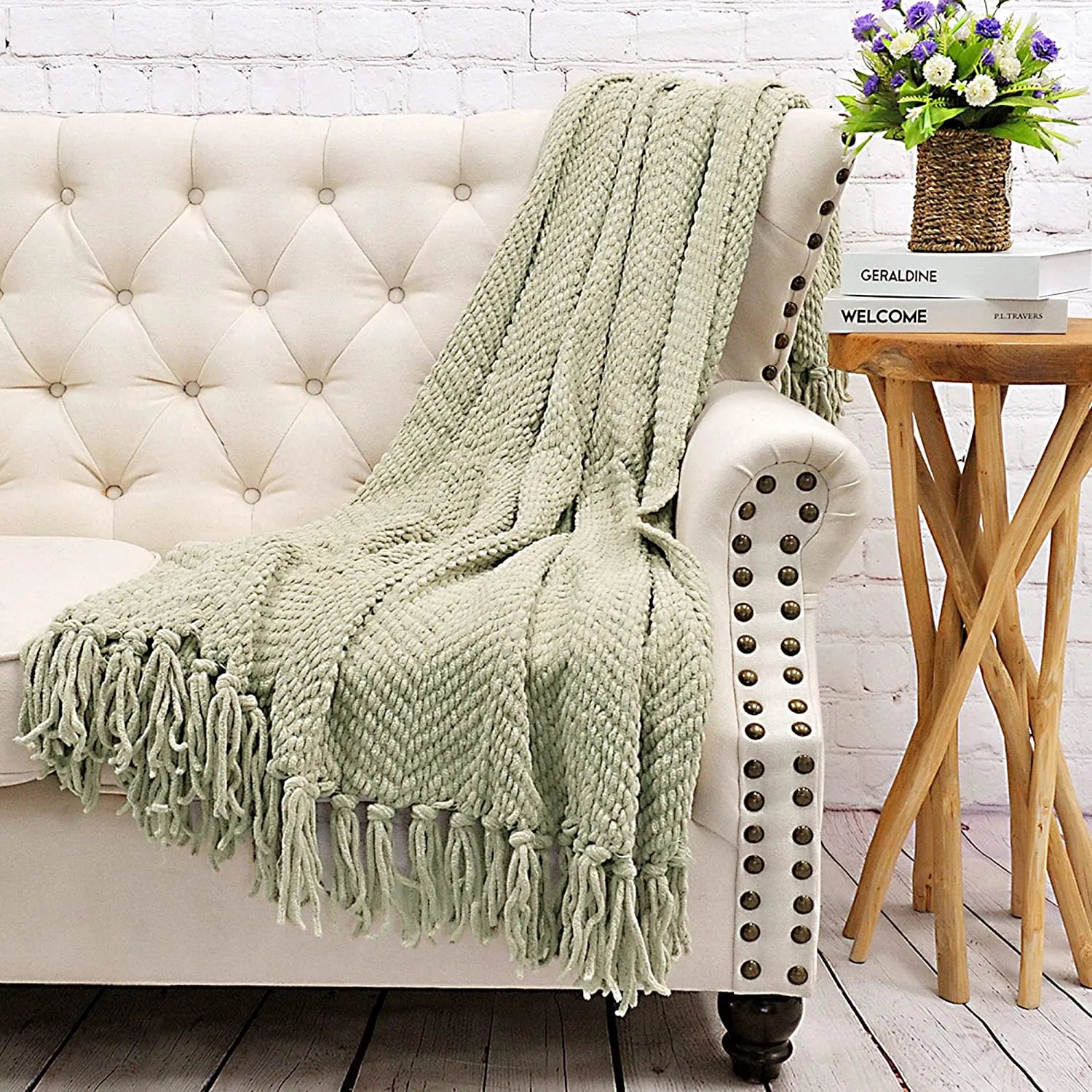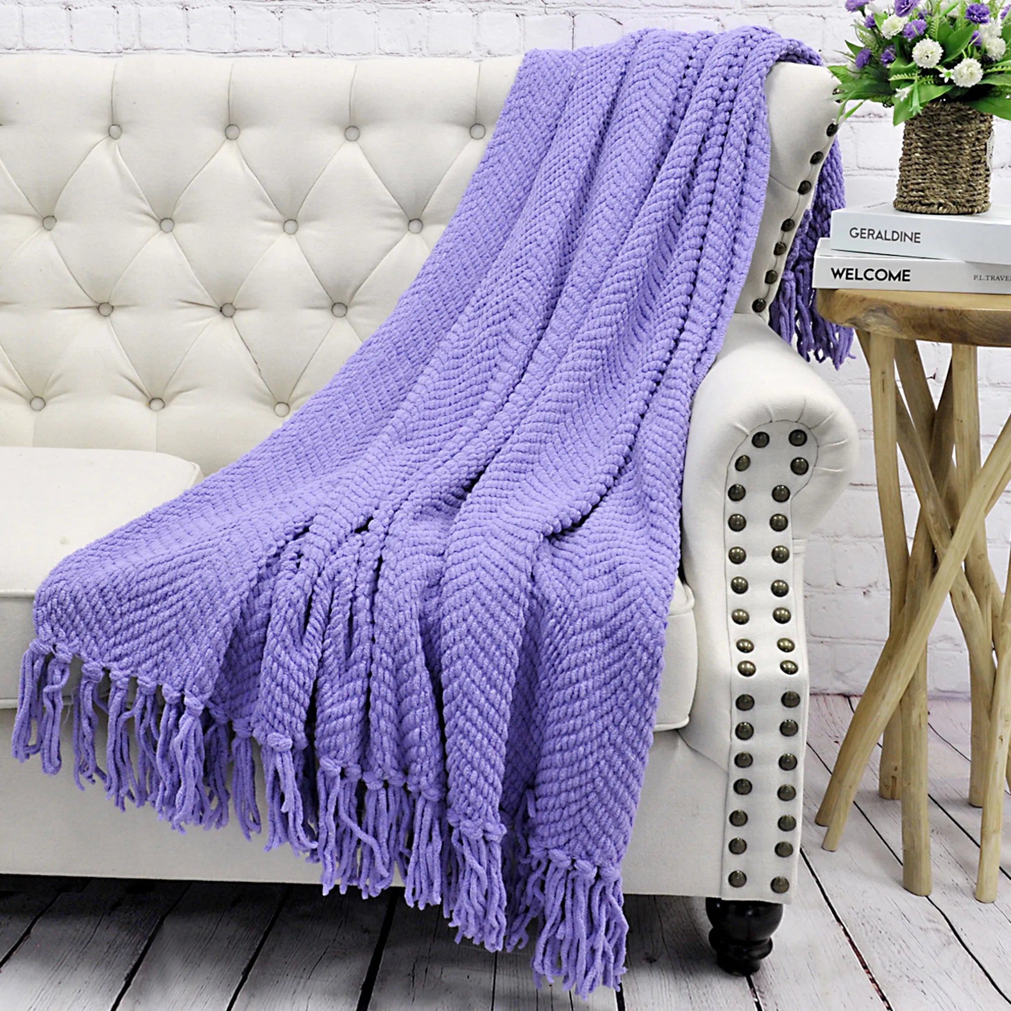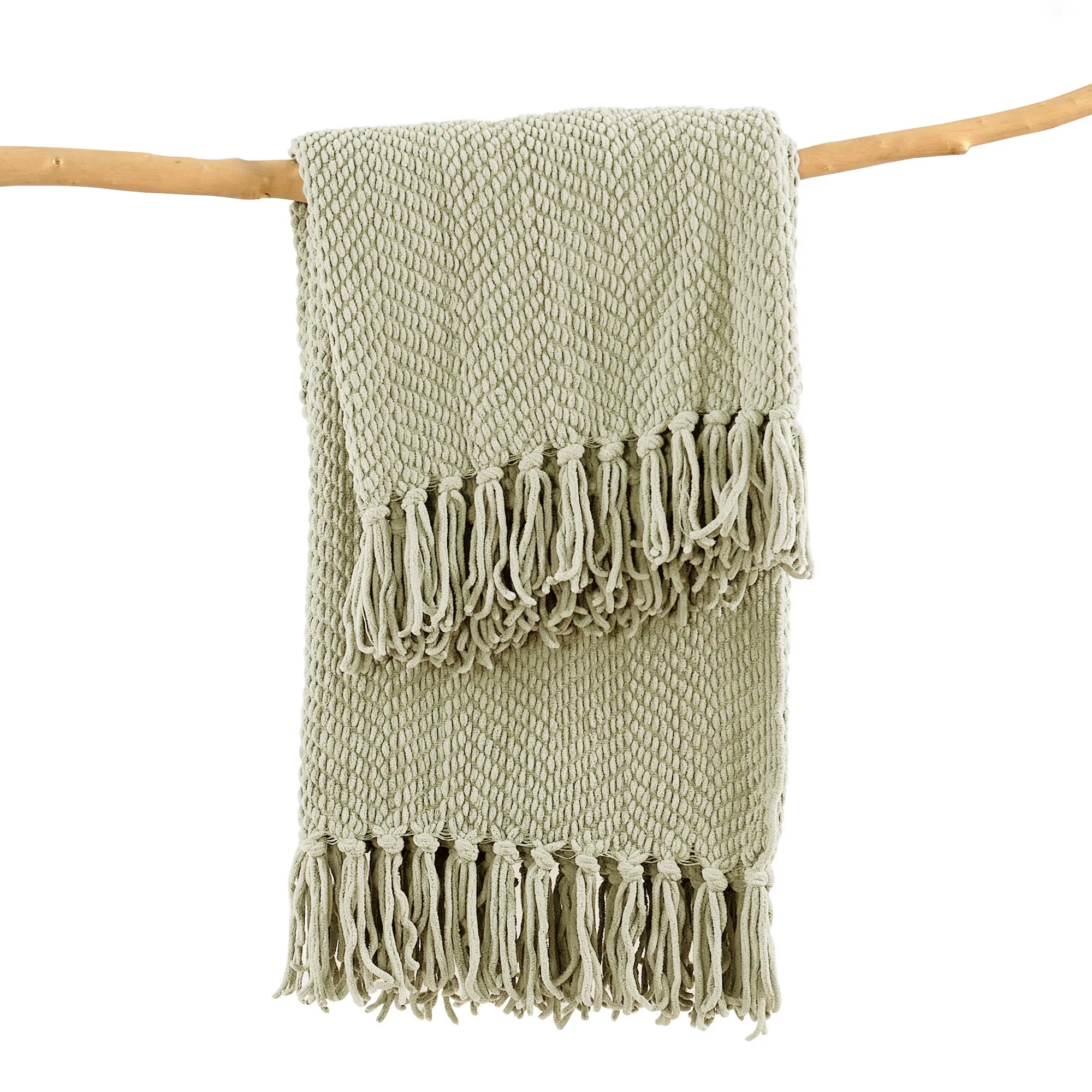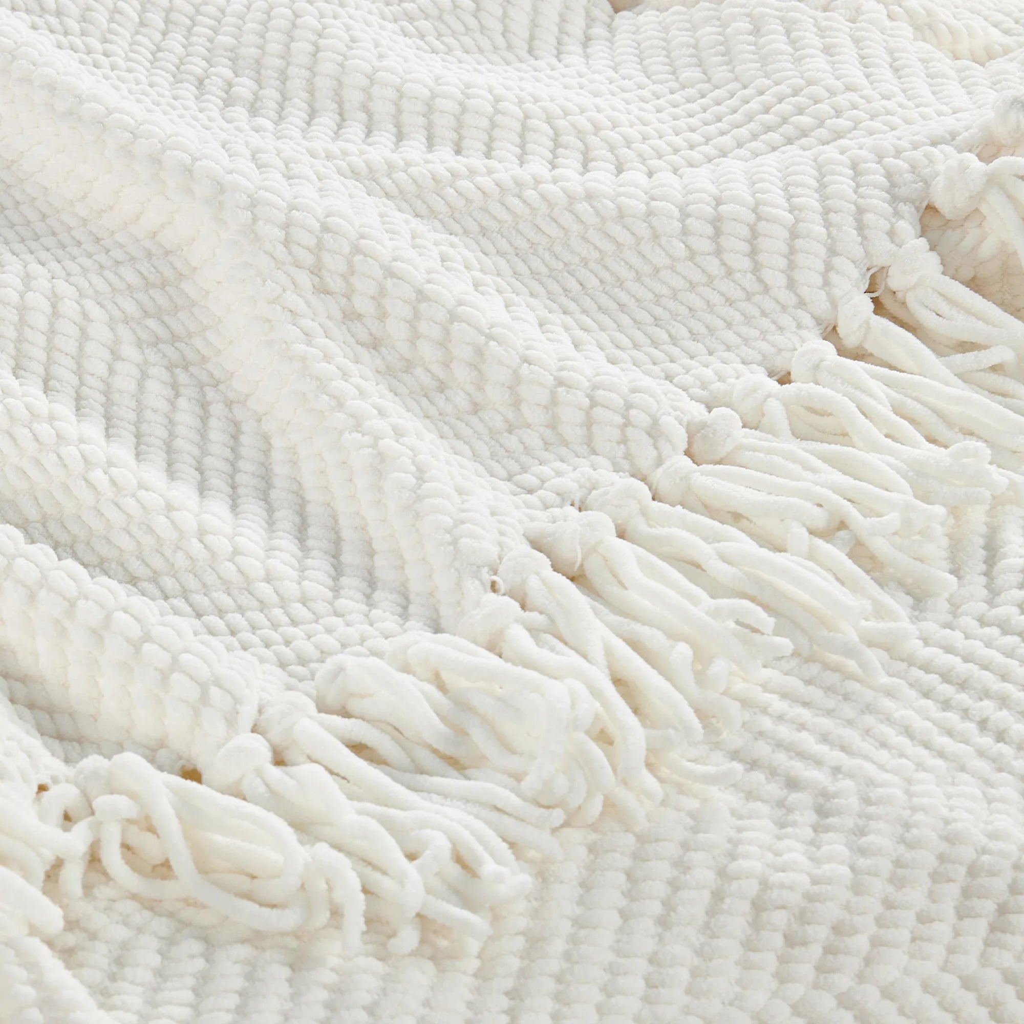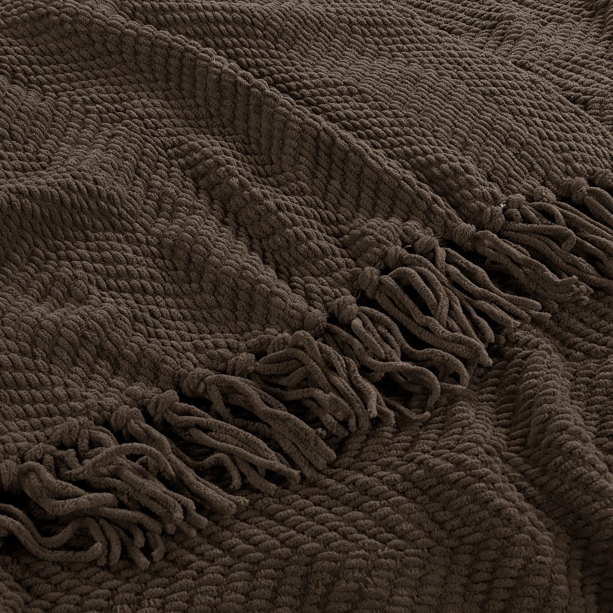 • Construction: This woven knitted tweed throw is made of super soft microfiber polyester. The design is finished off with adorable knotted braid tassels along each side of the widths.