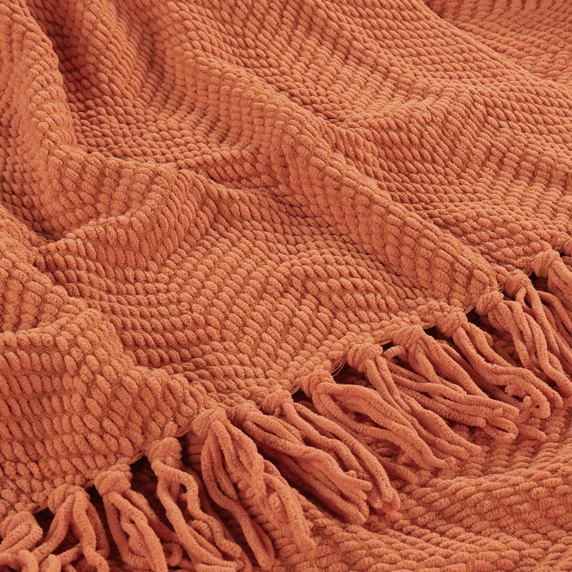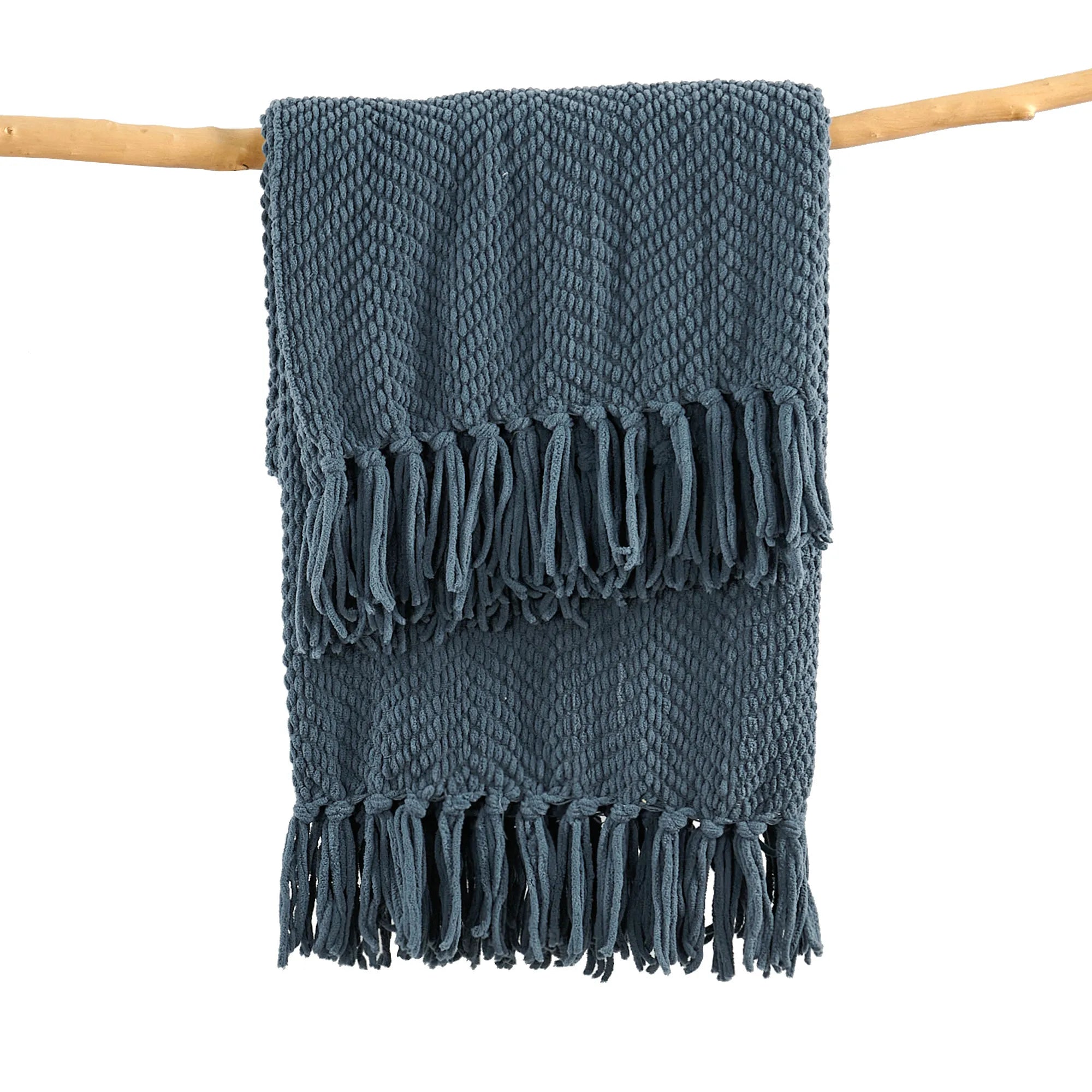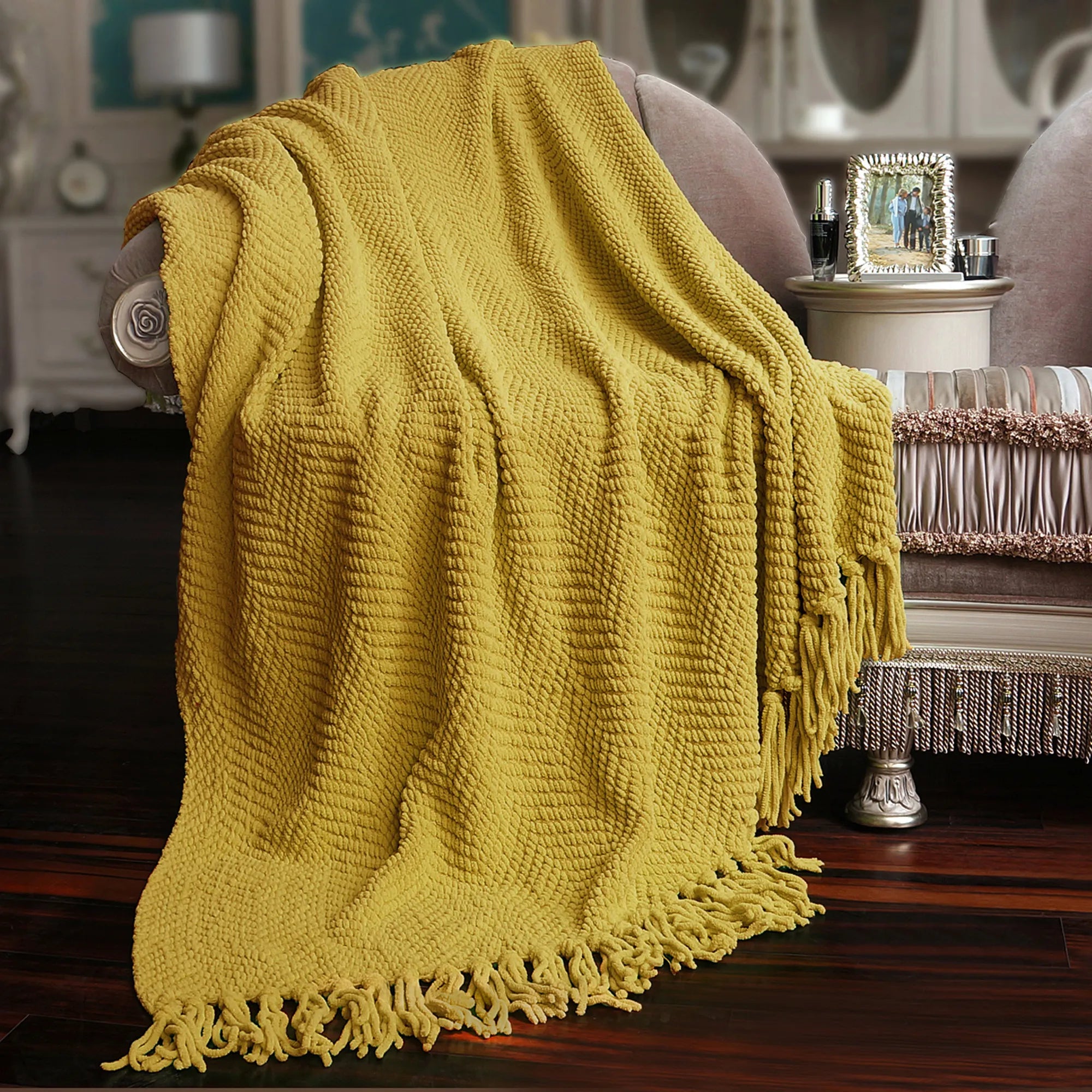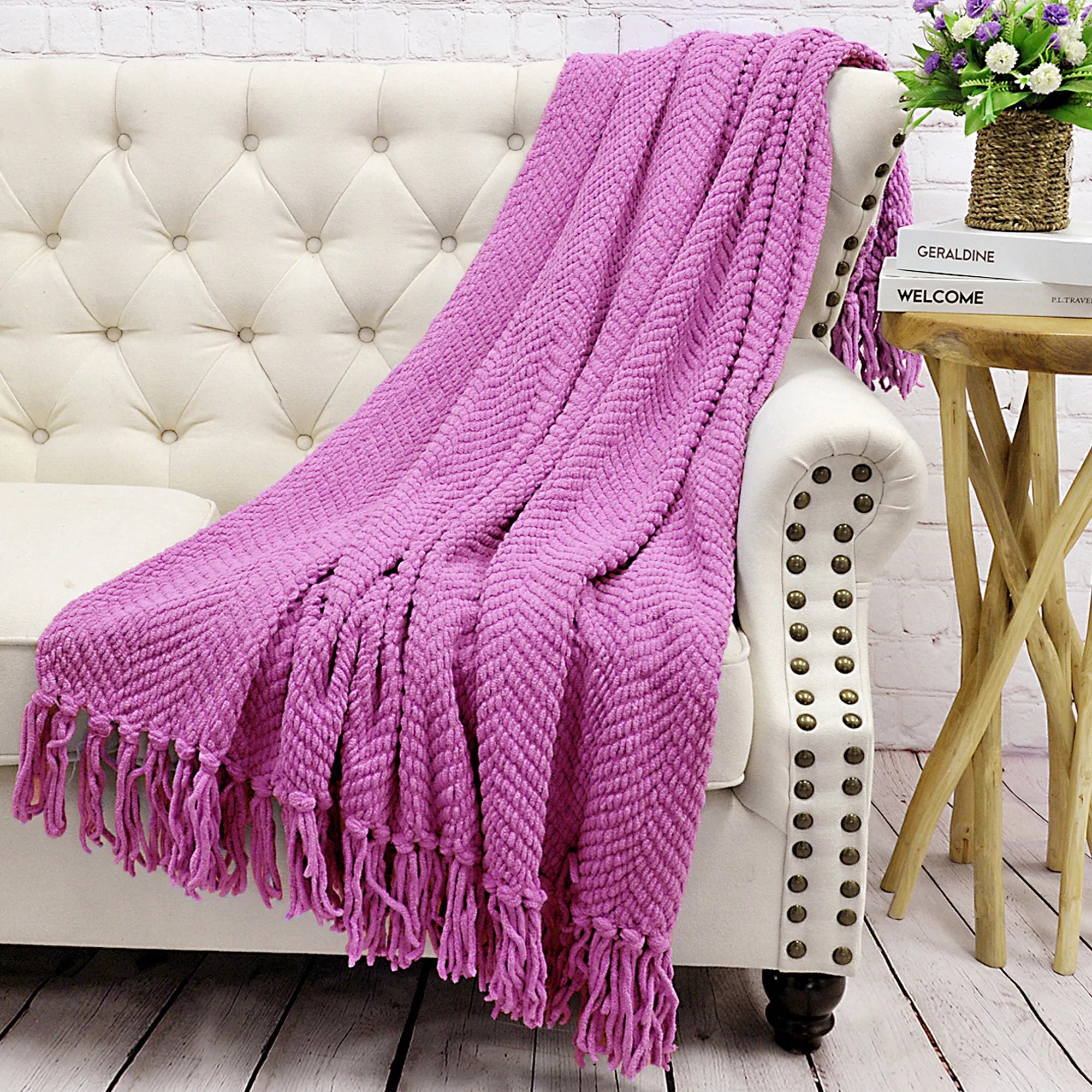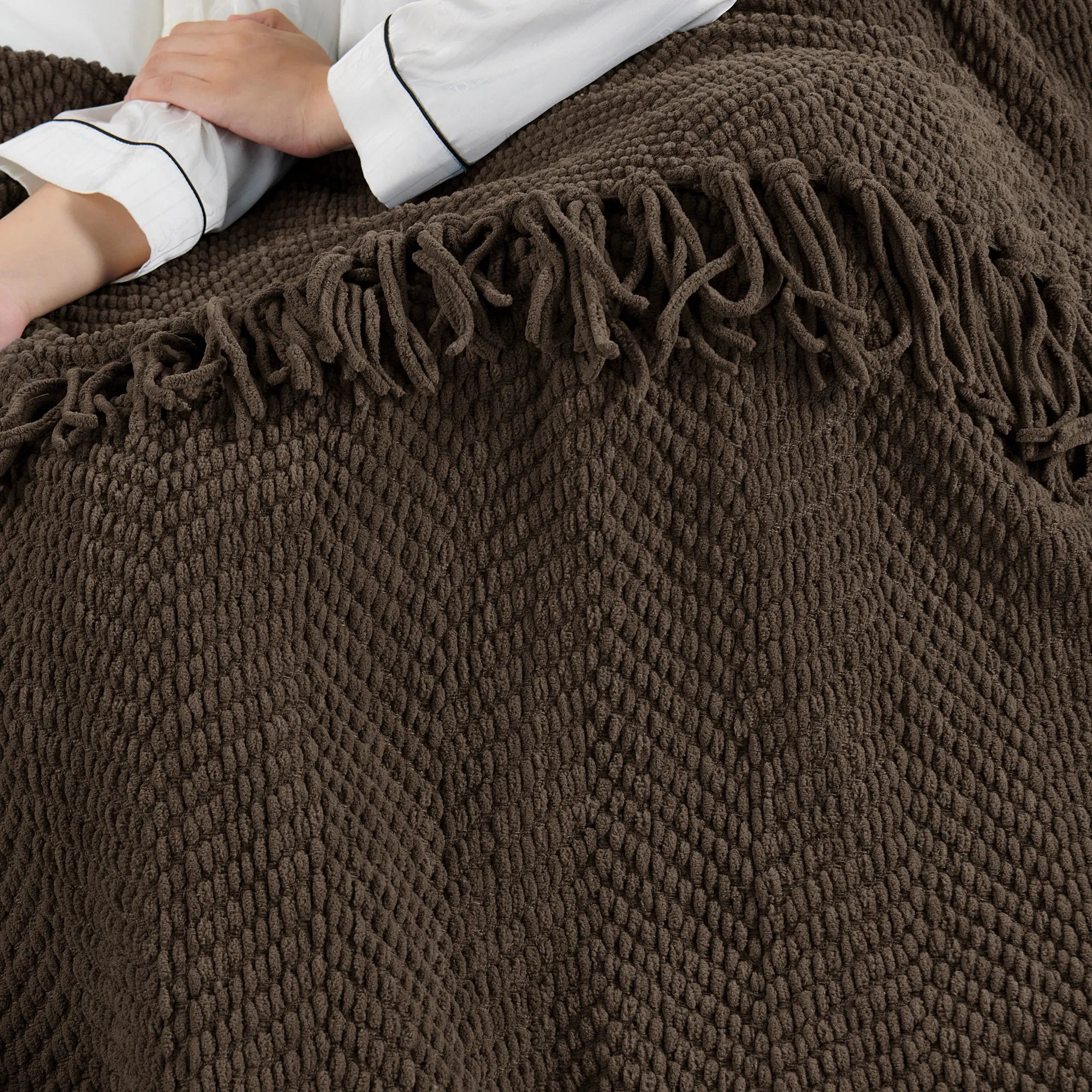 • Construction: This woven knitted tweed throw is made of super soft microfiber polyester. The design is finished off with adorable knotted braid tassels along each side of the widths.