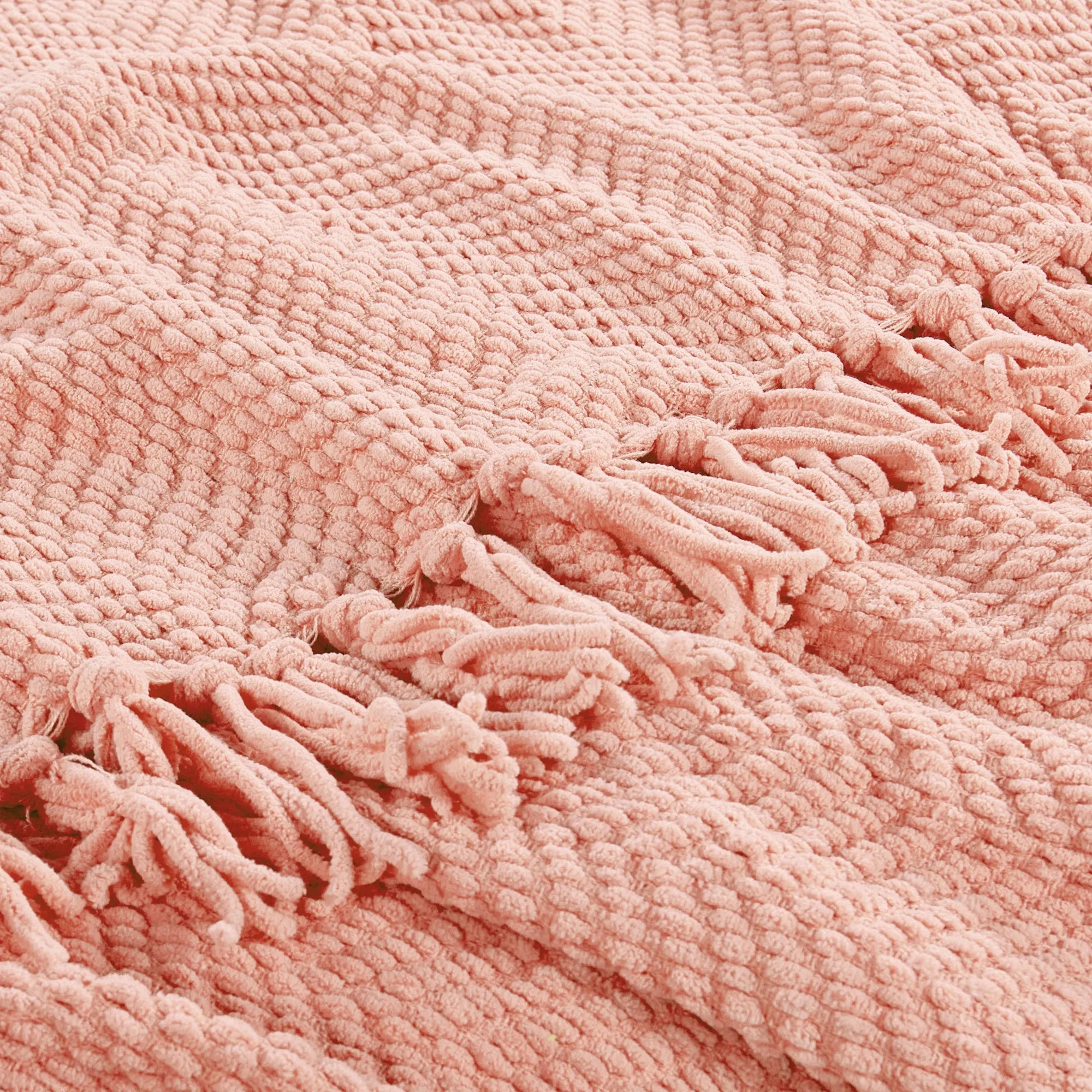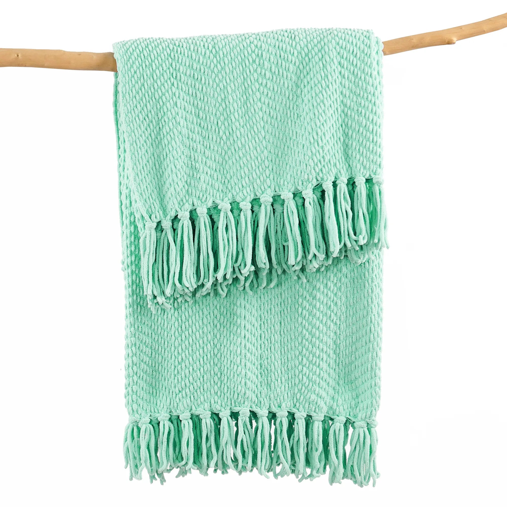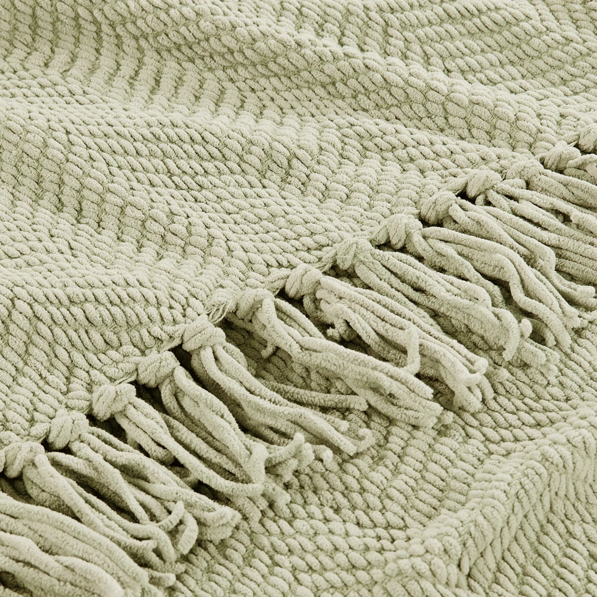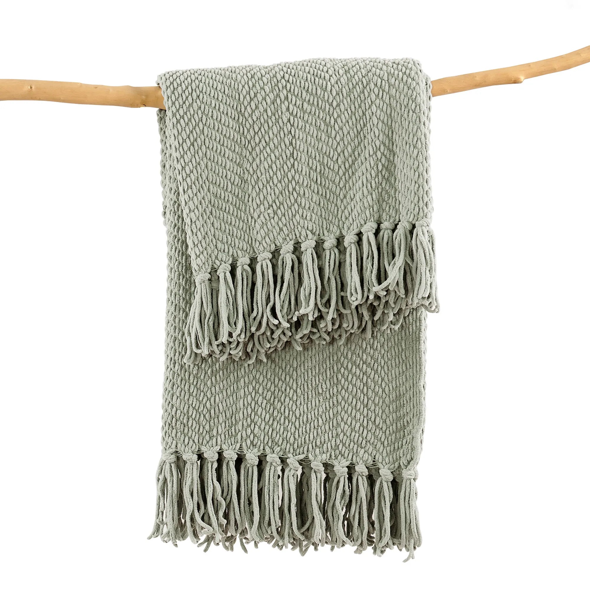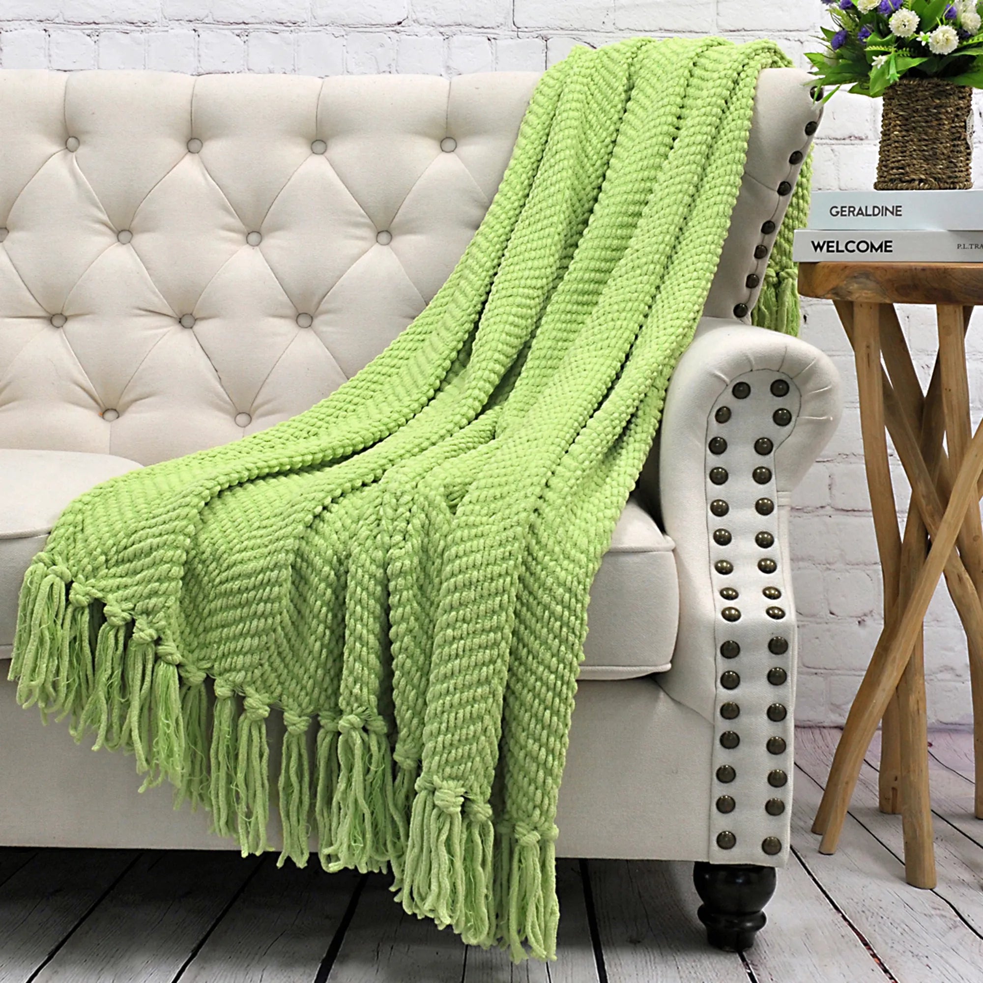 • Construction: This woven knitted tweed throw is made of super soft microfiber polyester. The design is finished off with adorable knotted braid tassels along each side of the widths.