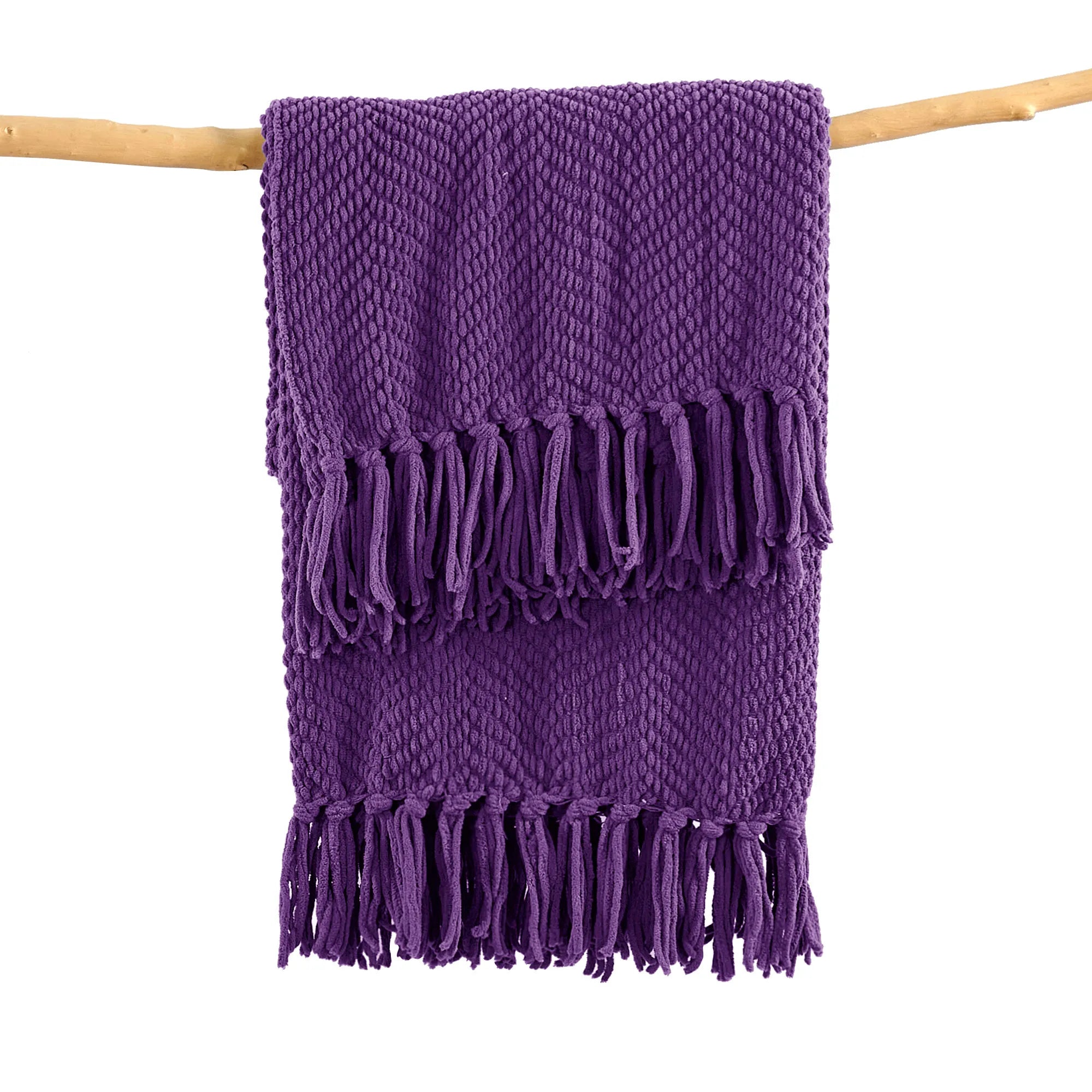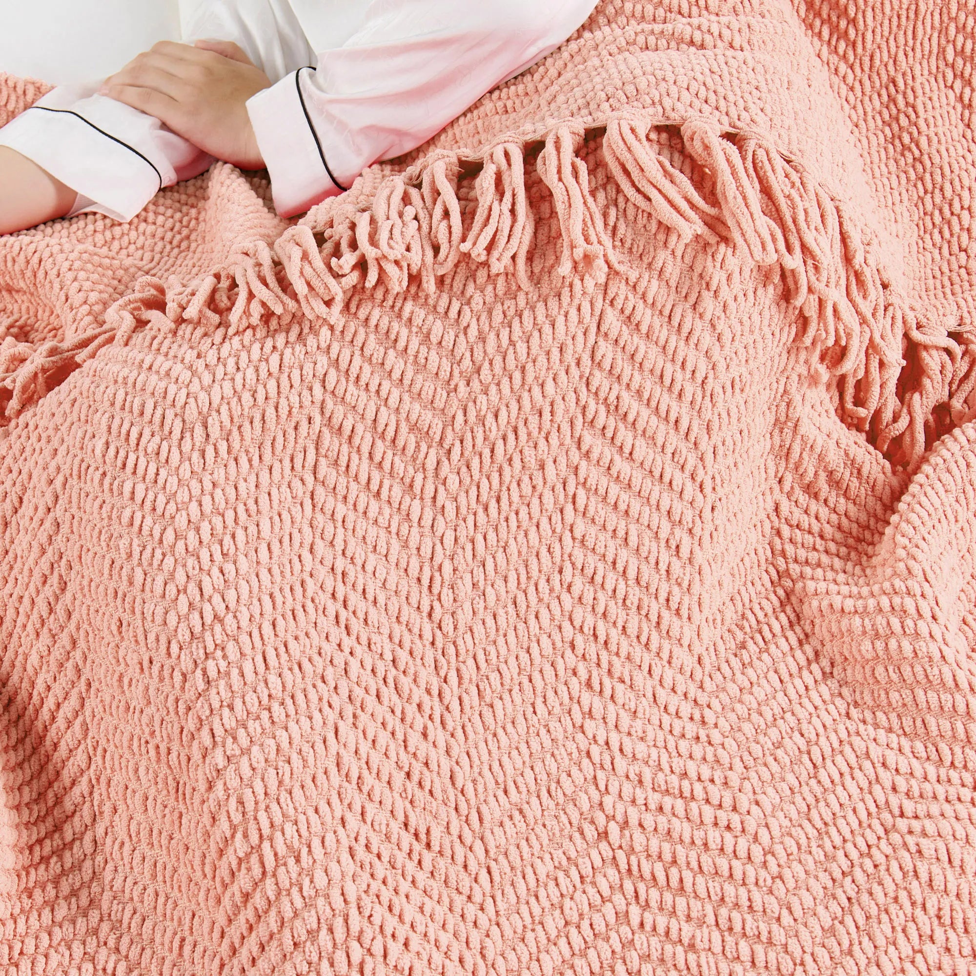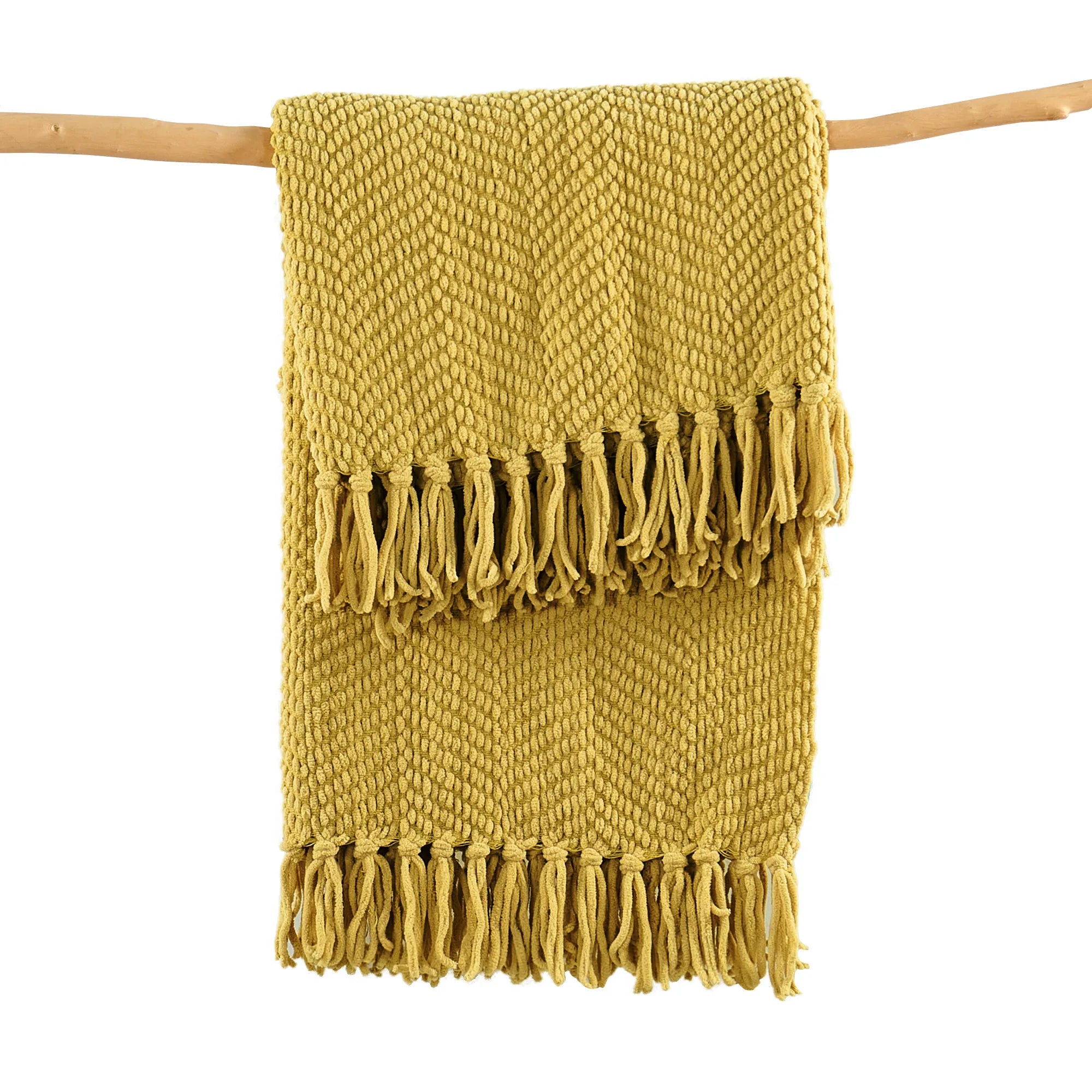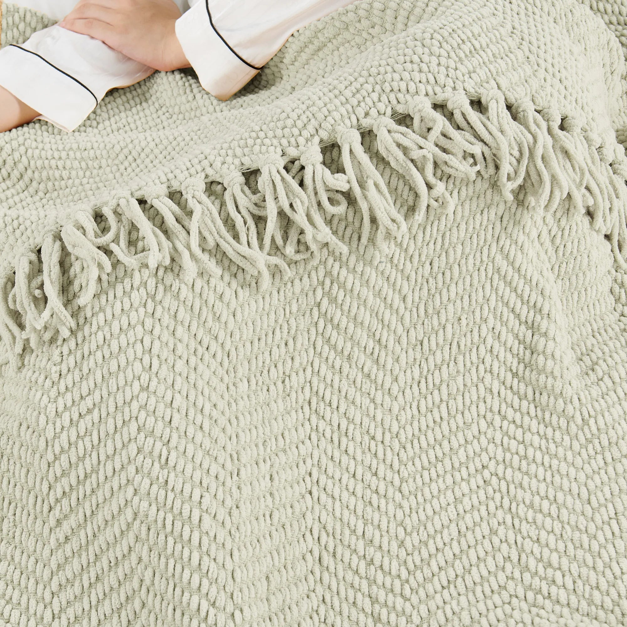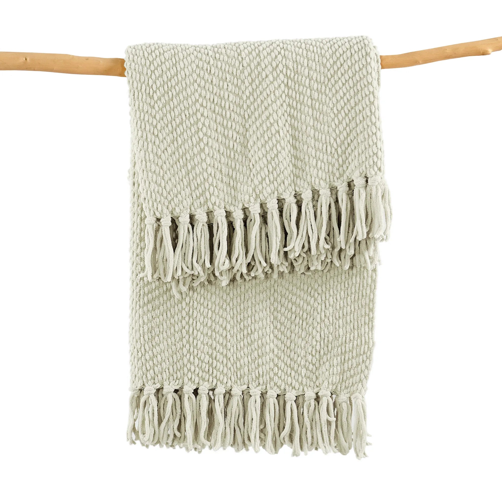 • Construction: This woven knitted tweed throw is made of super soft microfiber polyester. The design is finished off with adorable knotted braid tassels along each side of the widths.