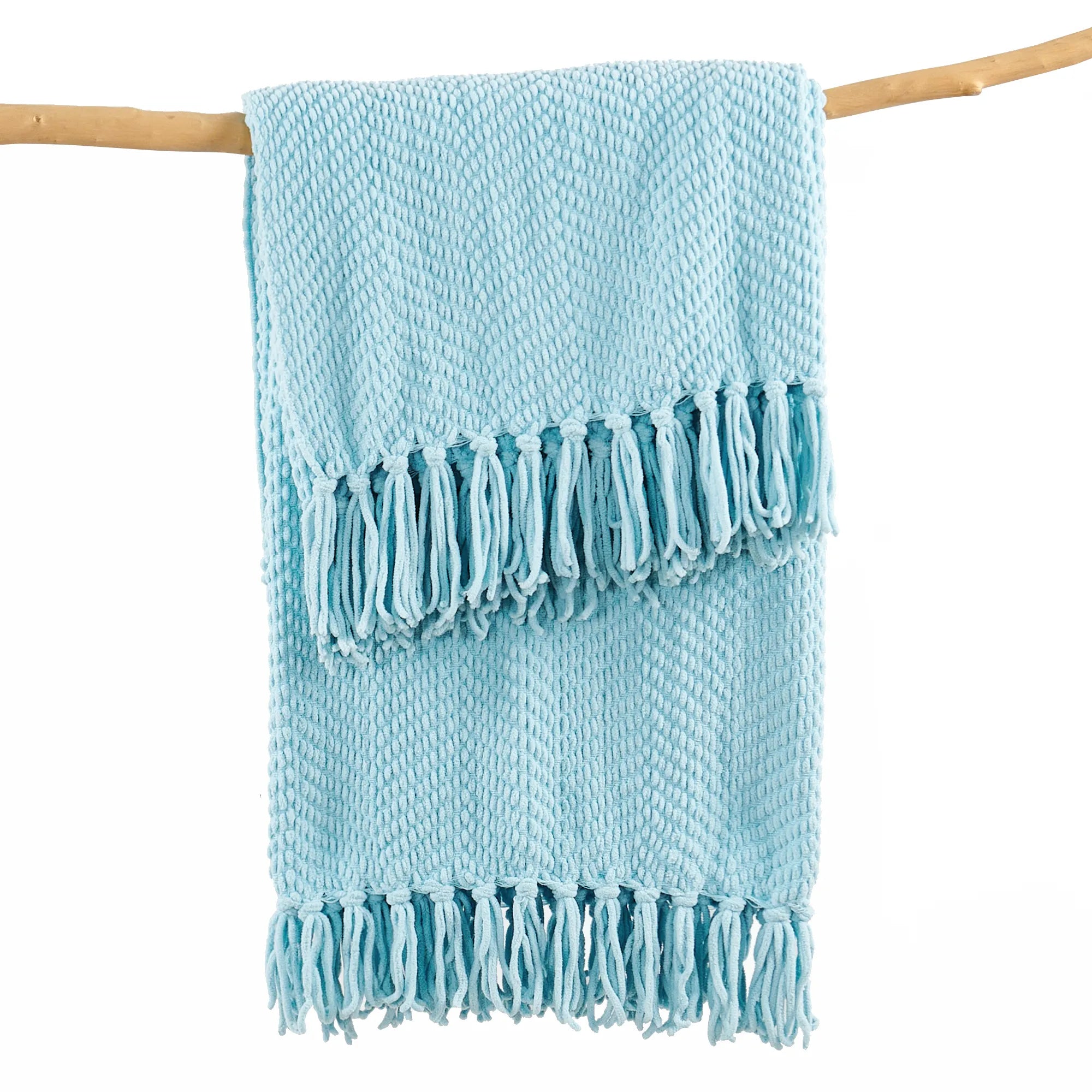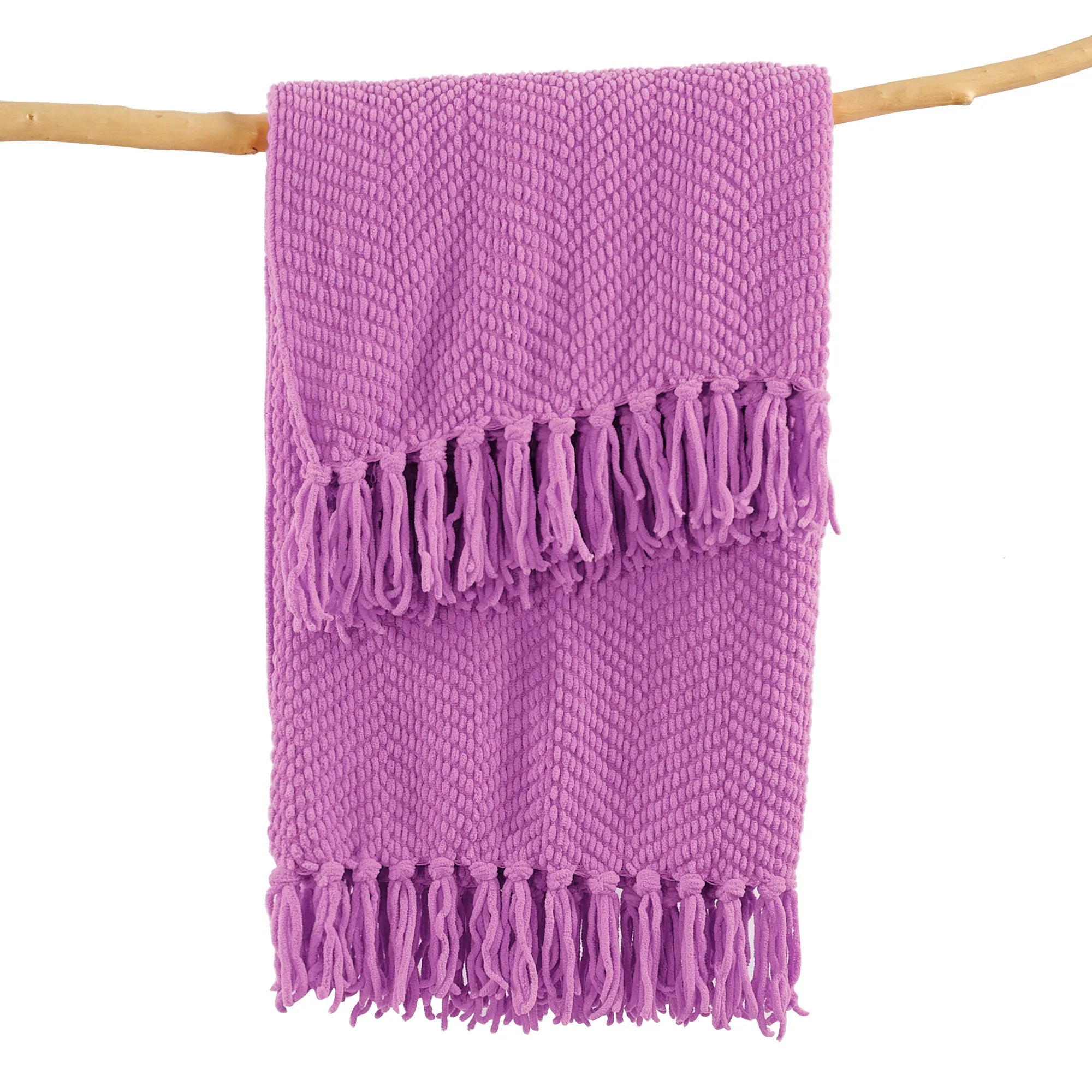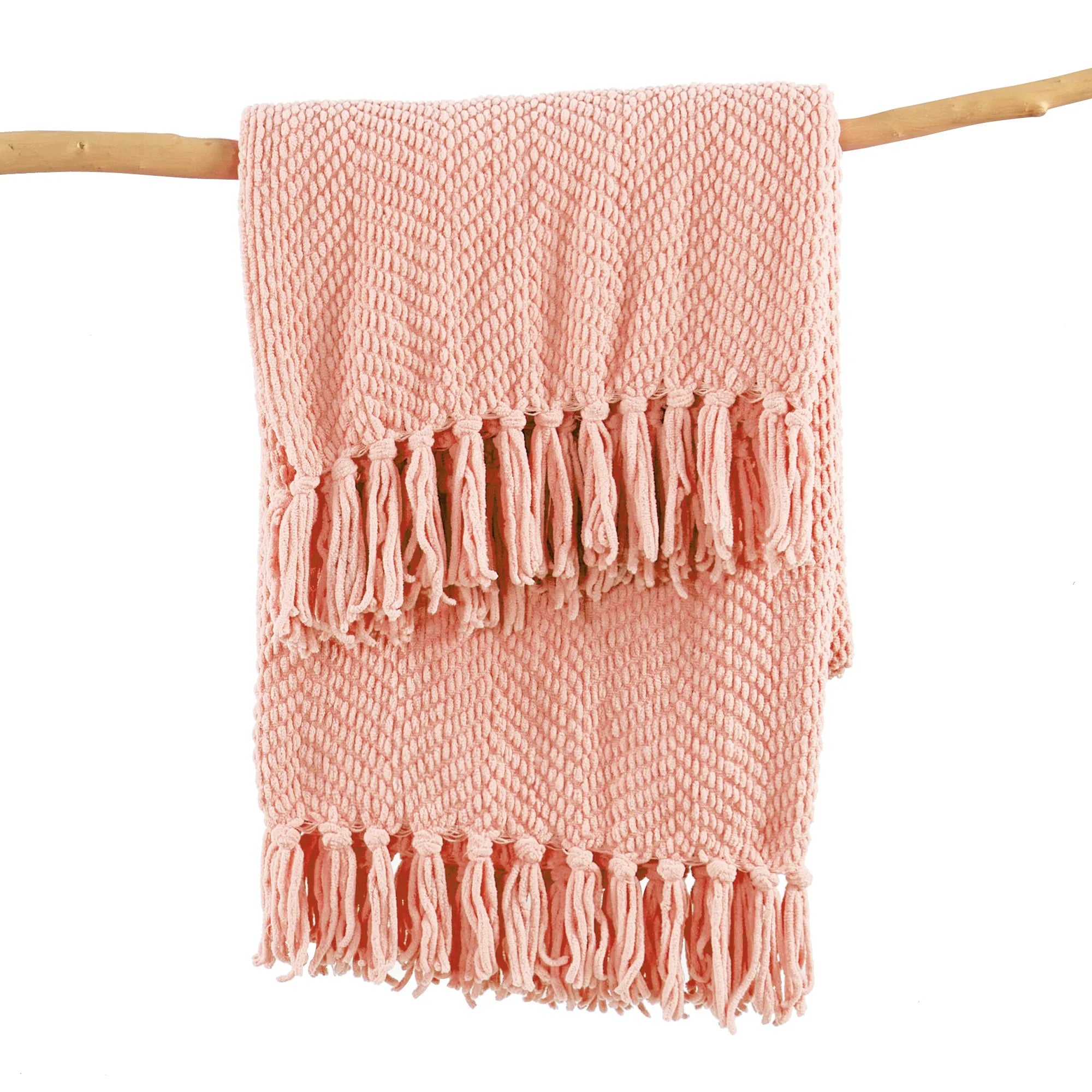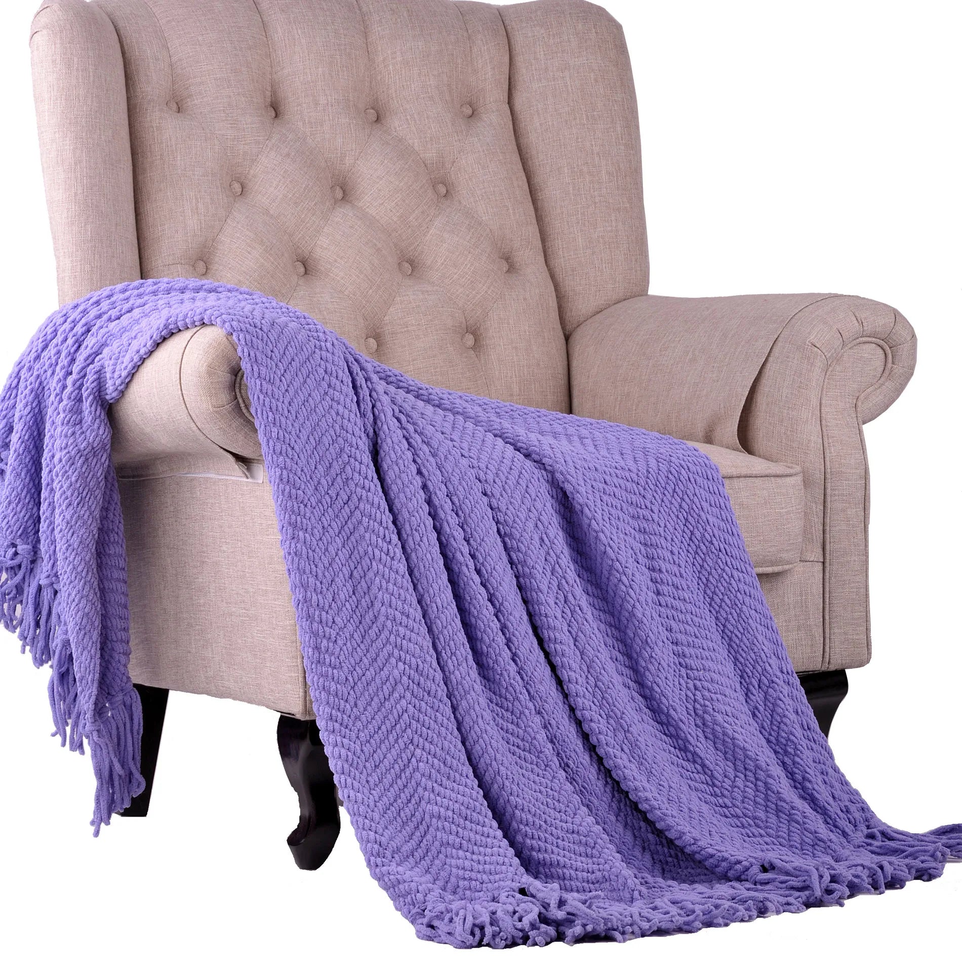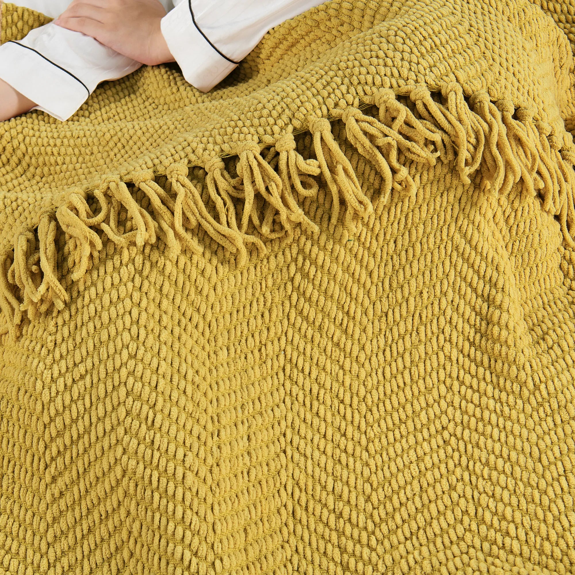 • Construction: This woven knitted tweed throw is made of super soft microfiber polyester. The design is finished off with adorable knotted braid tassels along each side of the widths.