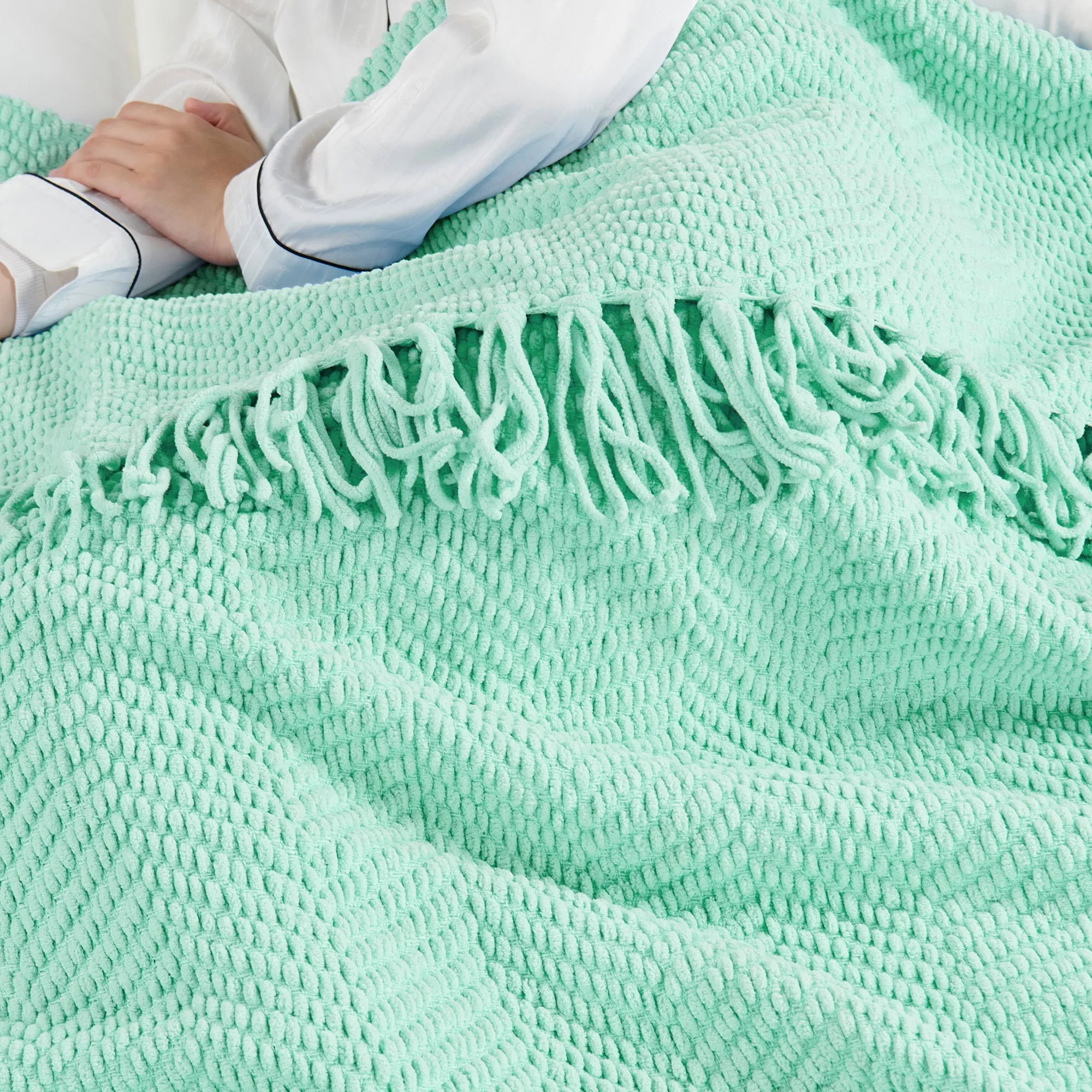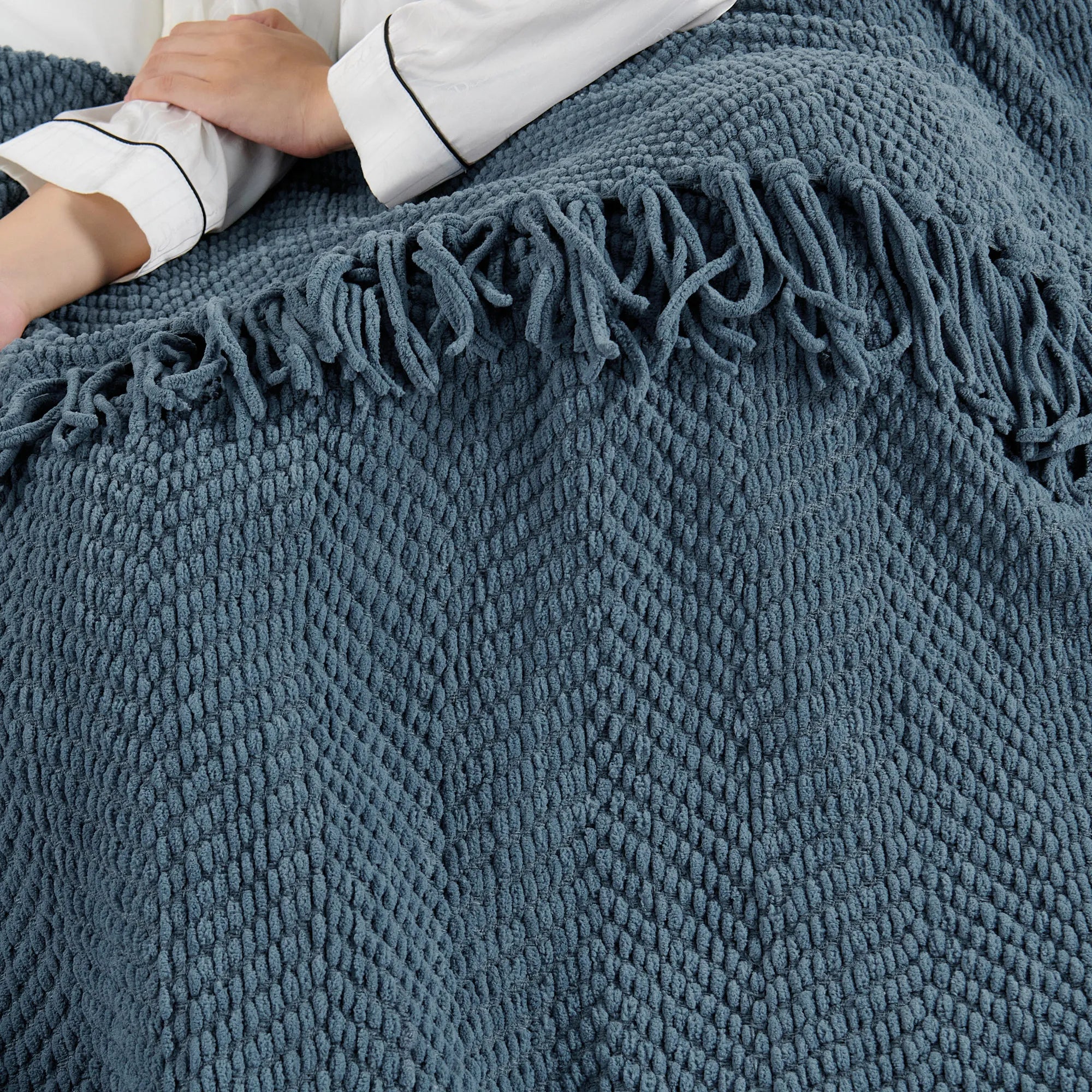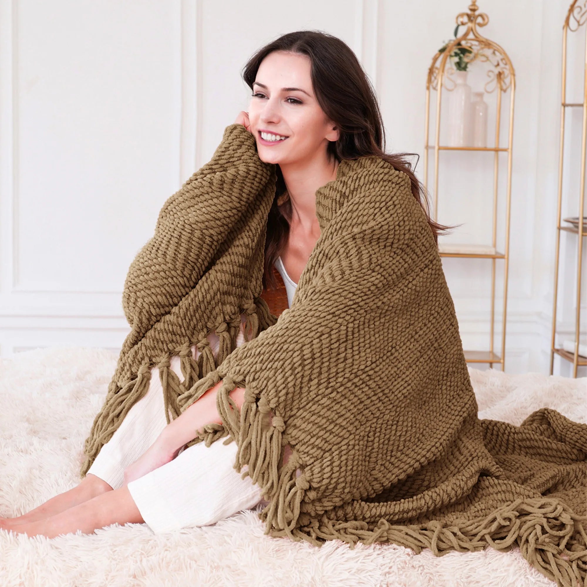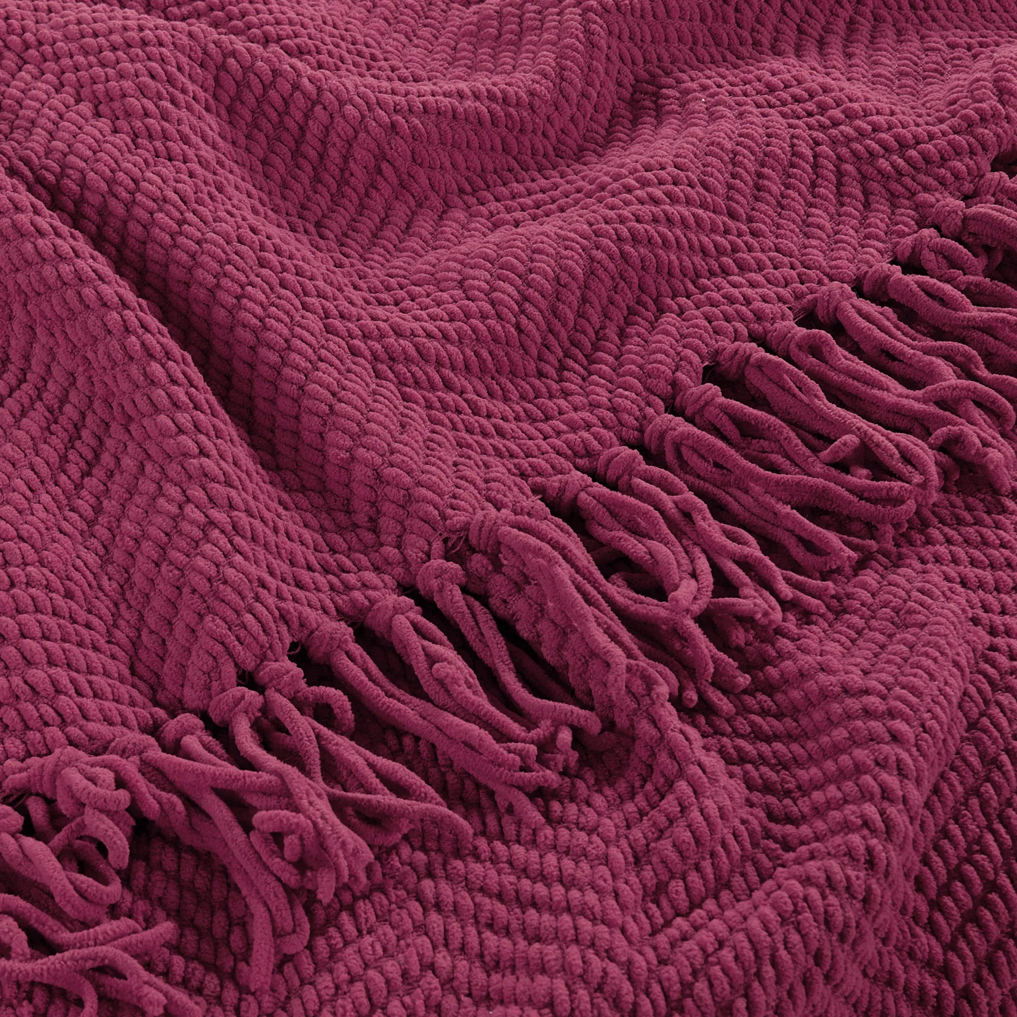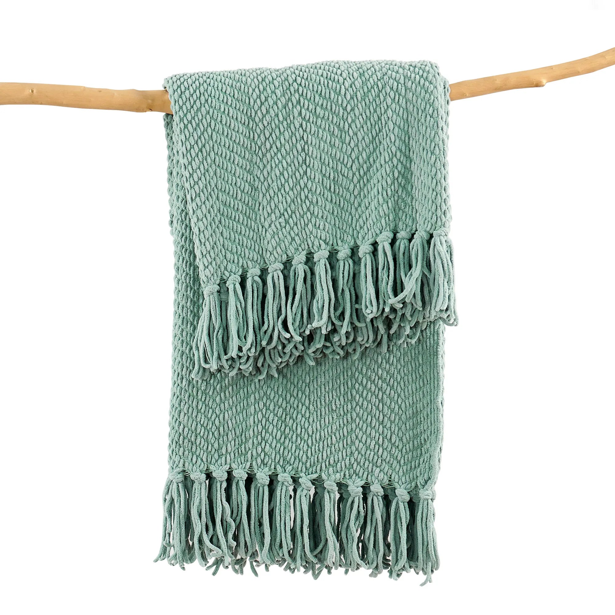 • Construction: This woven knitted tweed throw is made of super soft microfiber polyester. The design is finished off with adorable knotted braid tassels along each side of the widths.