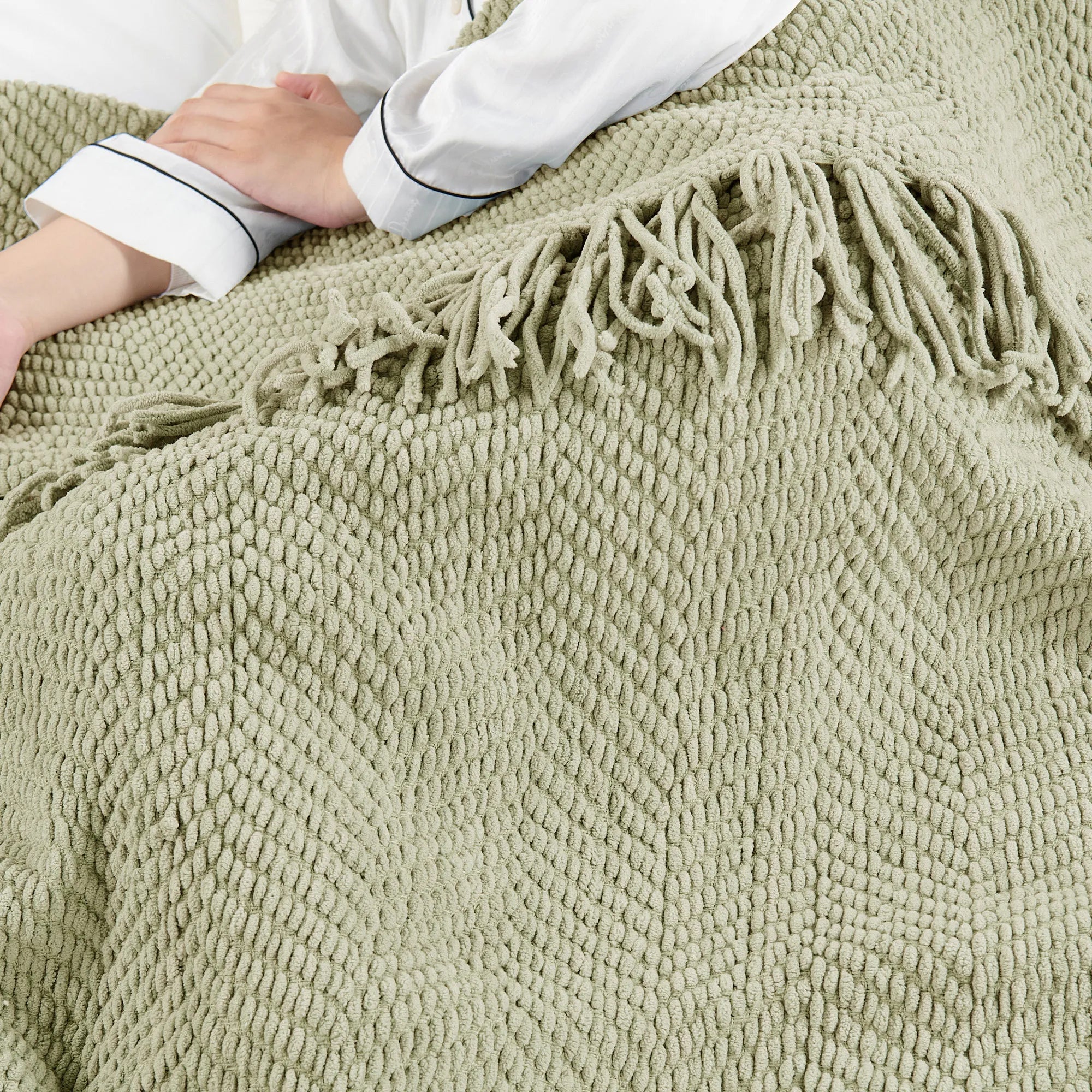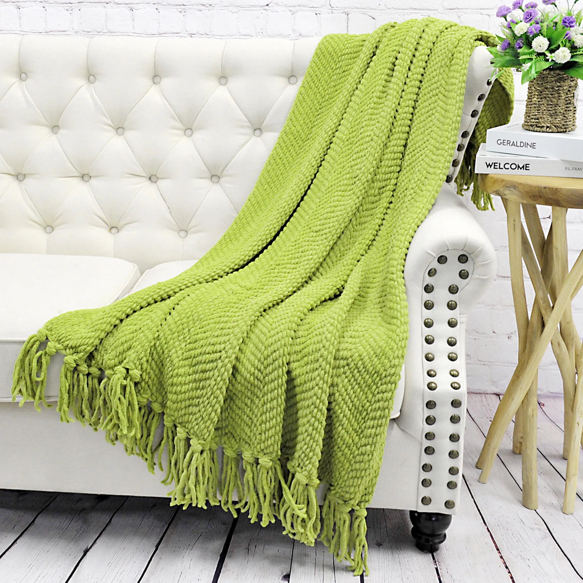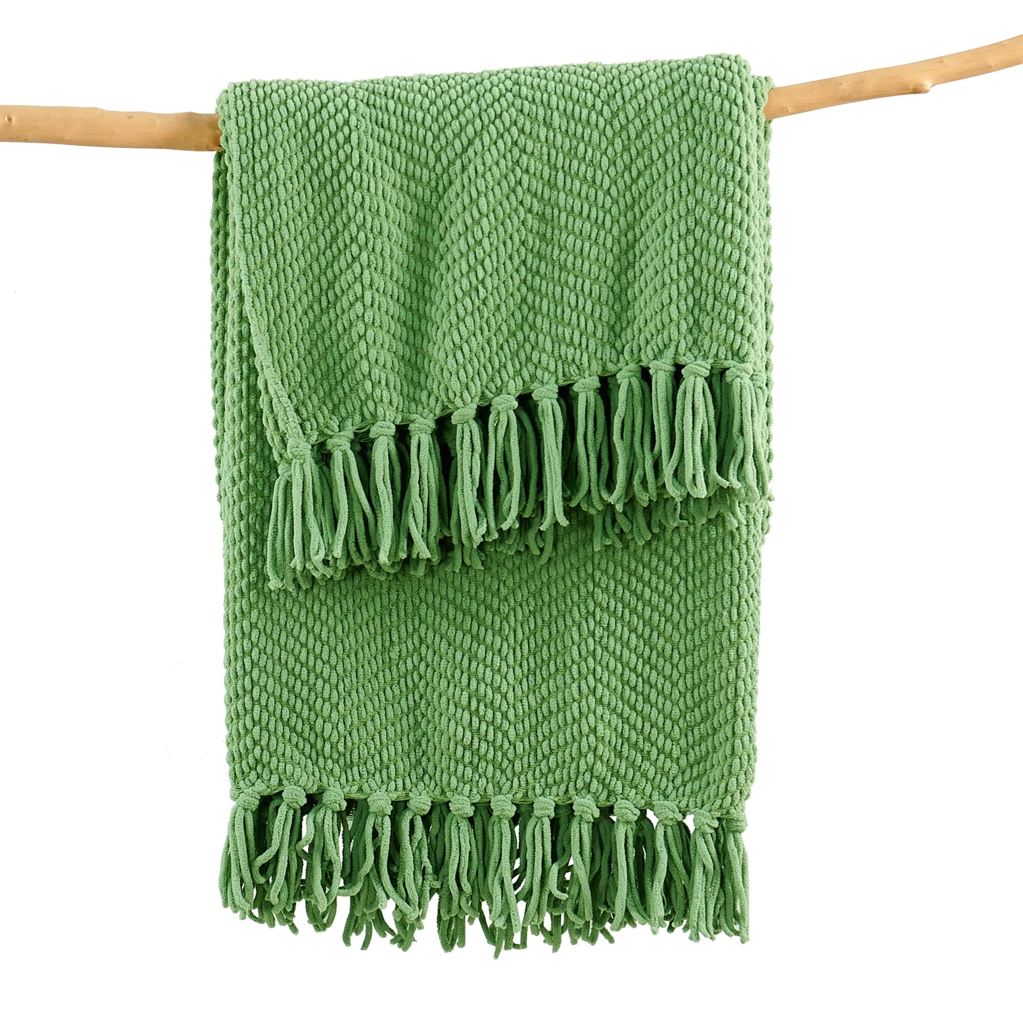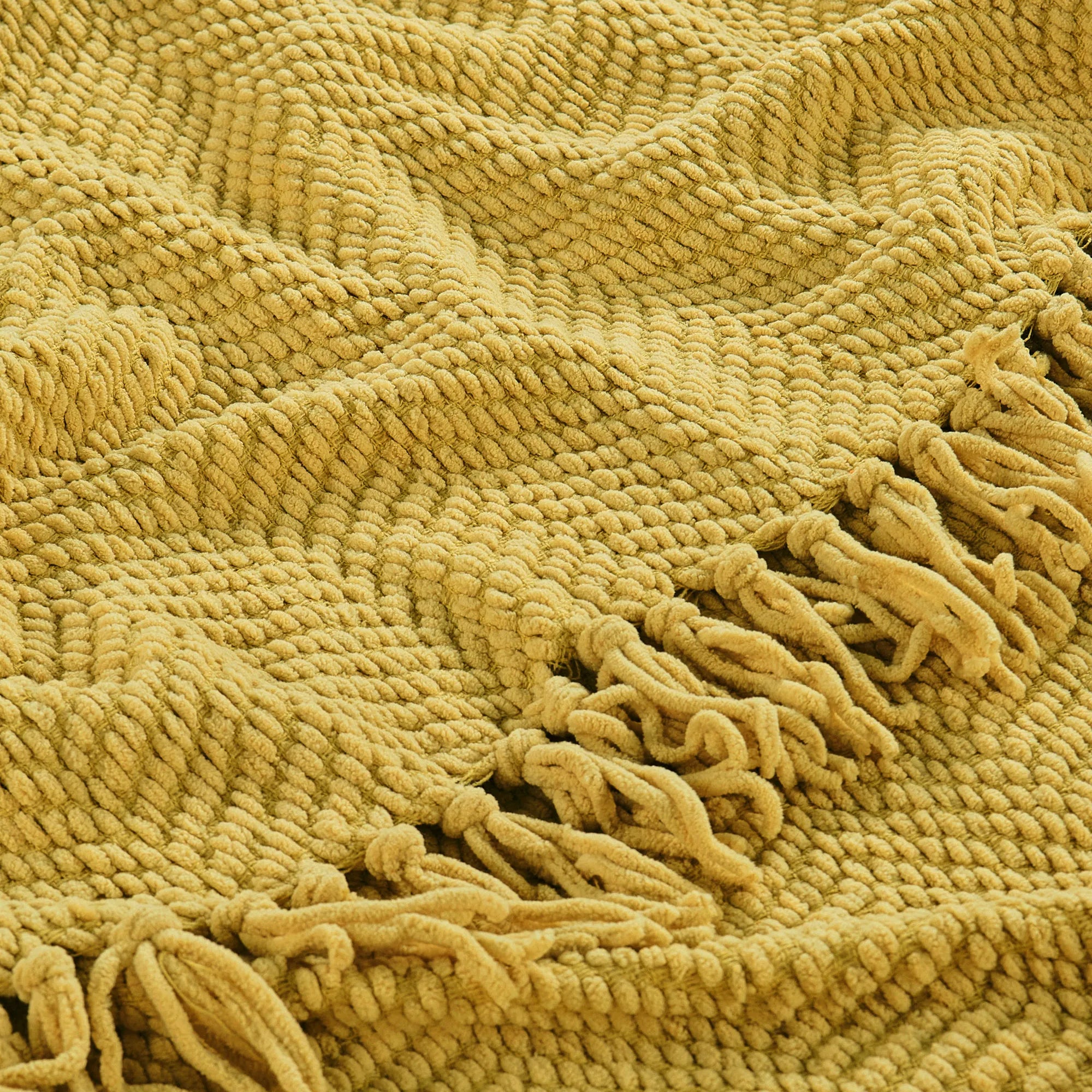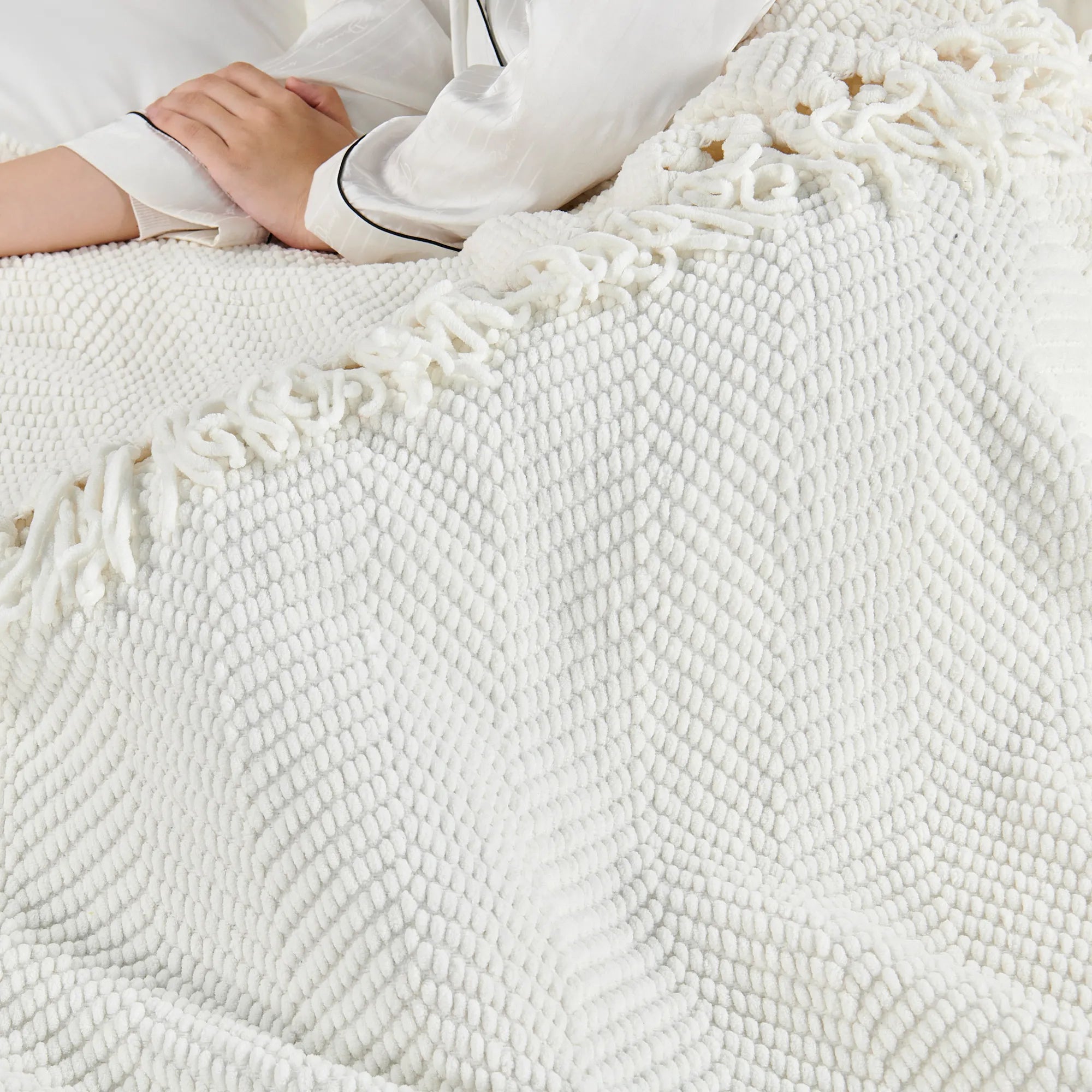 • Construction: This woven knitted tweed throw is made of super soft microfiber polyester. The design is finished off with adorable knotted braid tassels along each side of the widths.