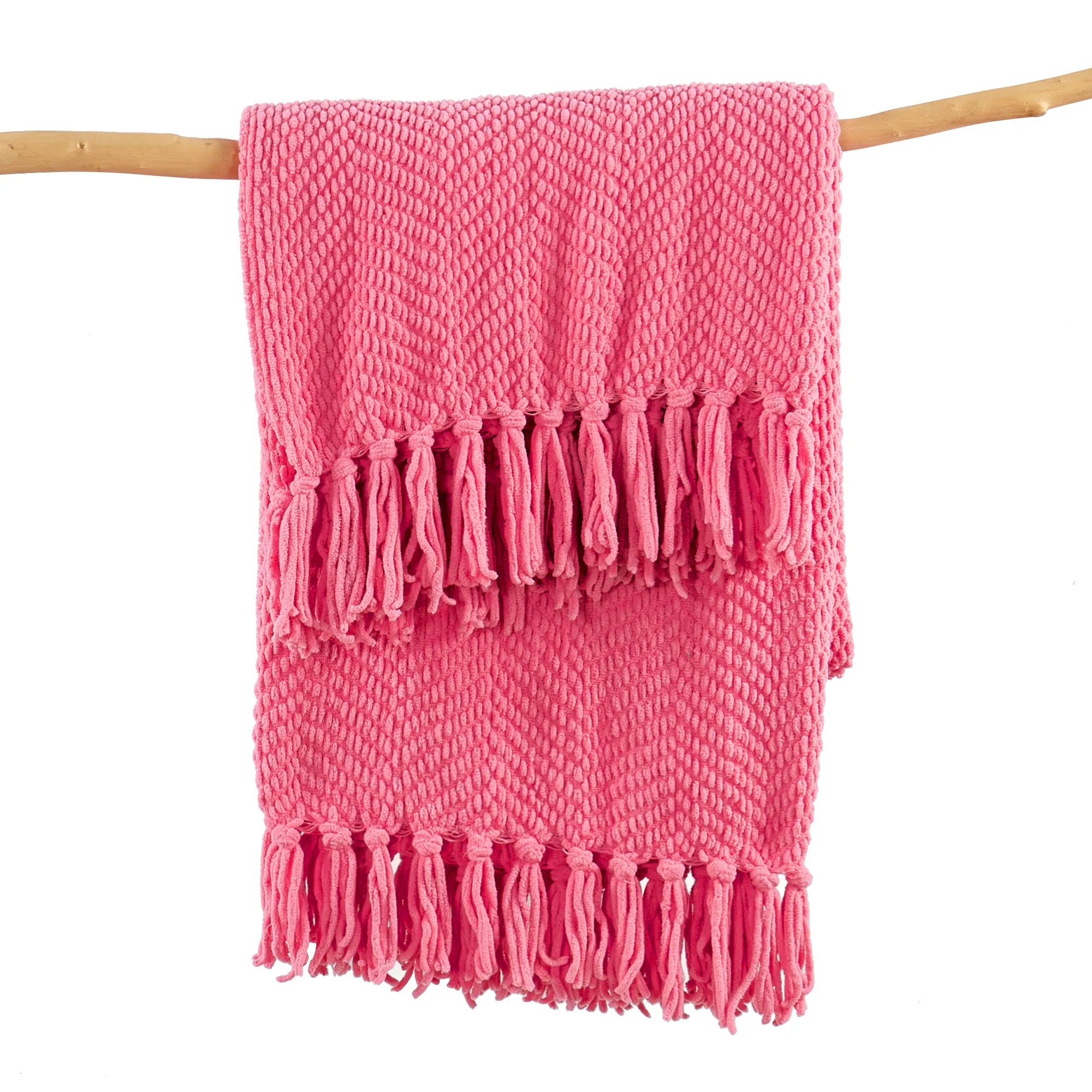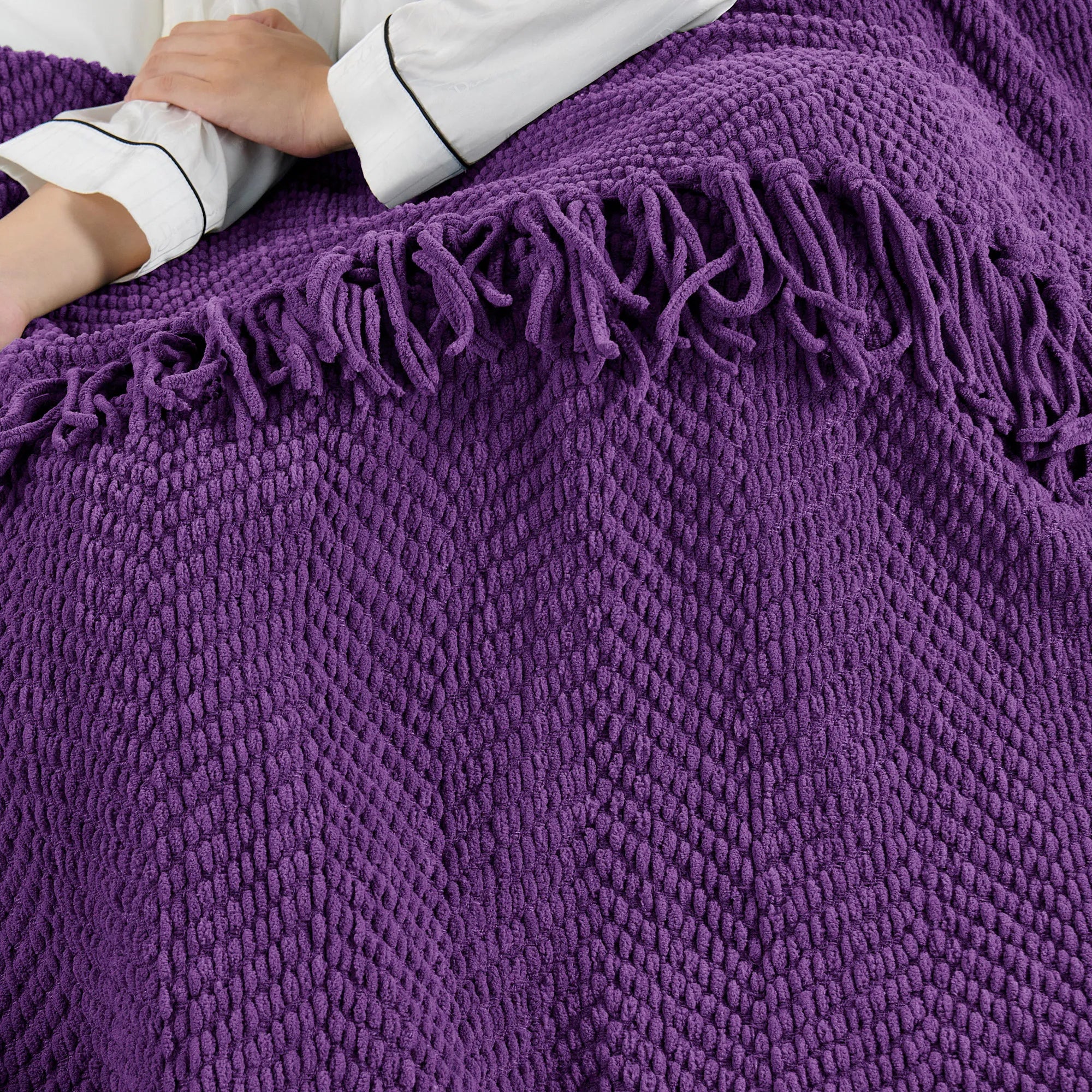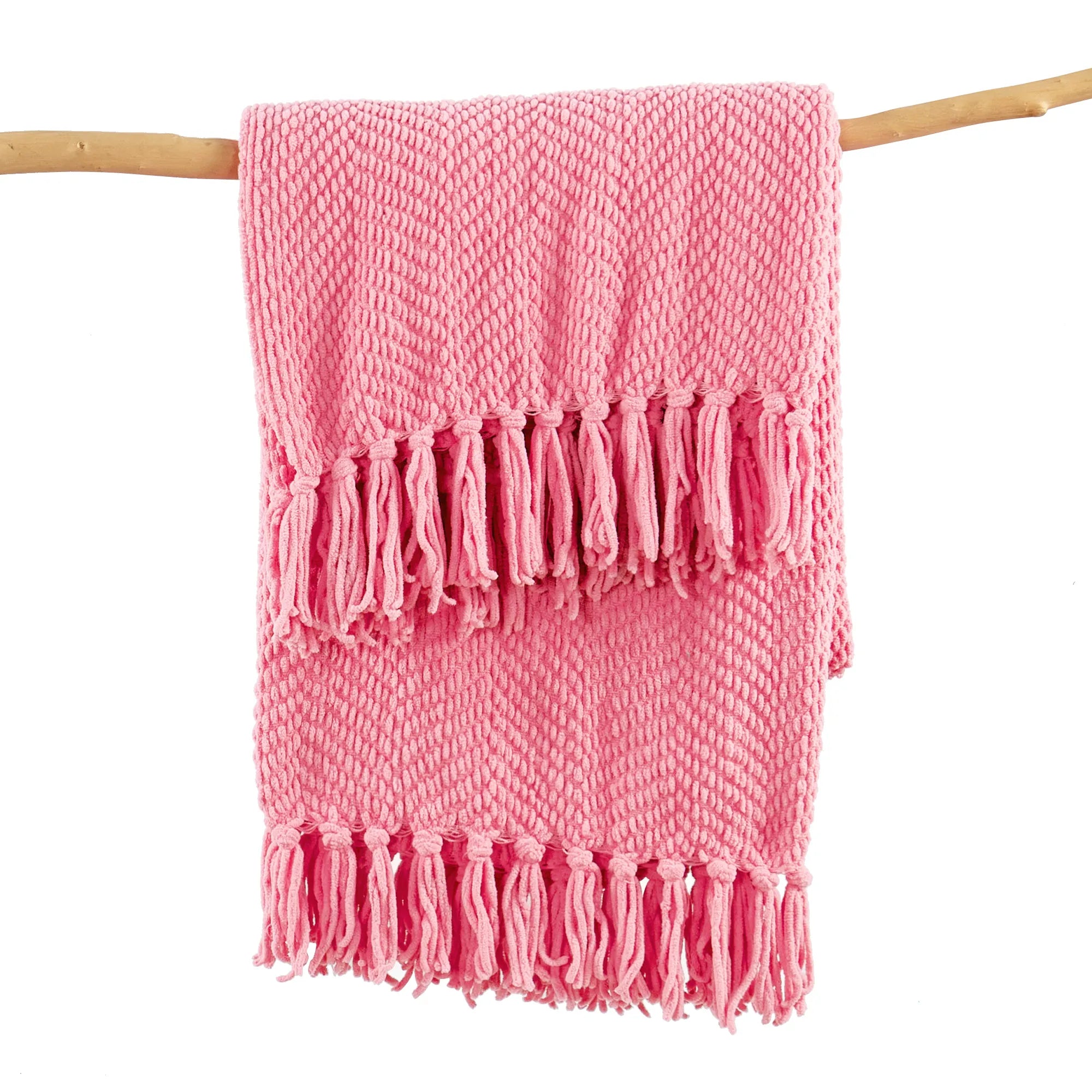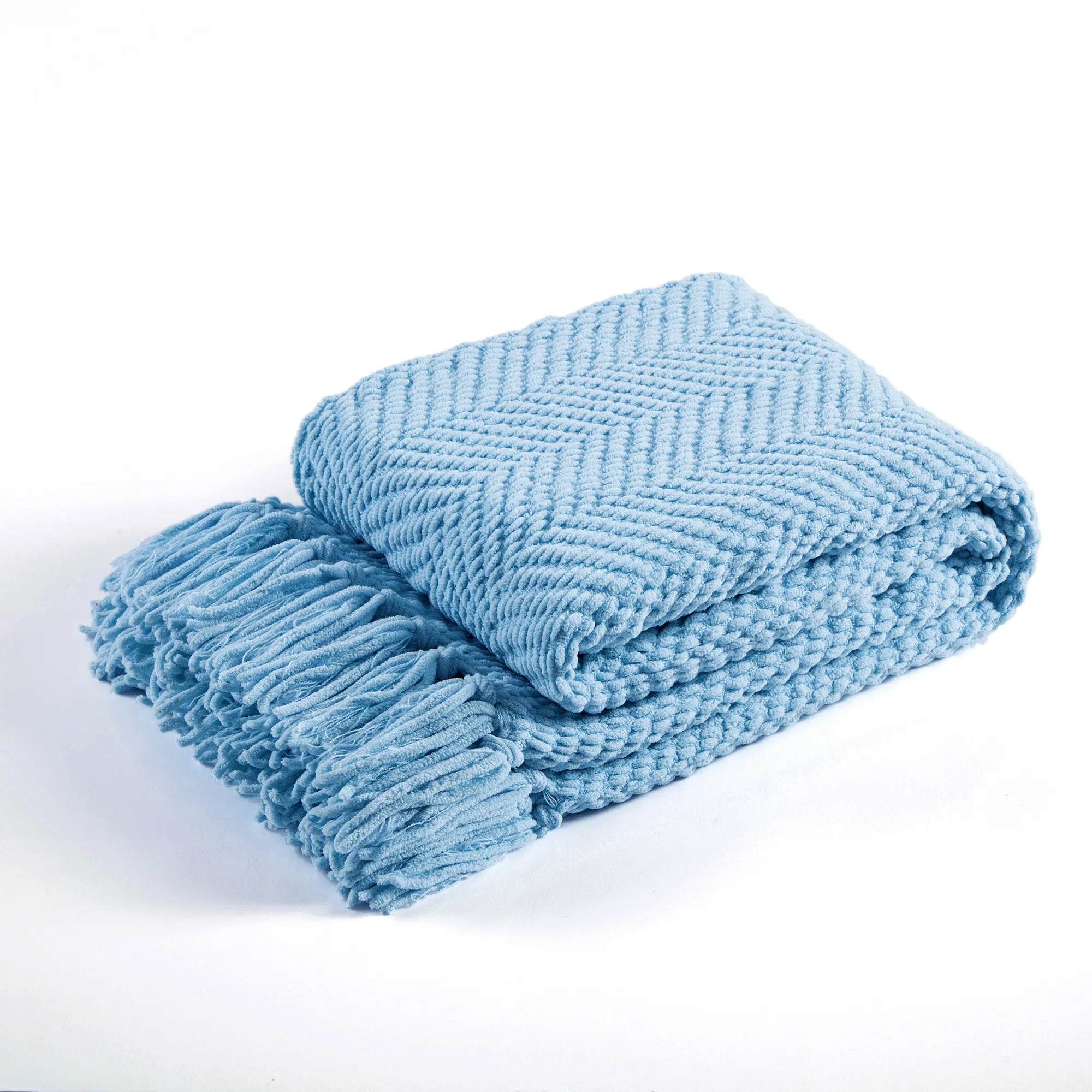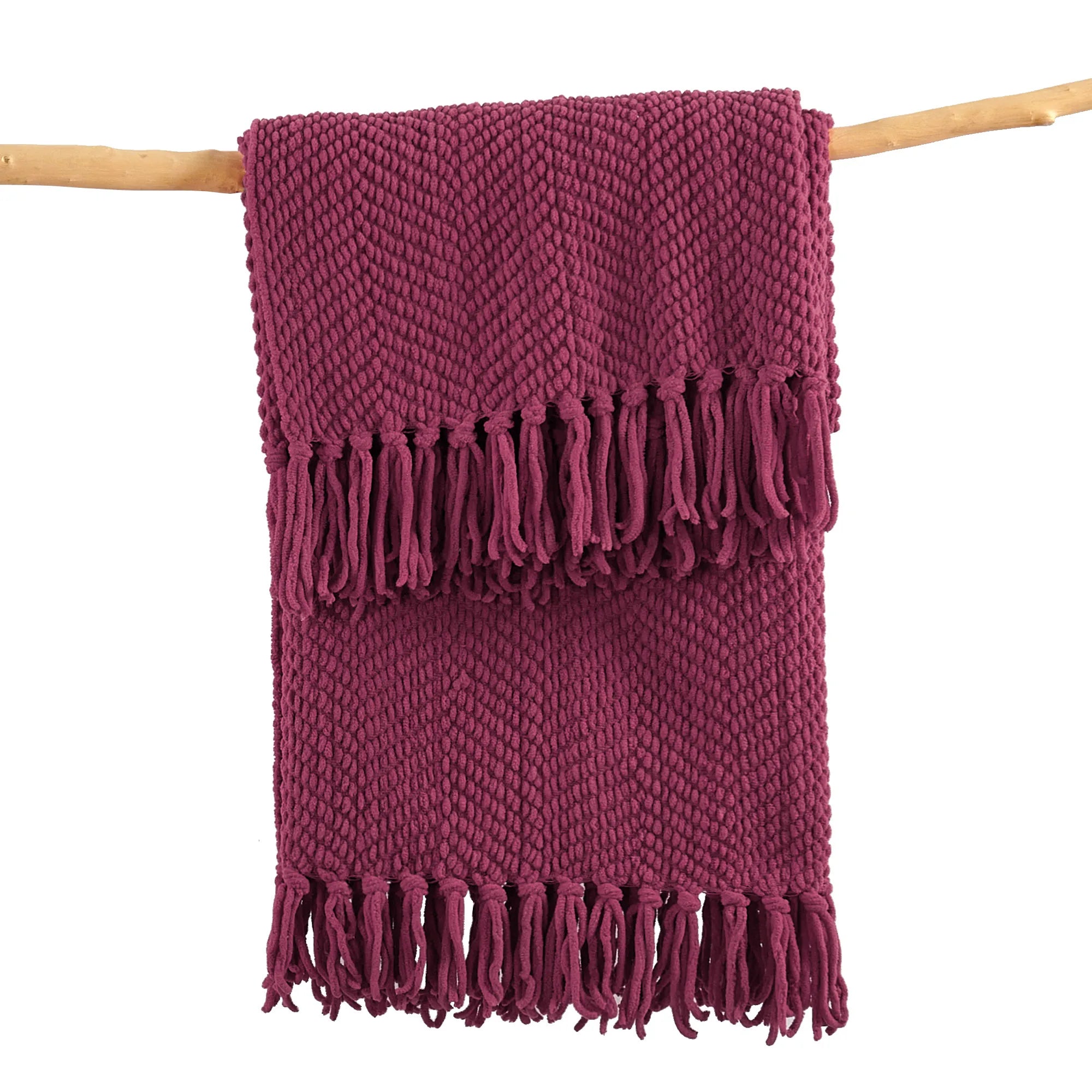 • Construction: This woven knitted tweed throw is made of super soft microfiber polyester. The design is finished off with adorable knotted braid tassels along each side of the widths.